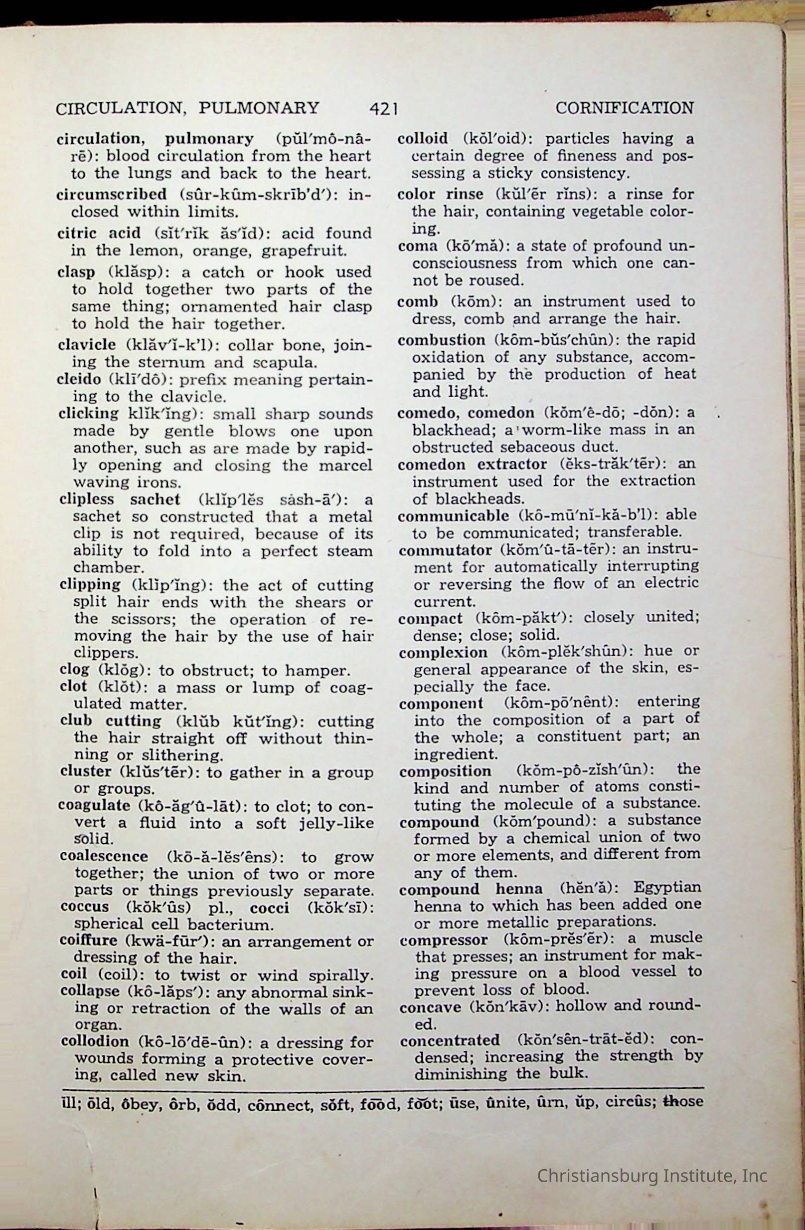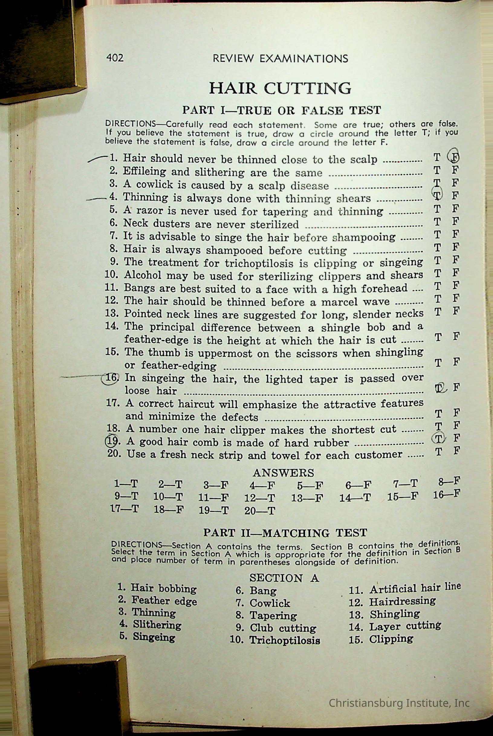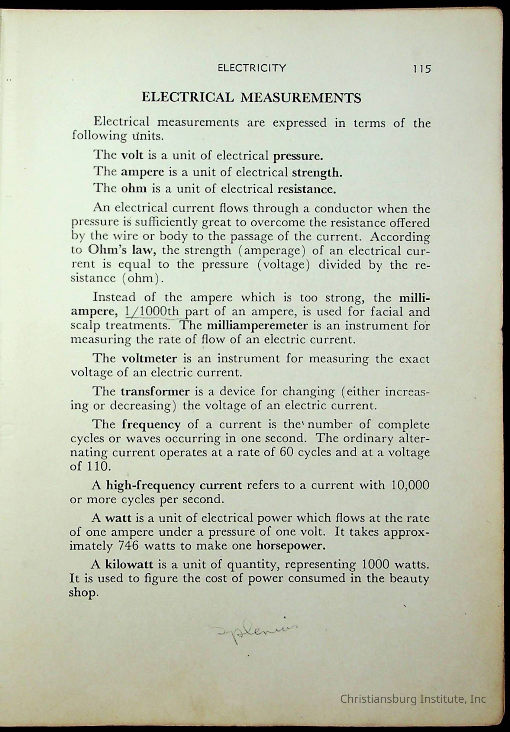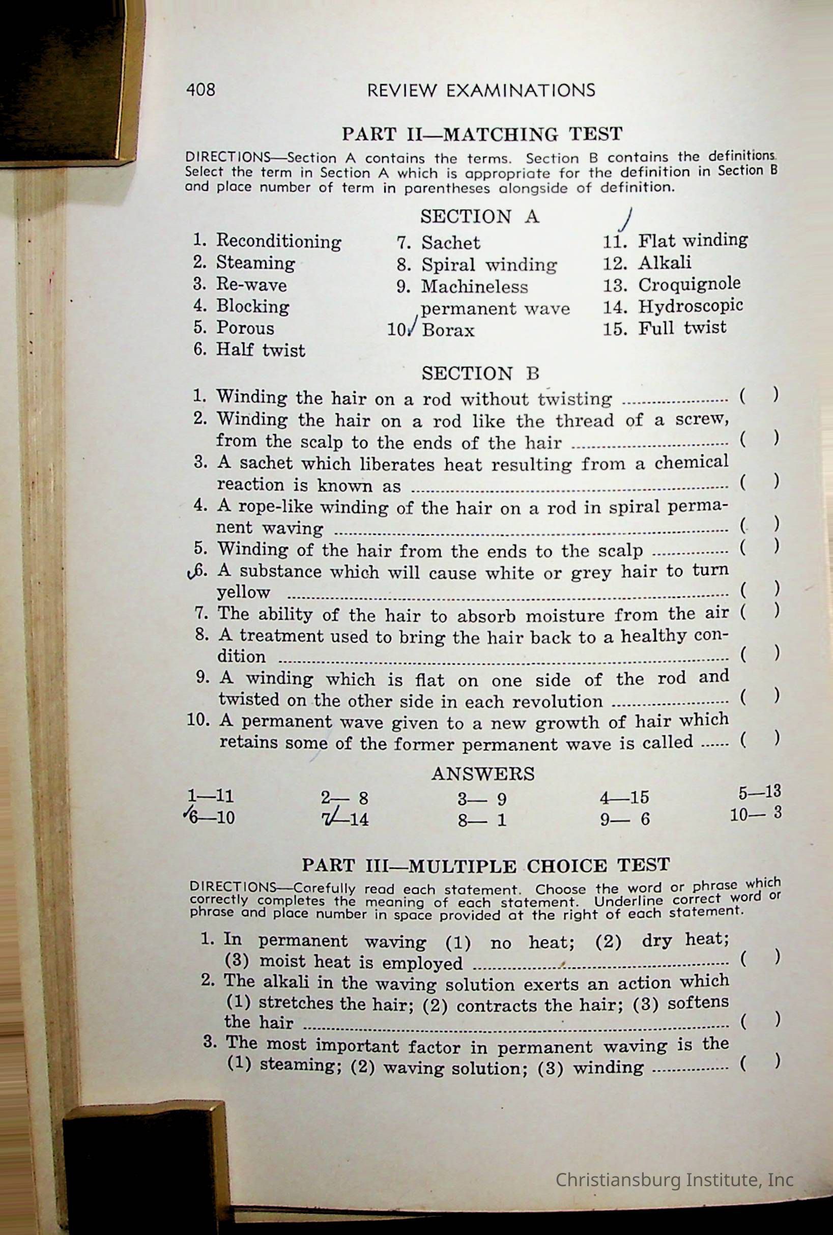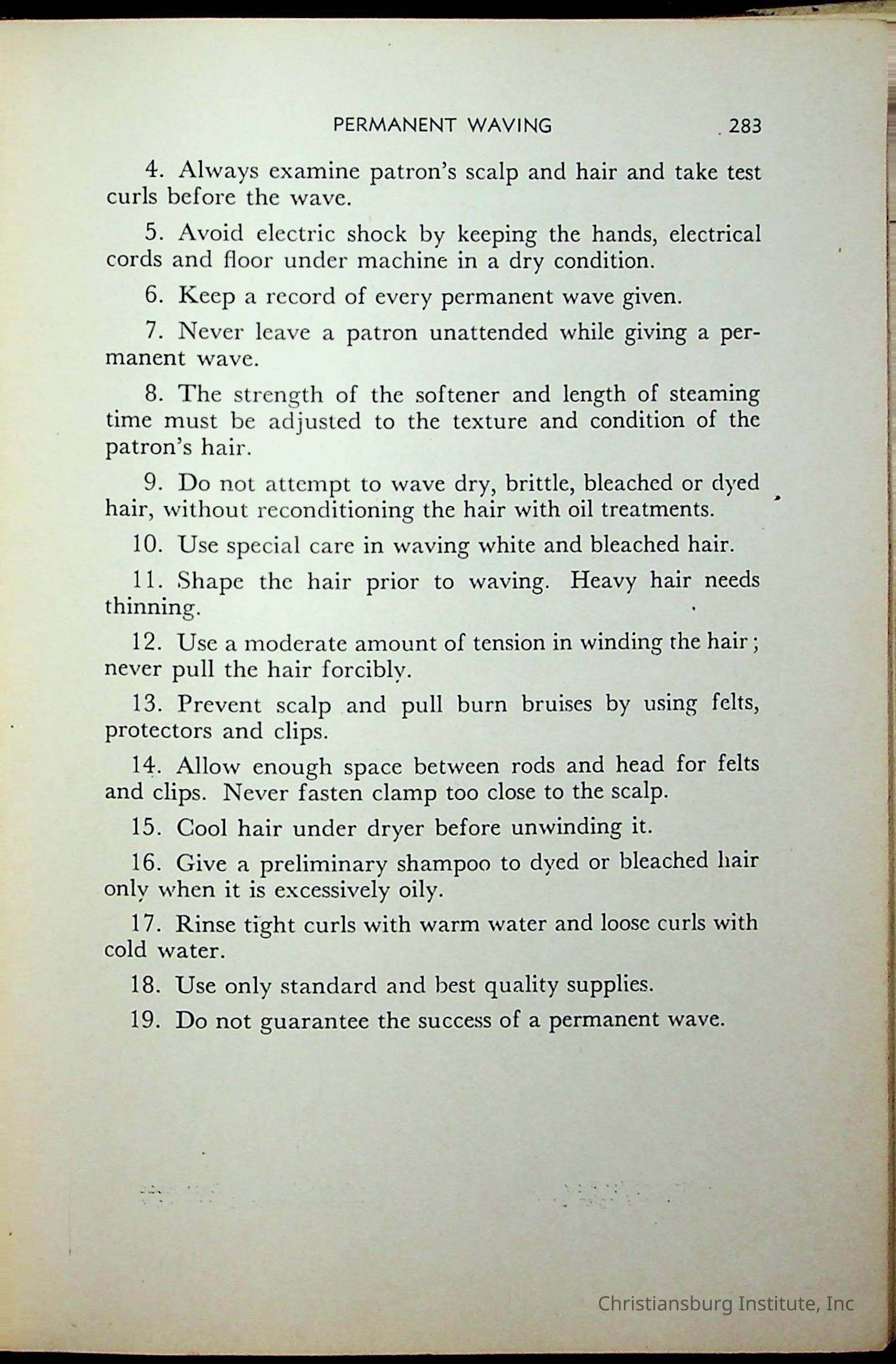 A revised version of the textbook titled, "Standard Textbook on Cosmetology" written by Constance V. Kibbe and published in the year 1942. This copy was owned by CII student, Amanda Edwin (later Amanda DeHart).Collection
