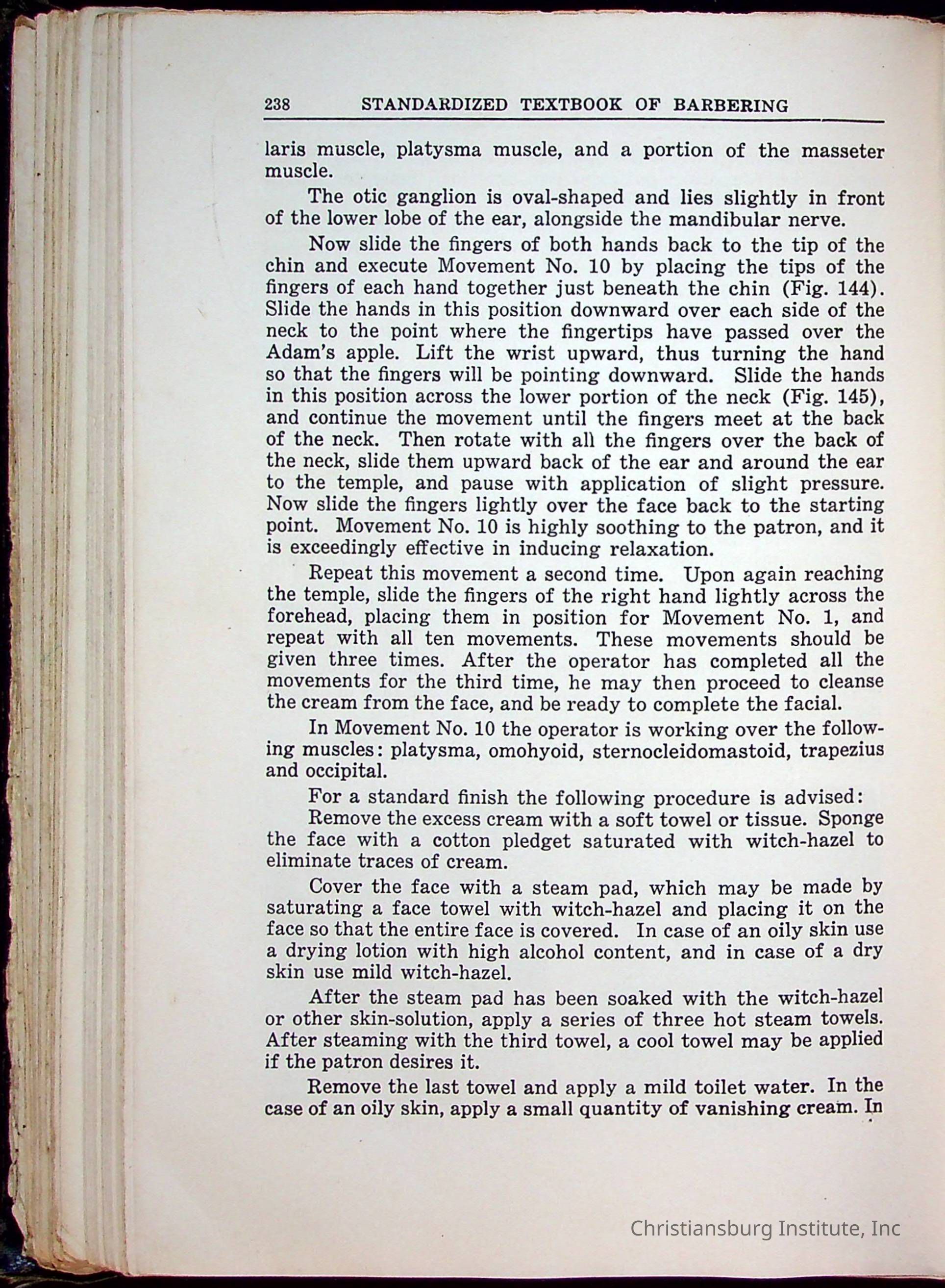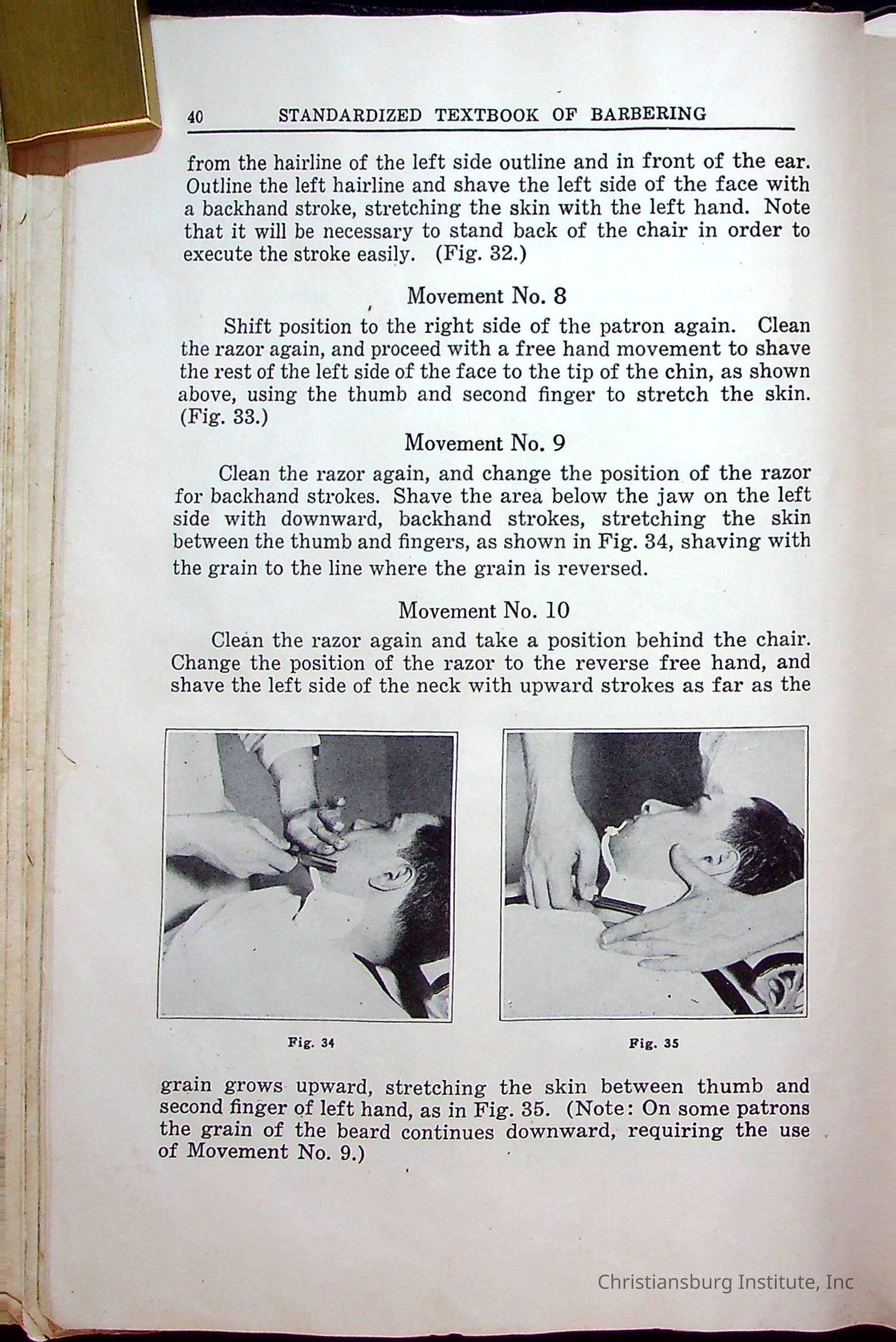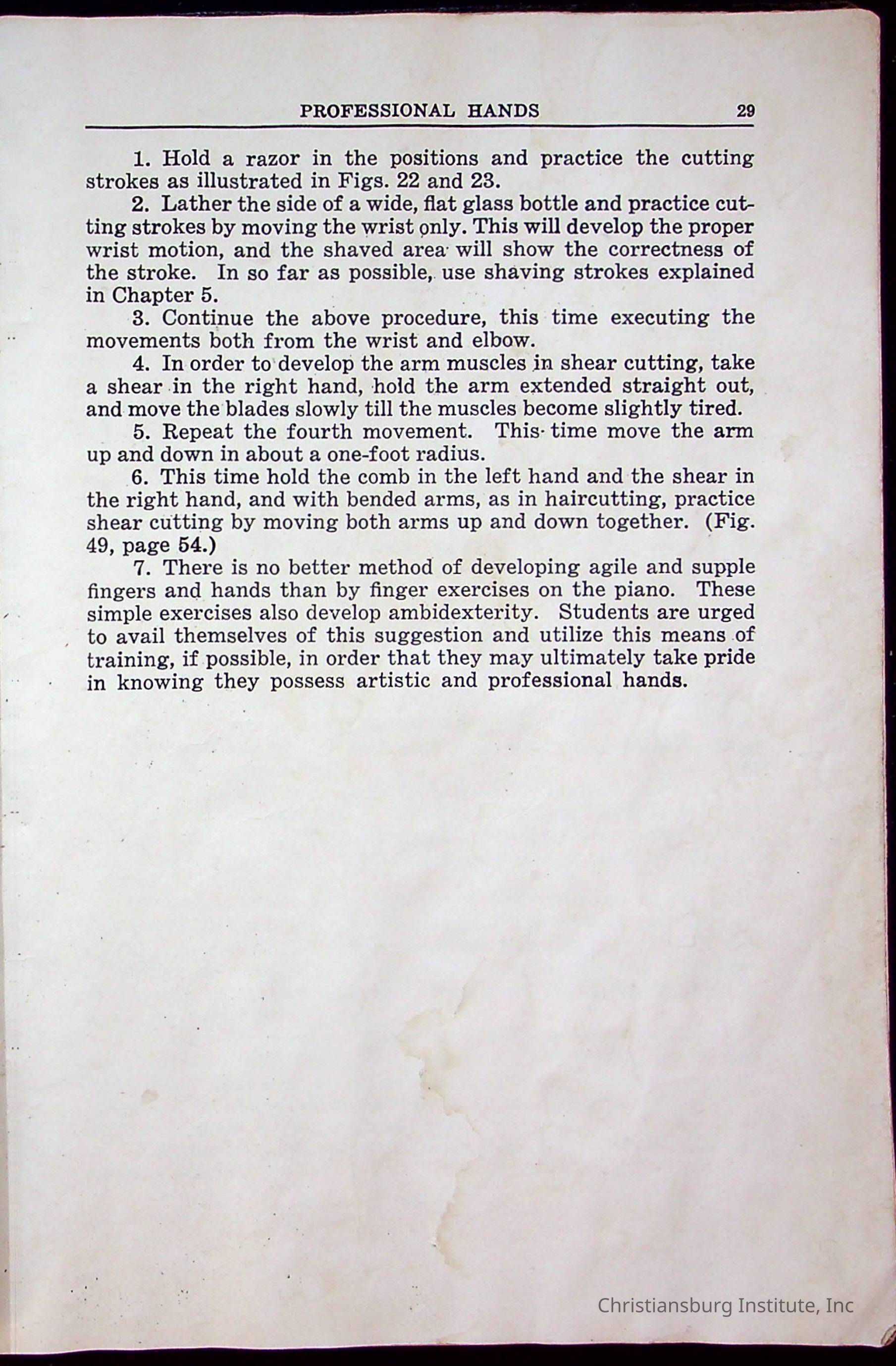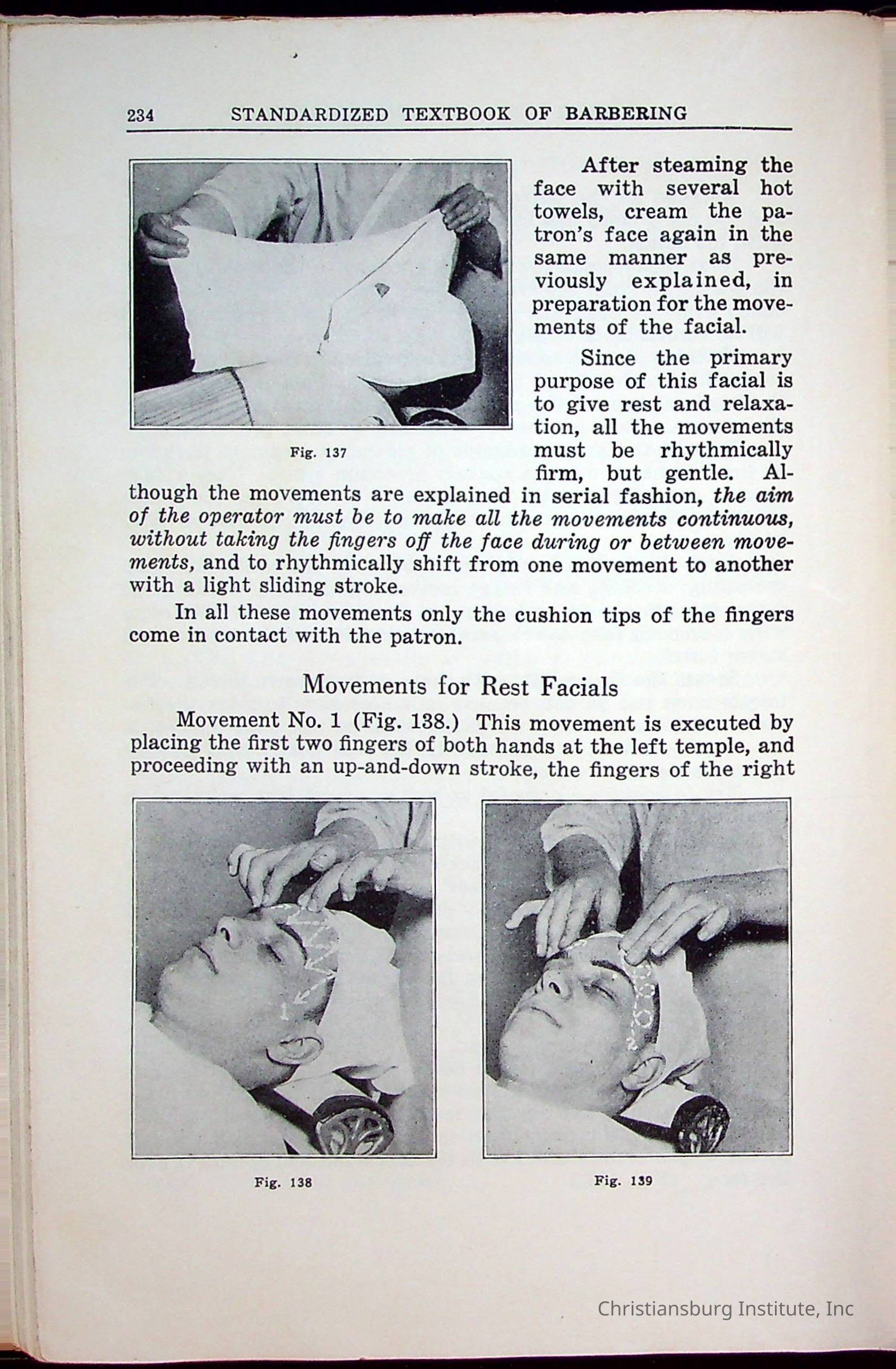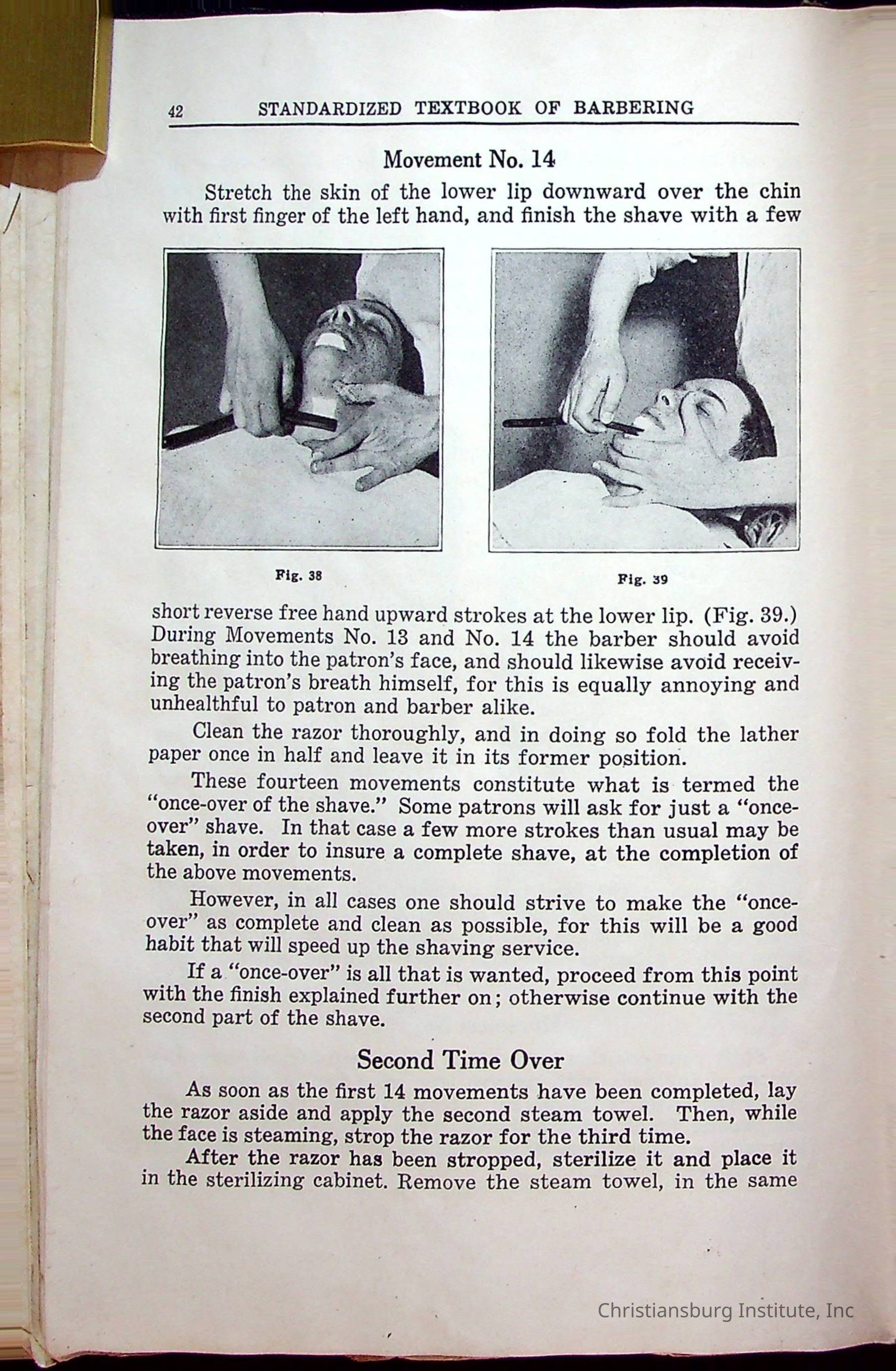 "Standardized Textbook of Barbering: in Two Parts" written and published by the Associated Master Barbers and Beauticians of America in the year 1950. This textbook was in the Christiansburg Institute library.