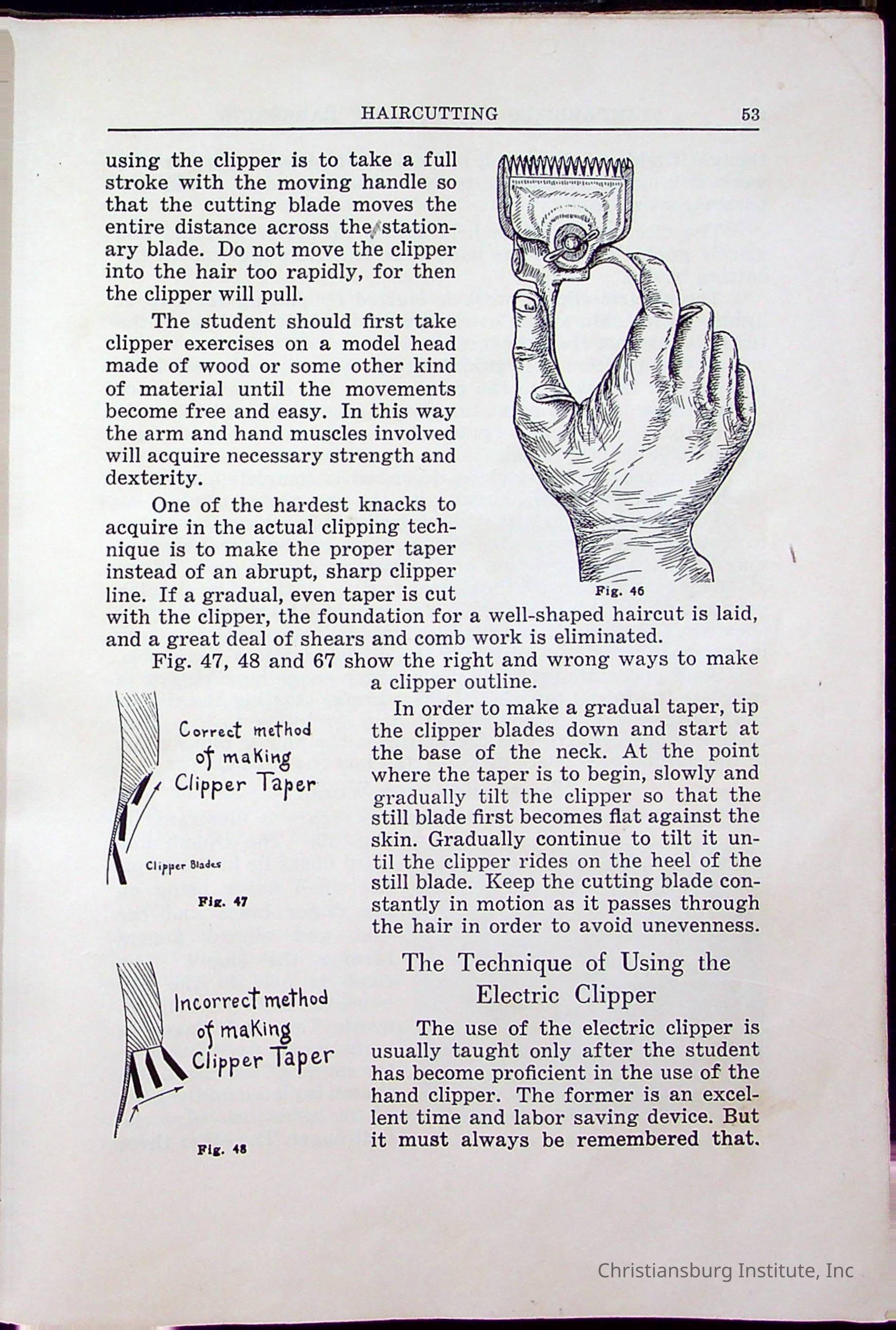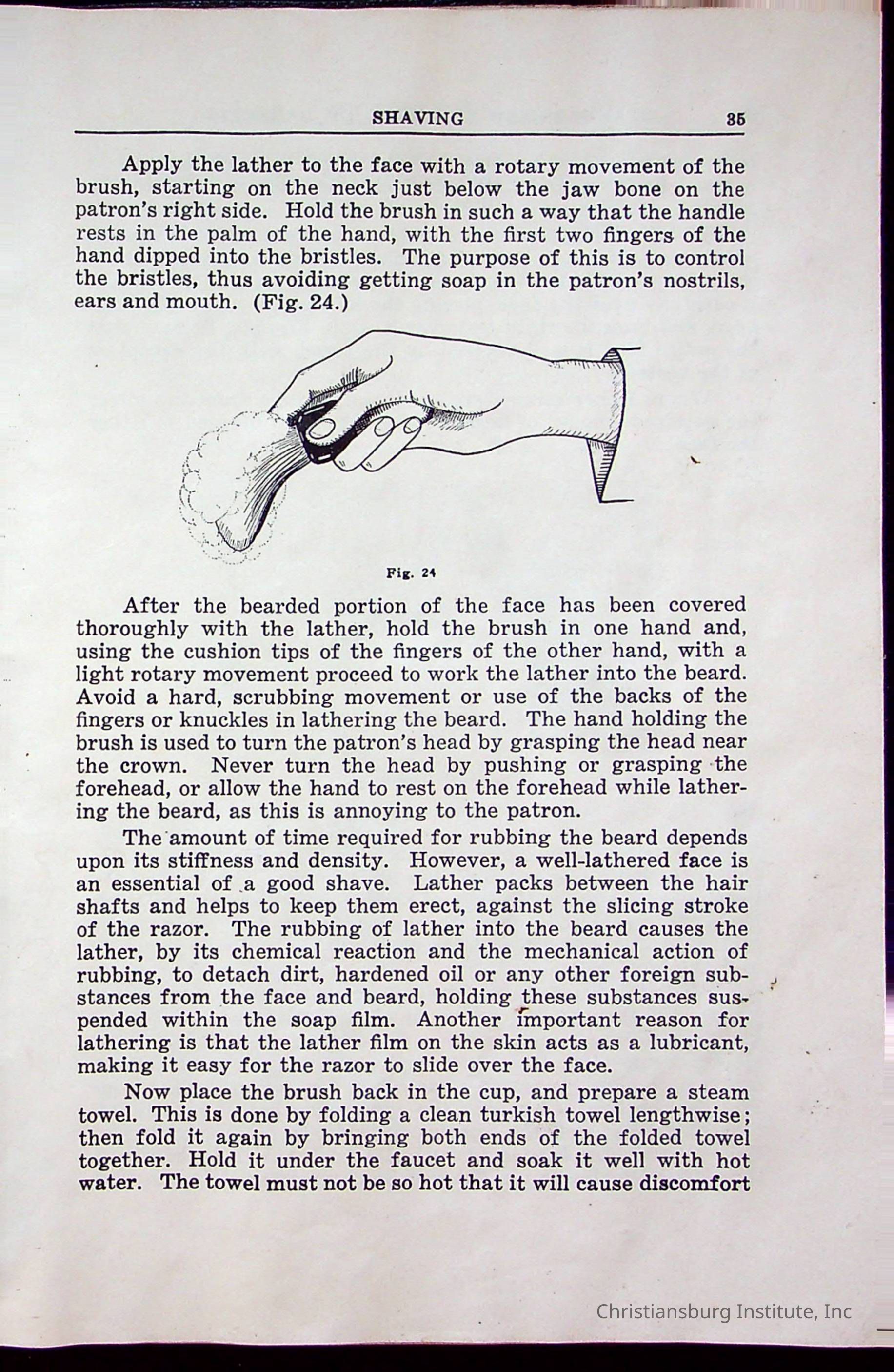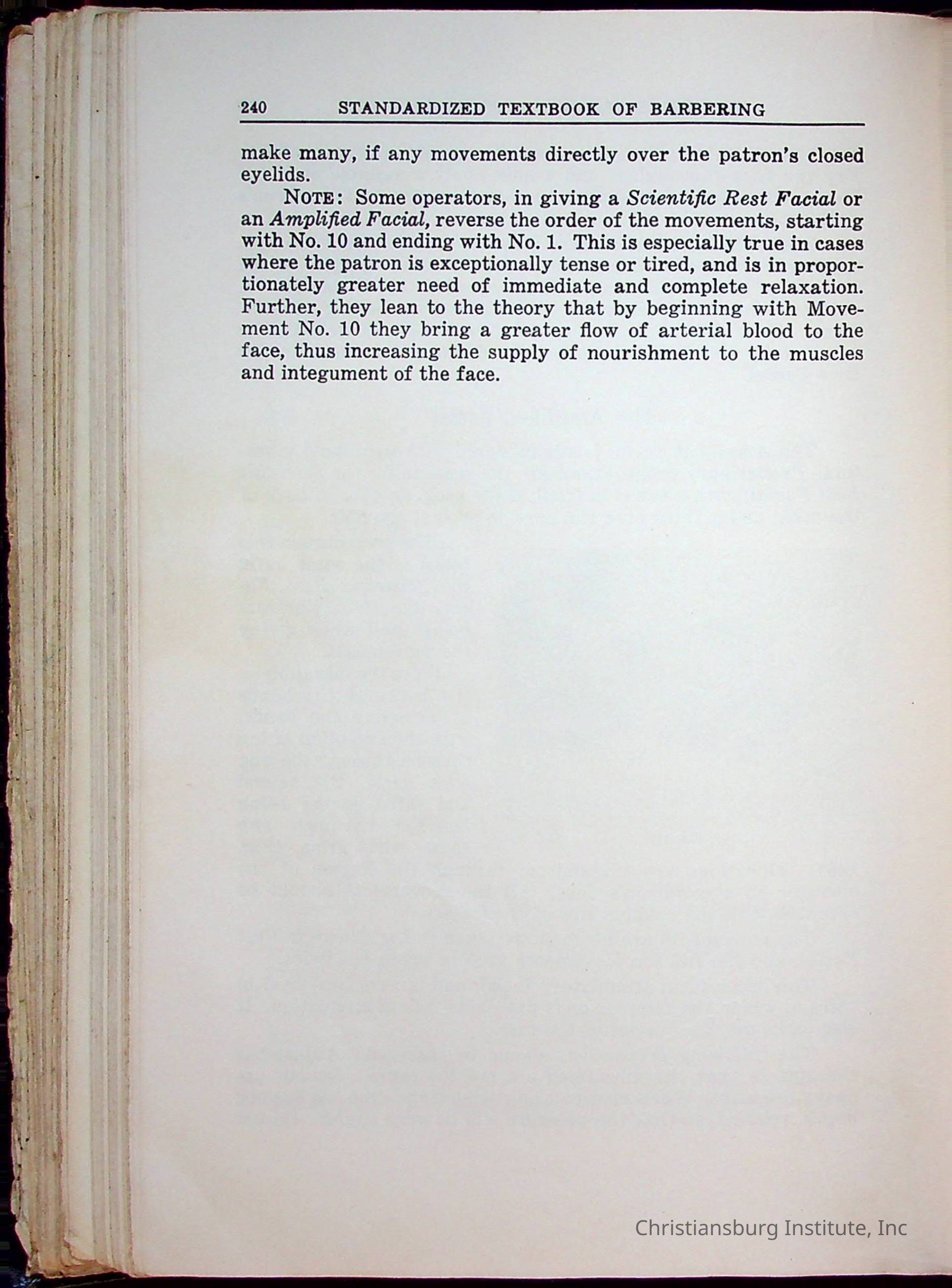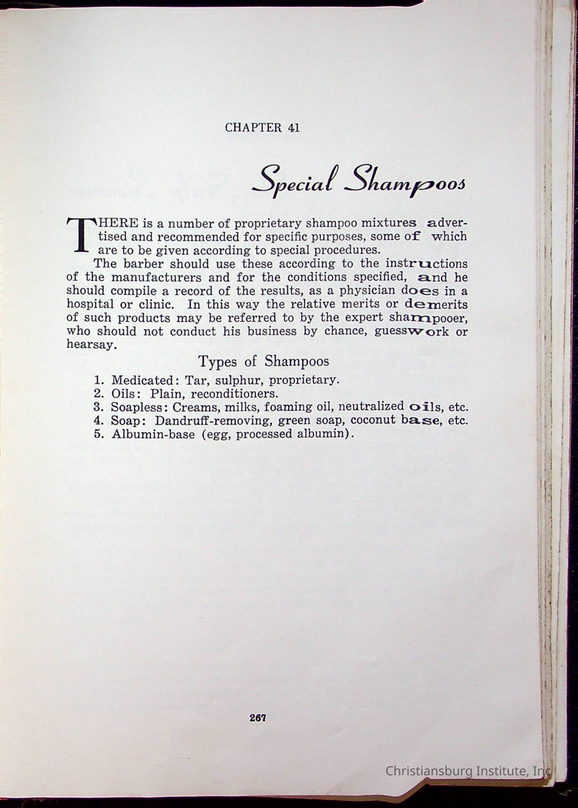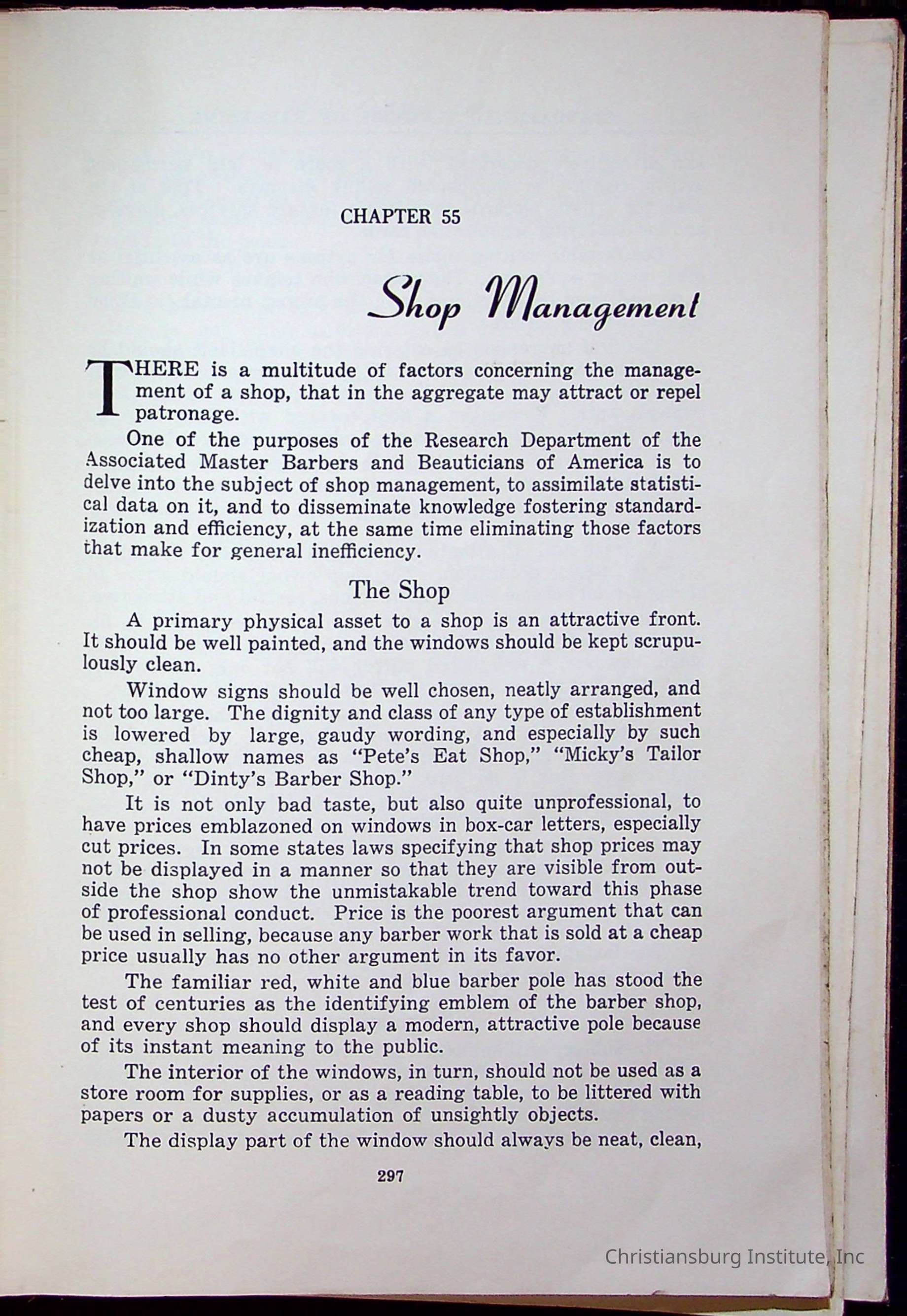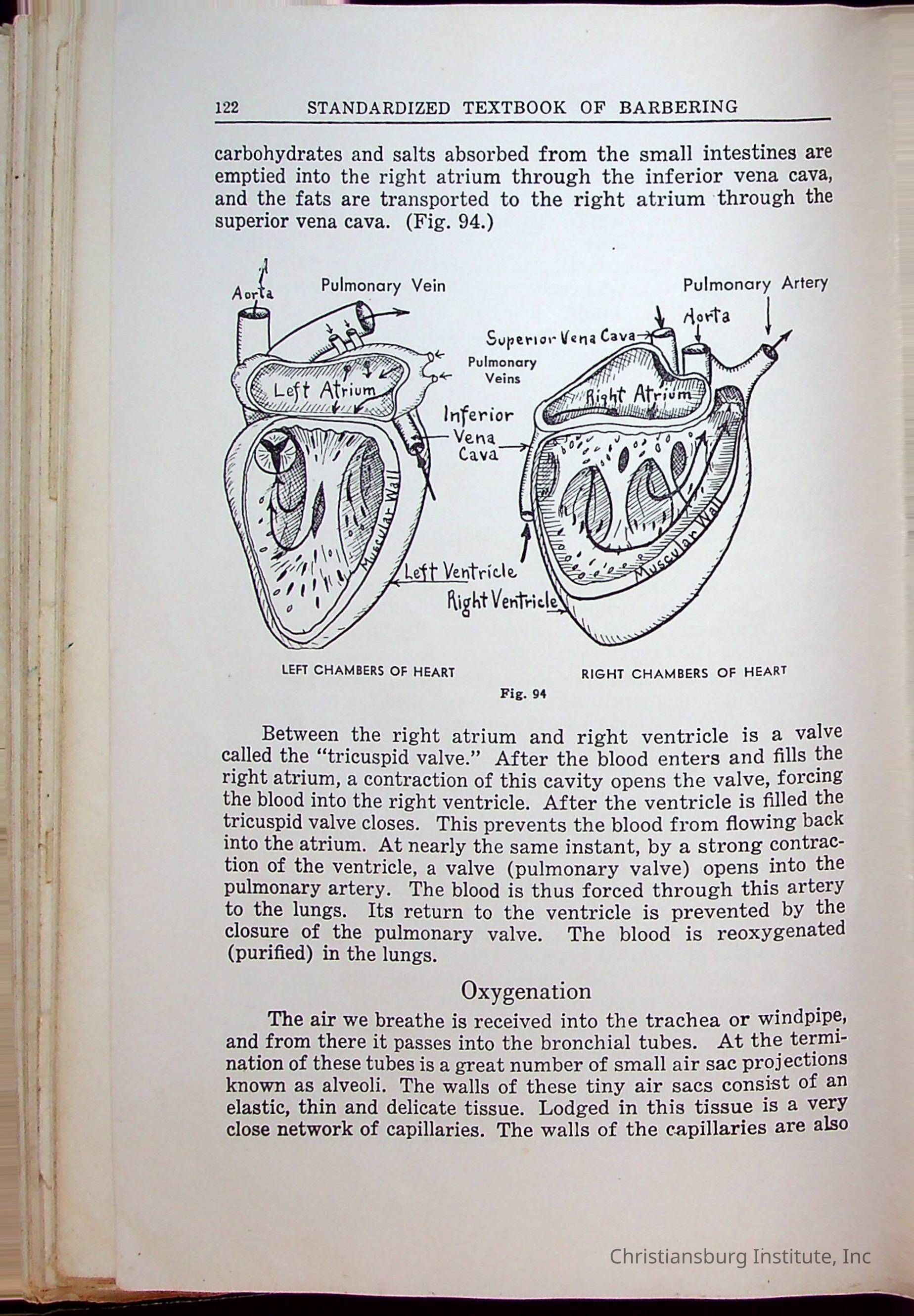 "Standardized Textbook of Barbering: in Two Parts" written and published by the Associated Master Barbers and Beauticians of America in the year 1950. This textbook was in the Christiansburg Institute library.