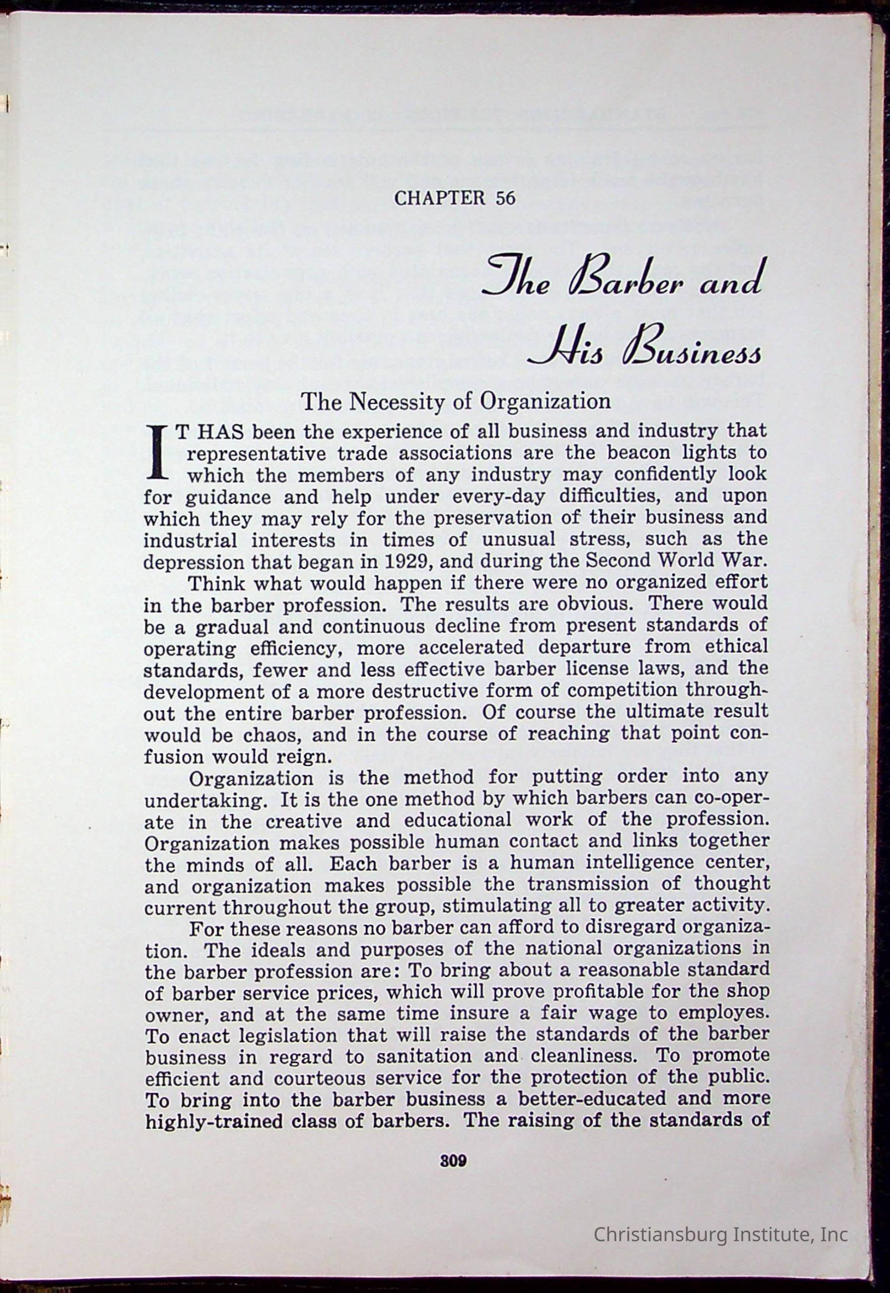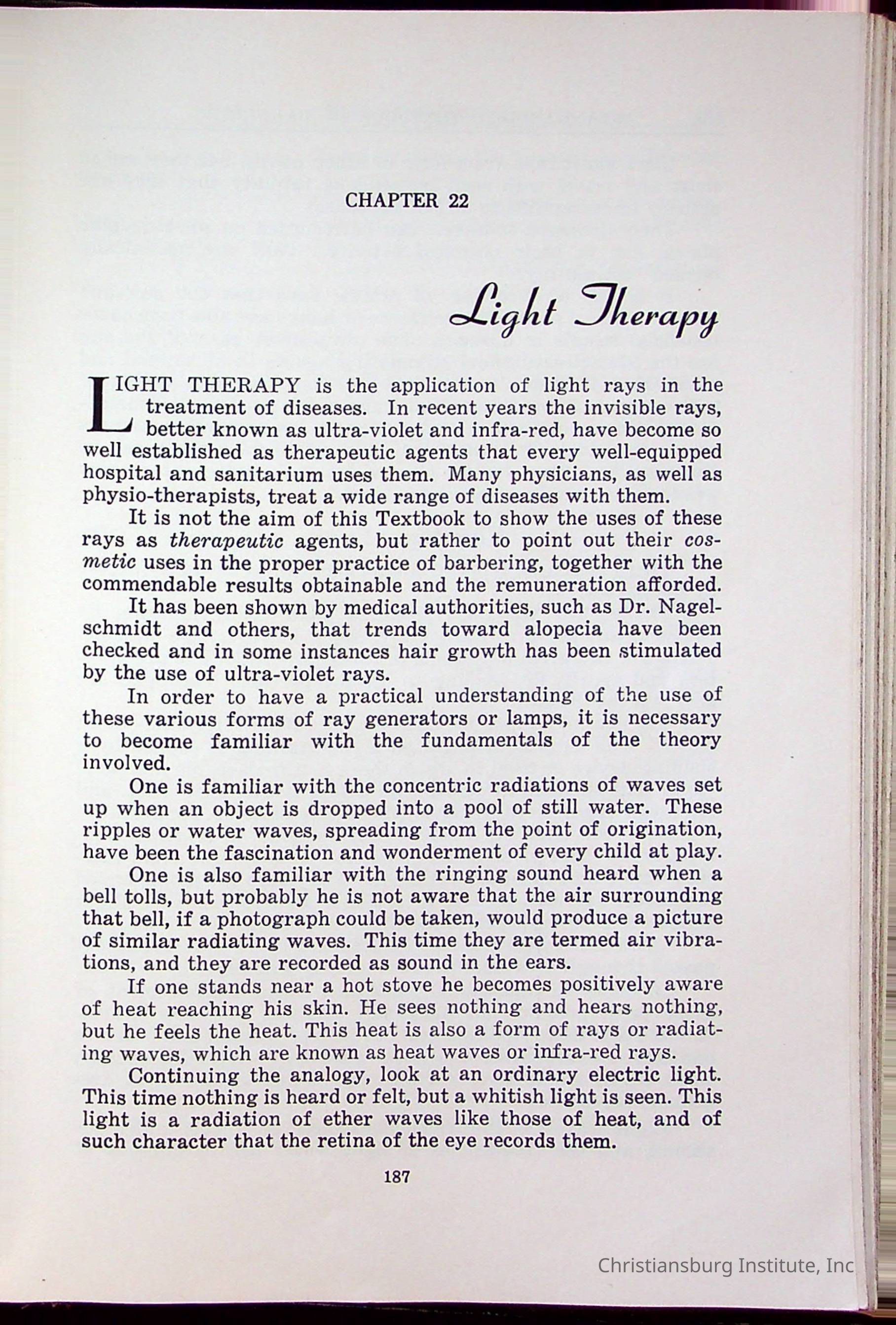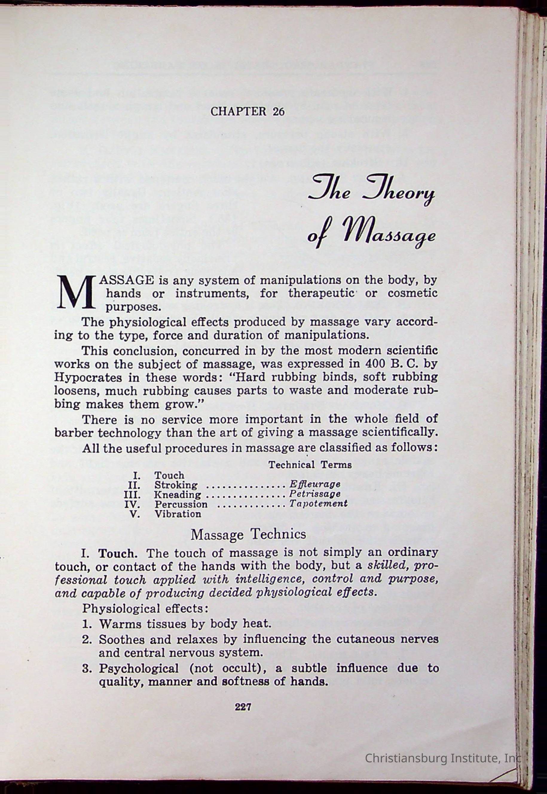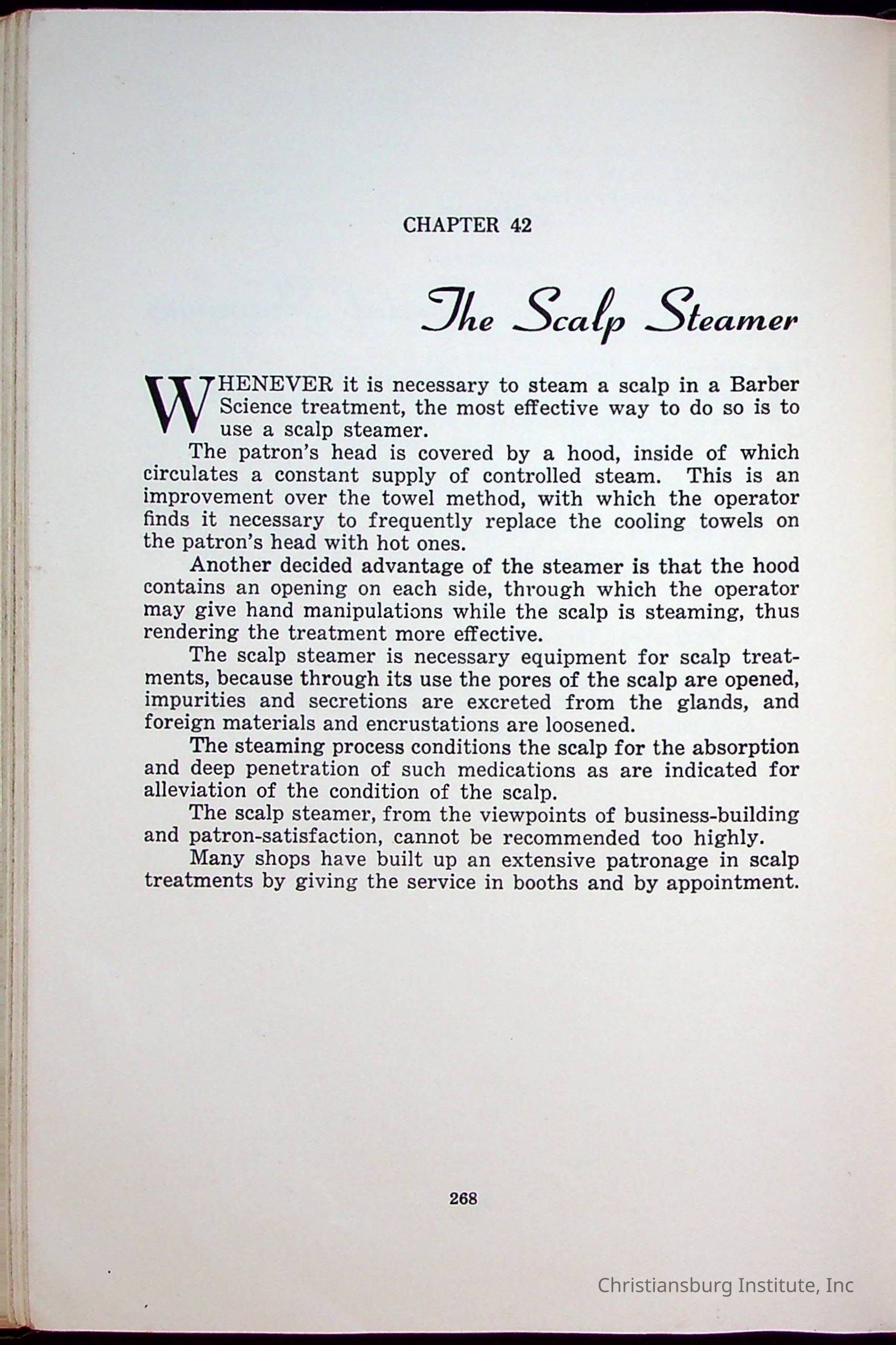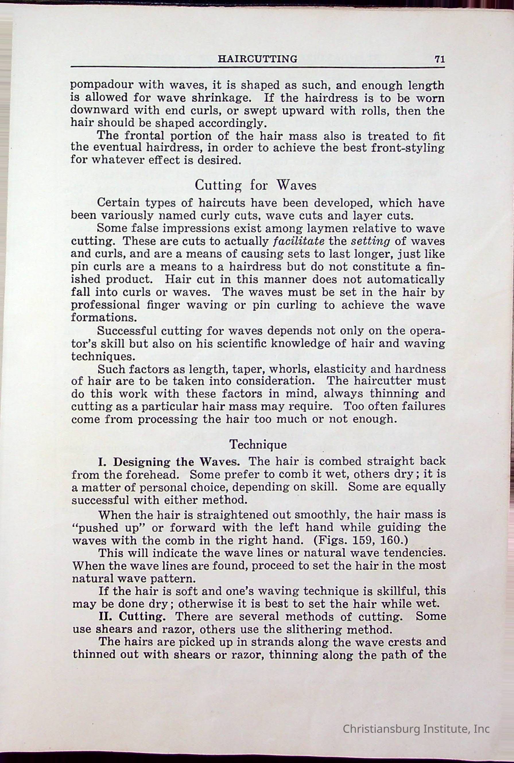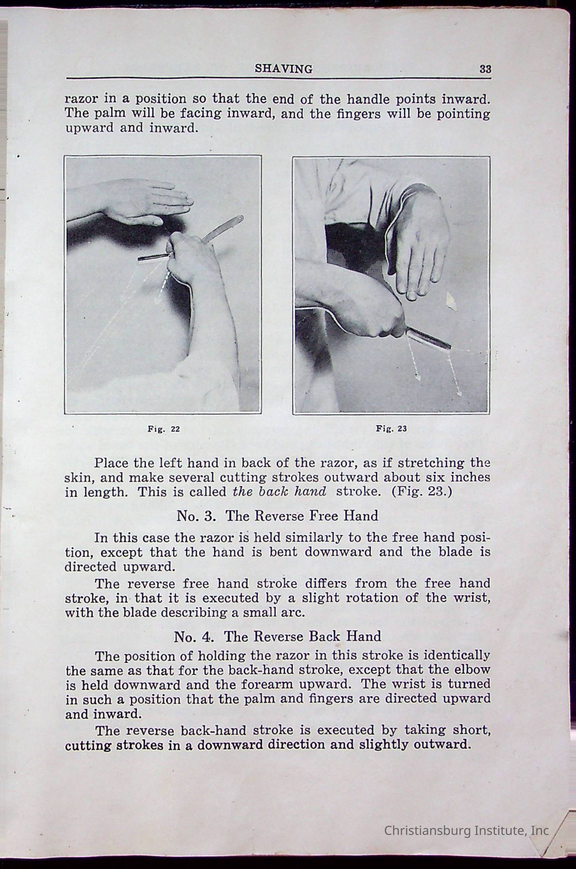 "Standardized Textbook of Barbering: in Two Parts" written and published by the Associated Master Barbers and Beauticians of America in the year 1950. This textbook was in the Christiansburg Institute library.