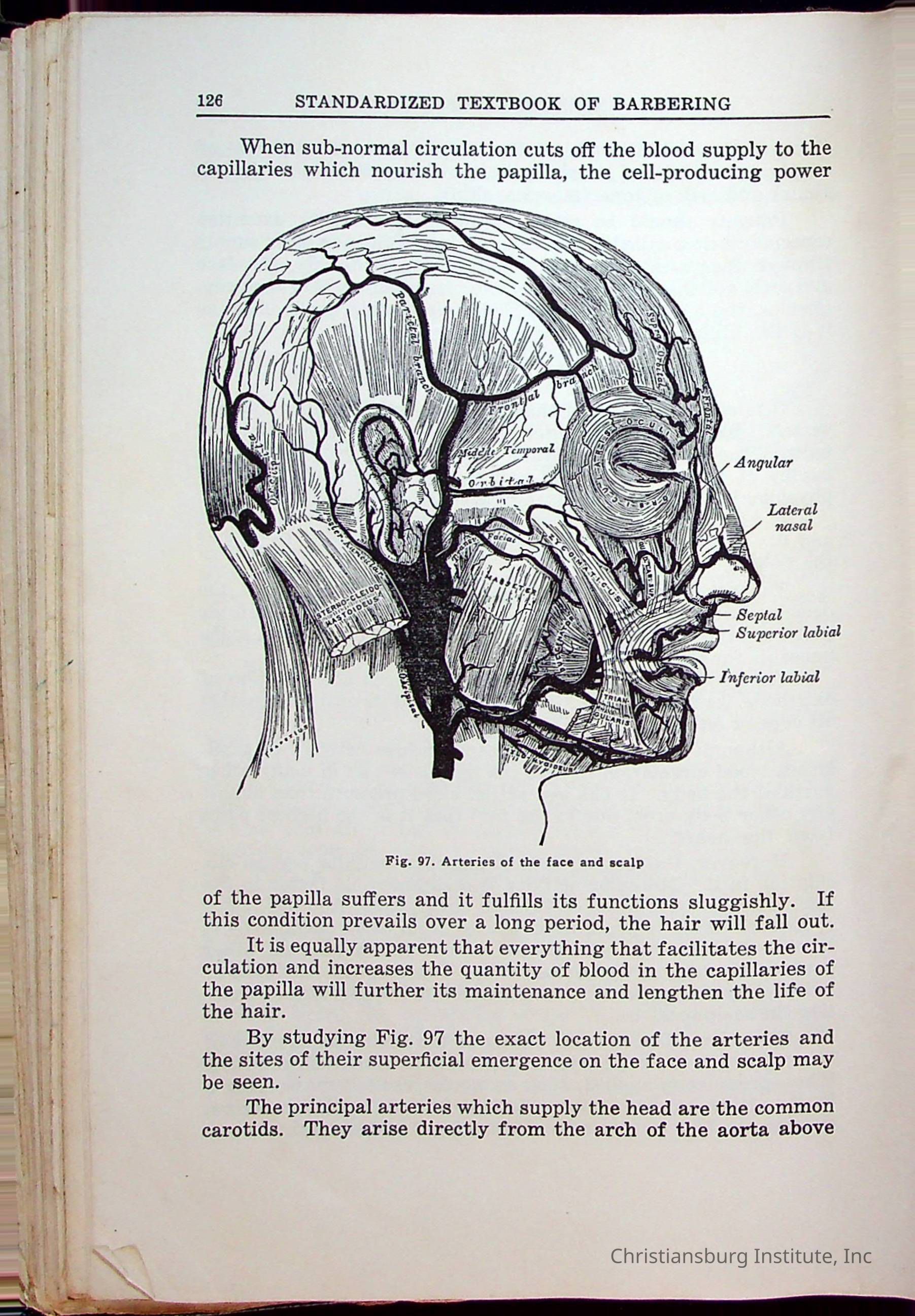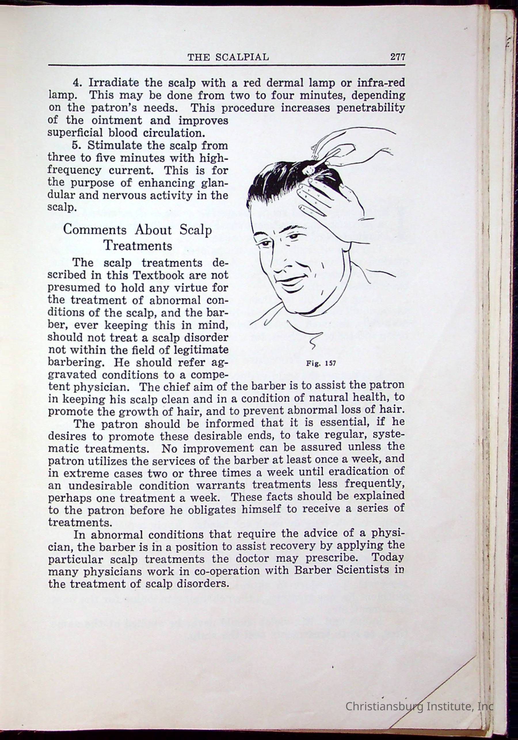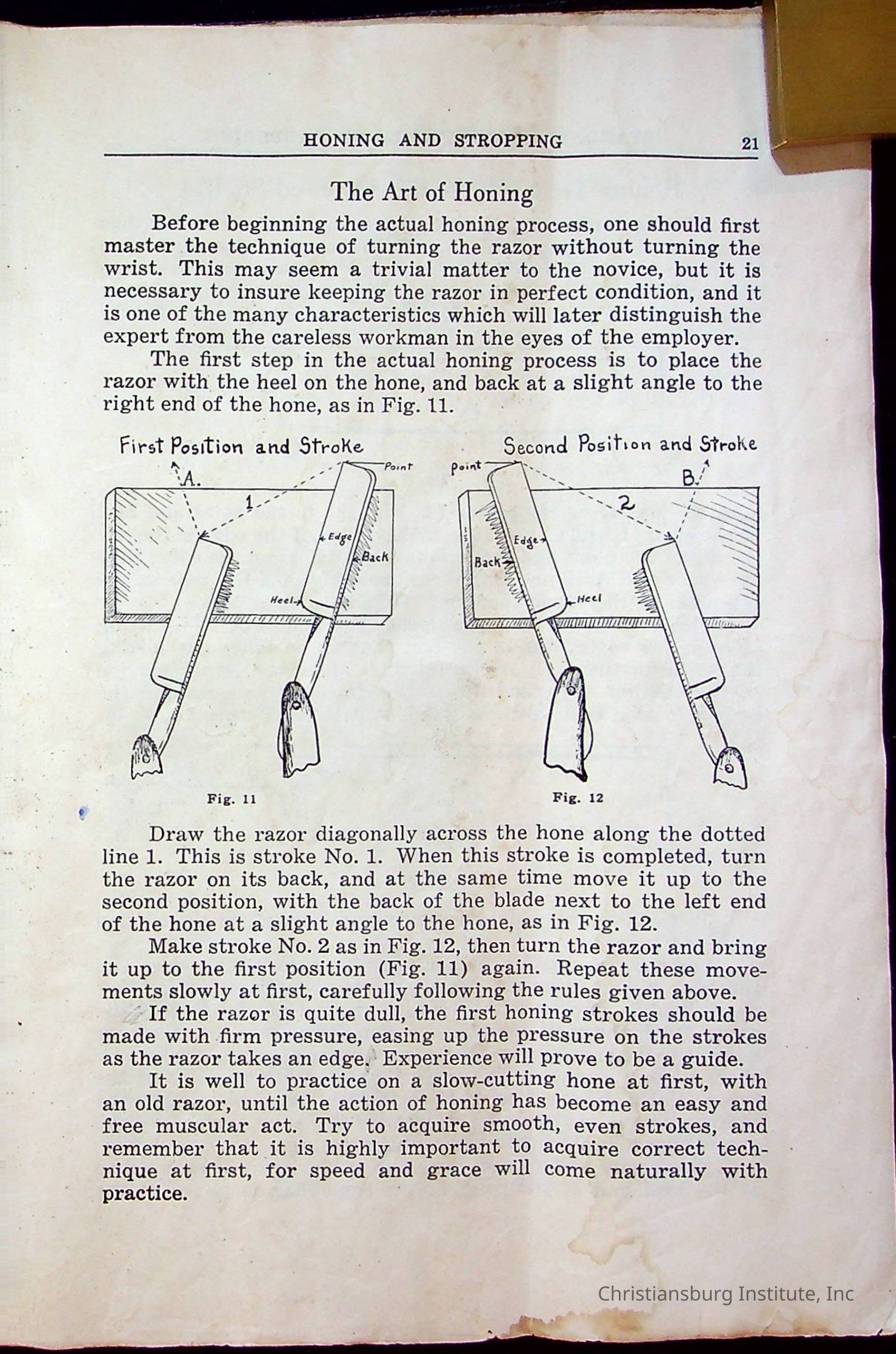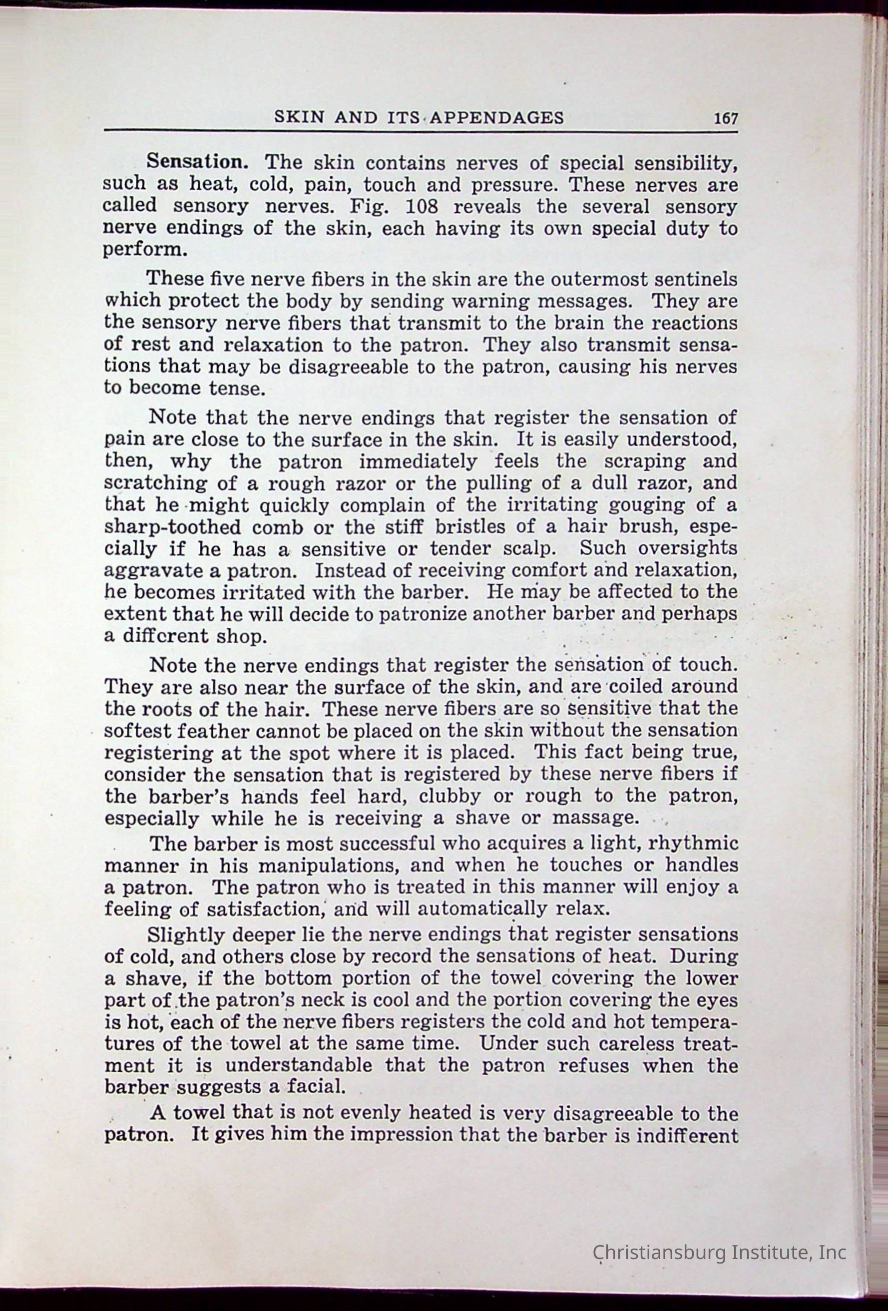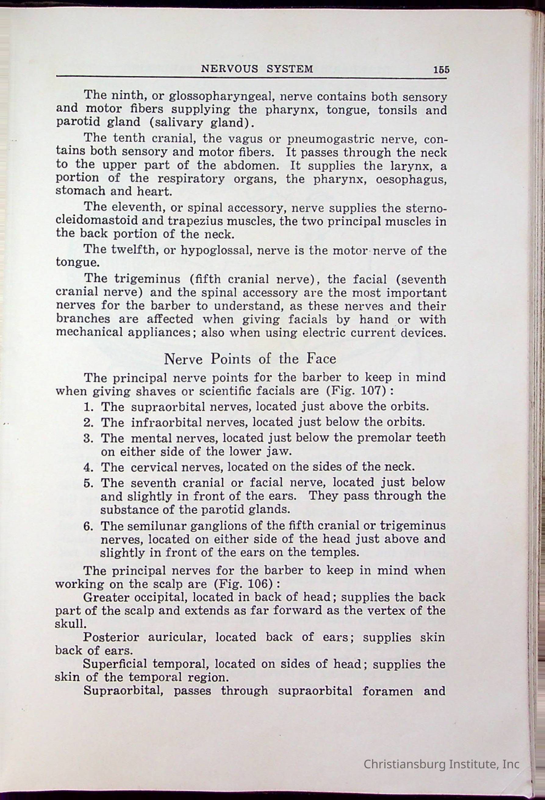 "Standardized Textbook of Barbering: in Two Parts" written and published by the Associated Master Barbers and Beauticians of America in the year 1950. This textbook was in the Christiansburg Institute library.