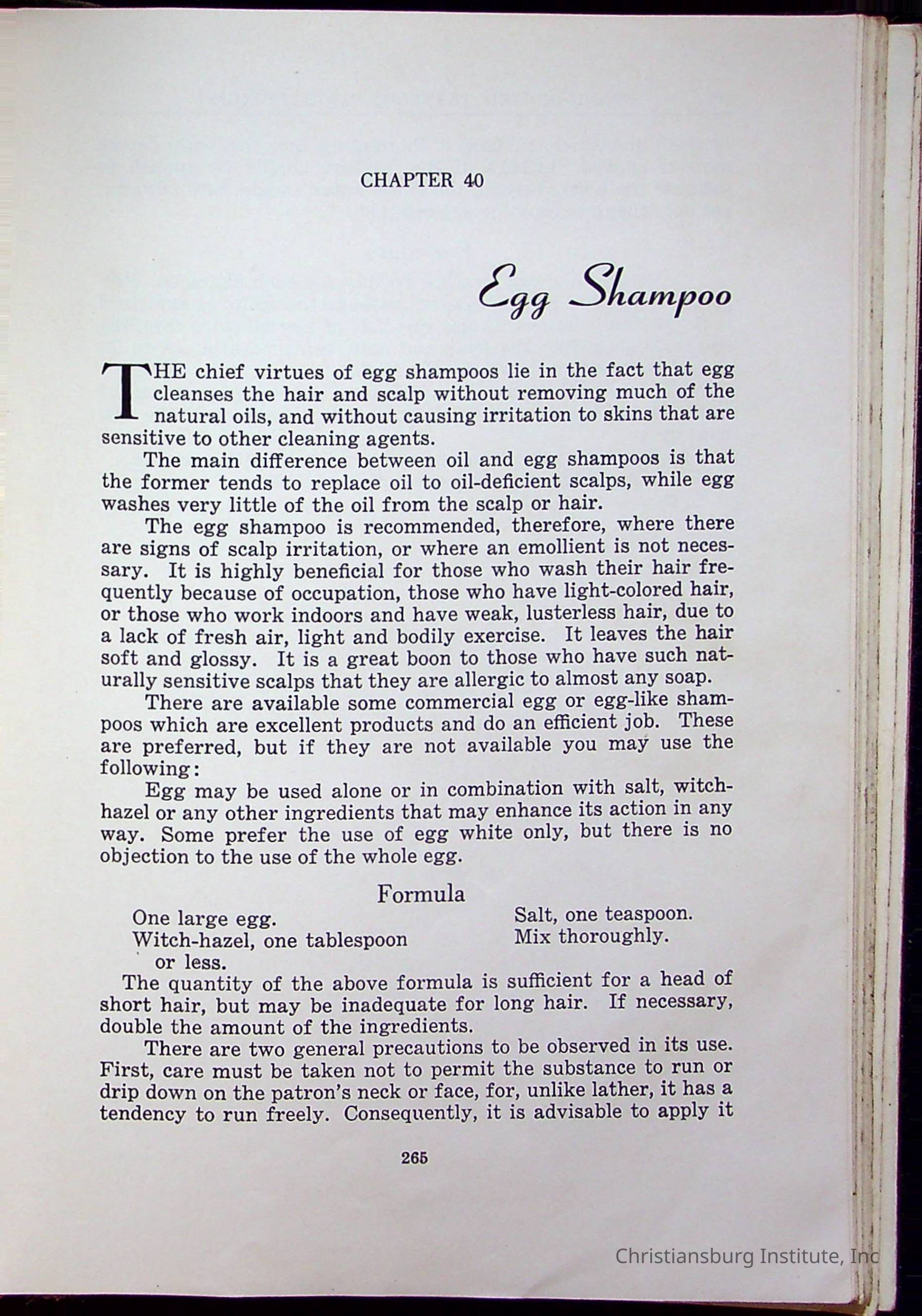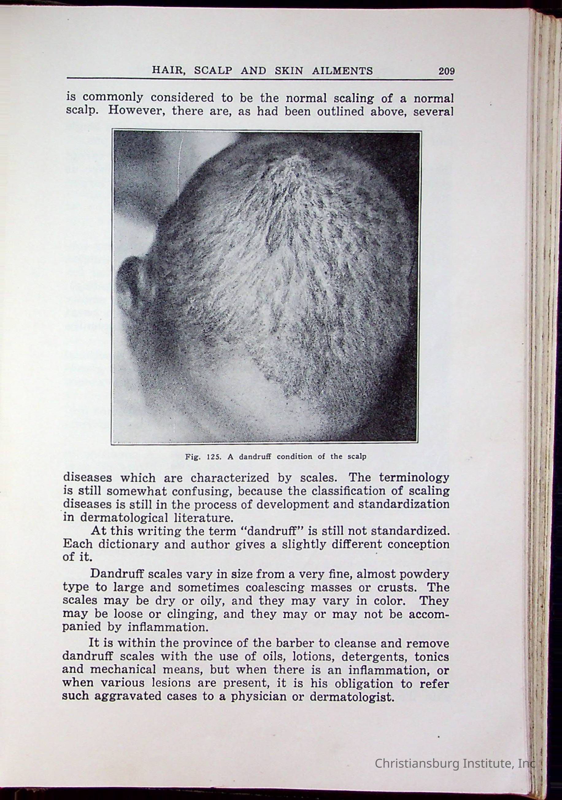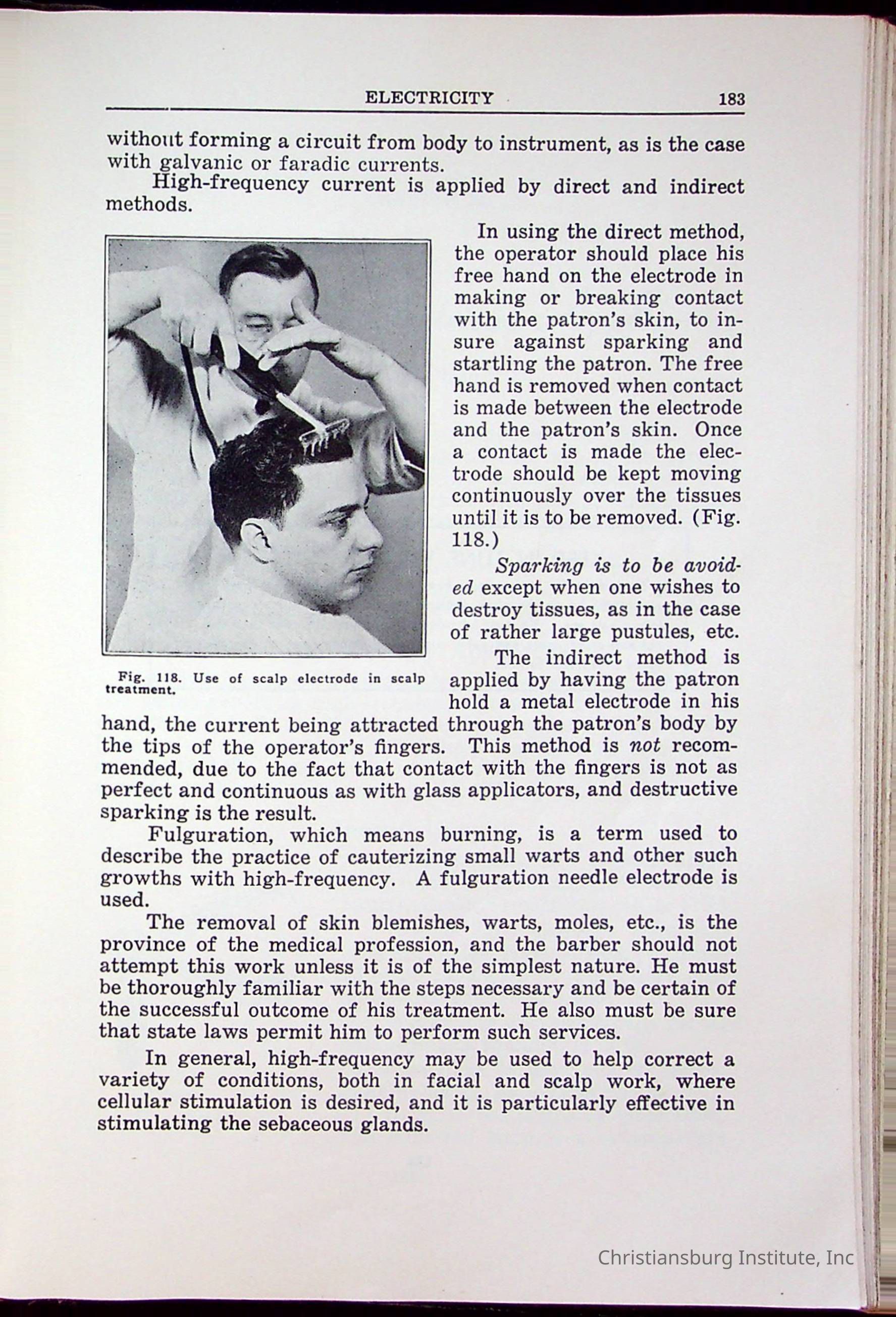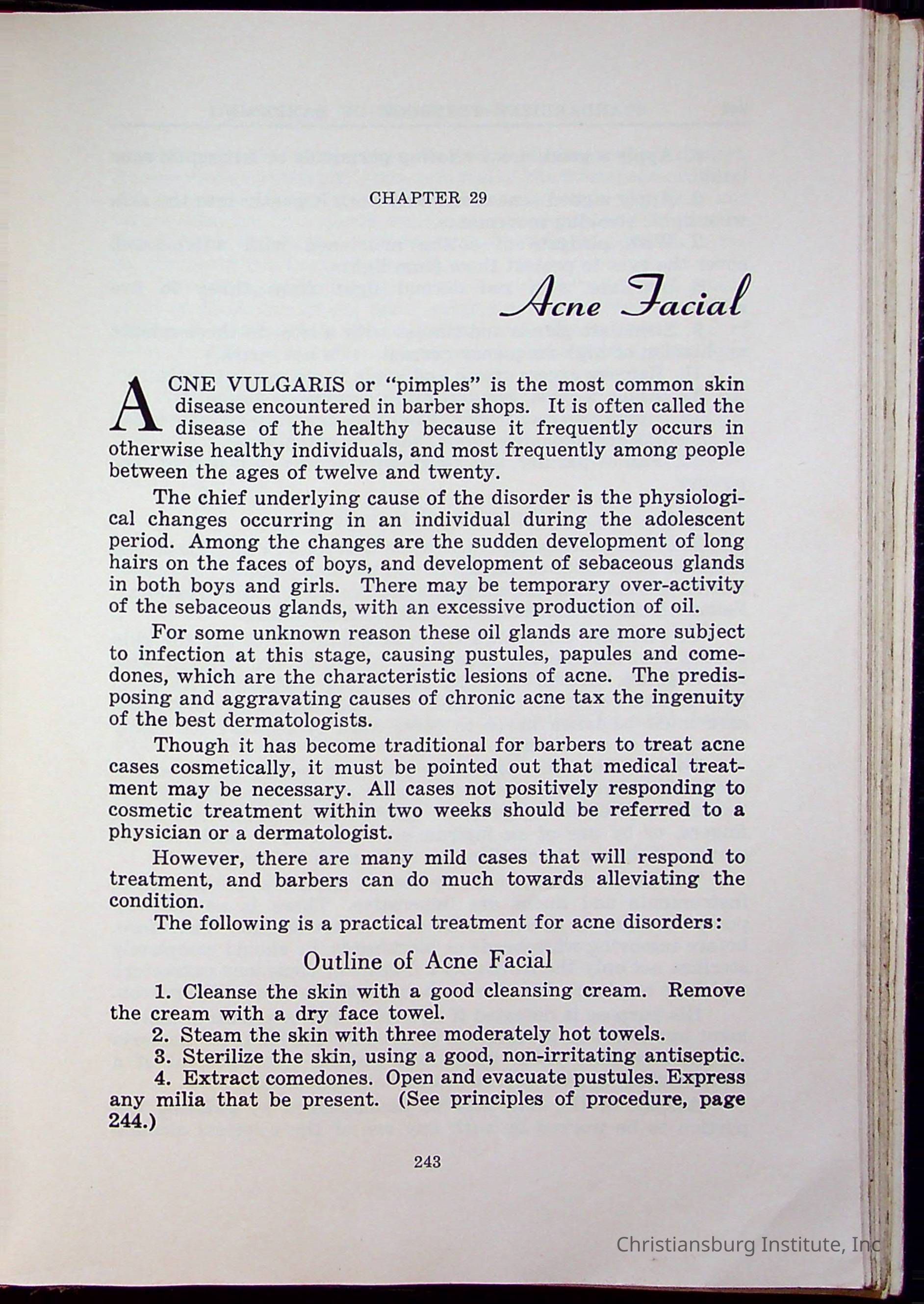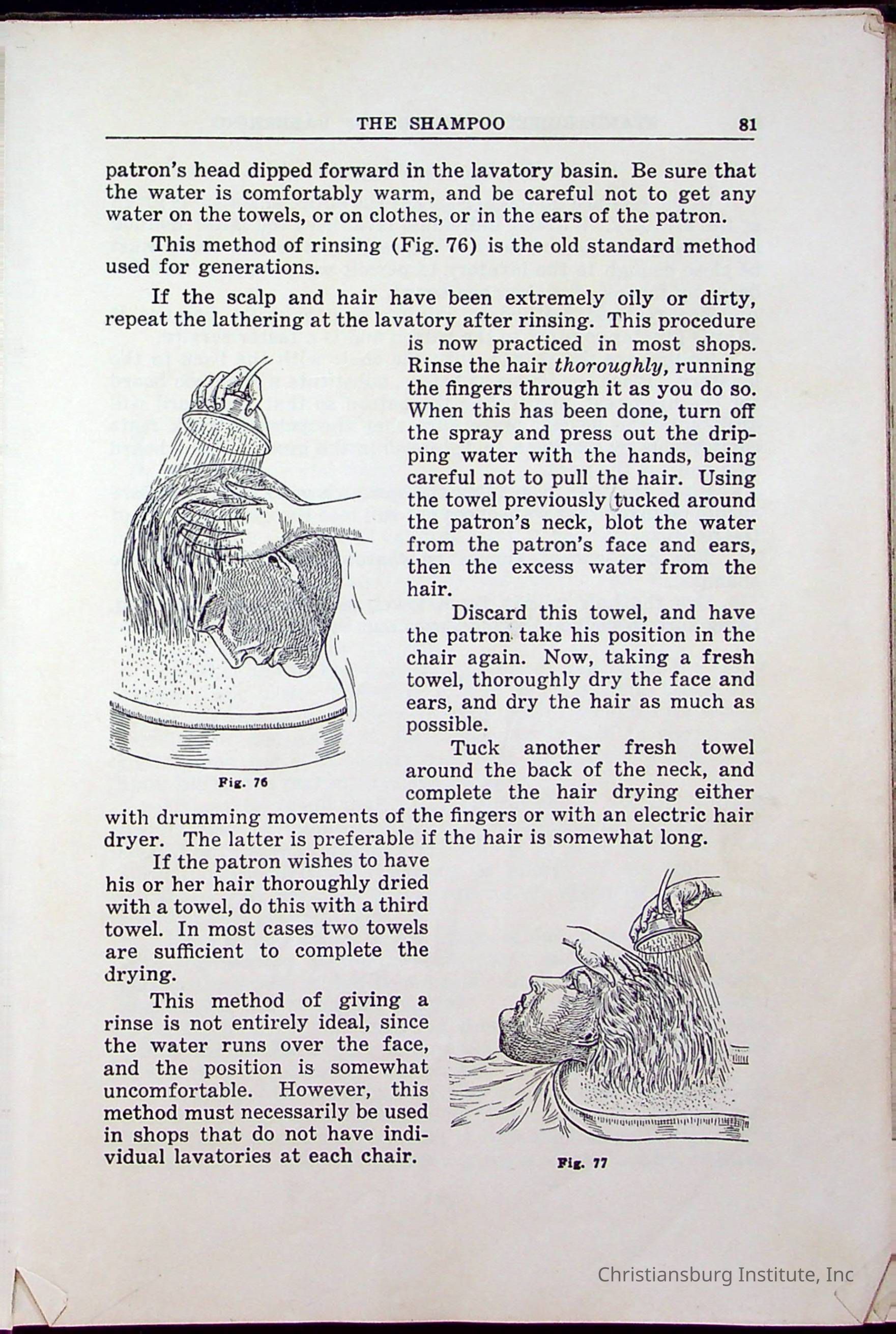 "Standardized Textbook of Barbering: in Two Parts" written and published by the Associated Master Barbers and Beauticians of America in the year 1950. This textbook was in the Christiansburg Institute library.