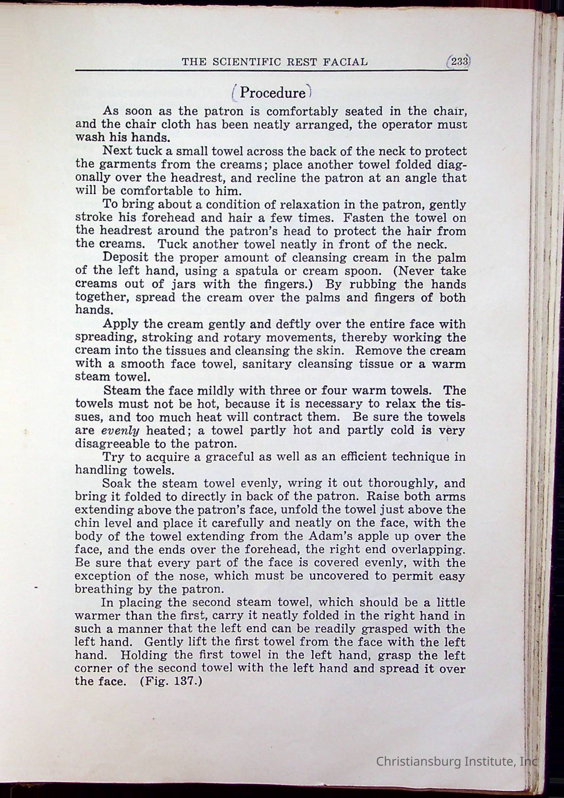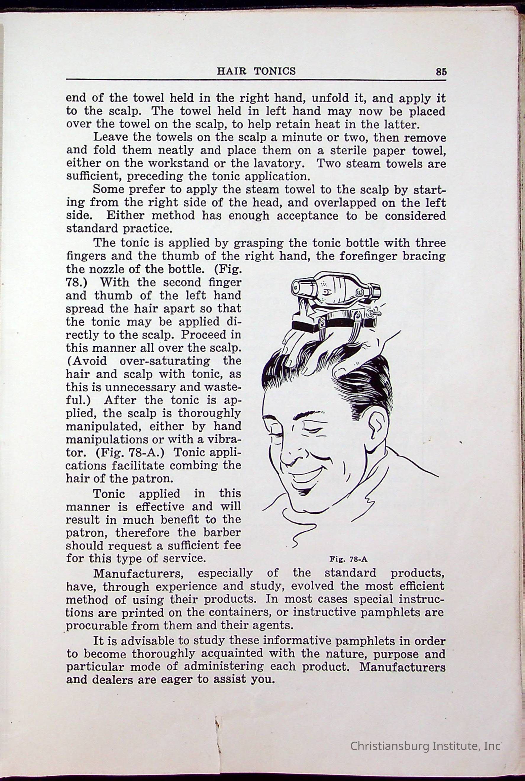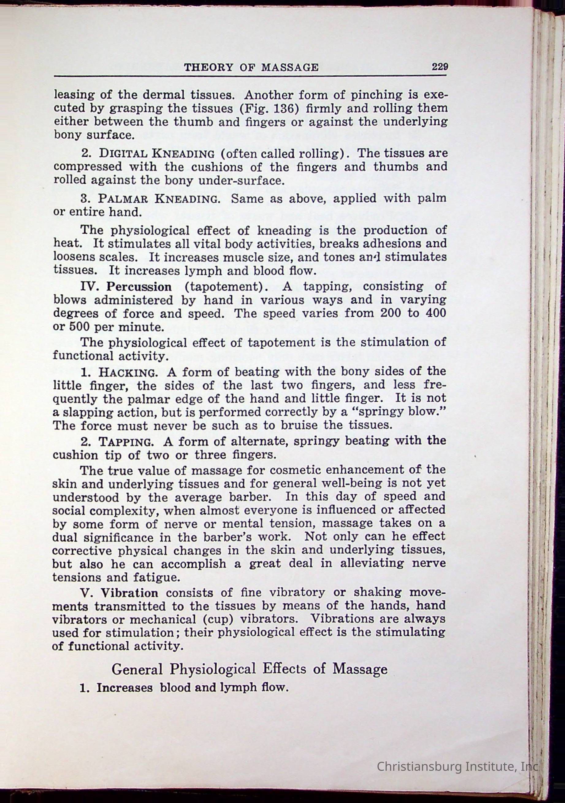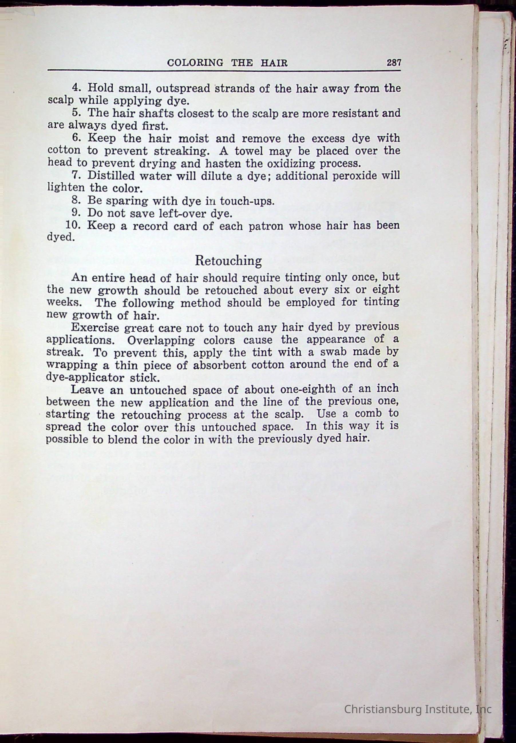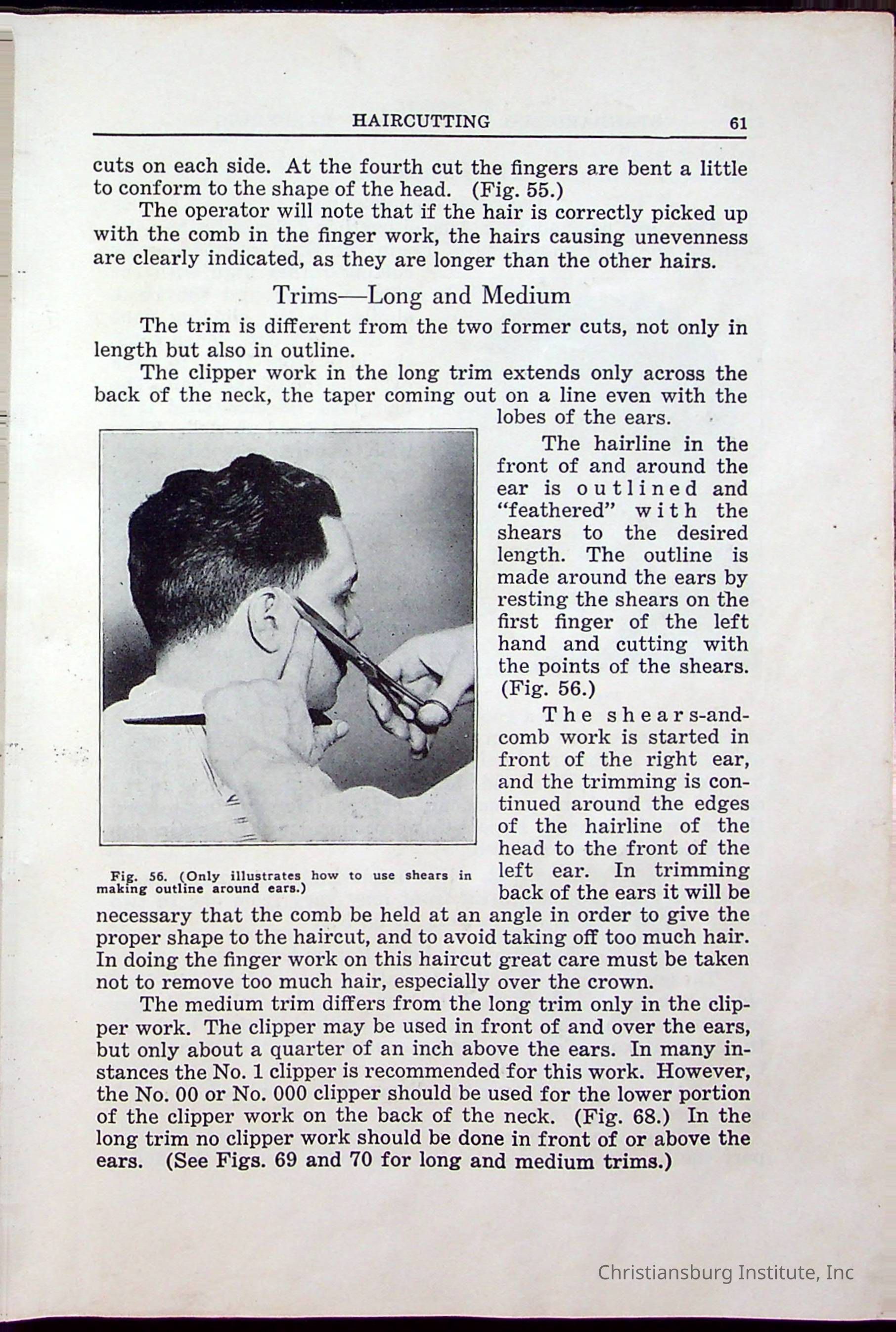 "Standardized Textbook of Barbering: in Two Parts" written and published by the Associated Master Barbers and Beauticians of America in the year 1950. This textbook was in the Christiansburg Institute library.