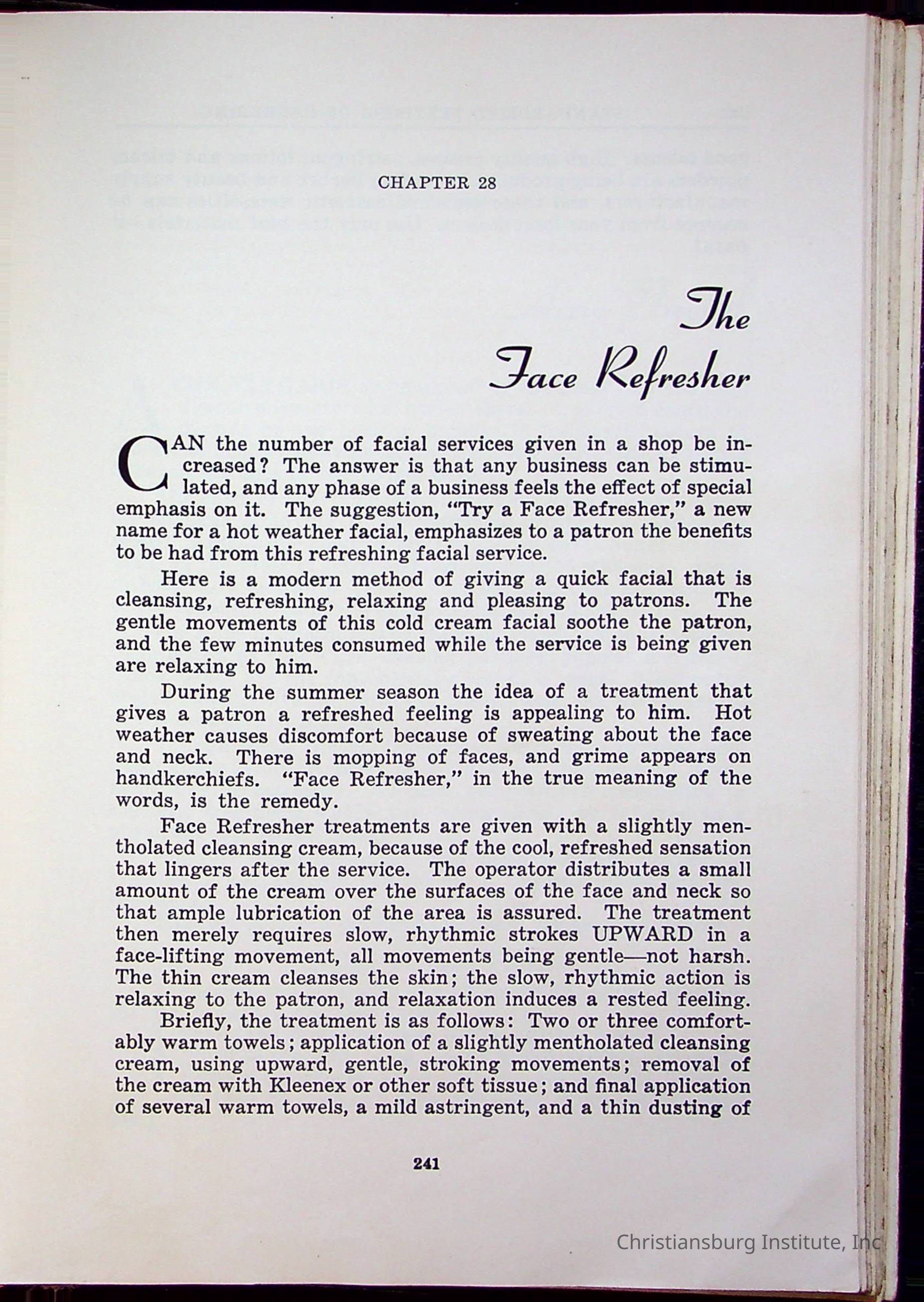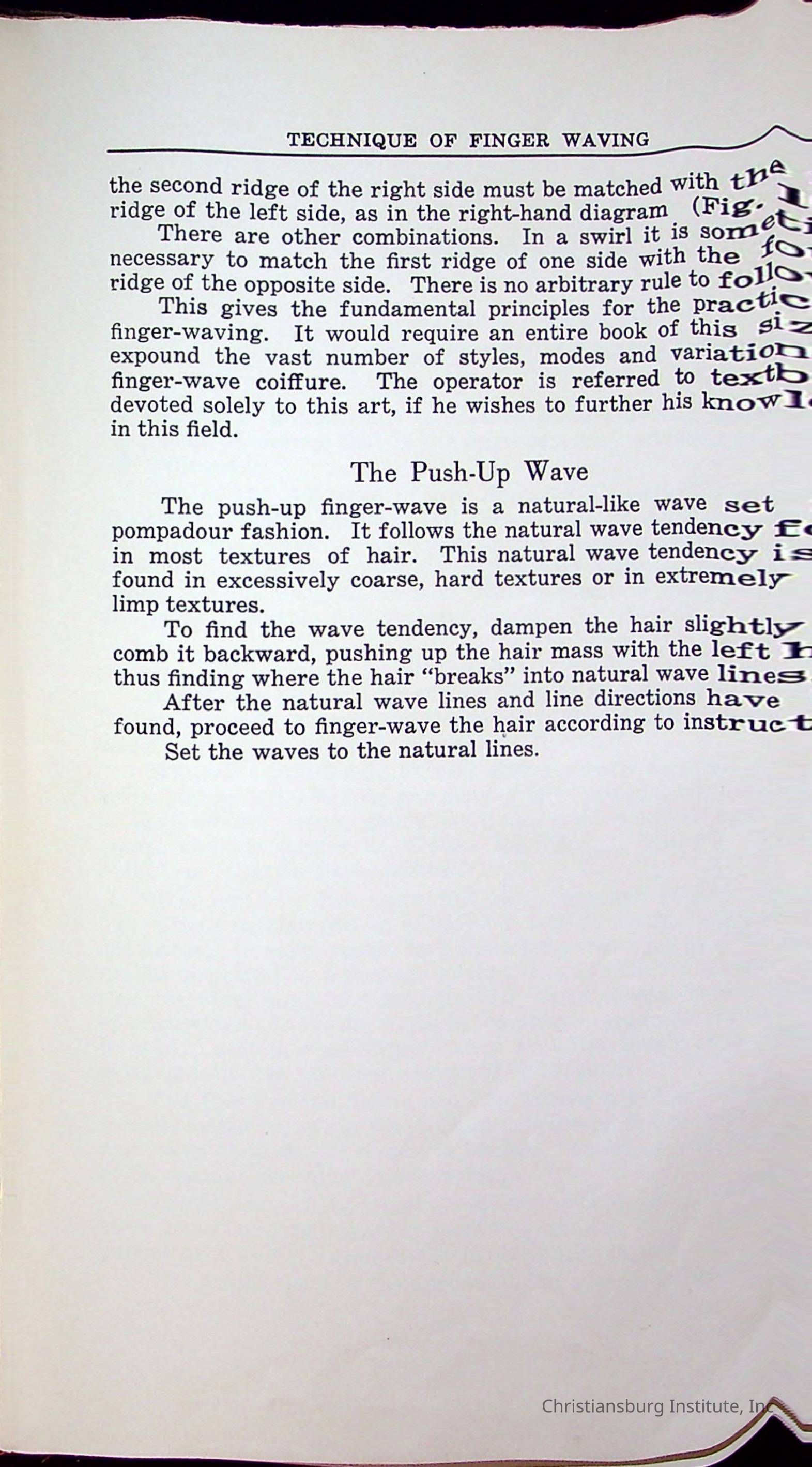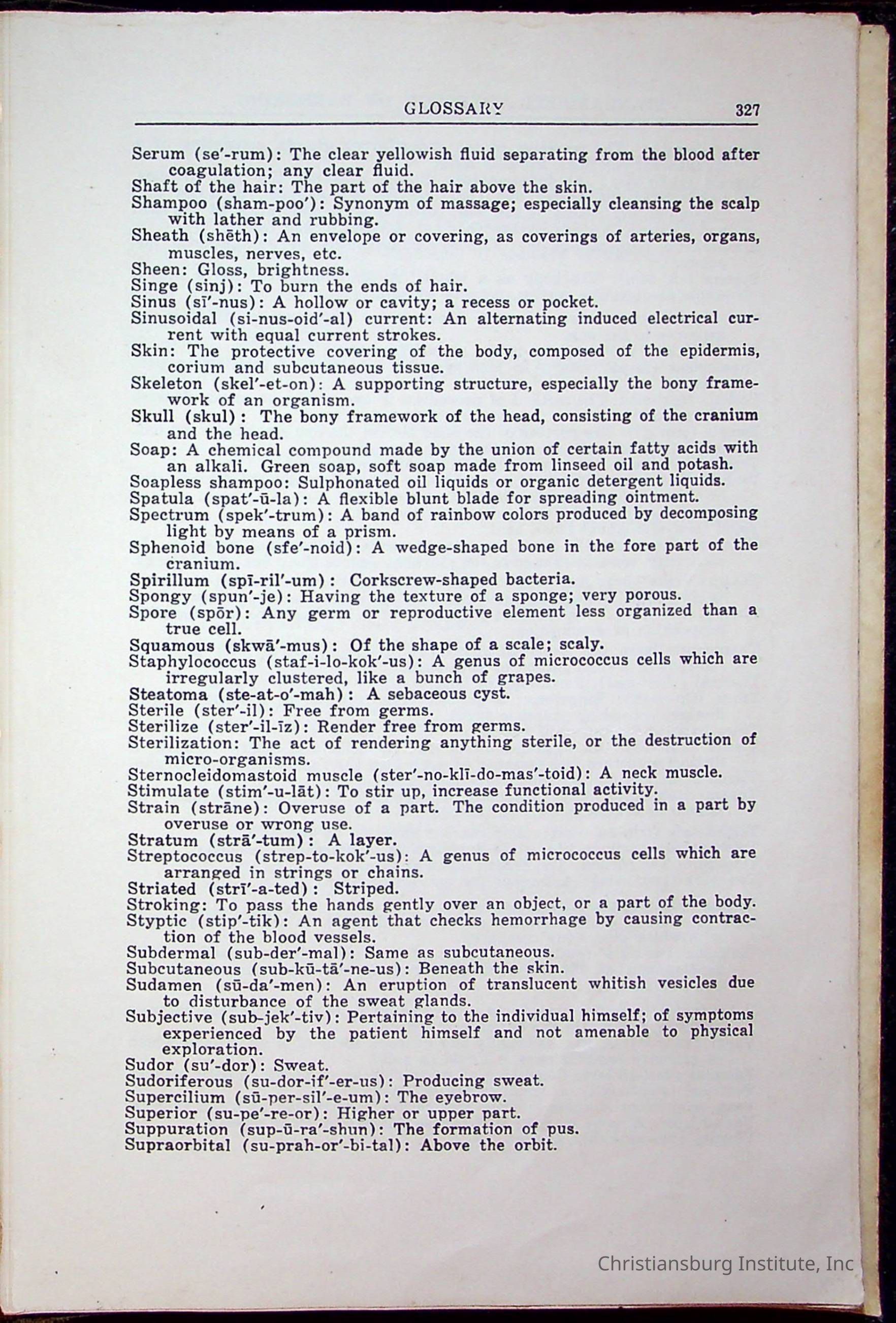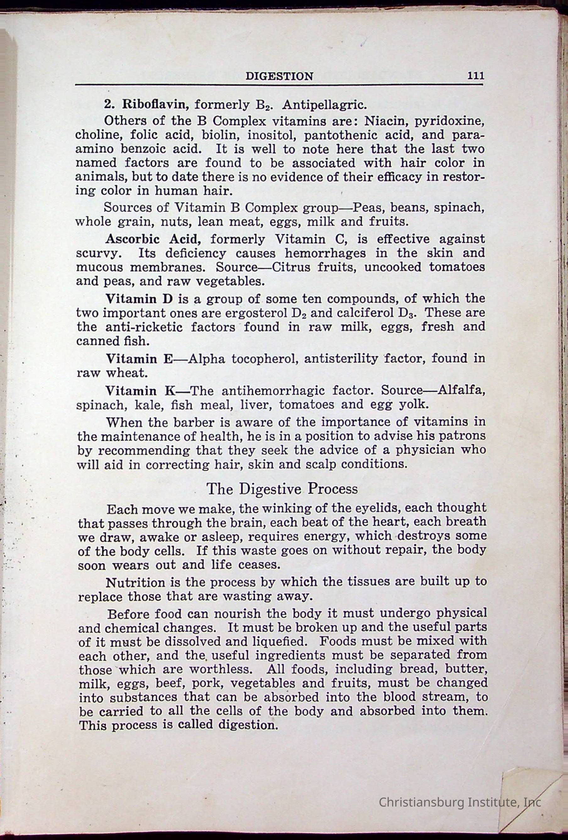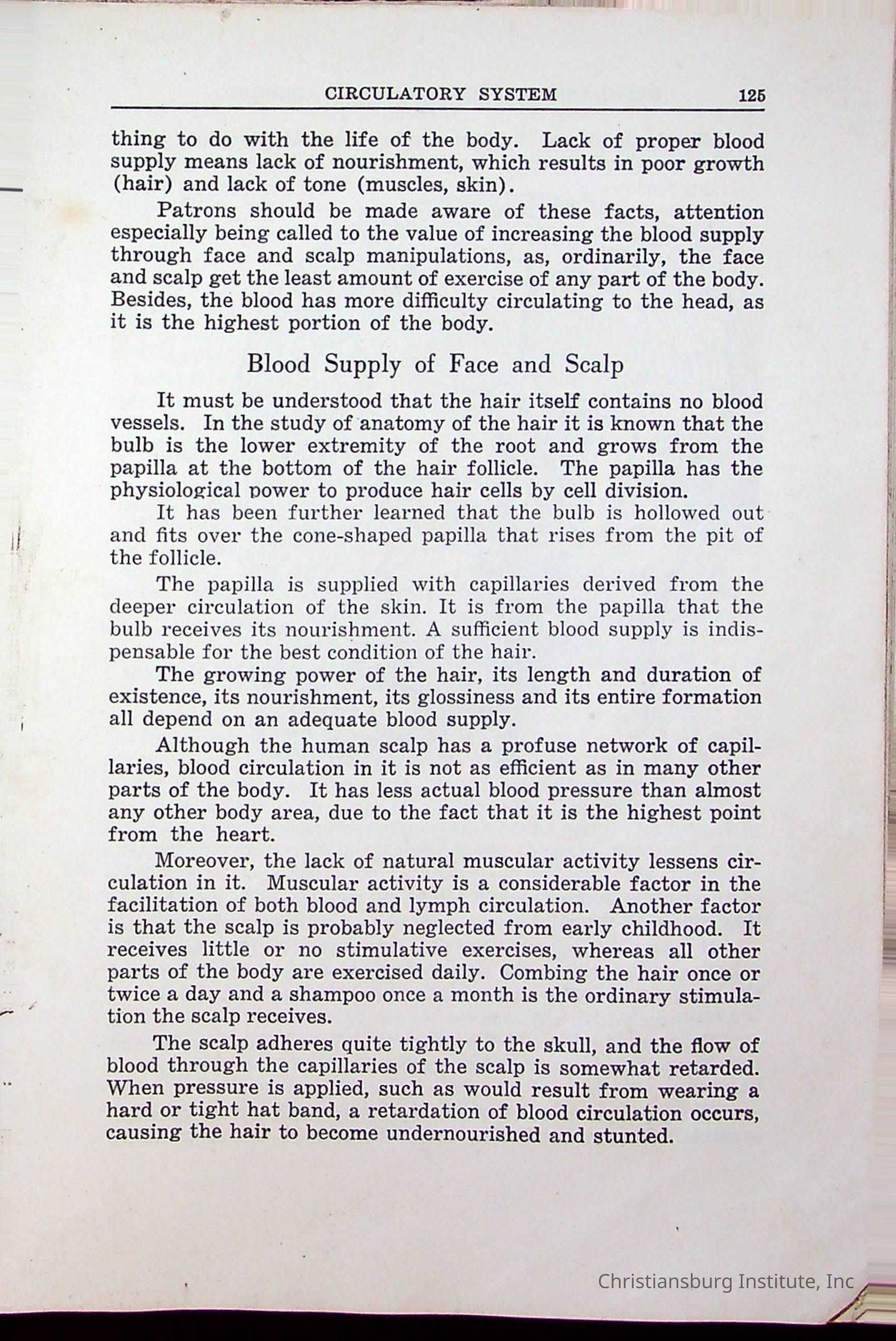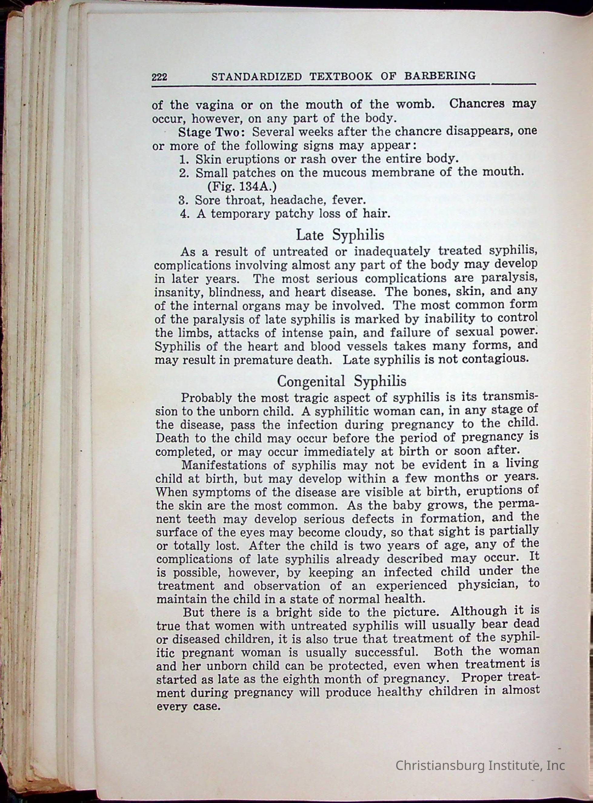 "Standardized Textbook of Barbering: in Two Parts" written and published by the Associated Master Barbers and Beauticians of America in the year 1950. This textbook was in the Christiansburg Institute library.