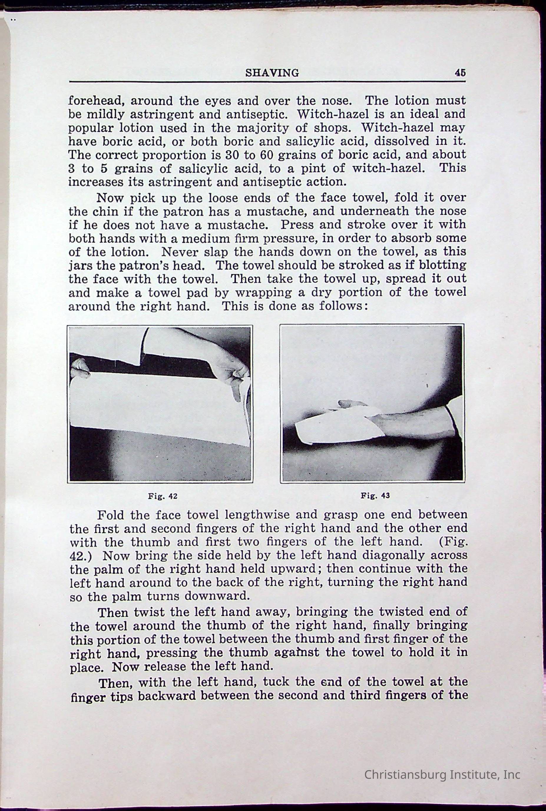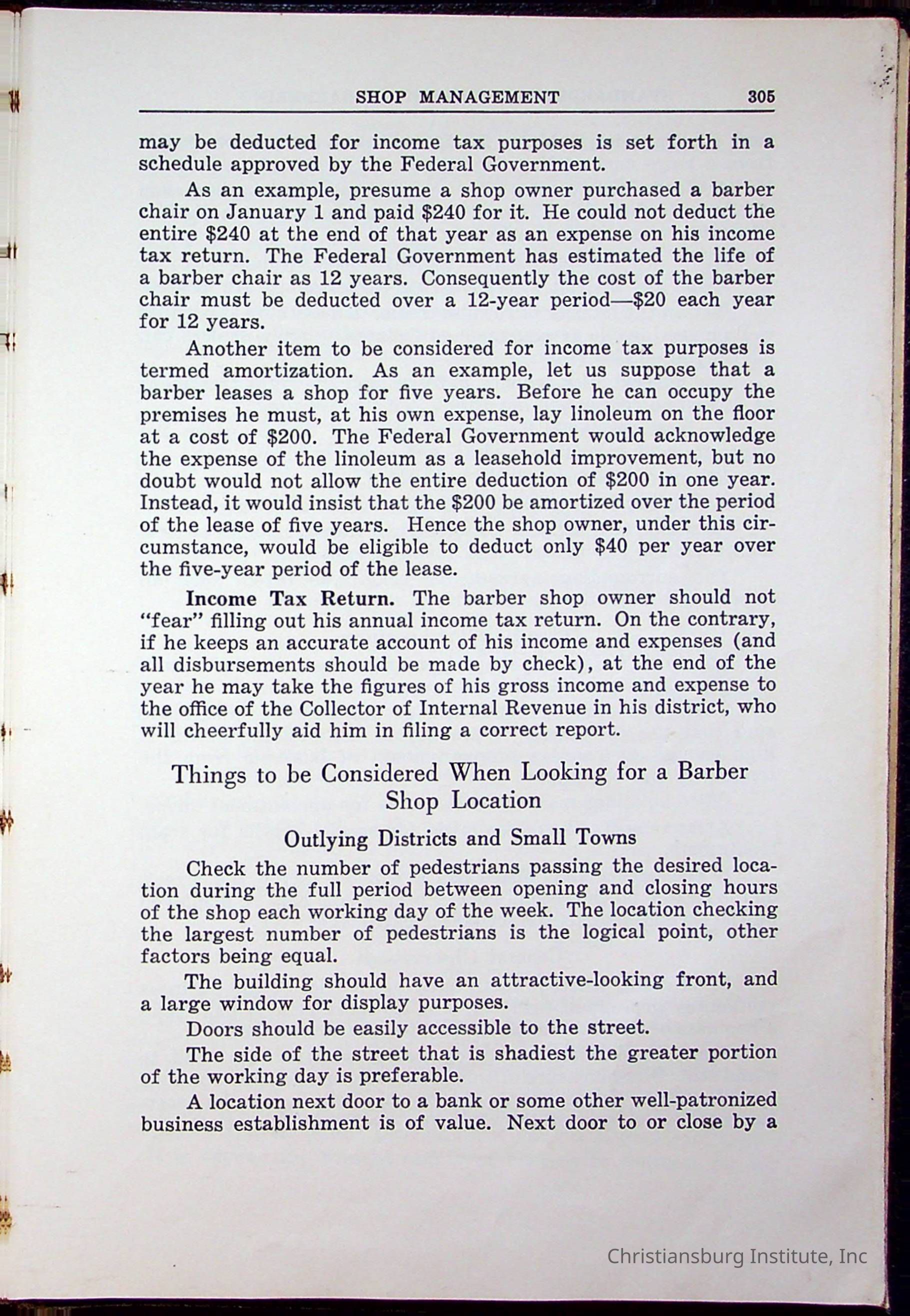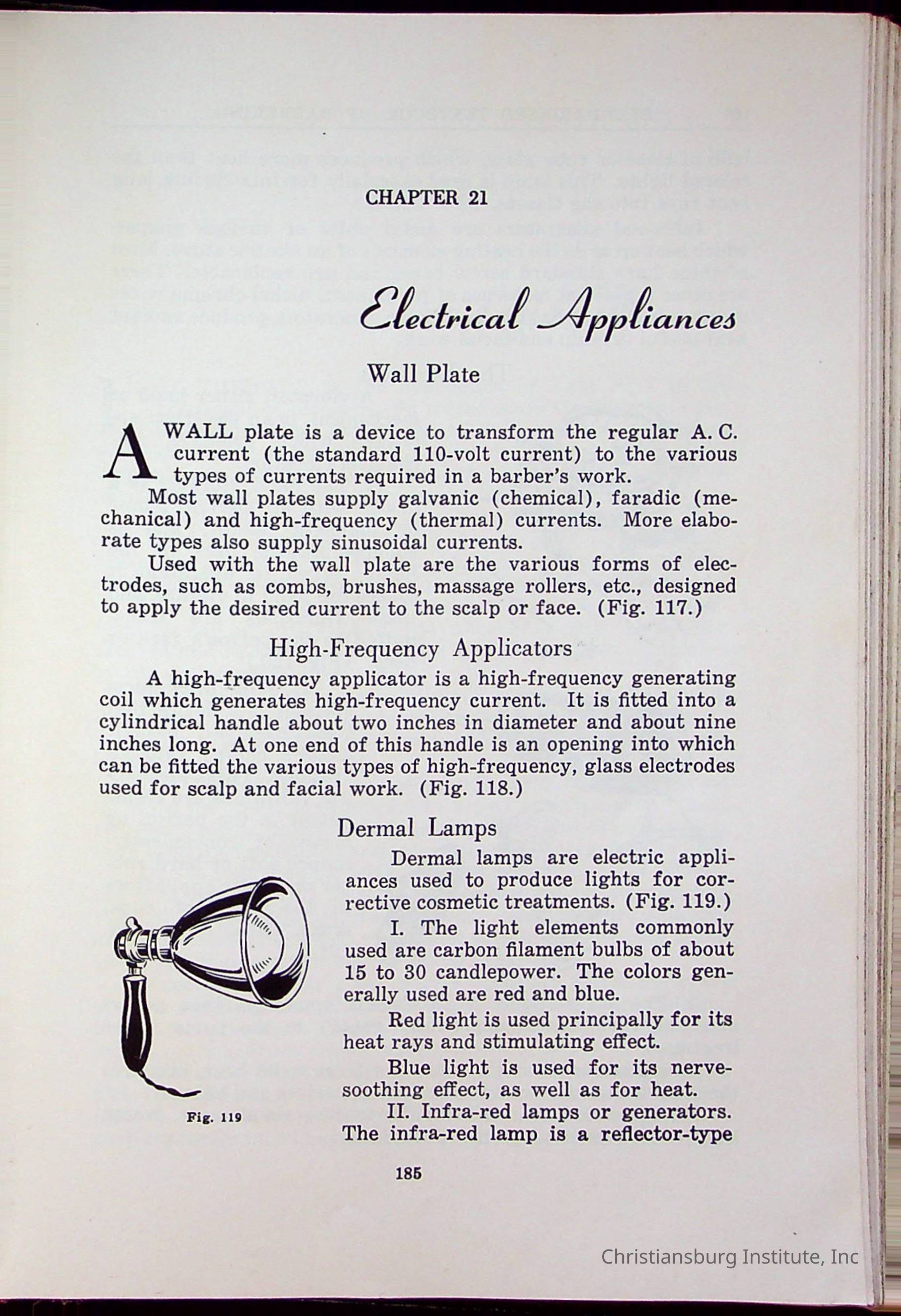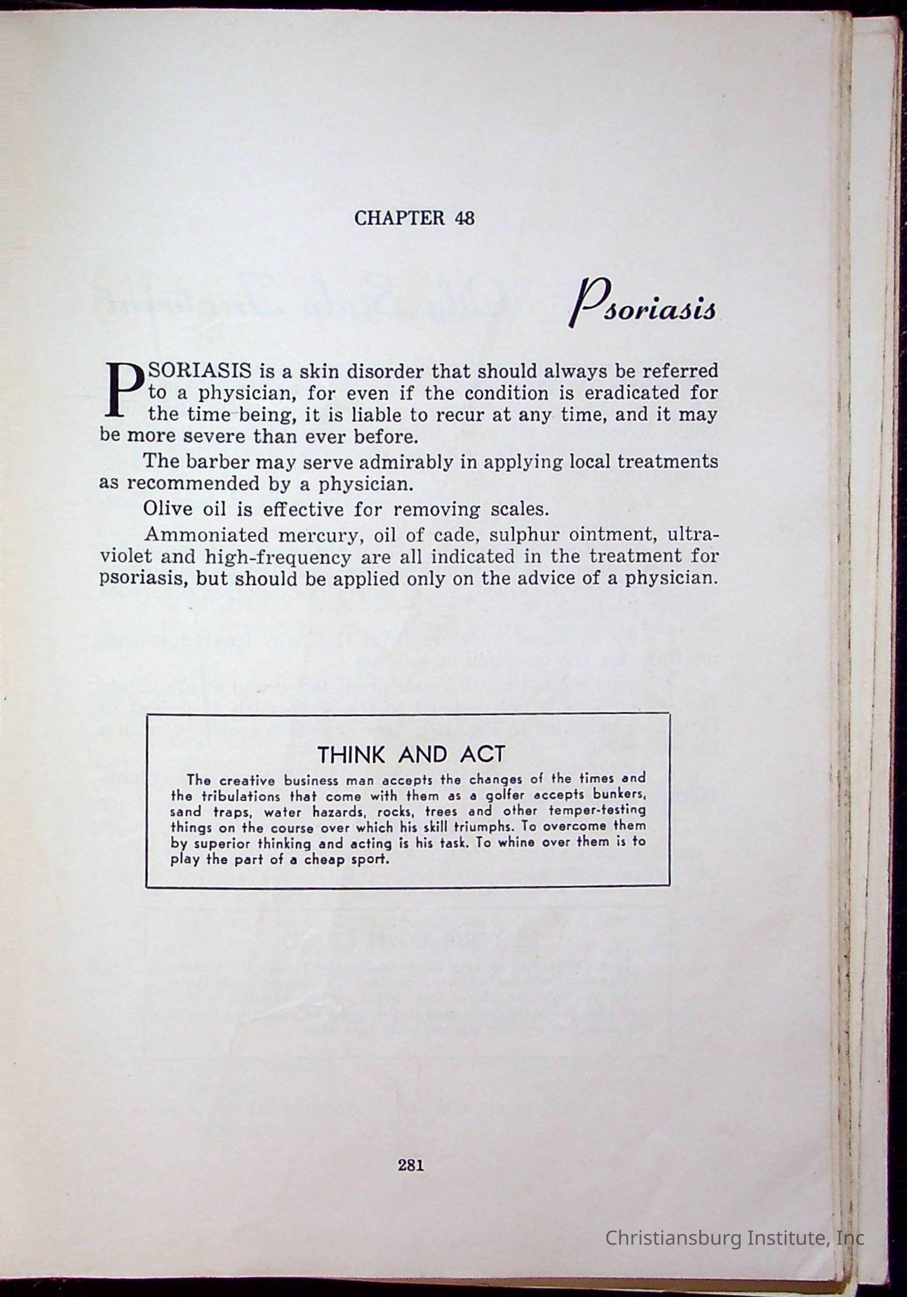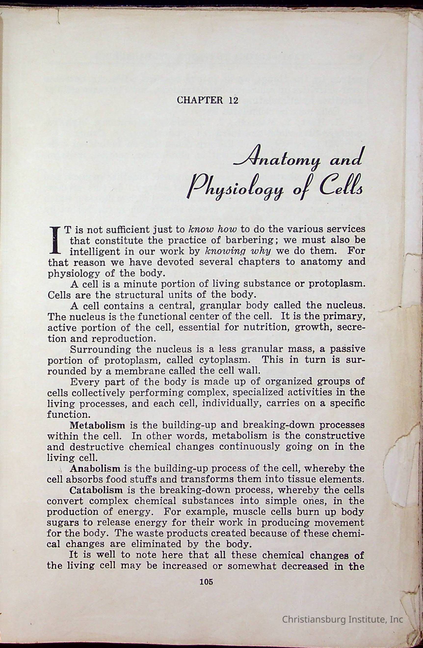 "Standardized Textbook of Barbering: in Two Parts" written and published by the Associated Master Barbers and Beauticians of America in the year 1950. This textbook was in the Christiansburg Institute library.