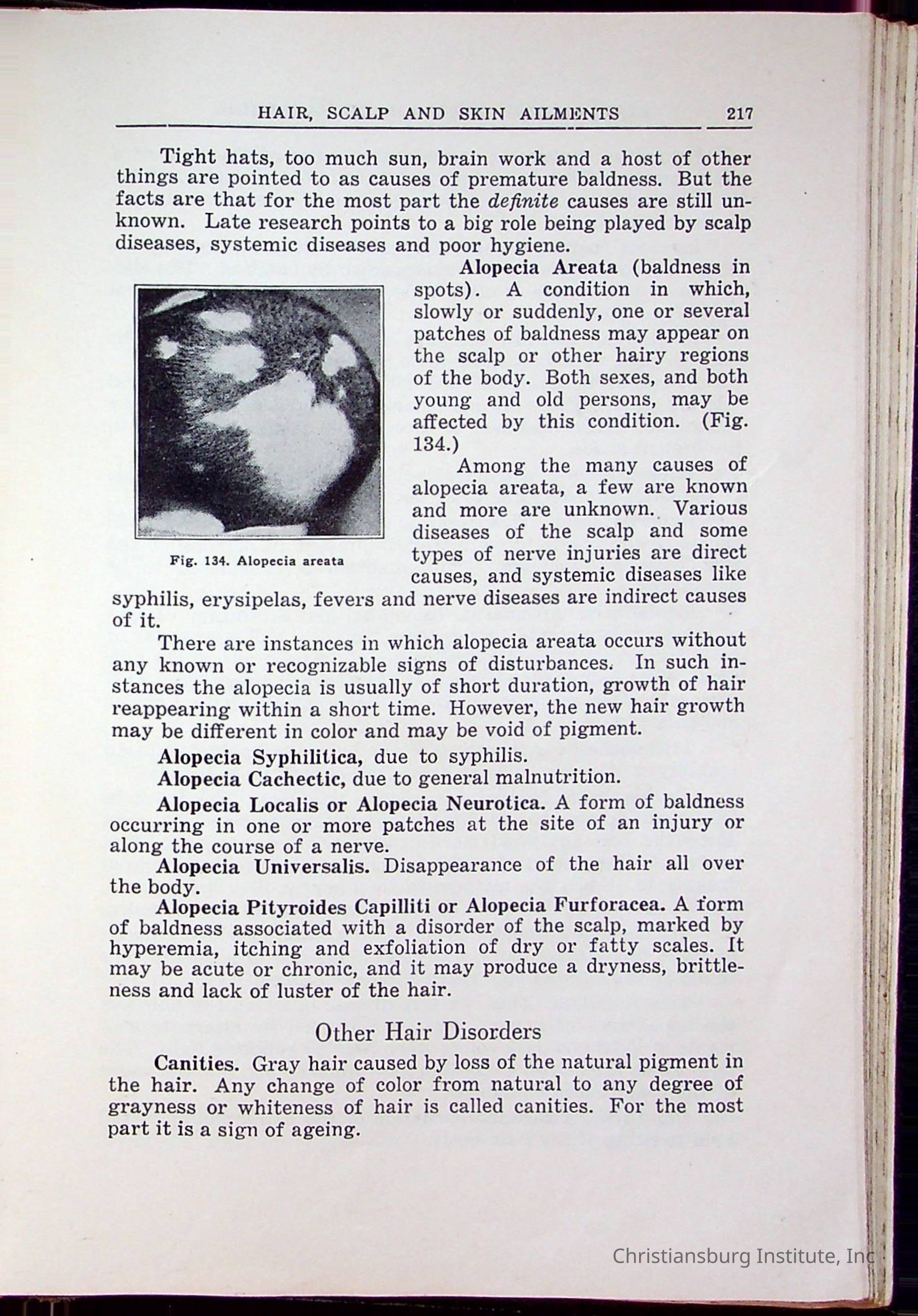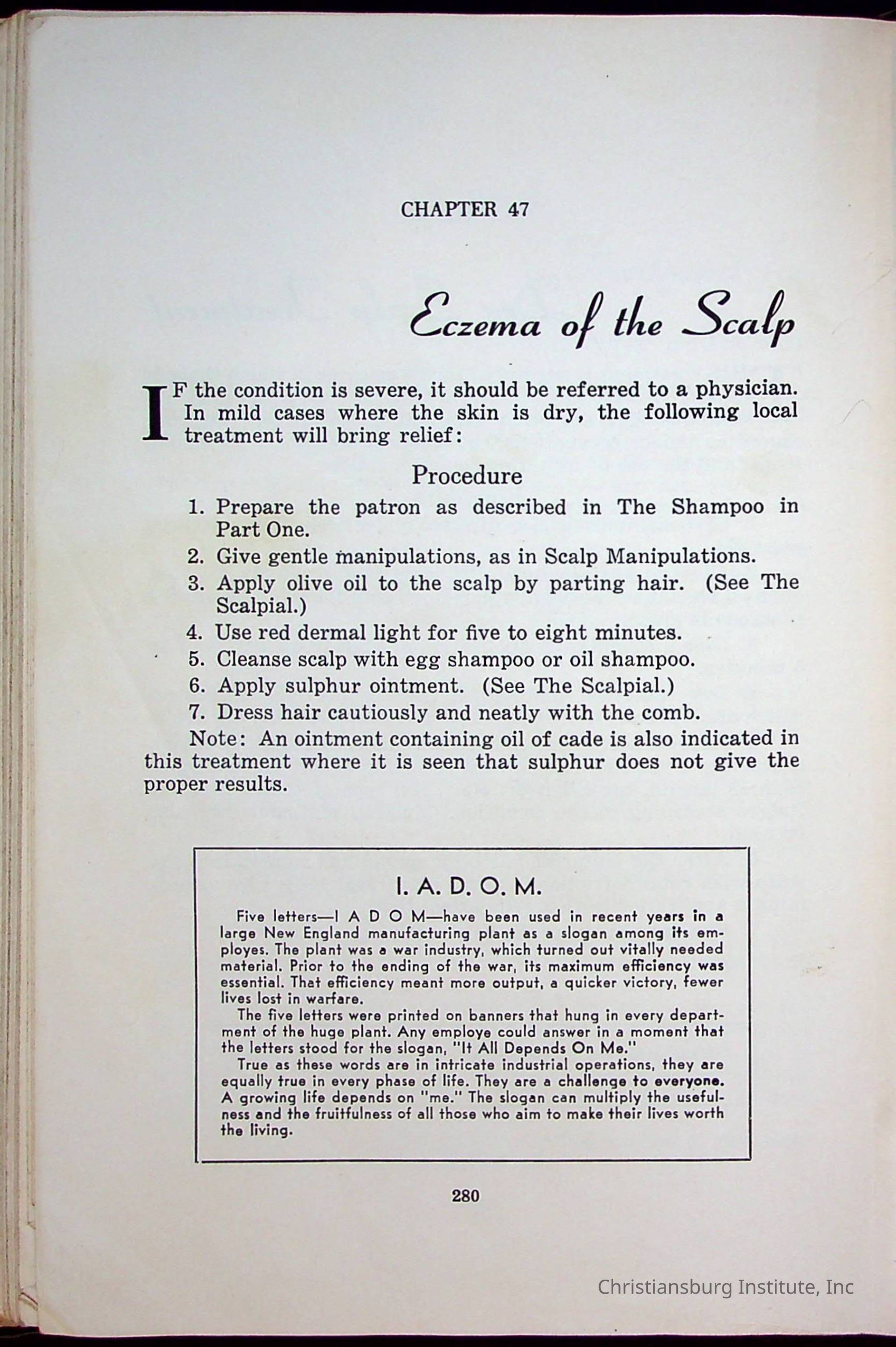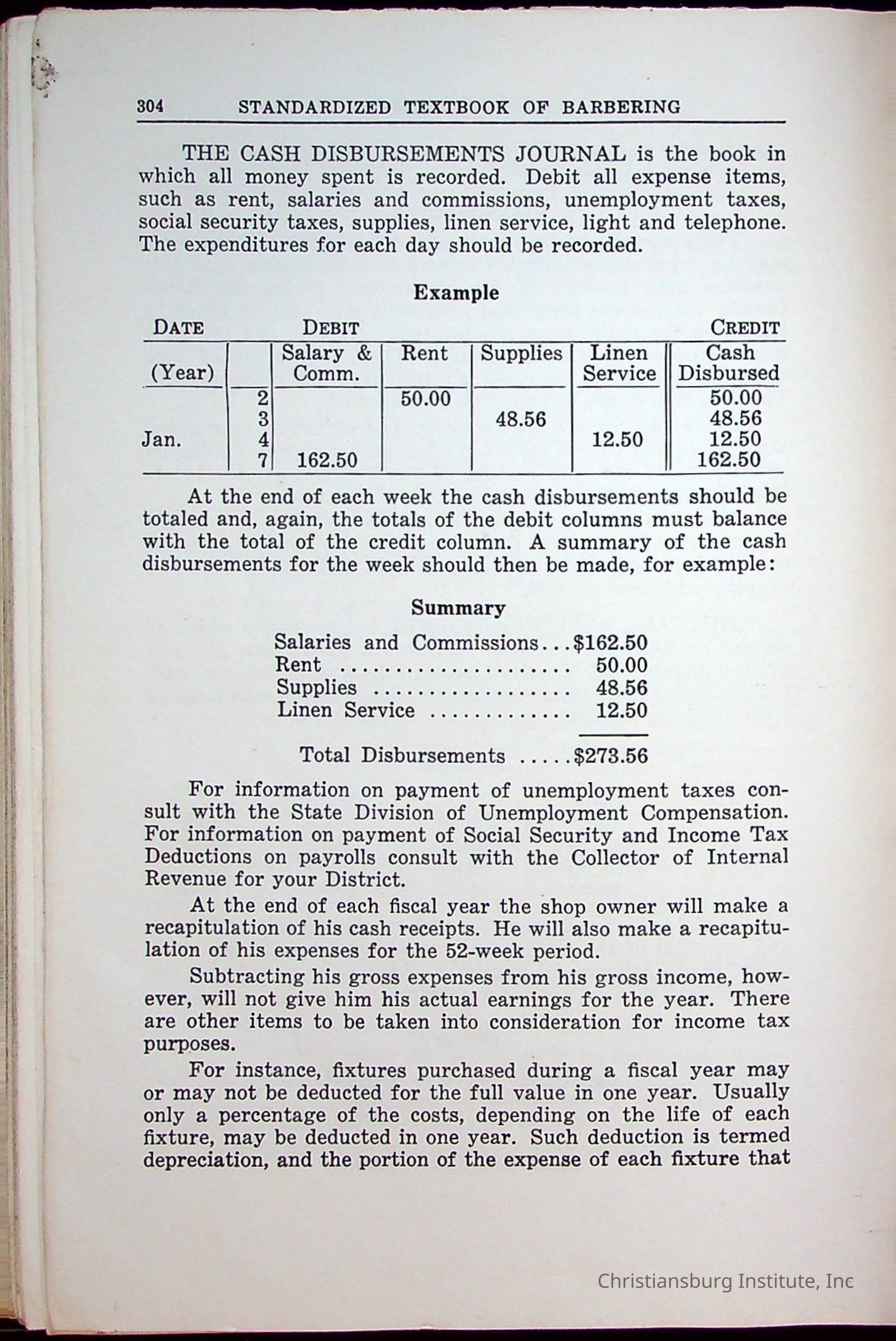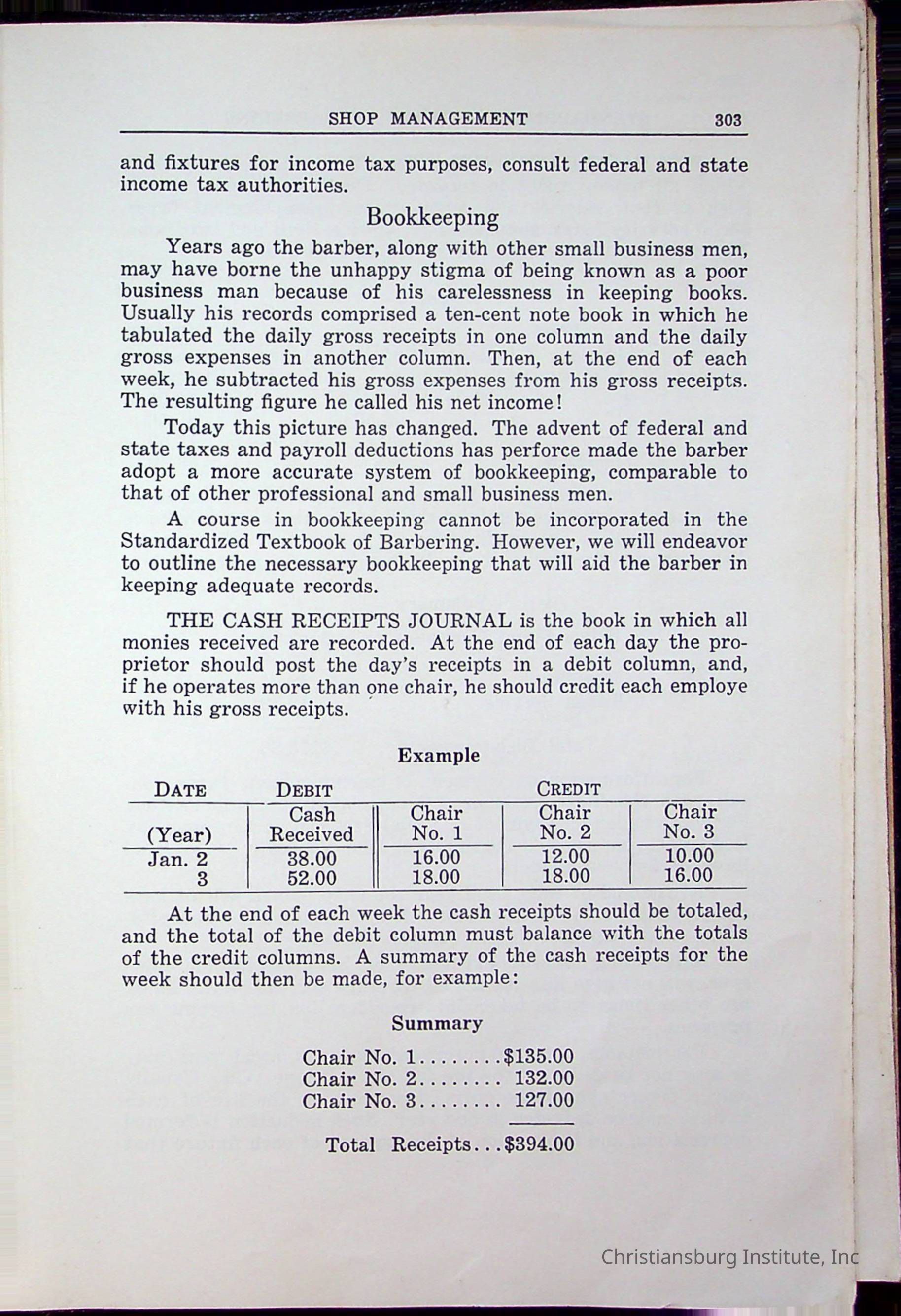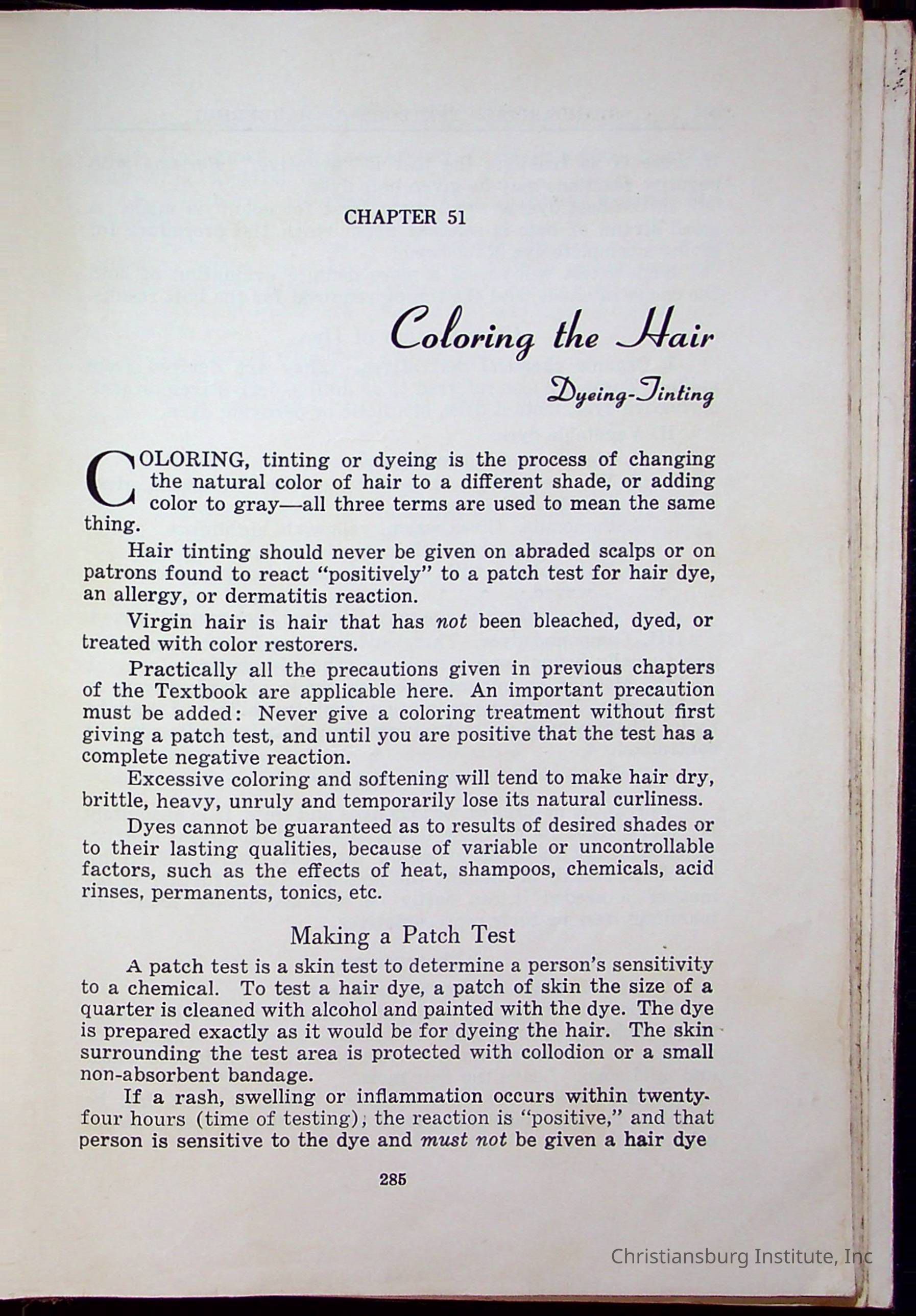 "Standardized Textbook of Barbering: in Two Parts" written and published by the Associated Master Barbers and Beauticians of America in the year 1950. This textbook was in the Christiansburg Institute library.