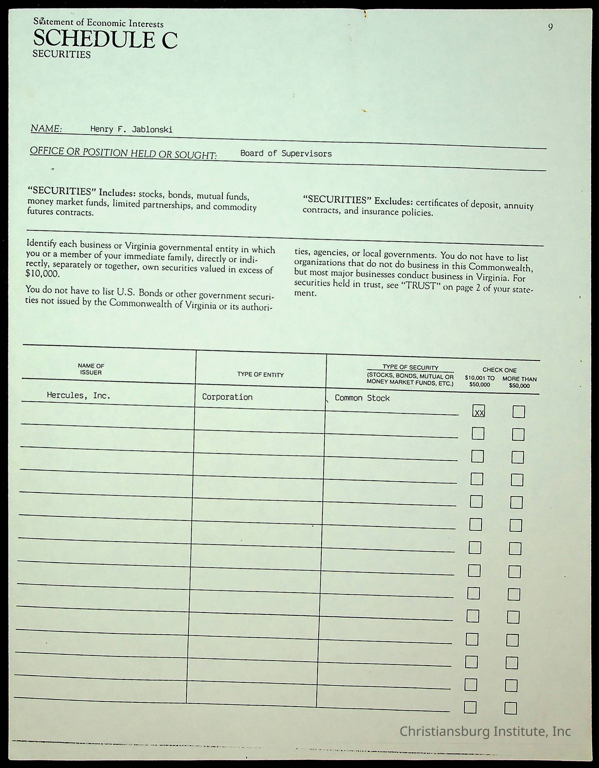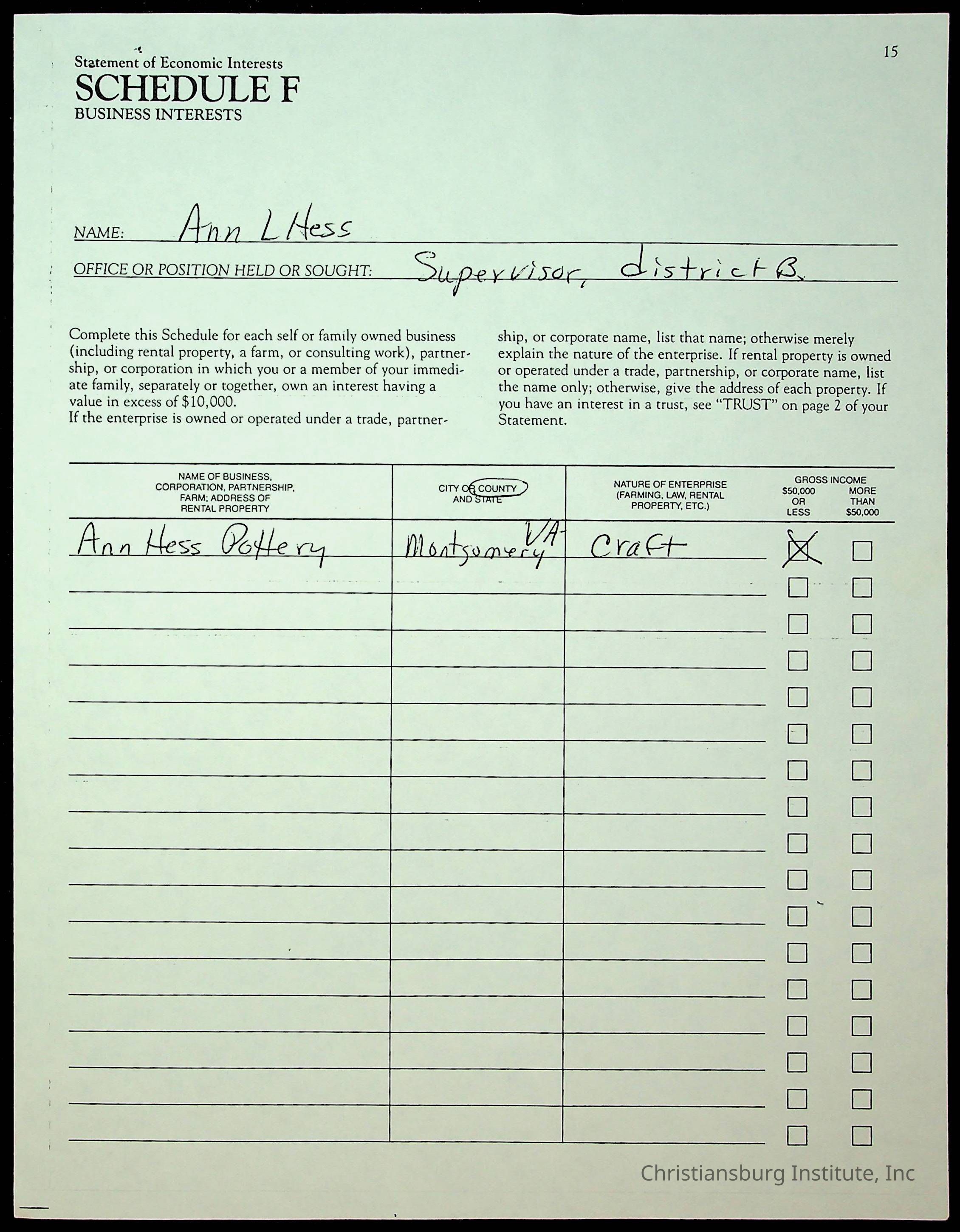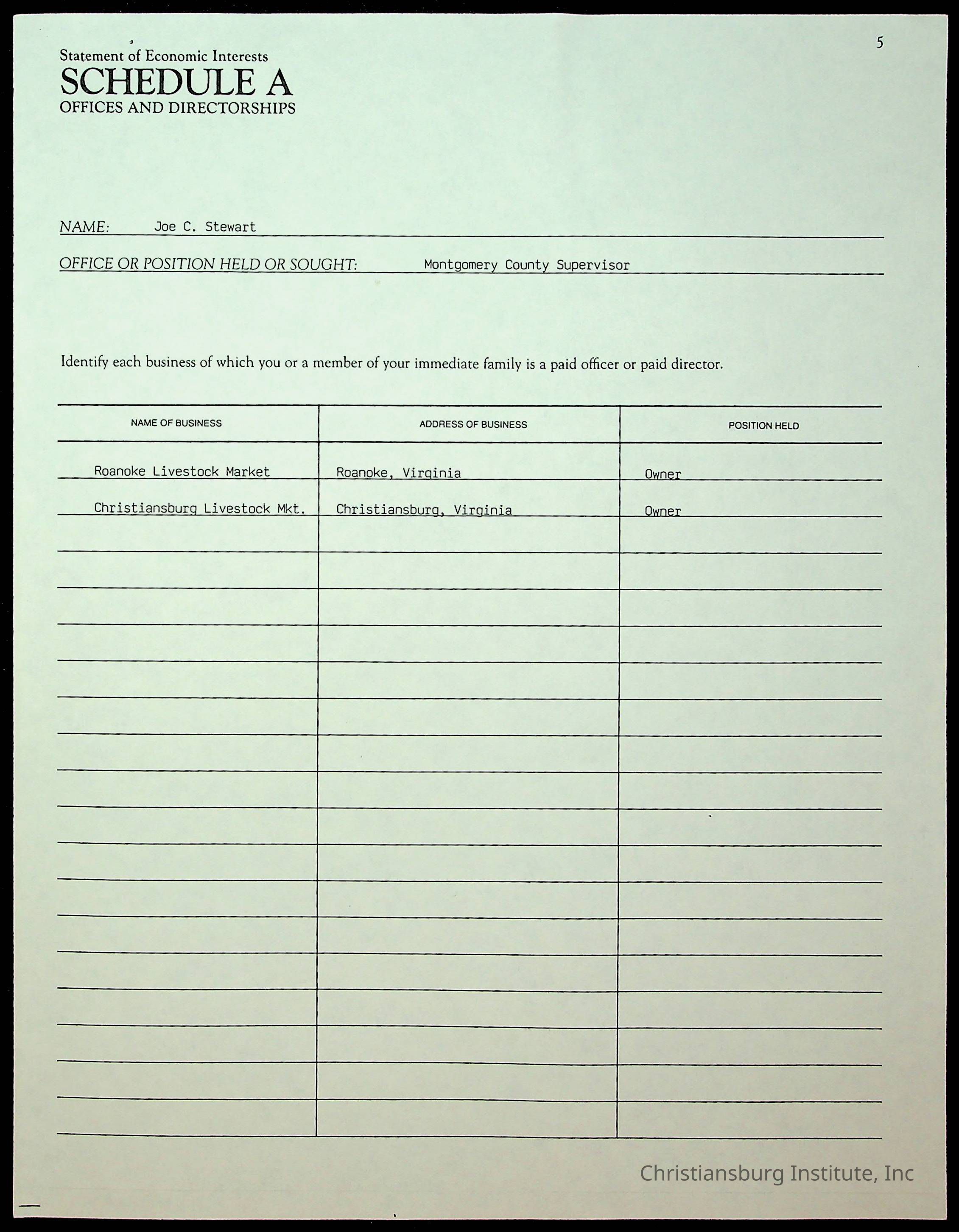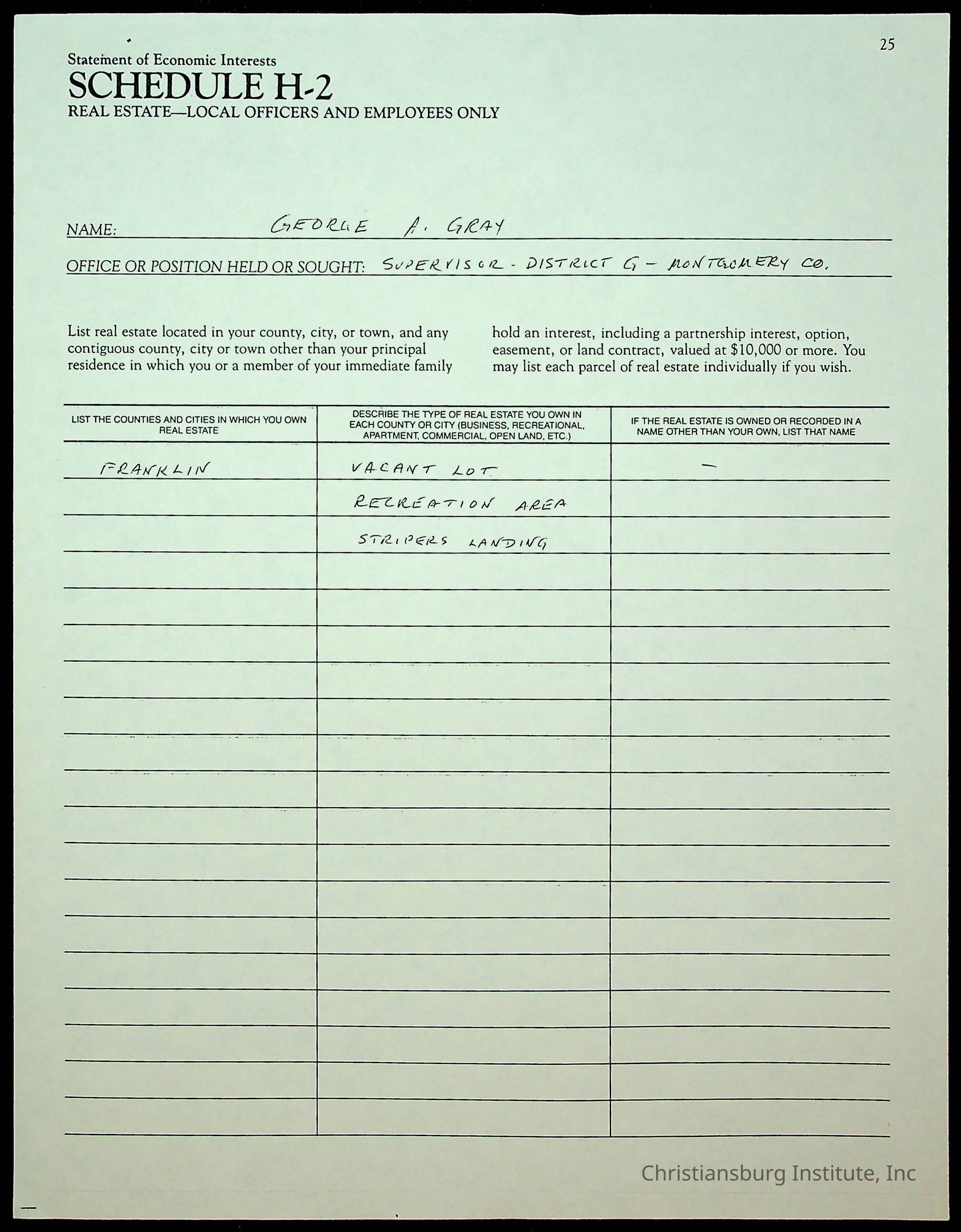 A series of statements of economic interests from the Montgomery County board of supervisors, undated.