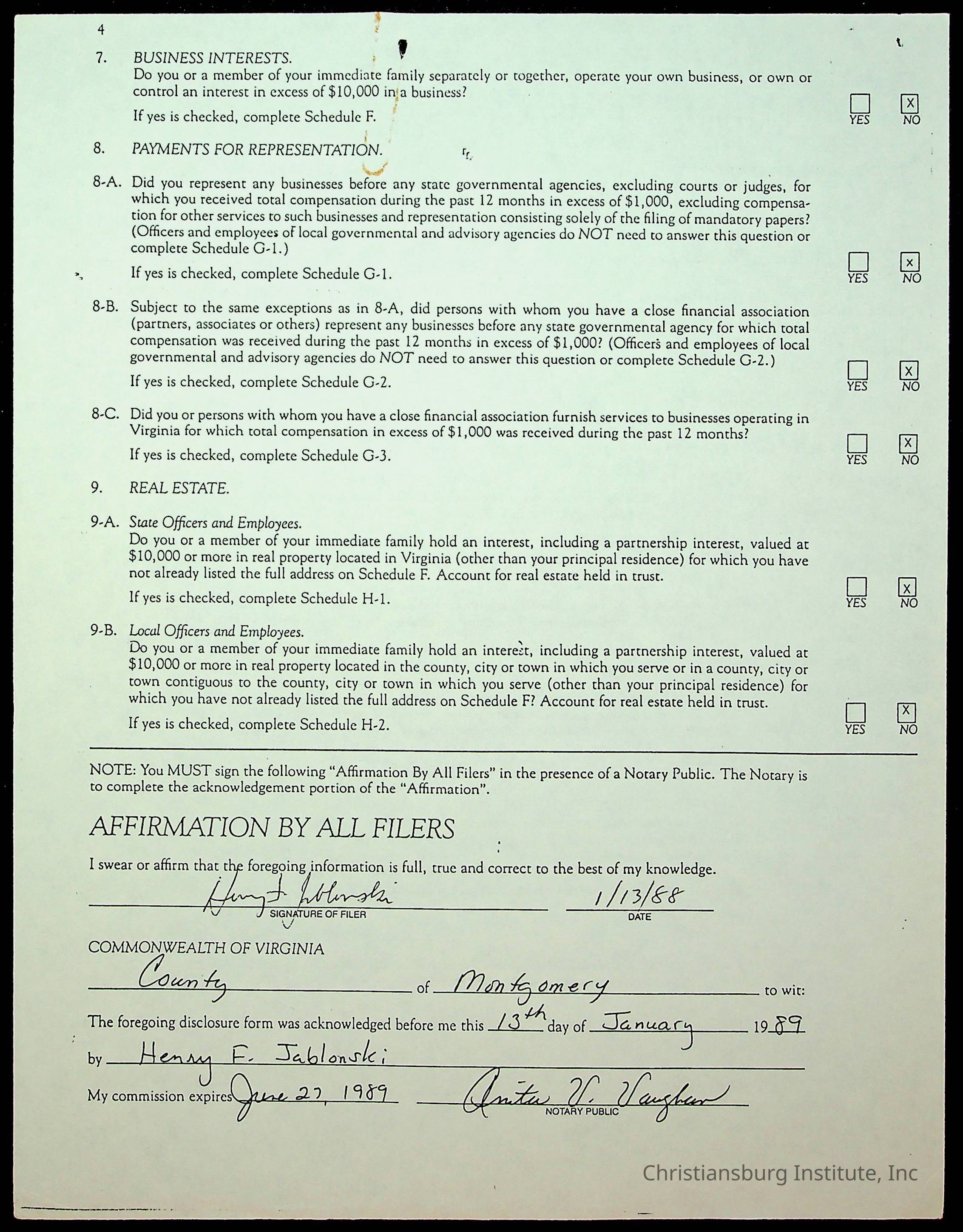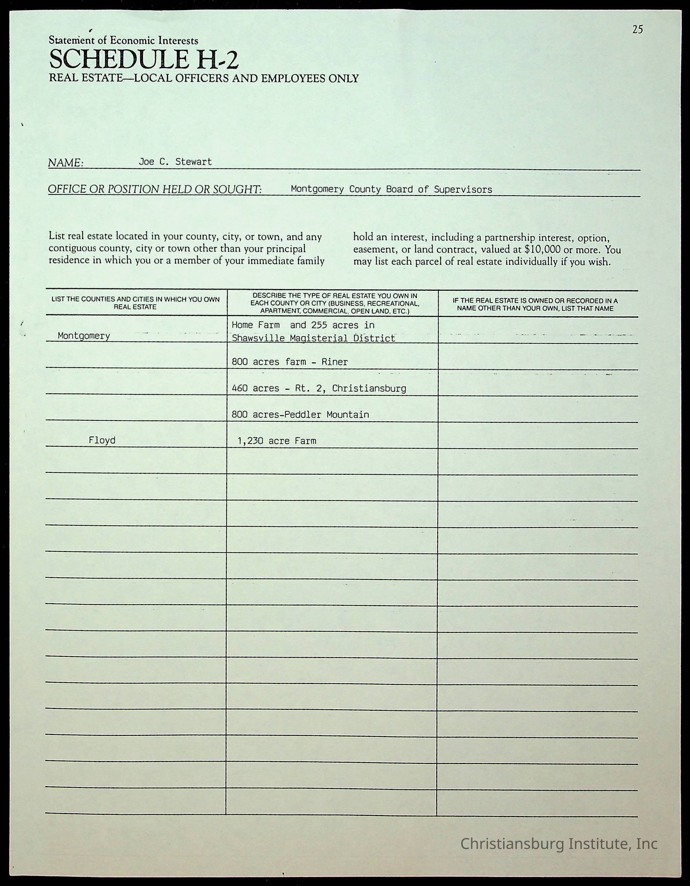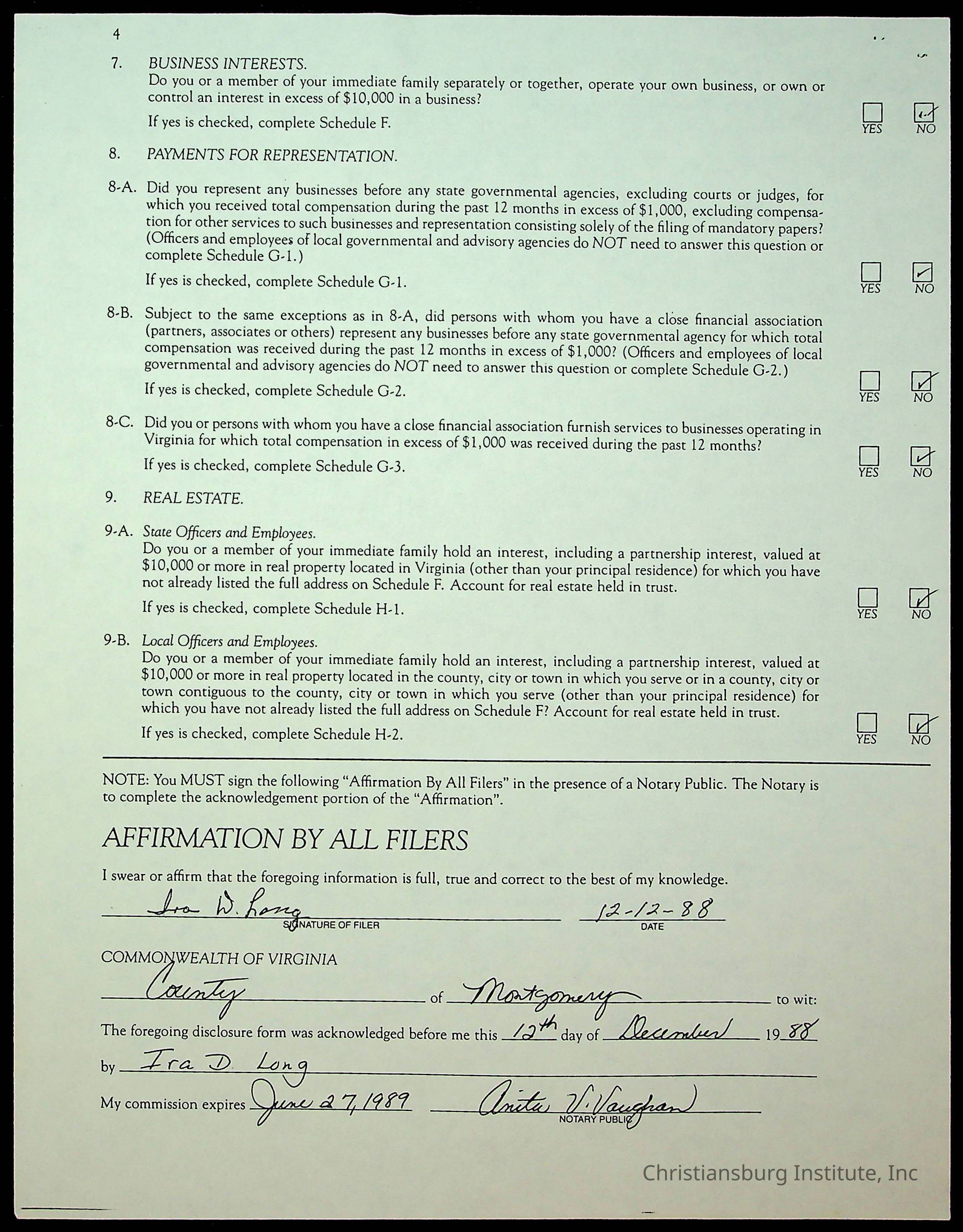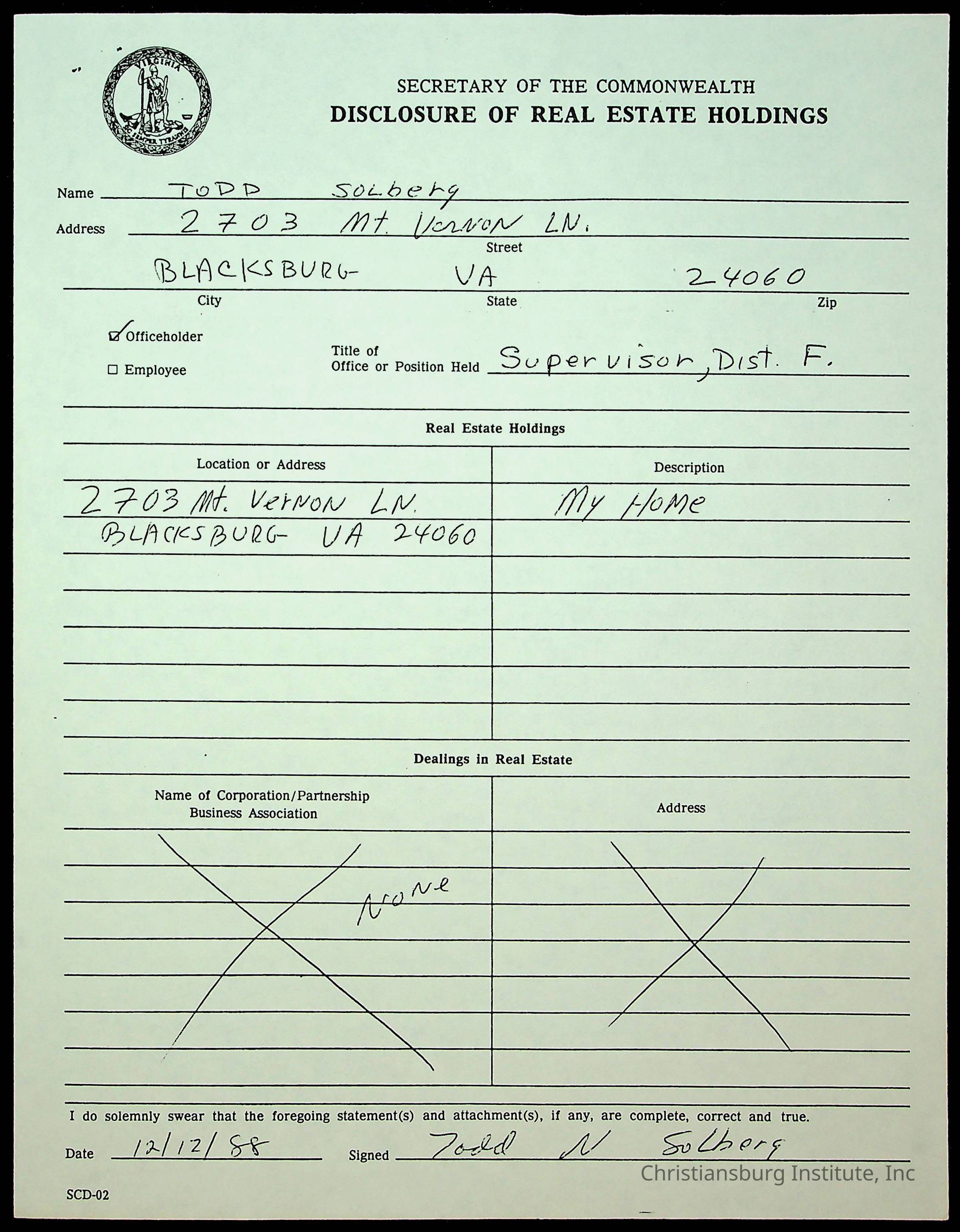 Statements of Economic Interests, Montgomery County Supervisors, 1988