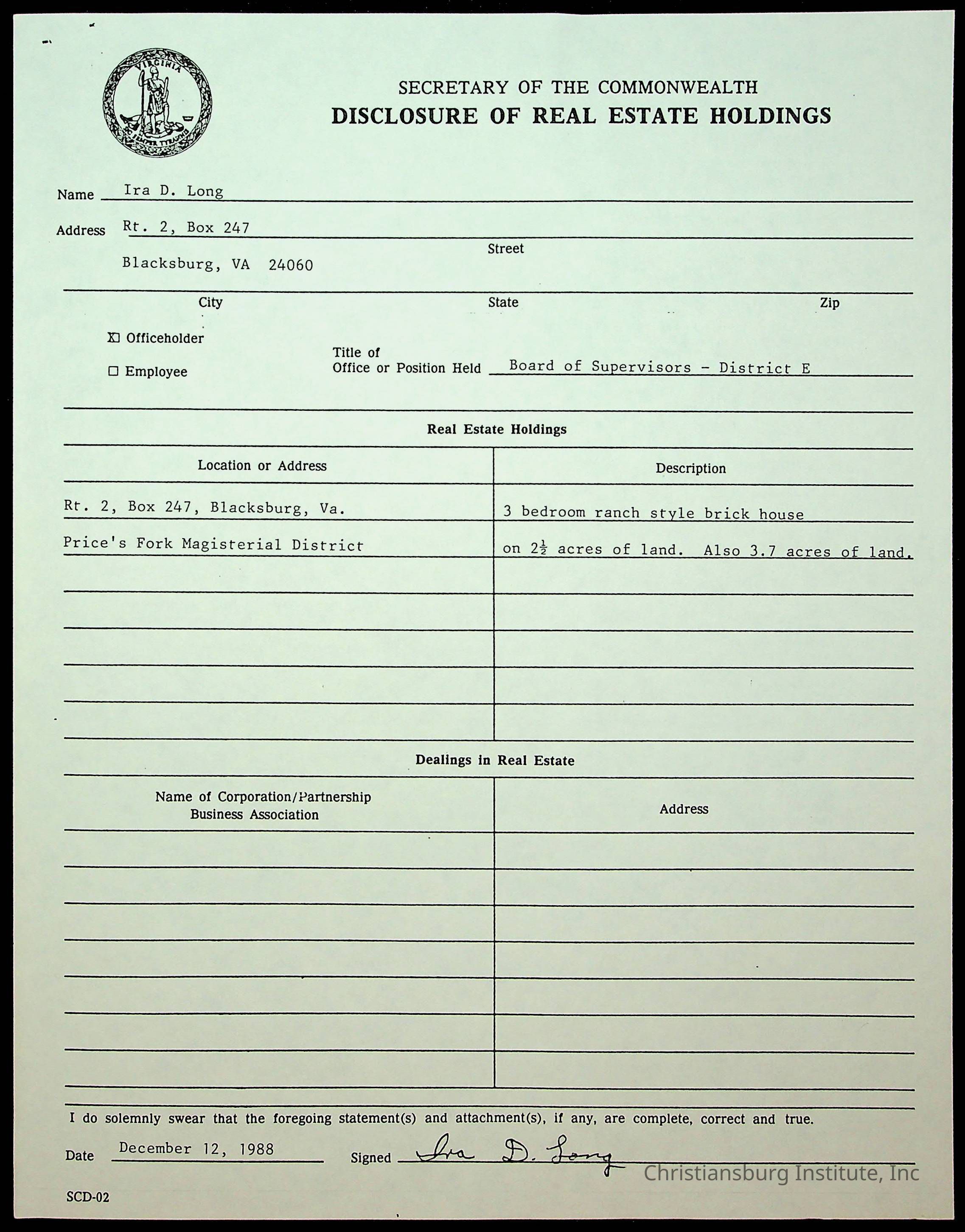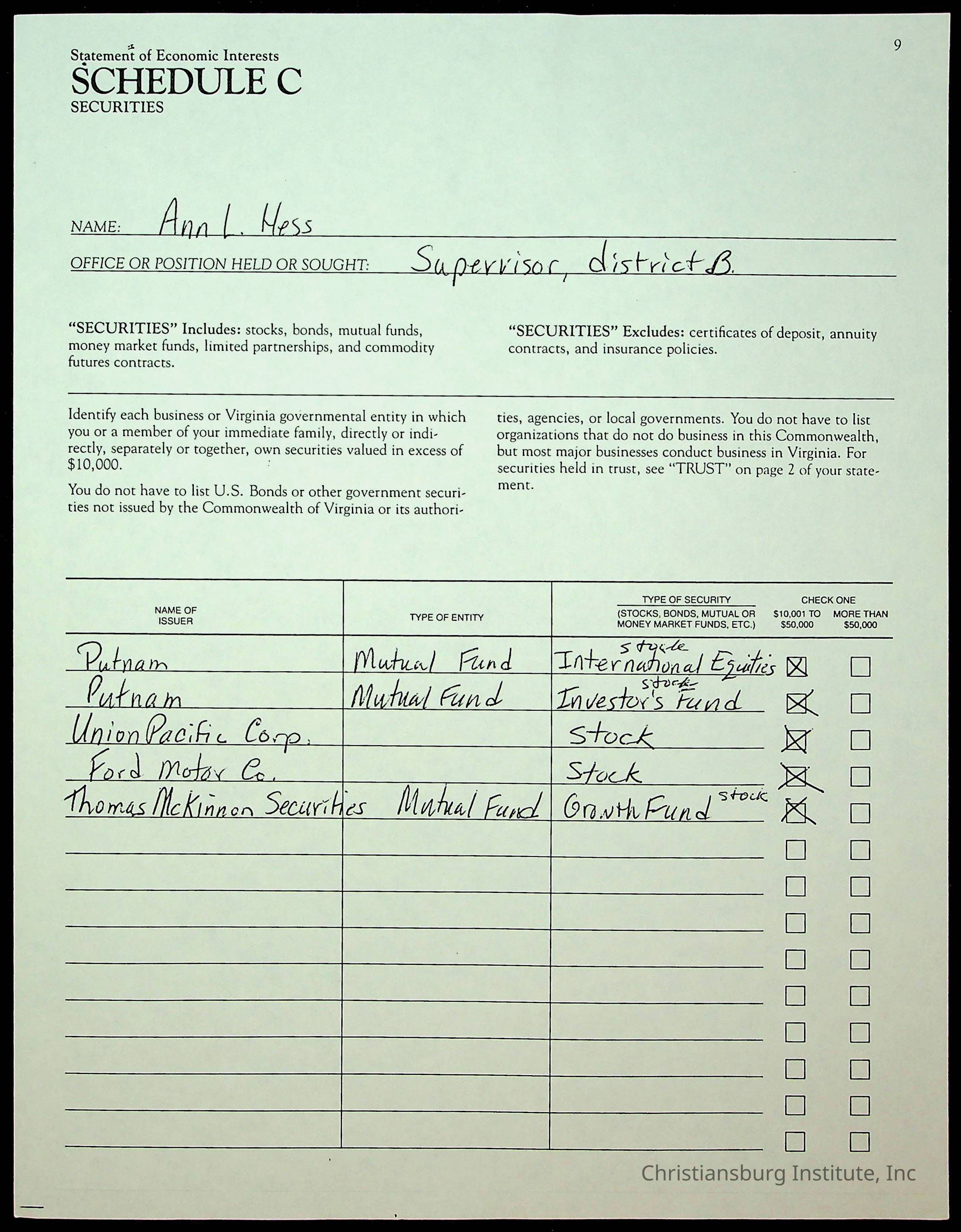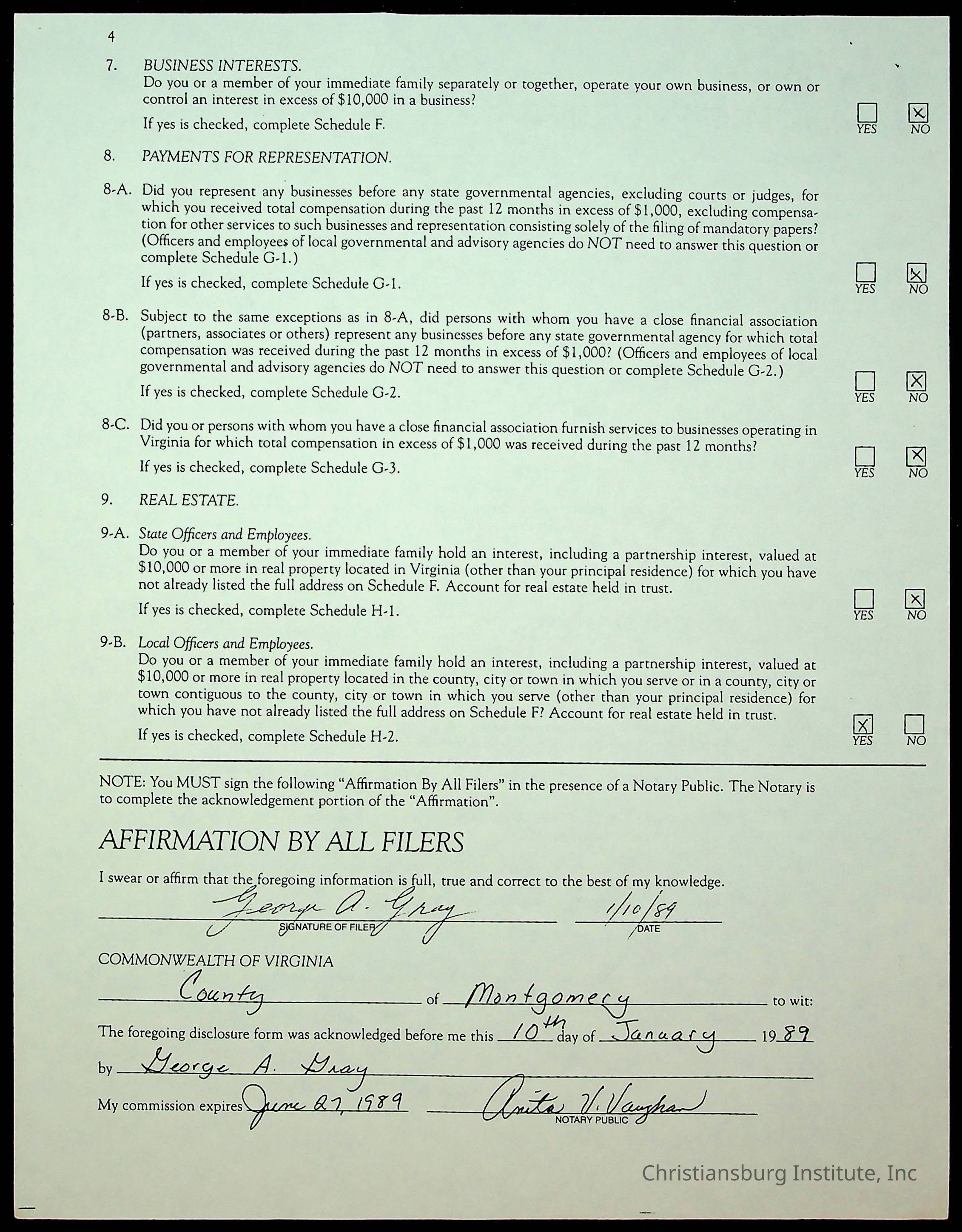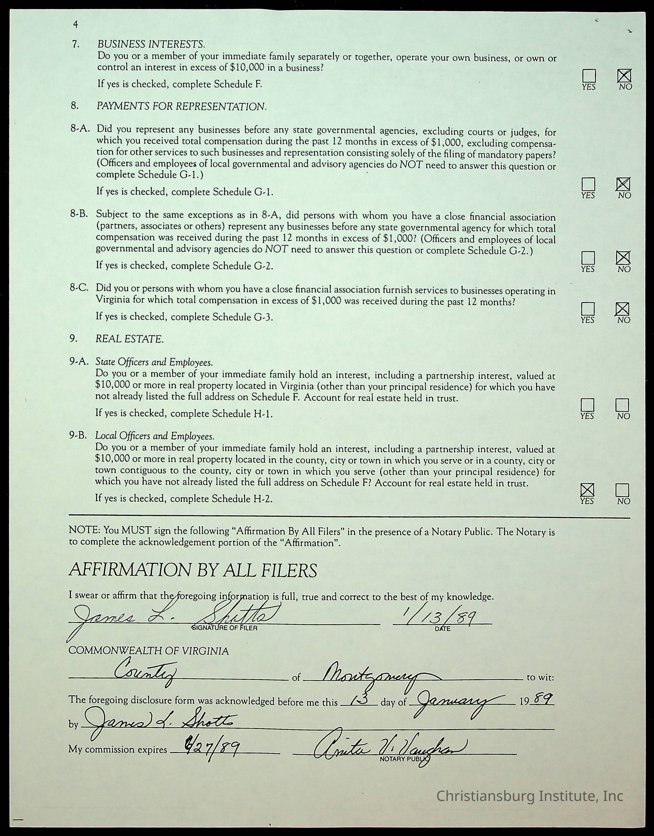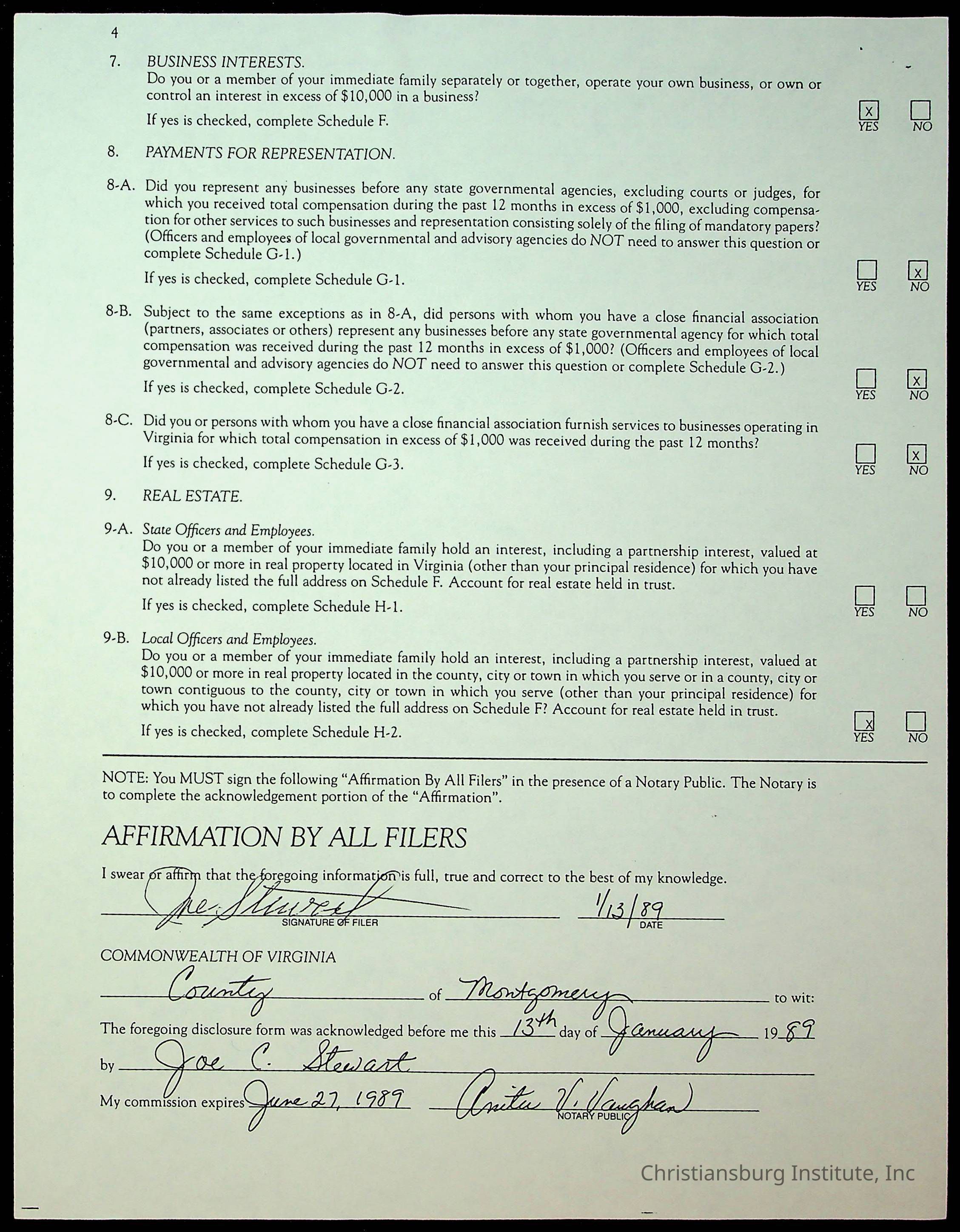 Statements of Economic Interests, Montgomery County Supervisors, 1988