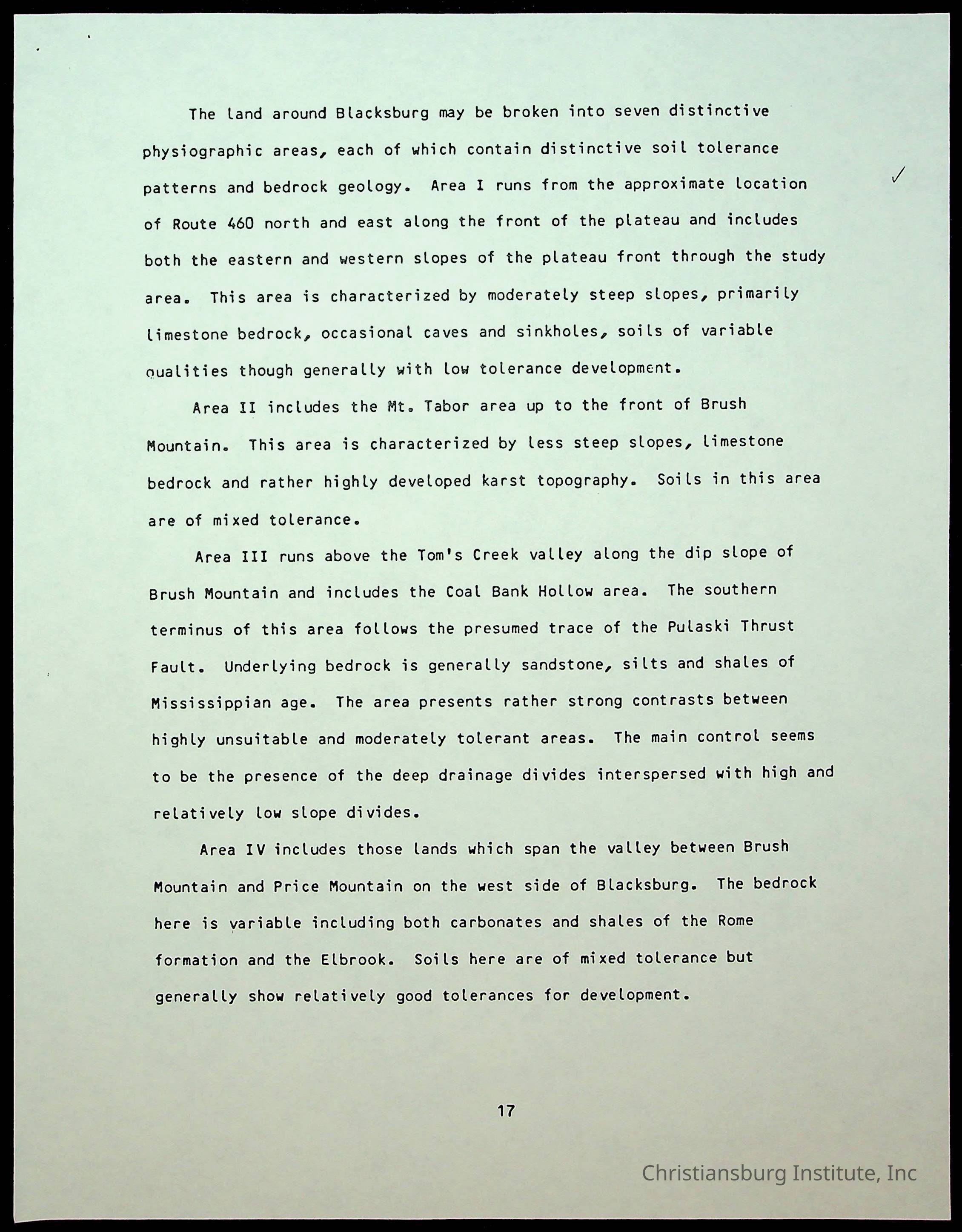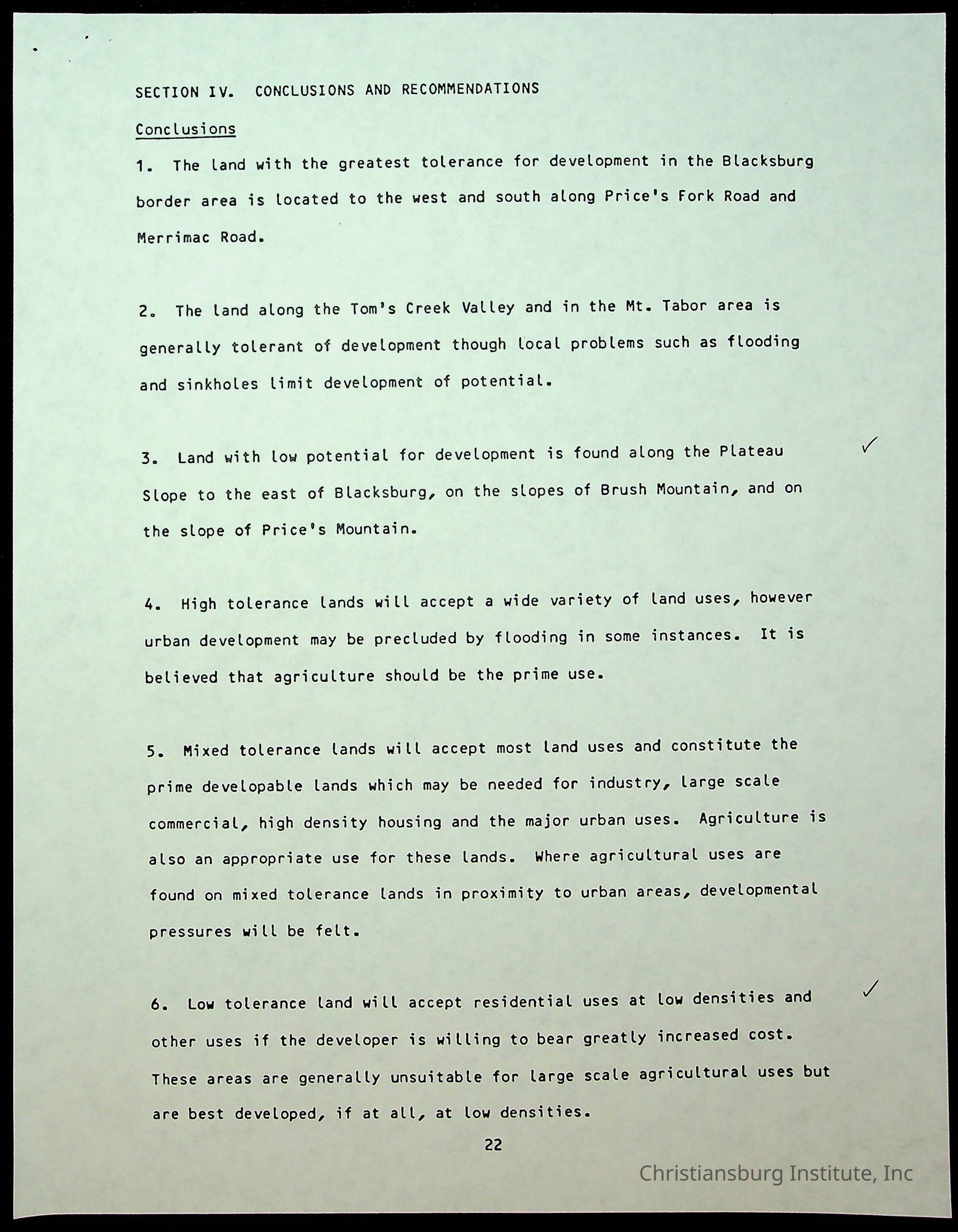 A copy of the Study of Land Potentials Along the Corporate Limits of the Town of Blacks-Montgomery dated June 20th, 1983.Collection