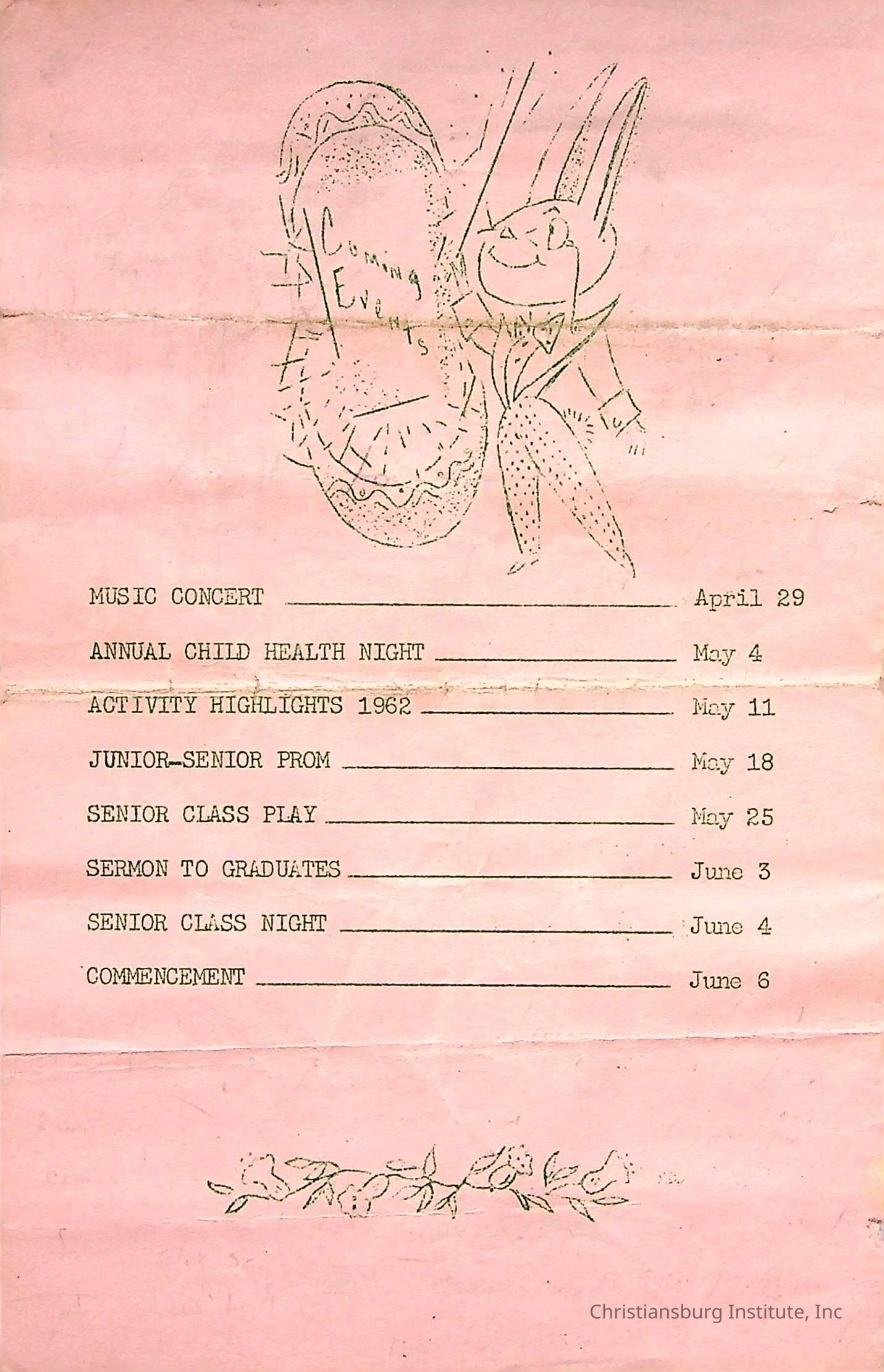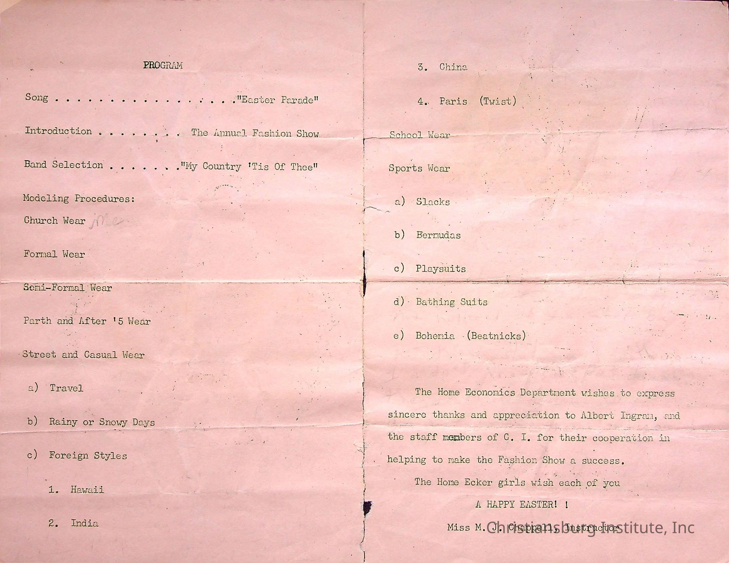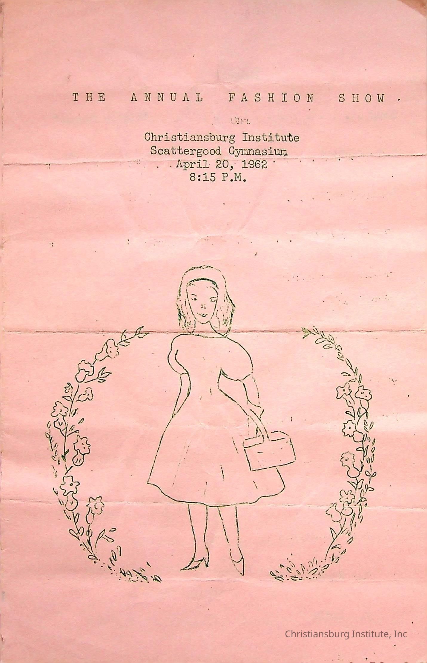 A program from the annual fashion show held at Christiansburg Institute on April 20th, 1962 at the Scattergood Gymnasium.Creator