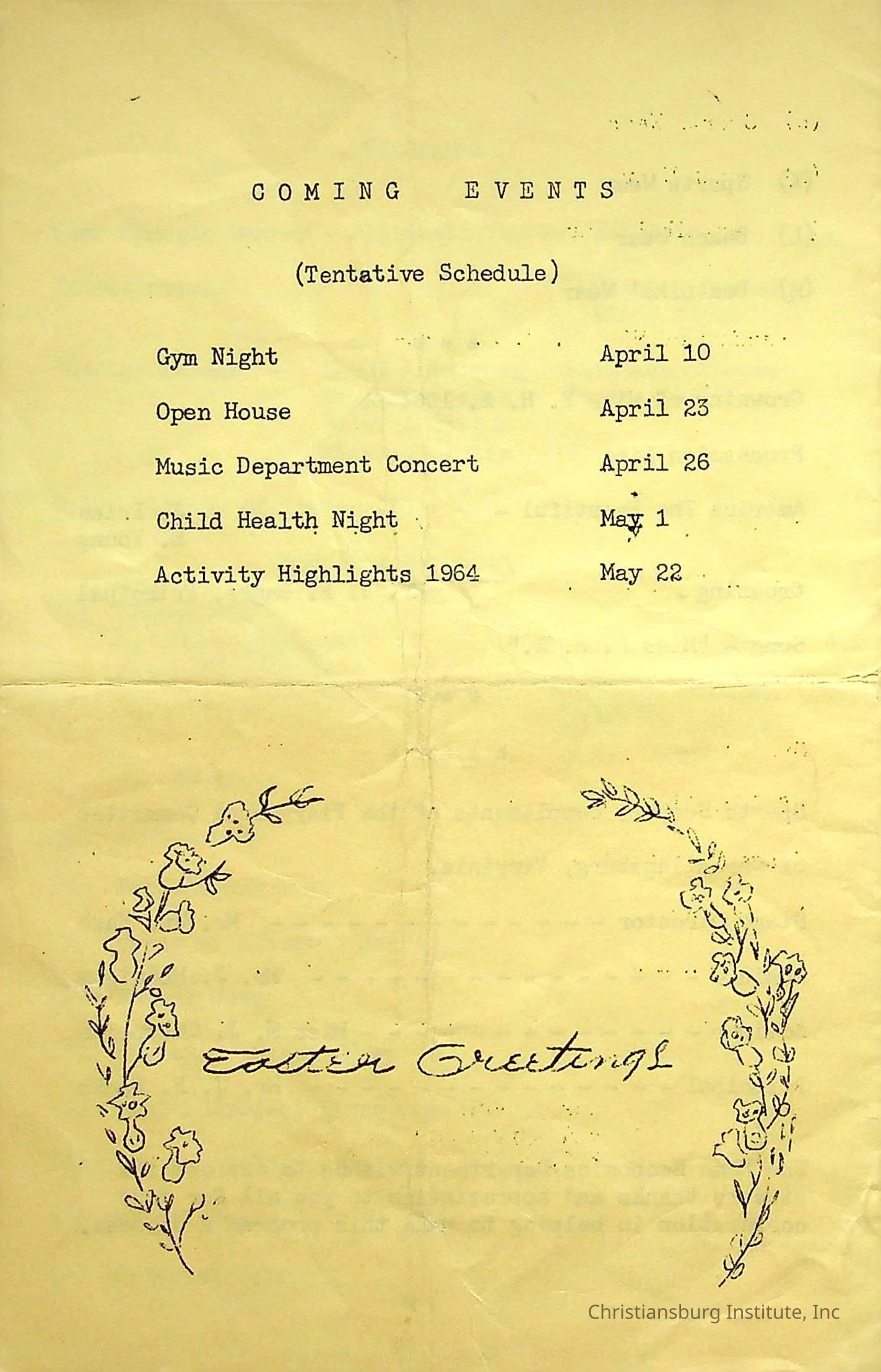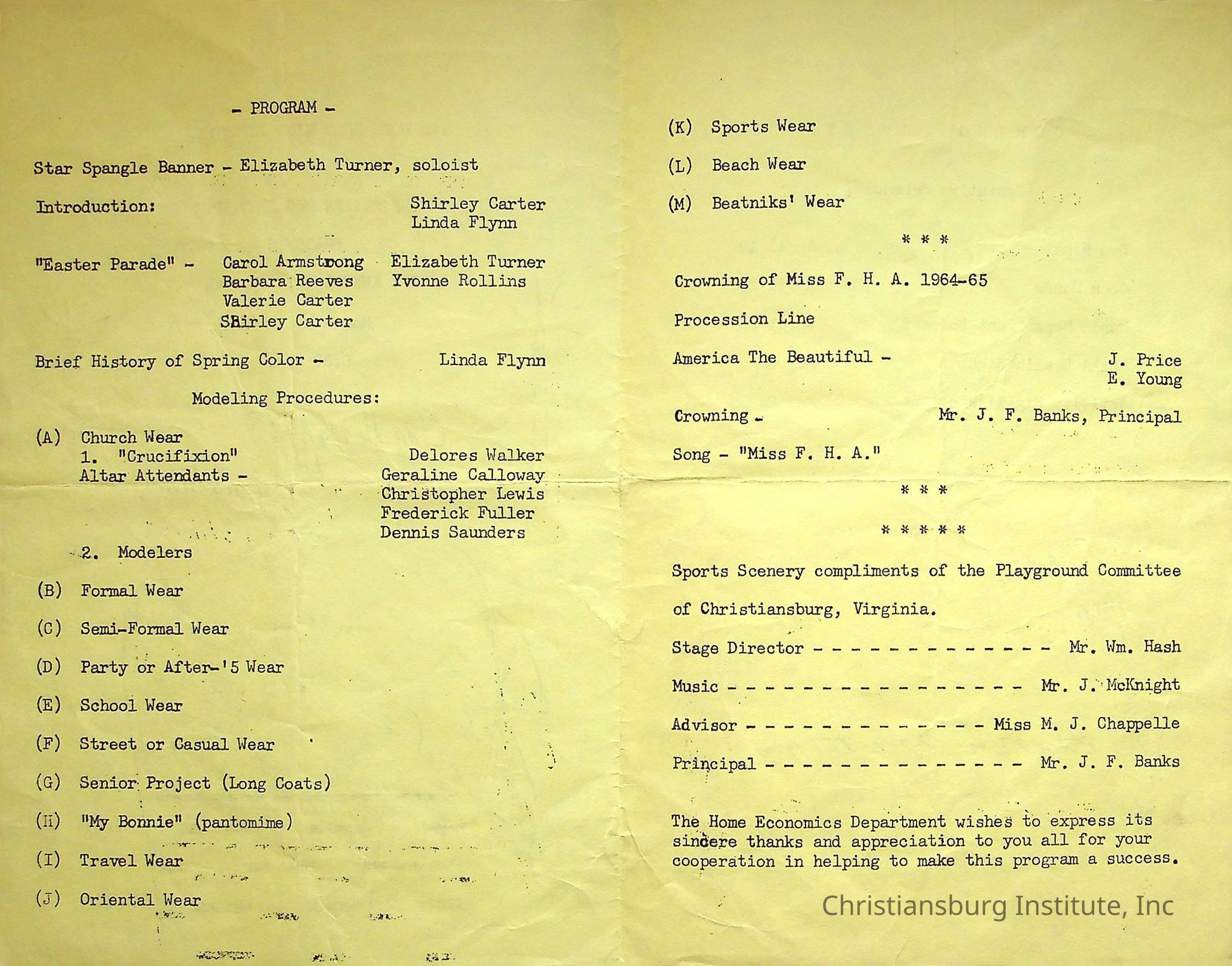 A program from the annual fashion show held at Christiansburg Institute on March 25th, 1964.