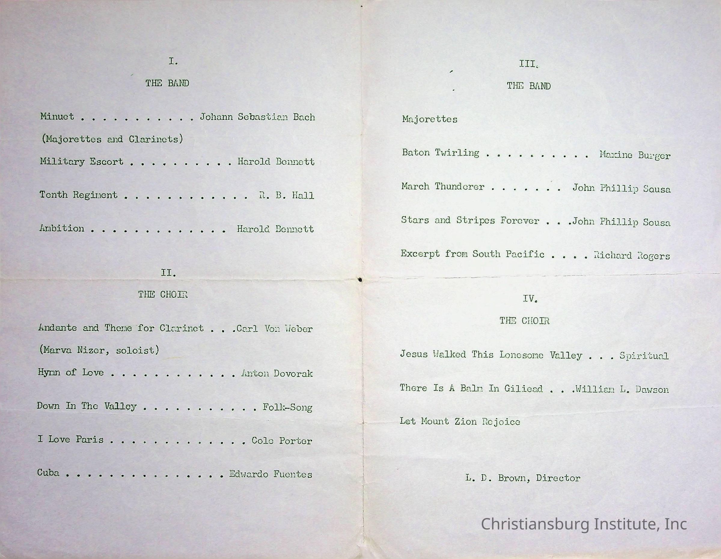 A program from the annual spring concert at Christiansburg Institute titled "Music to Match our Mountains" that took place on Sunday, April 29th, 1962.Collection