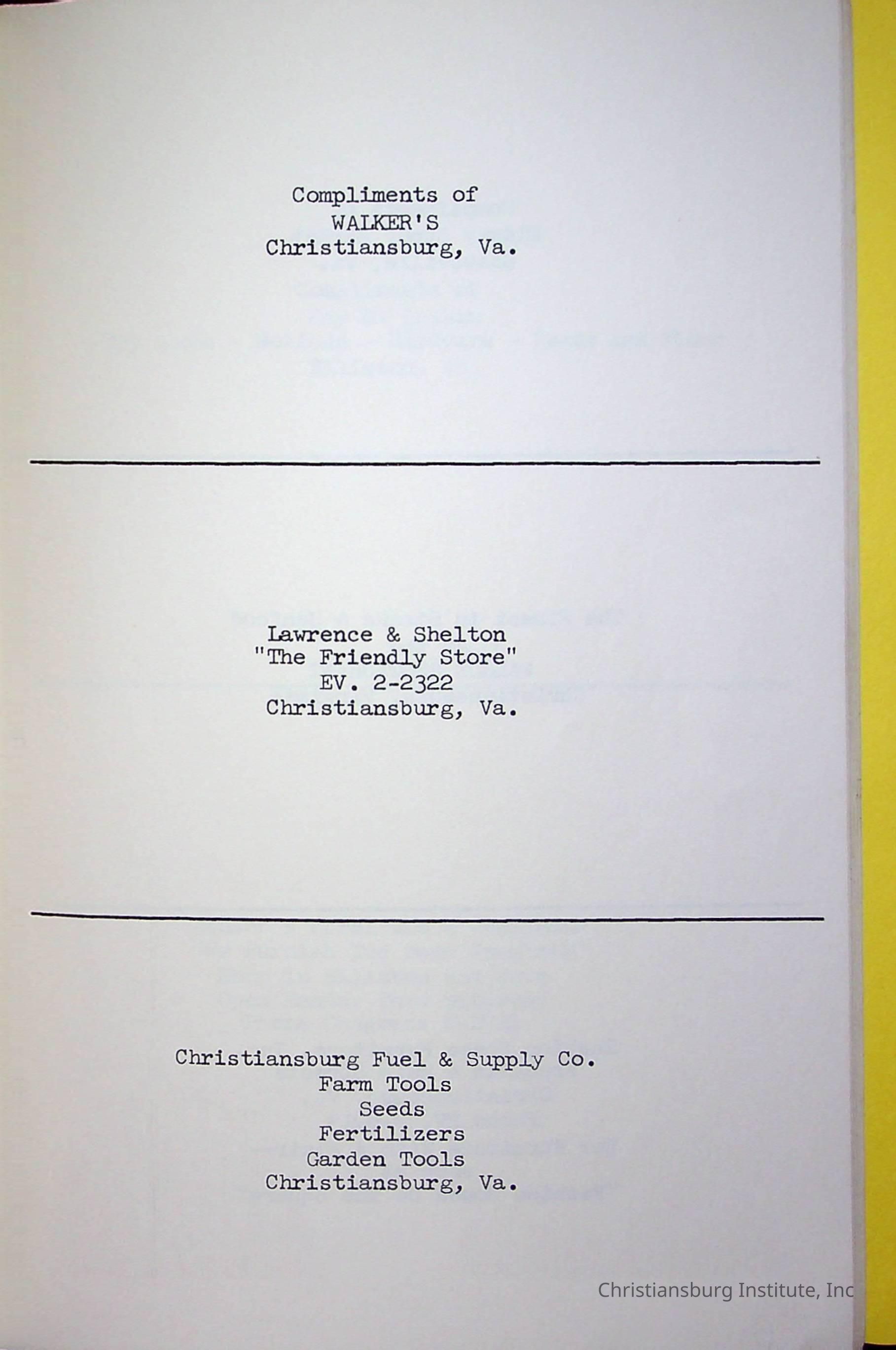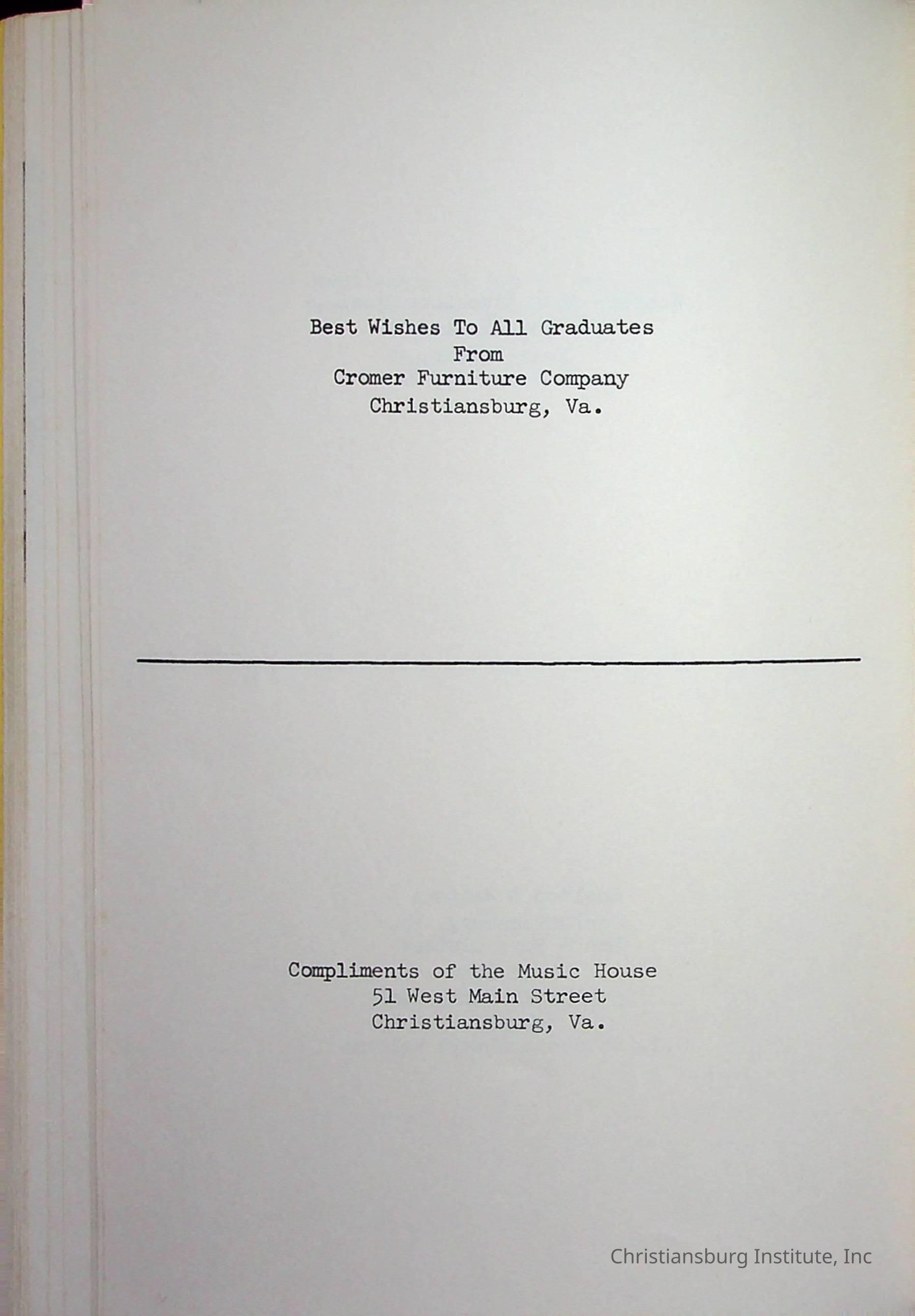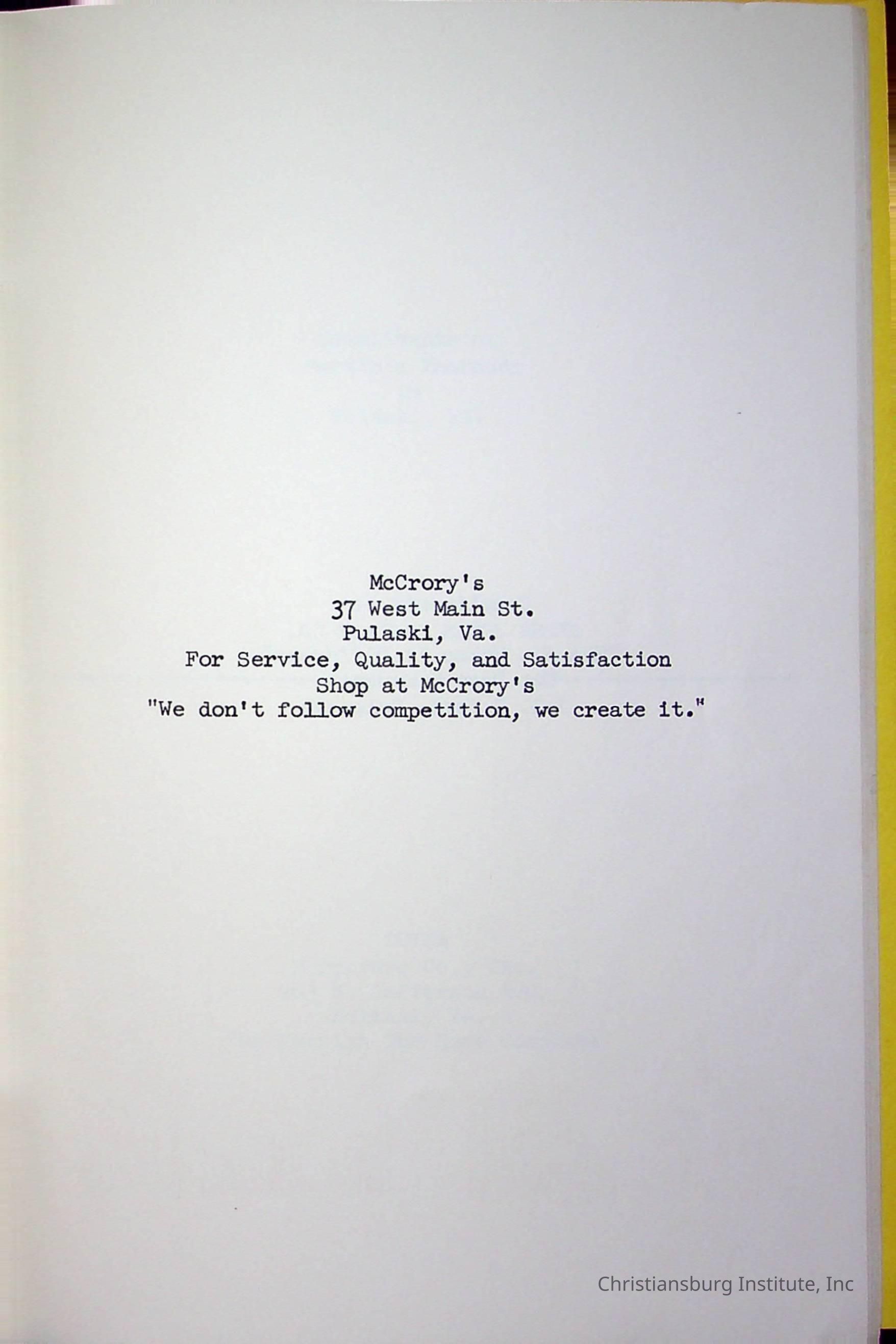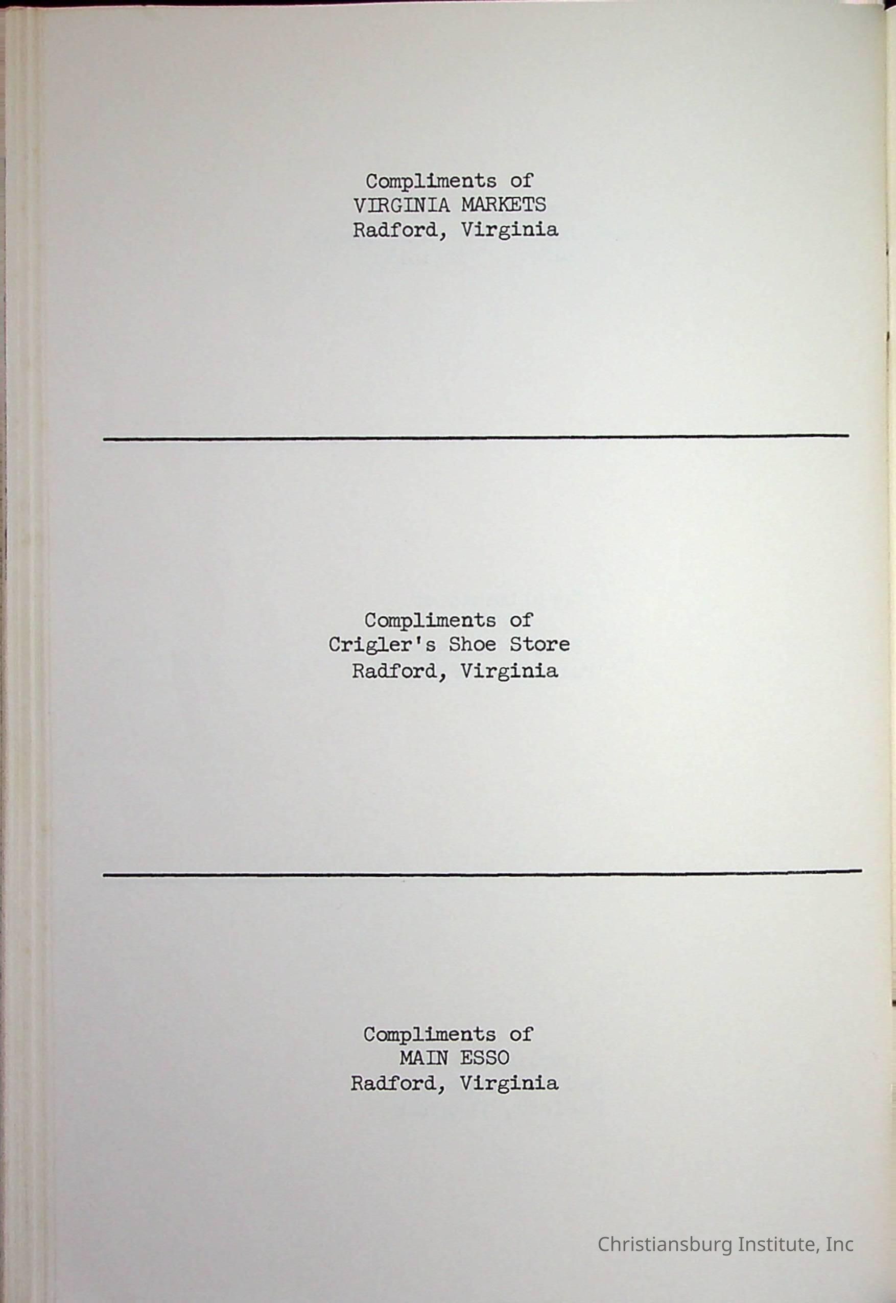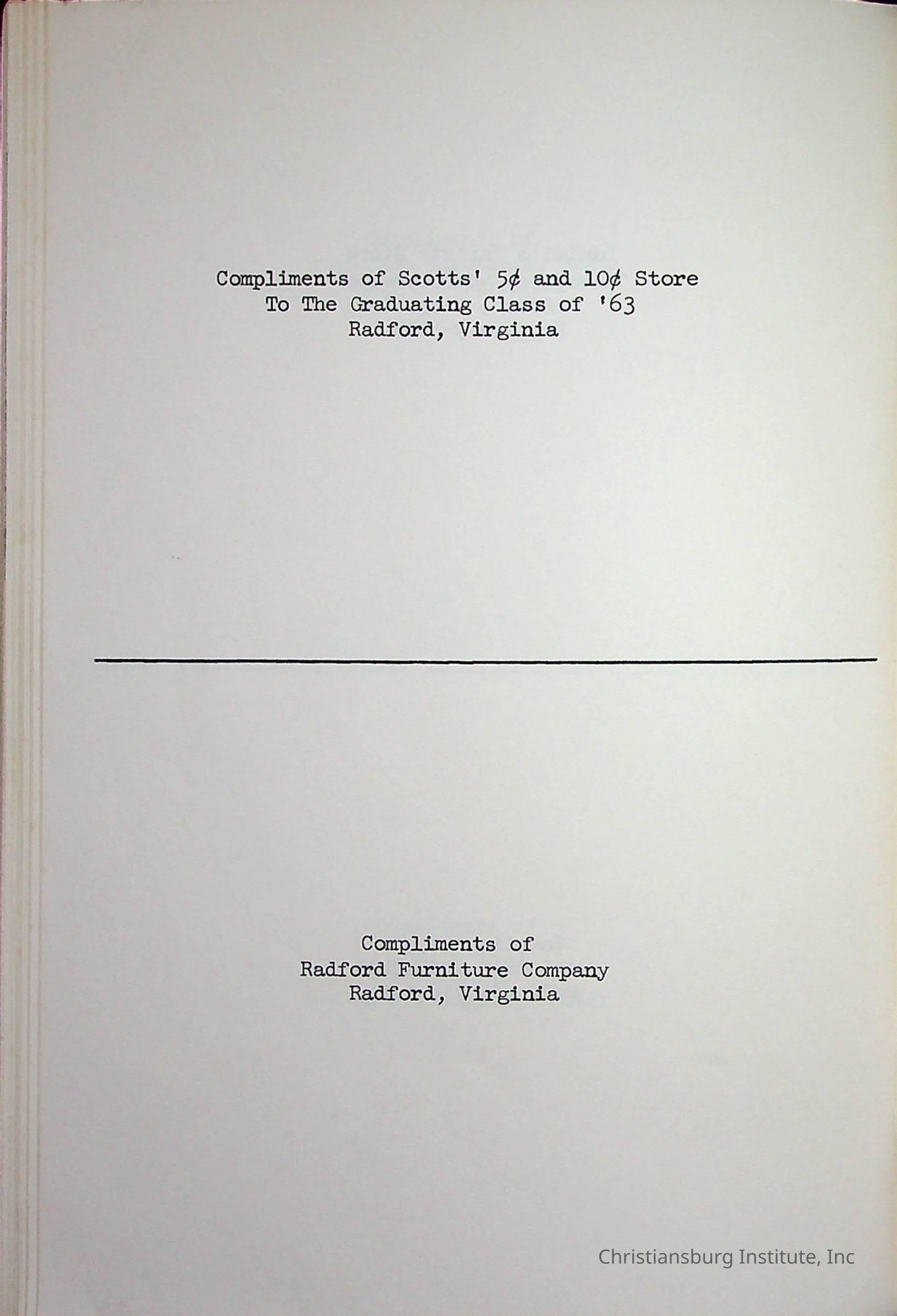 Christiansburg InstitutePlace Printed