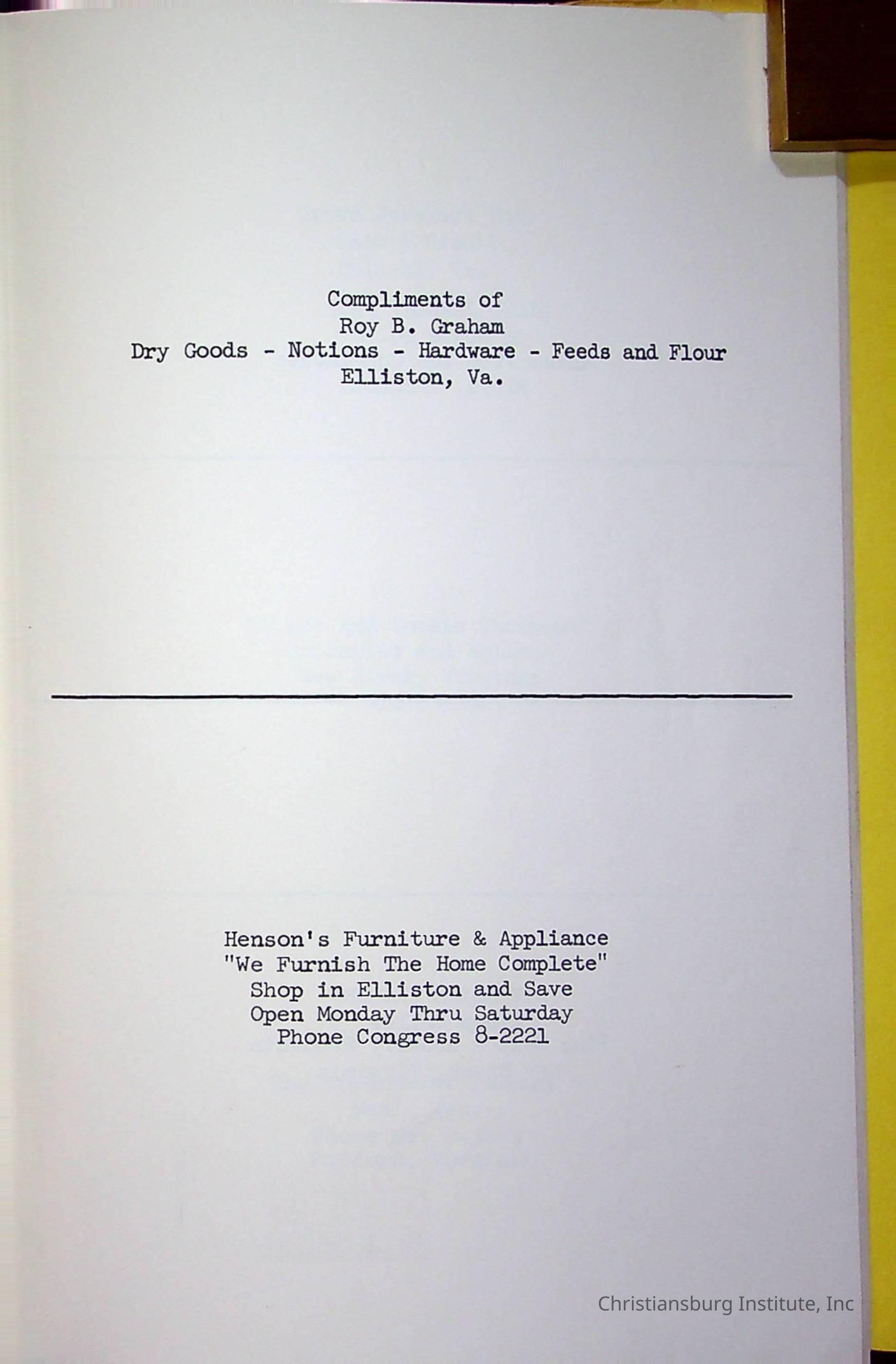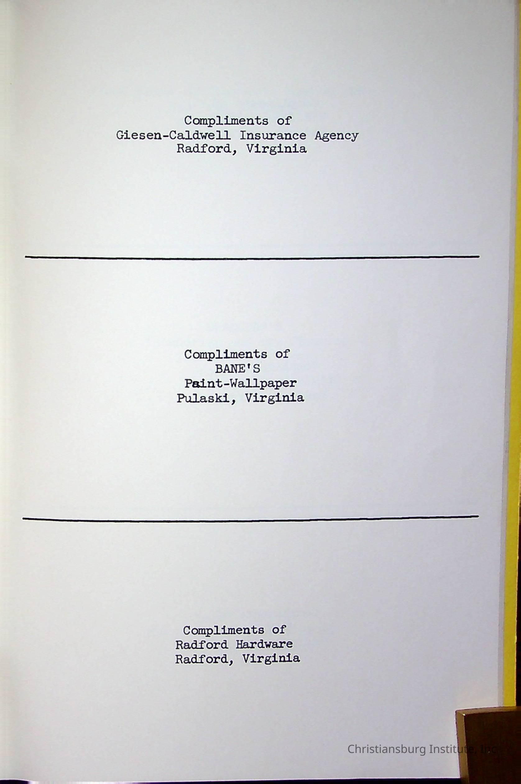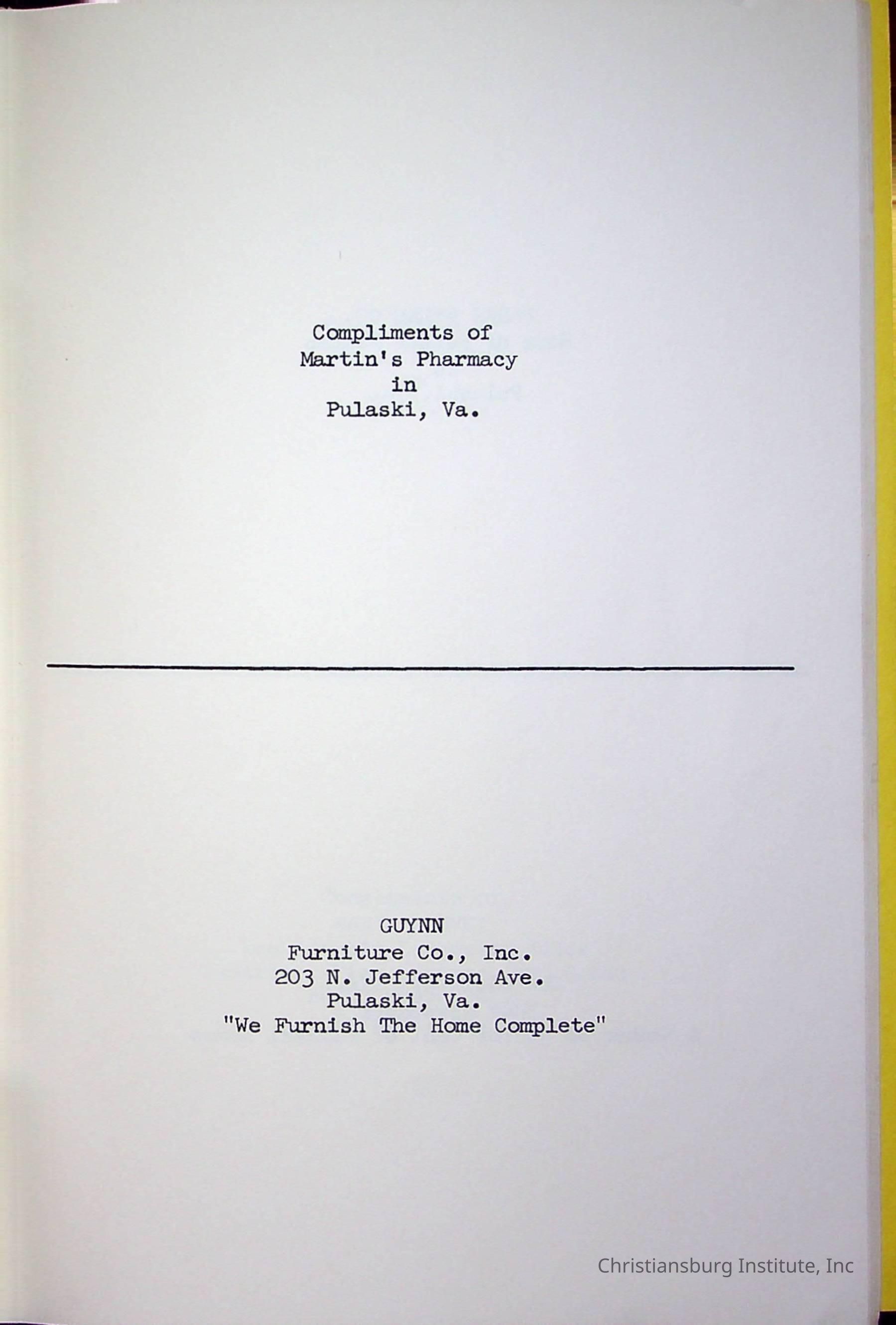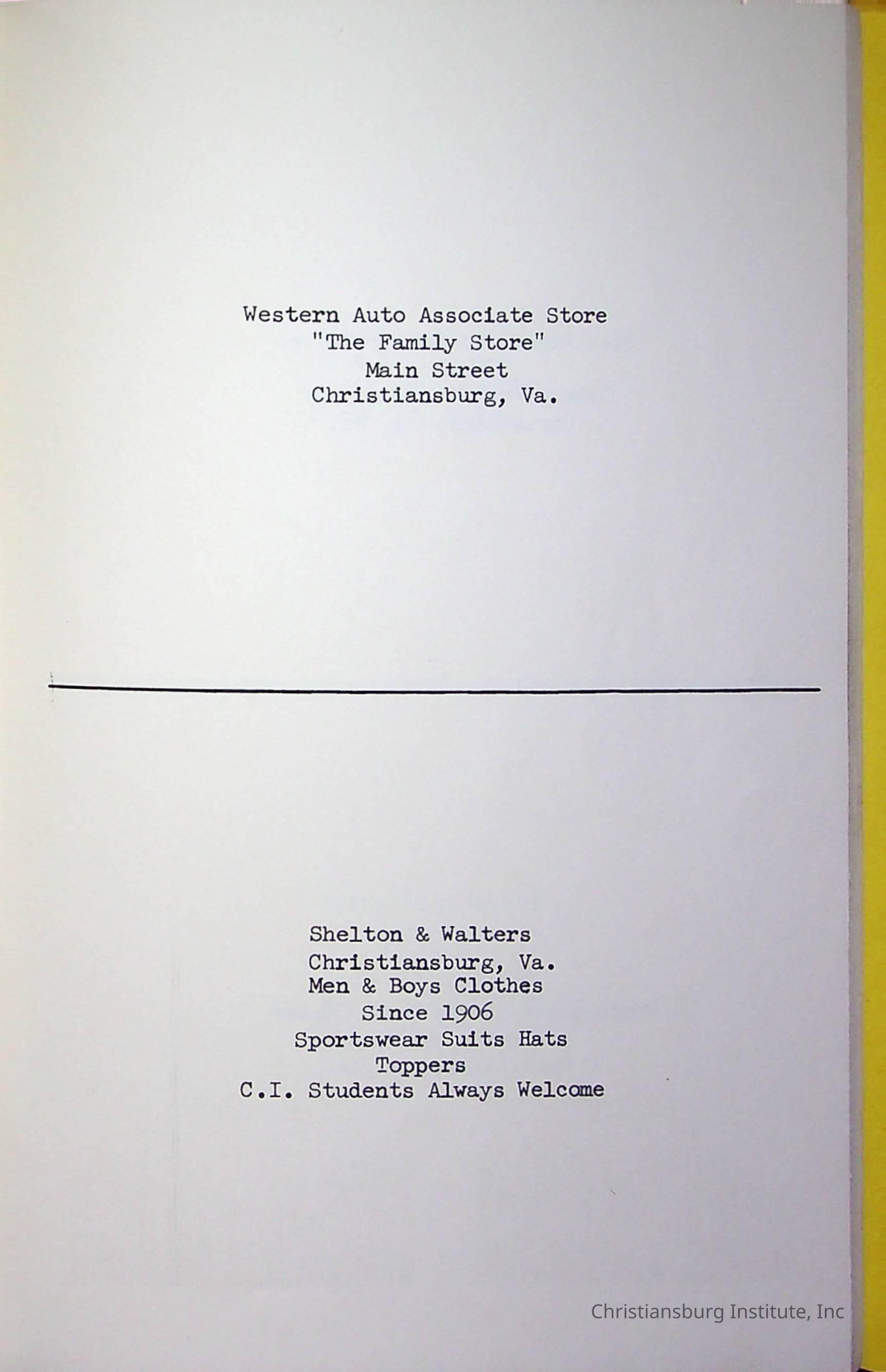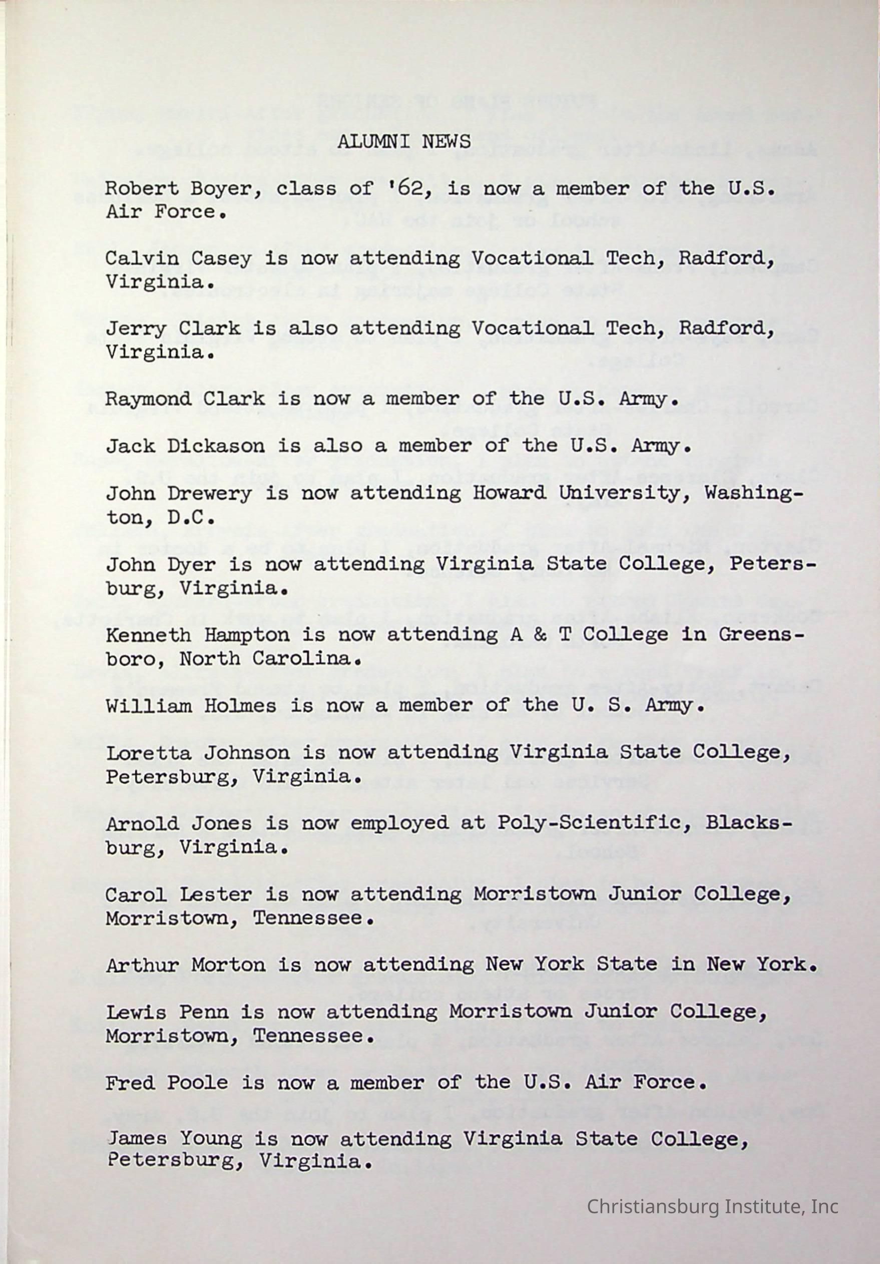 Christiansburg InstitutePlace Printed