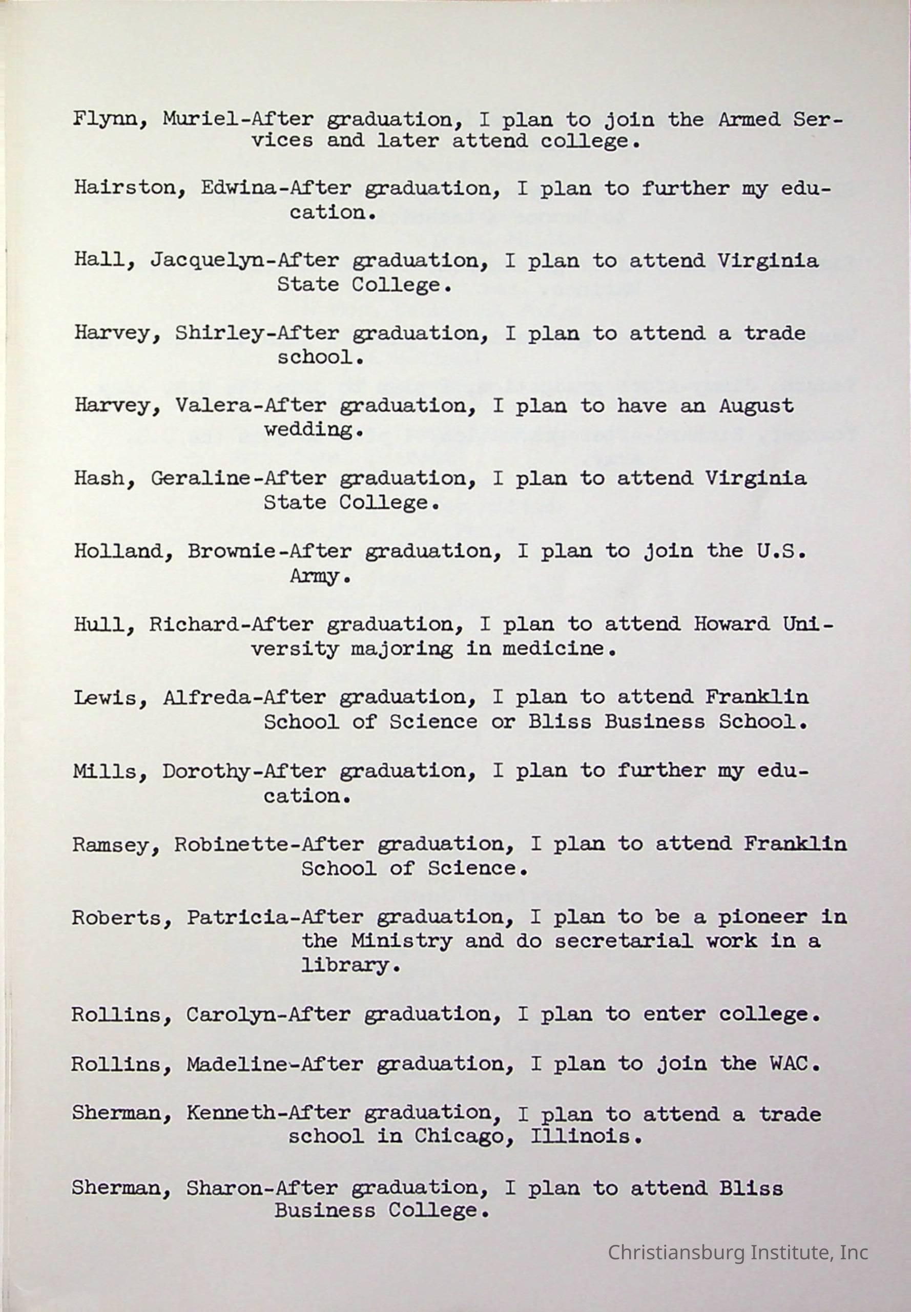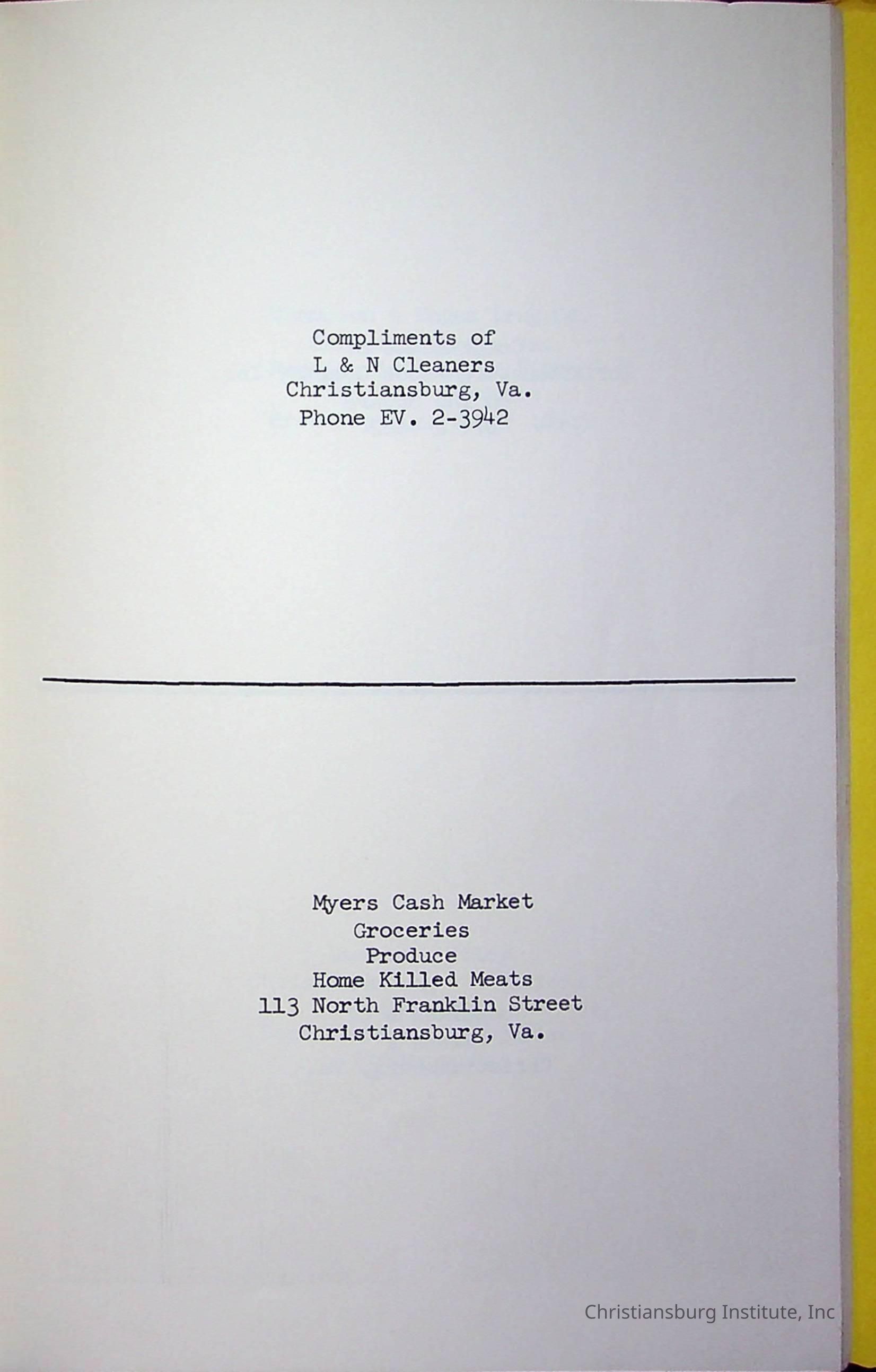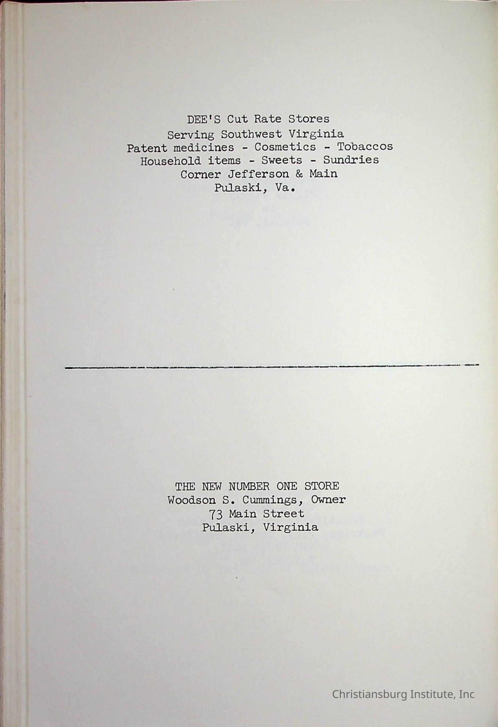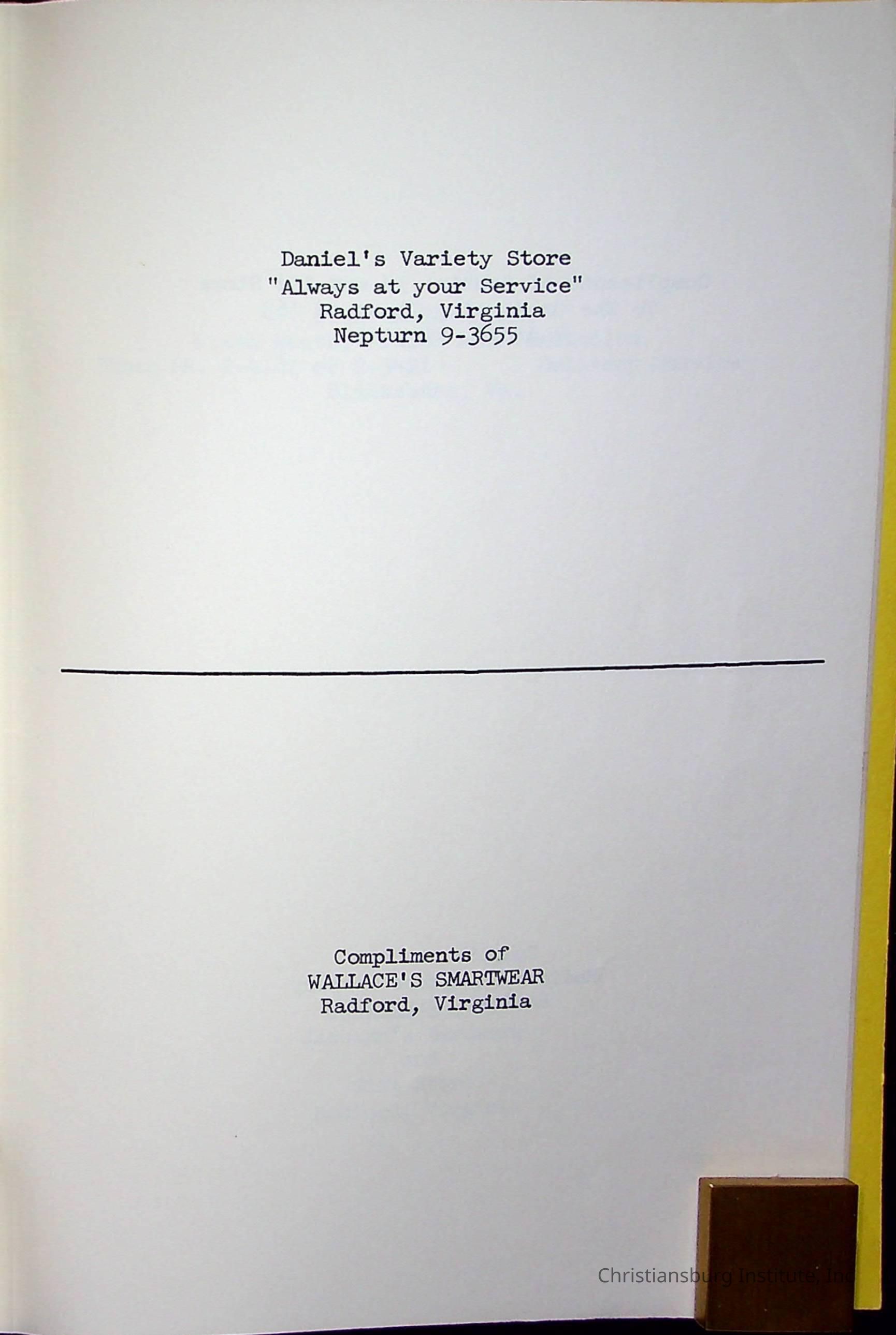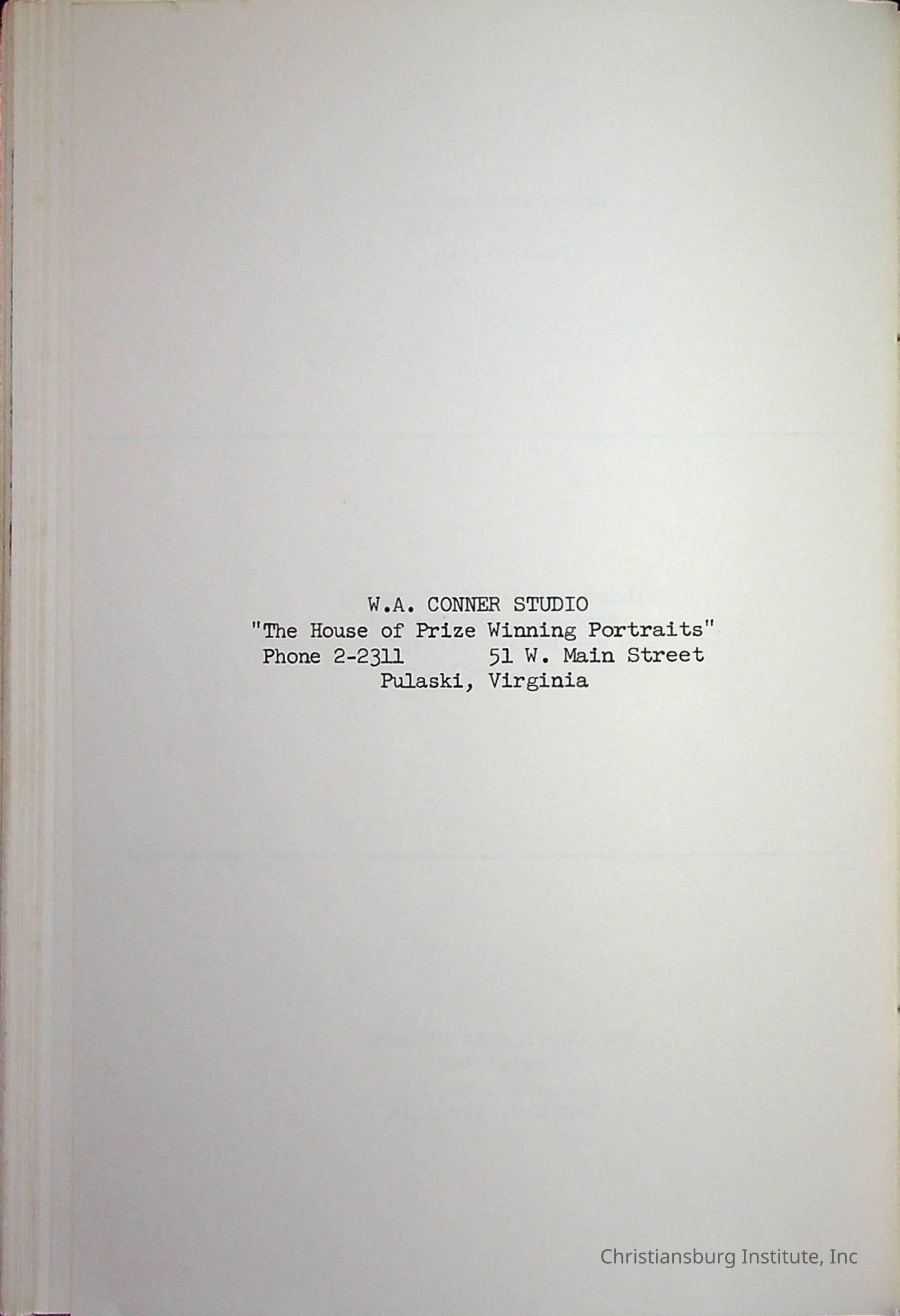 Christiansburg InstitutePlace Printed