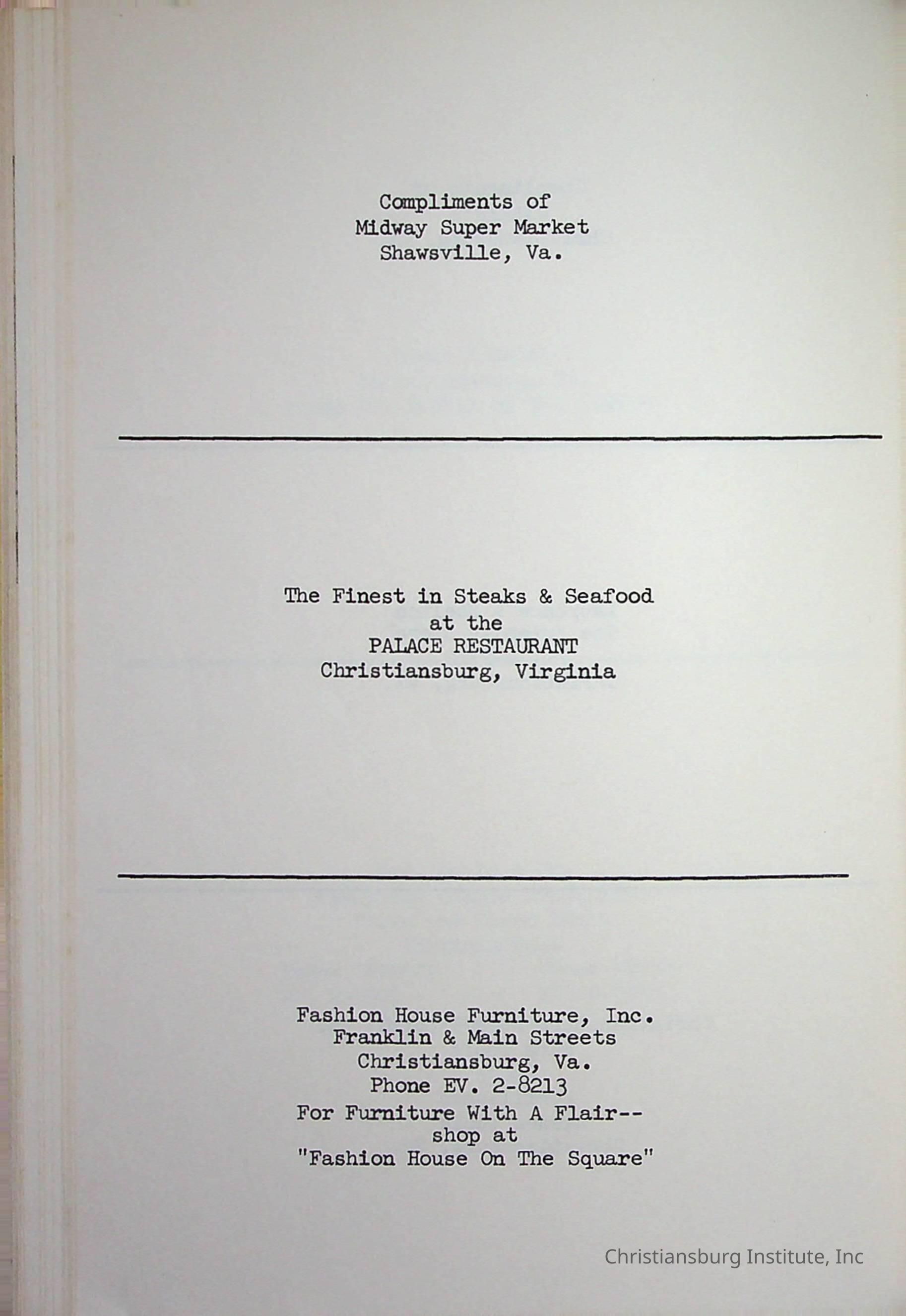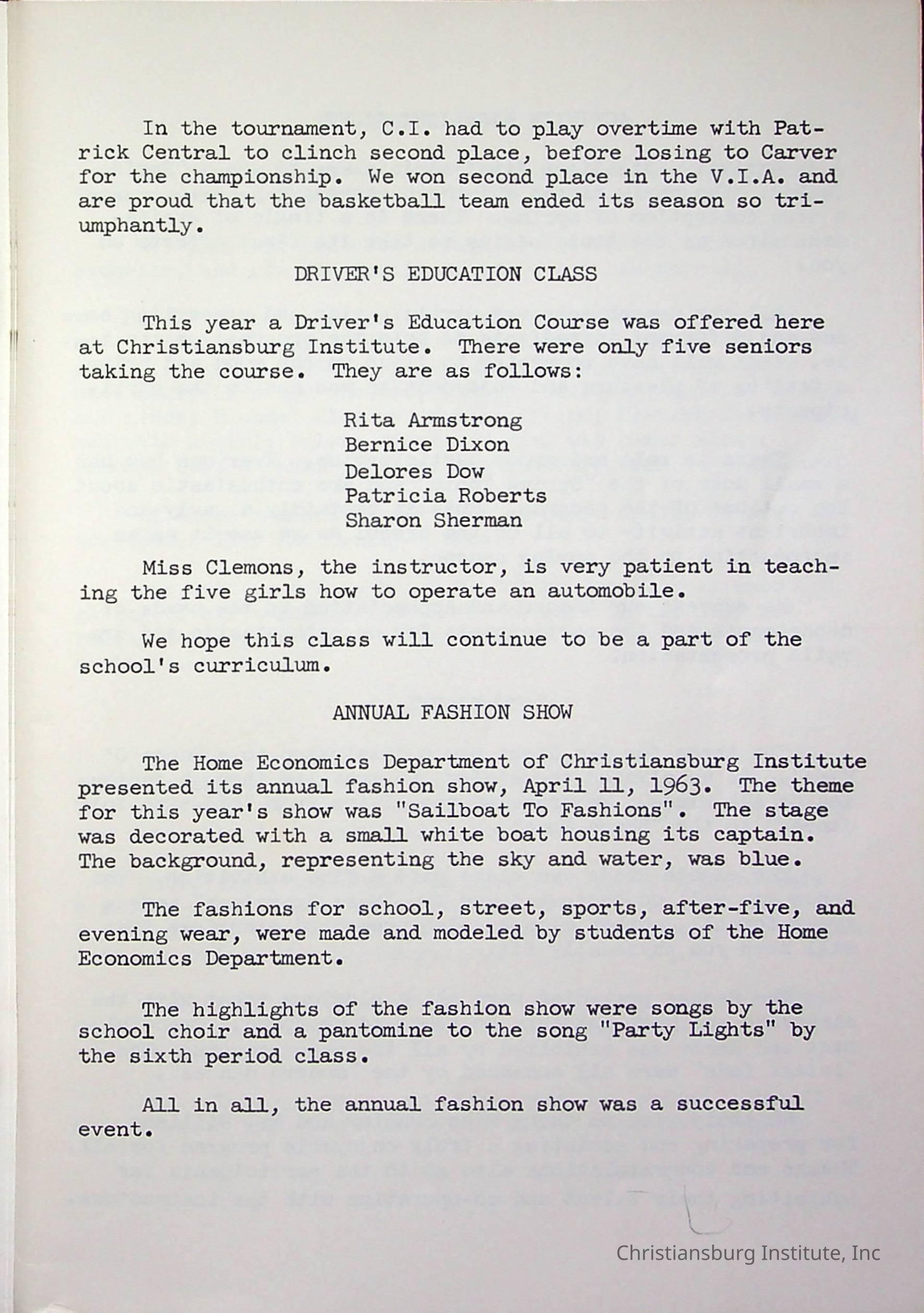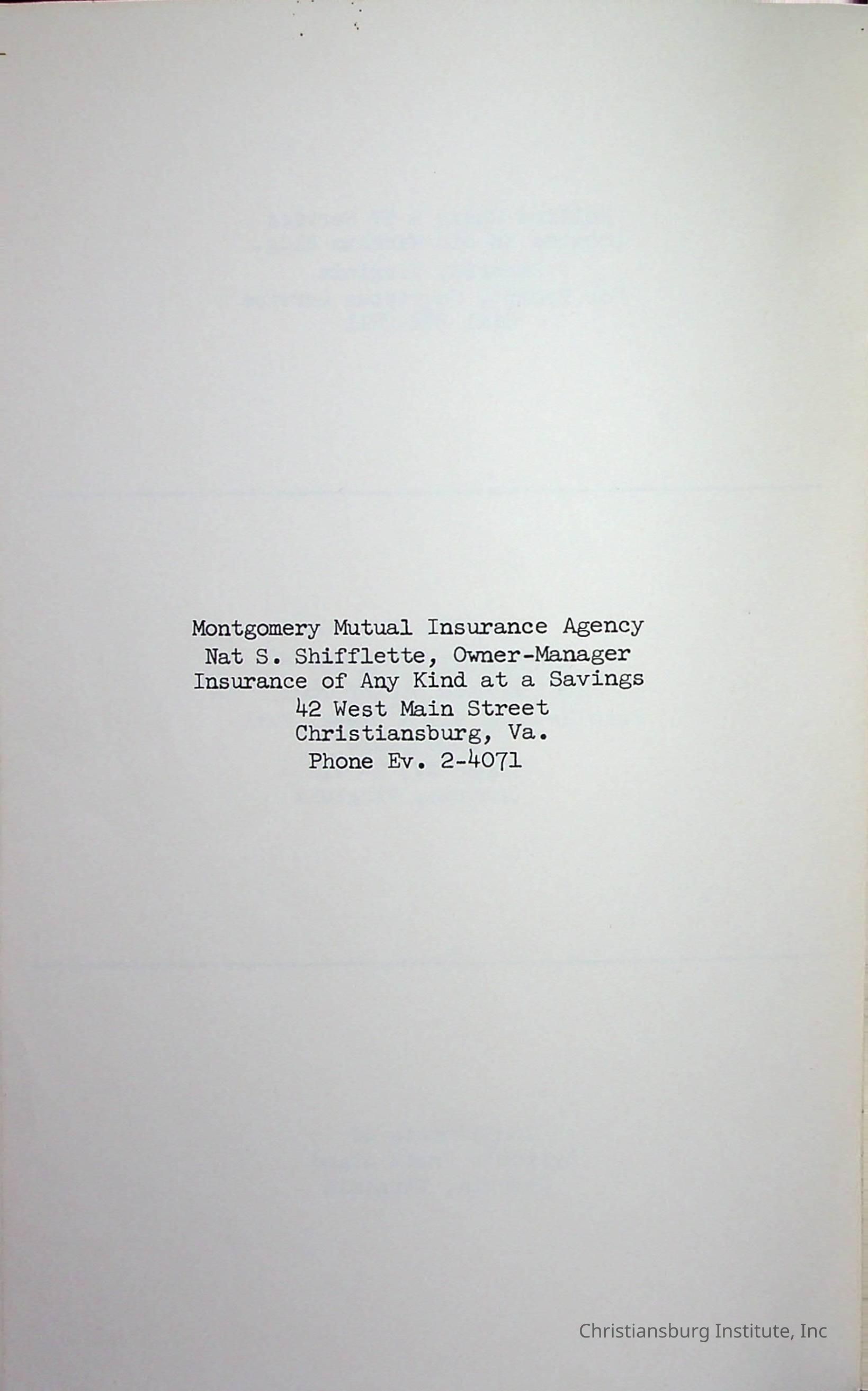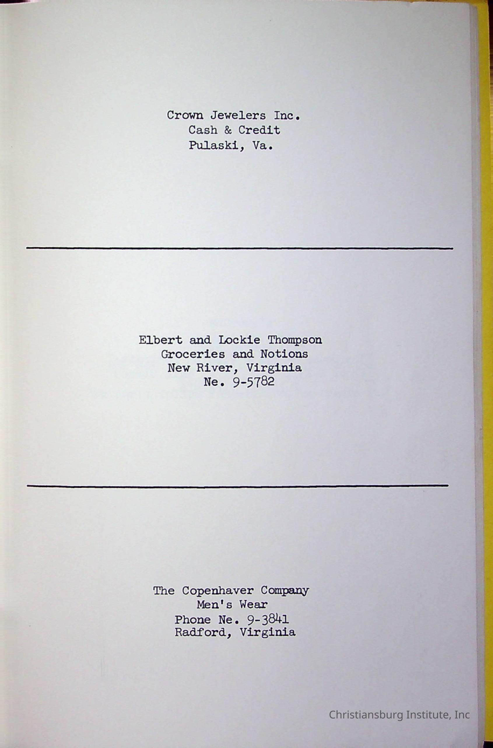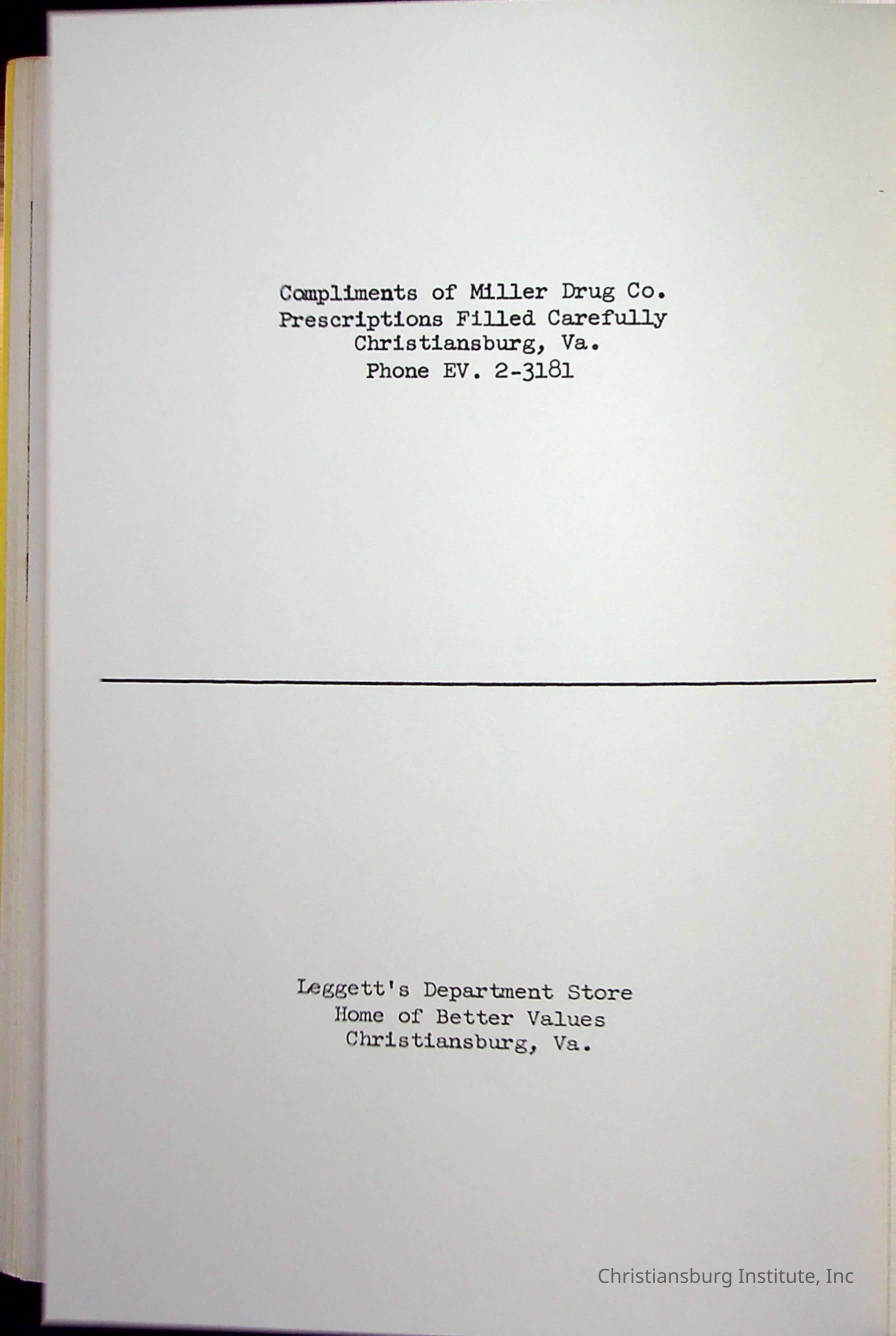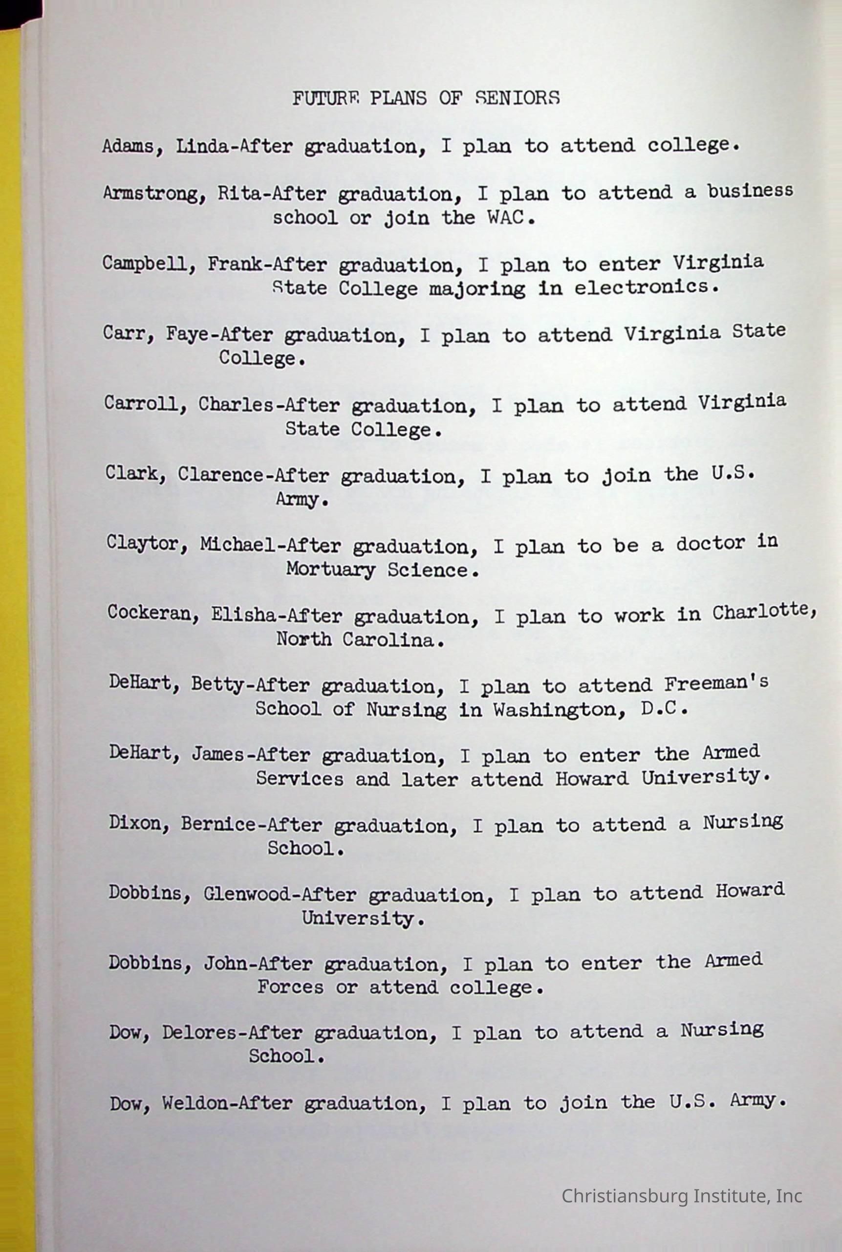 Christiansburg InstitutePlace Printed