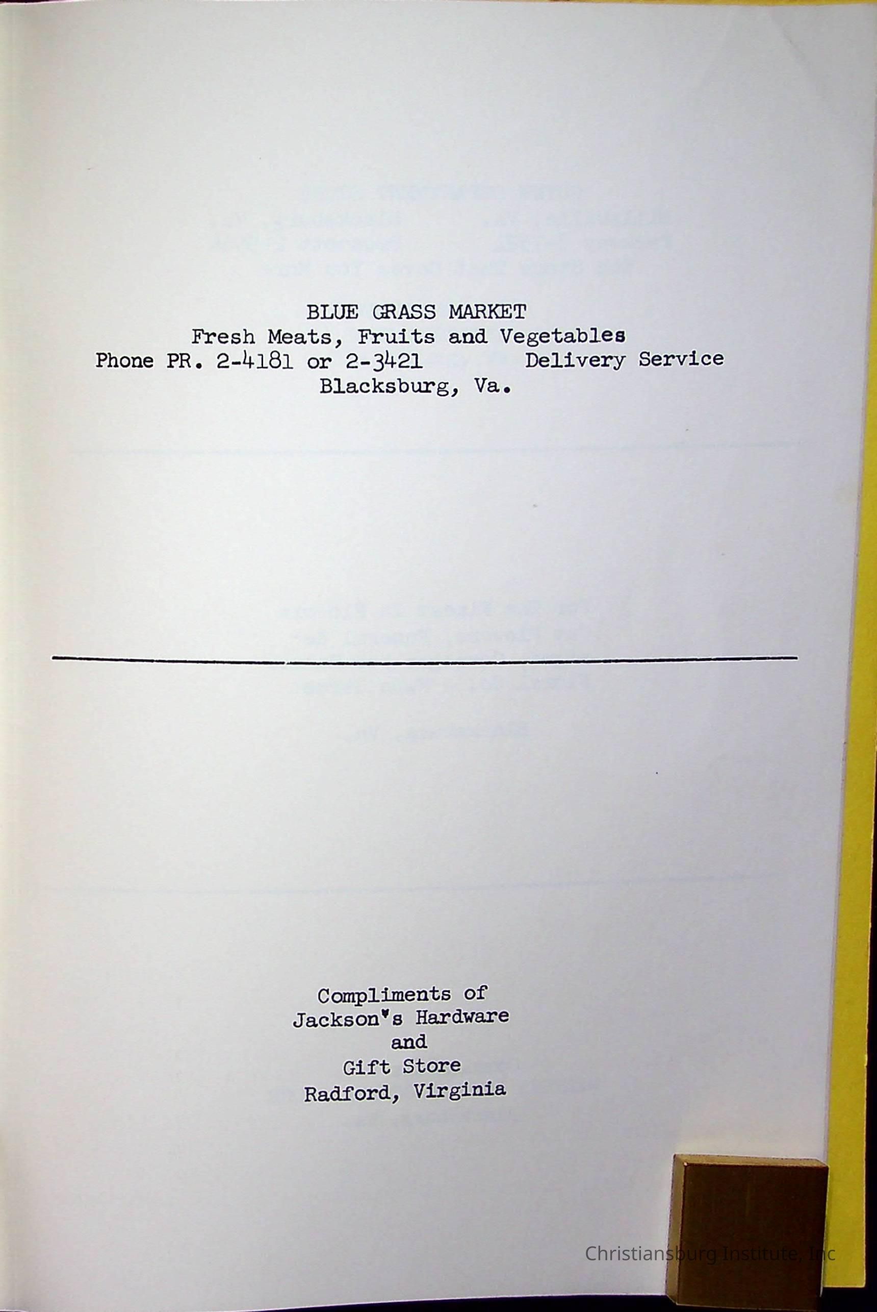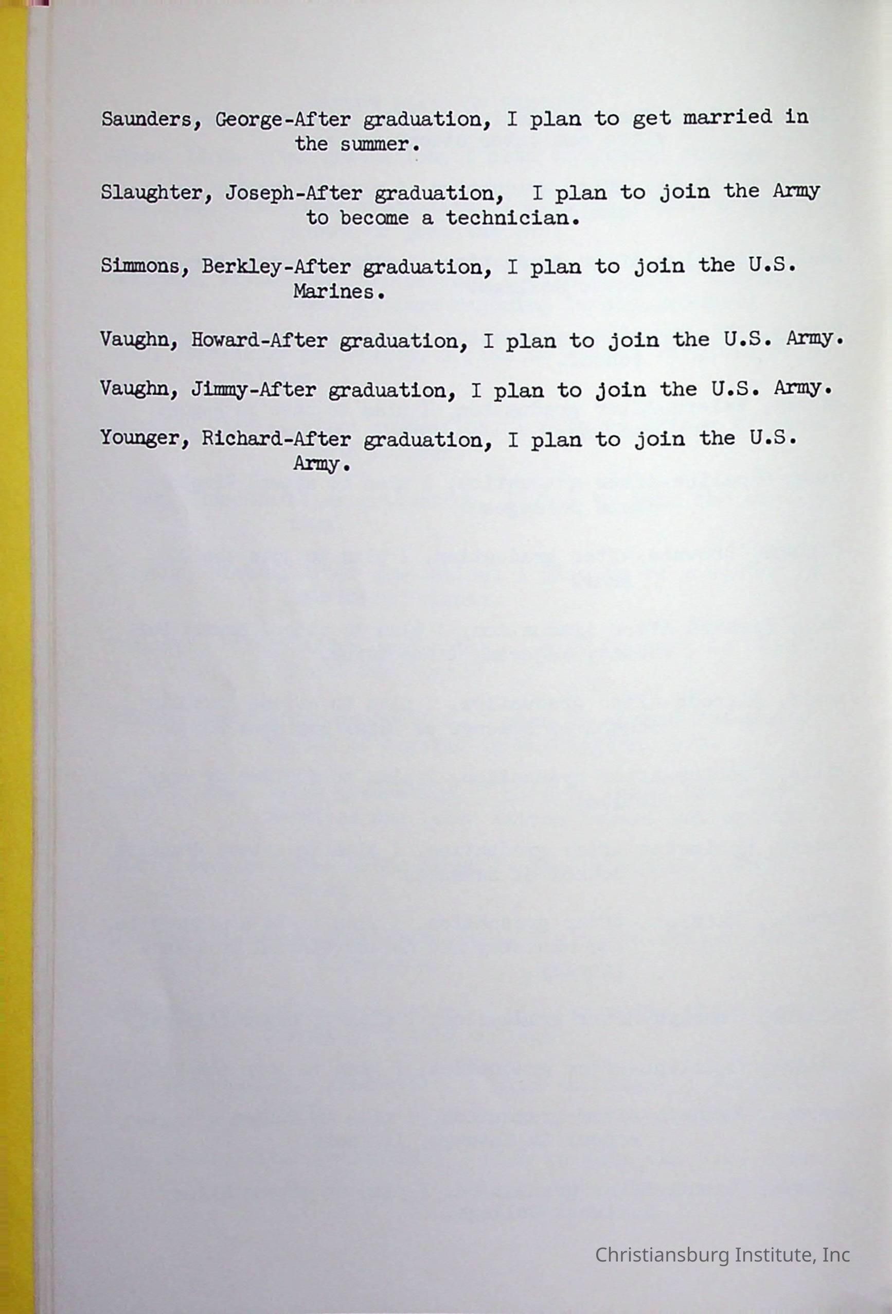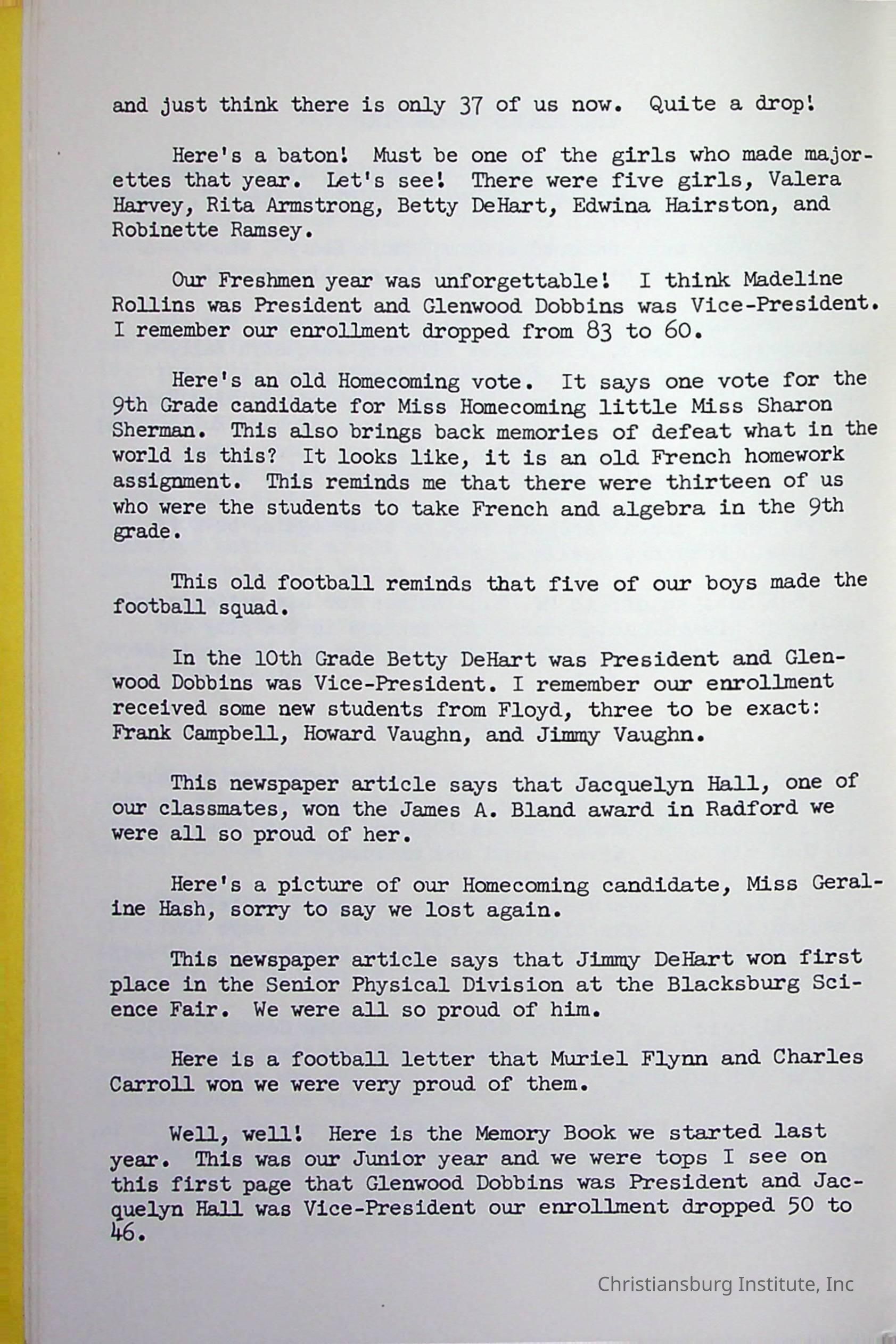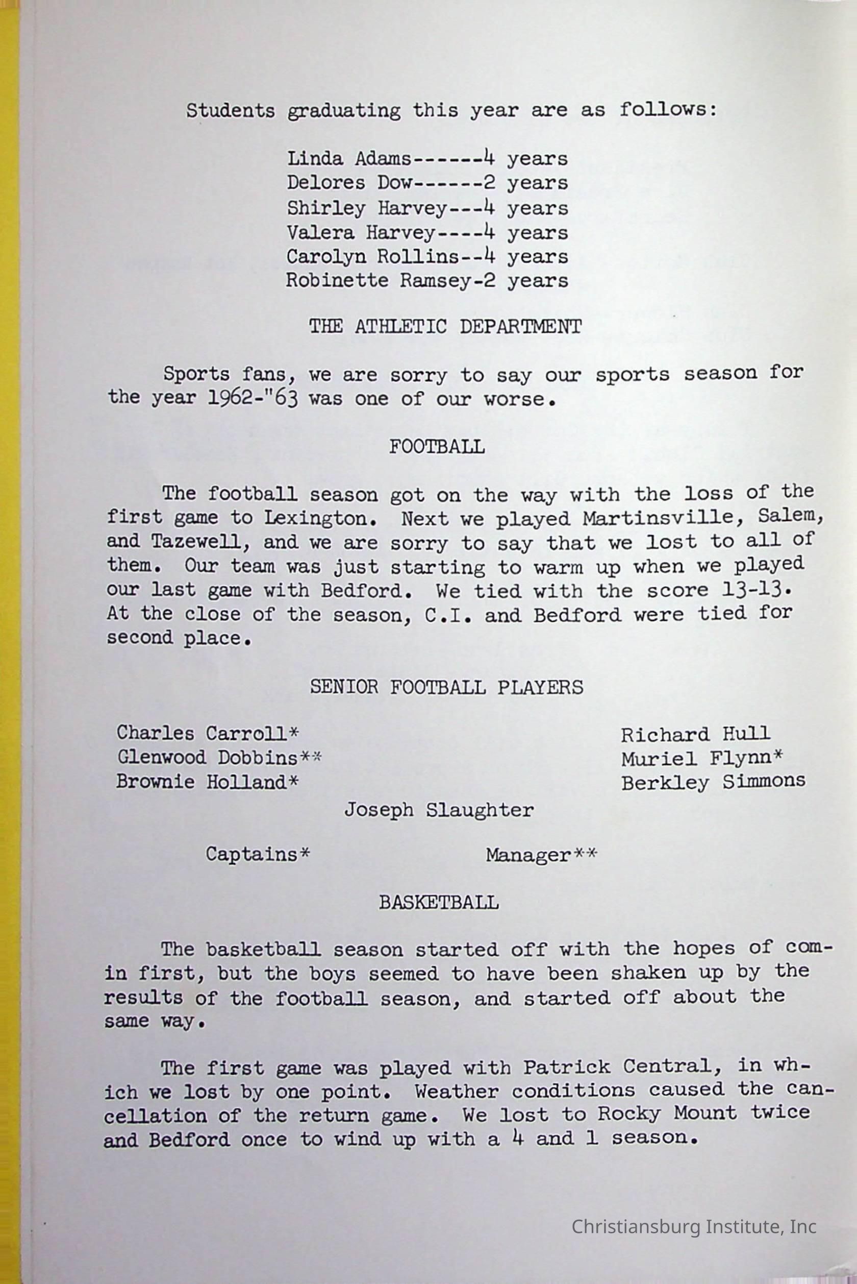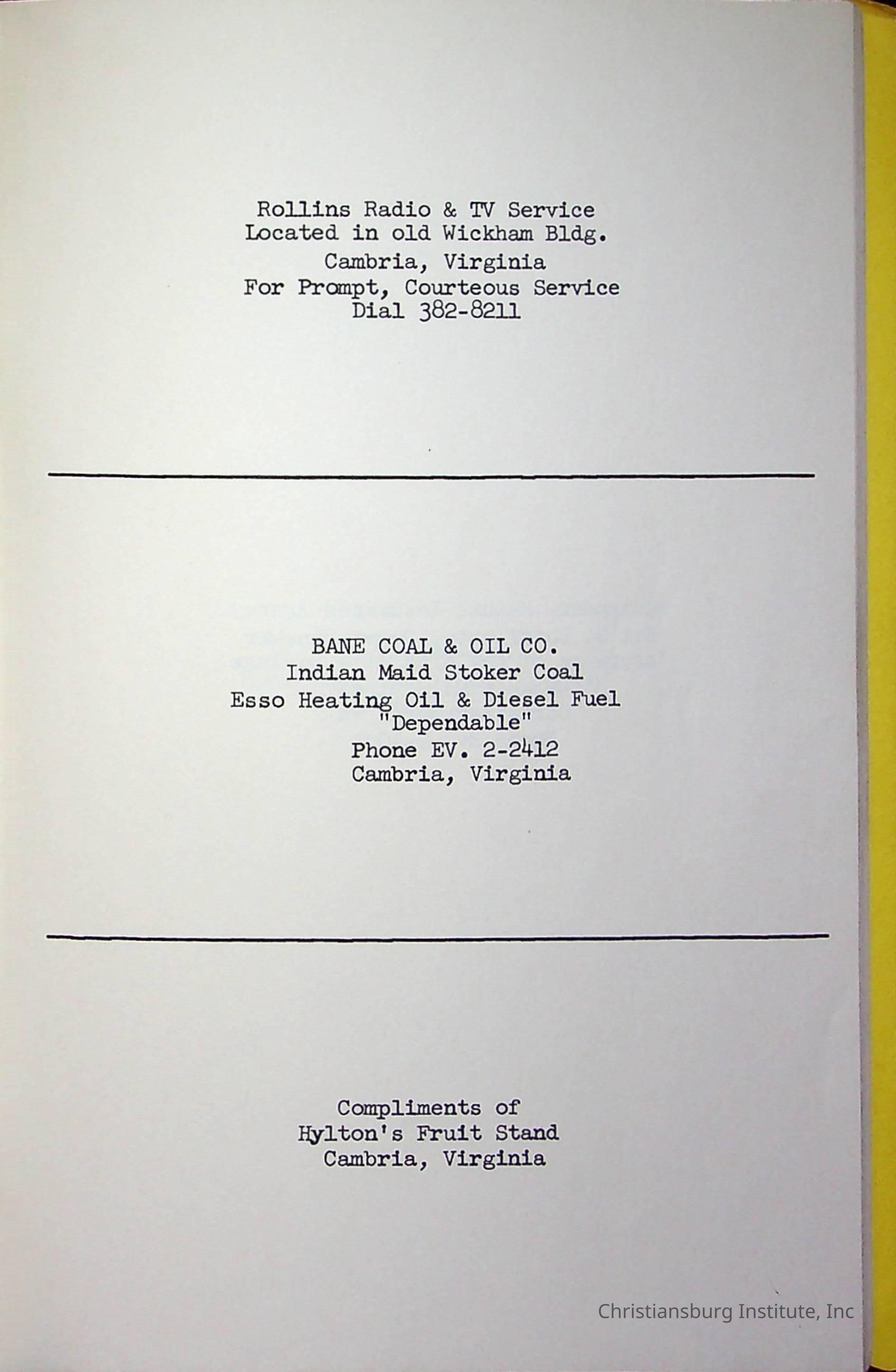 Christiansburg InstitutePlace Printed