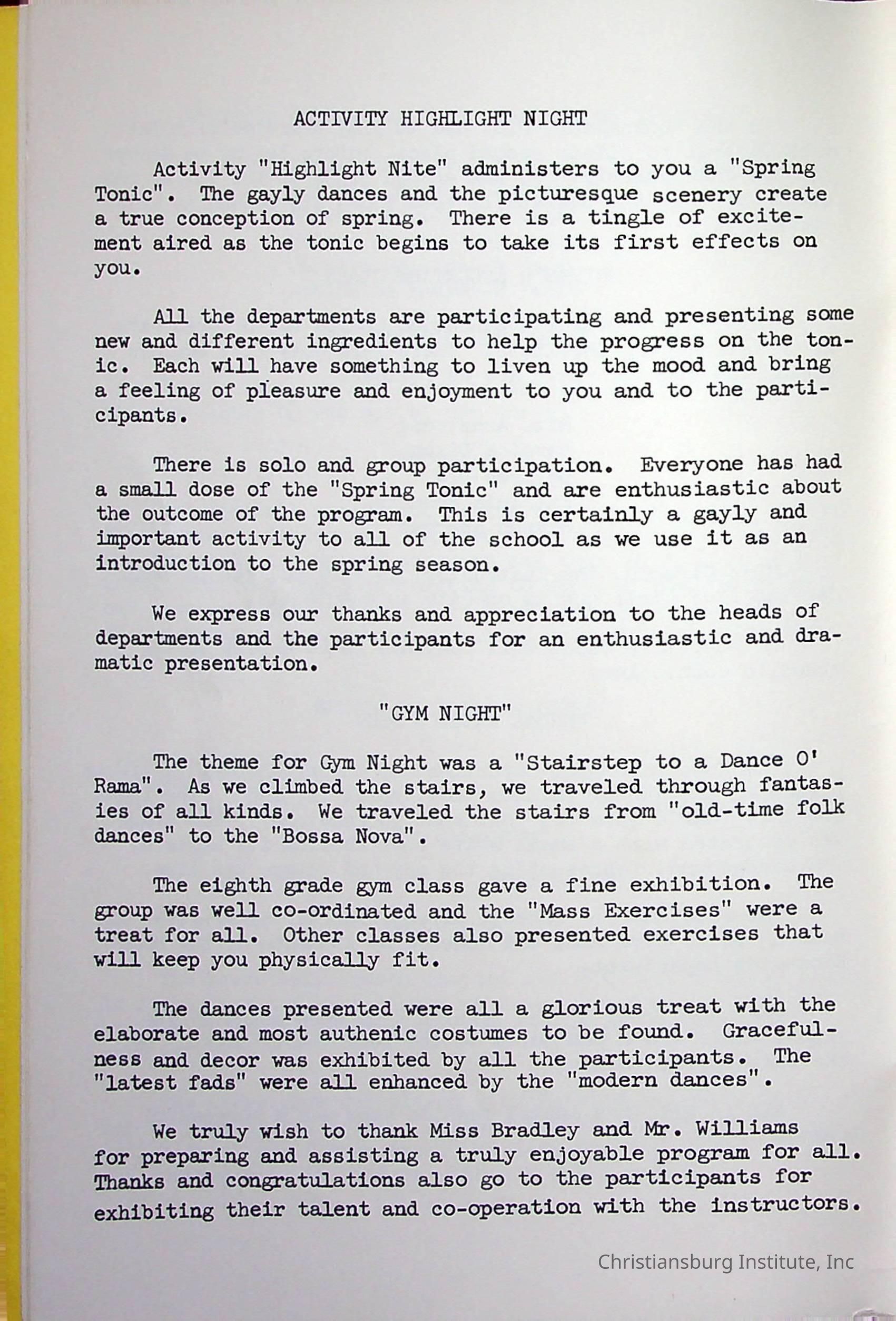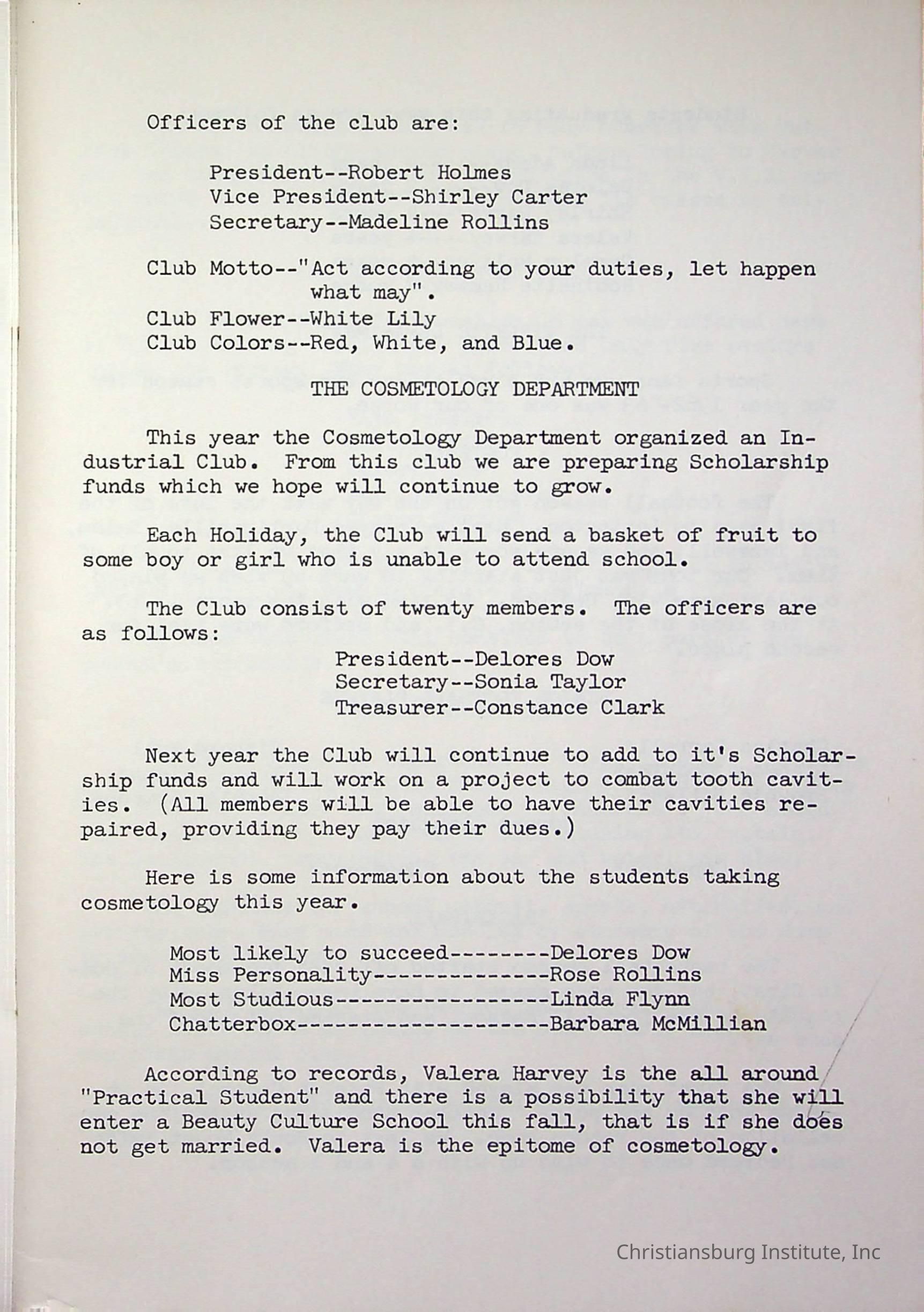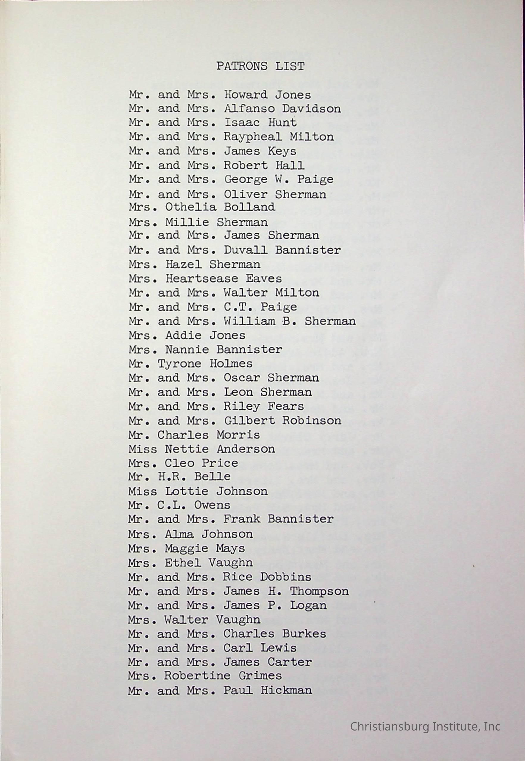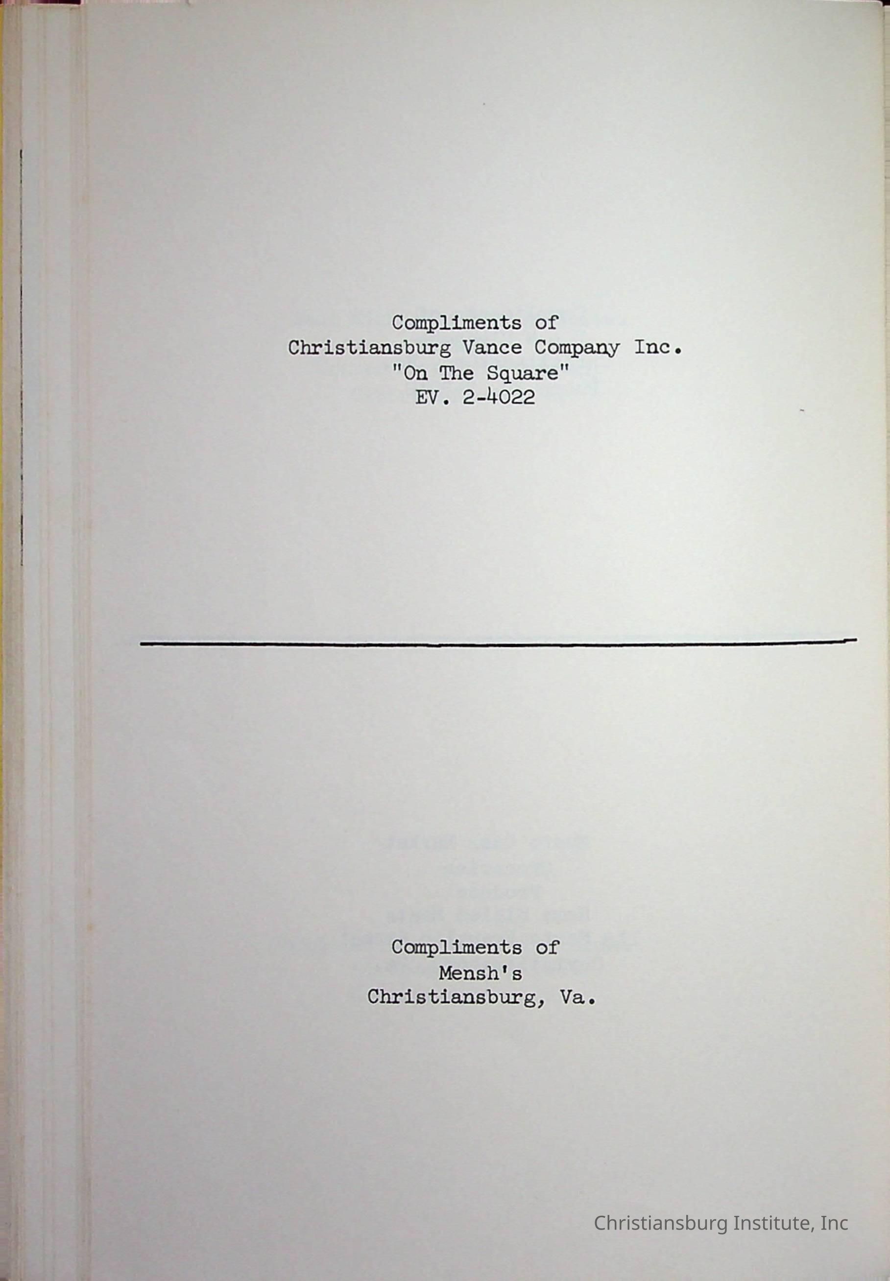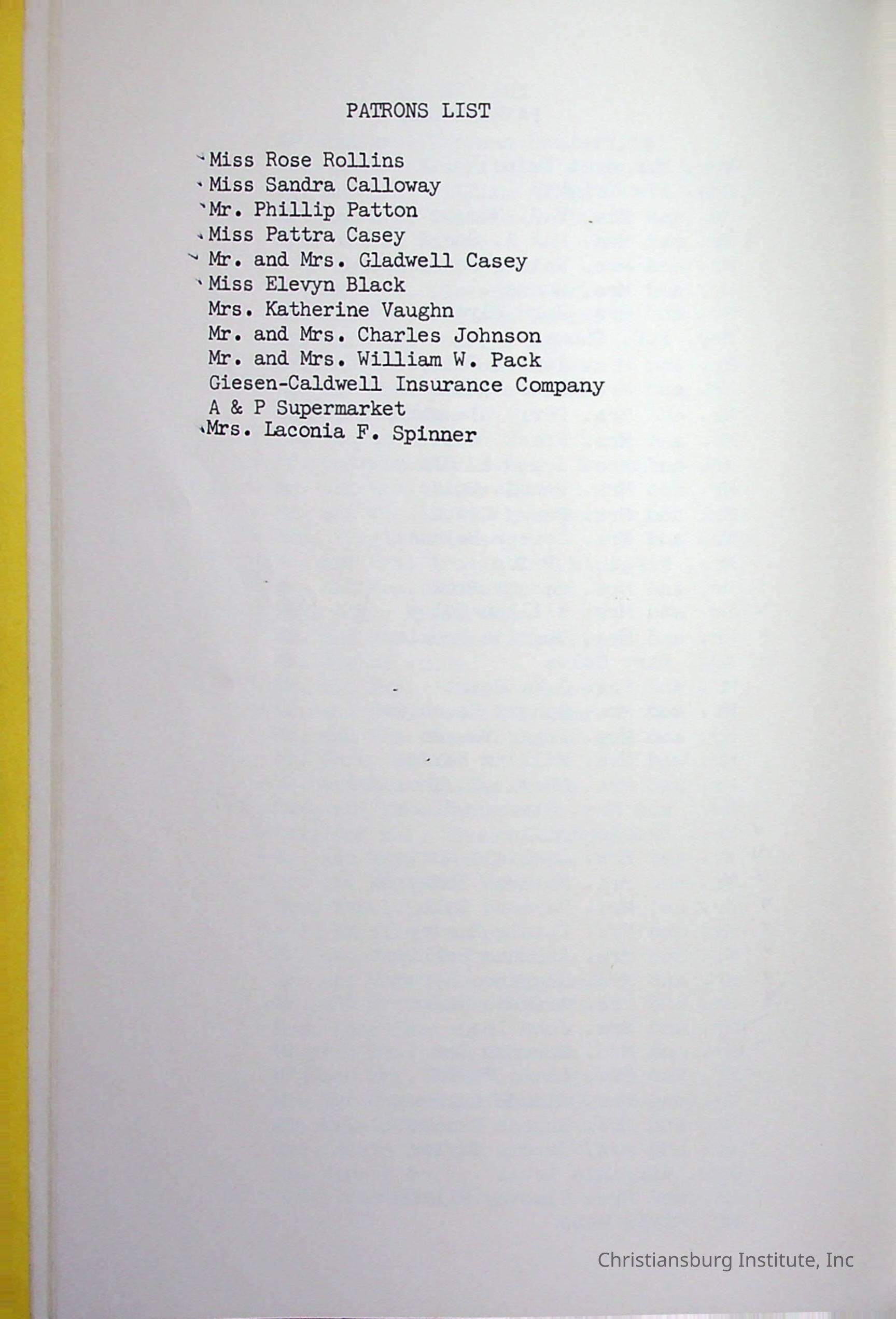 Christiansburg InstitutePlace Printed