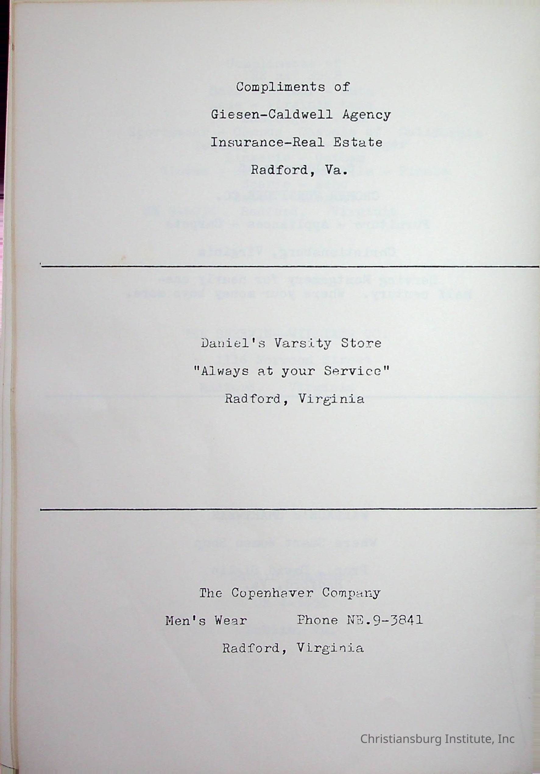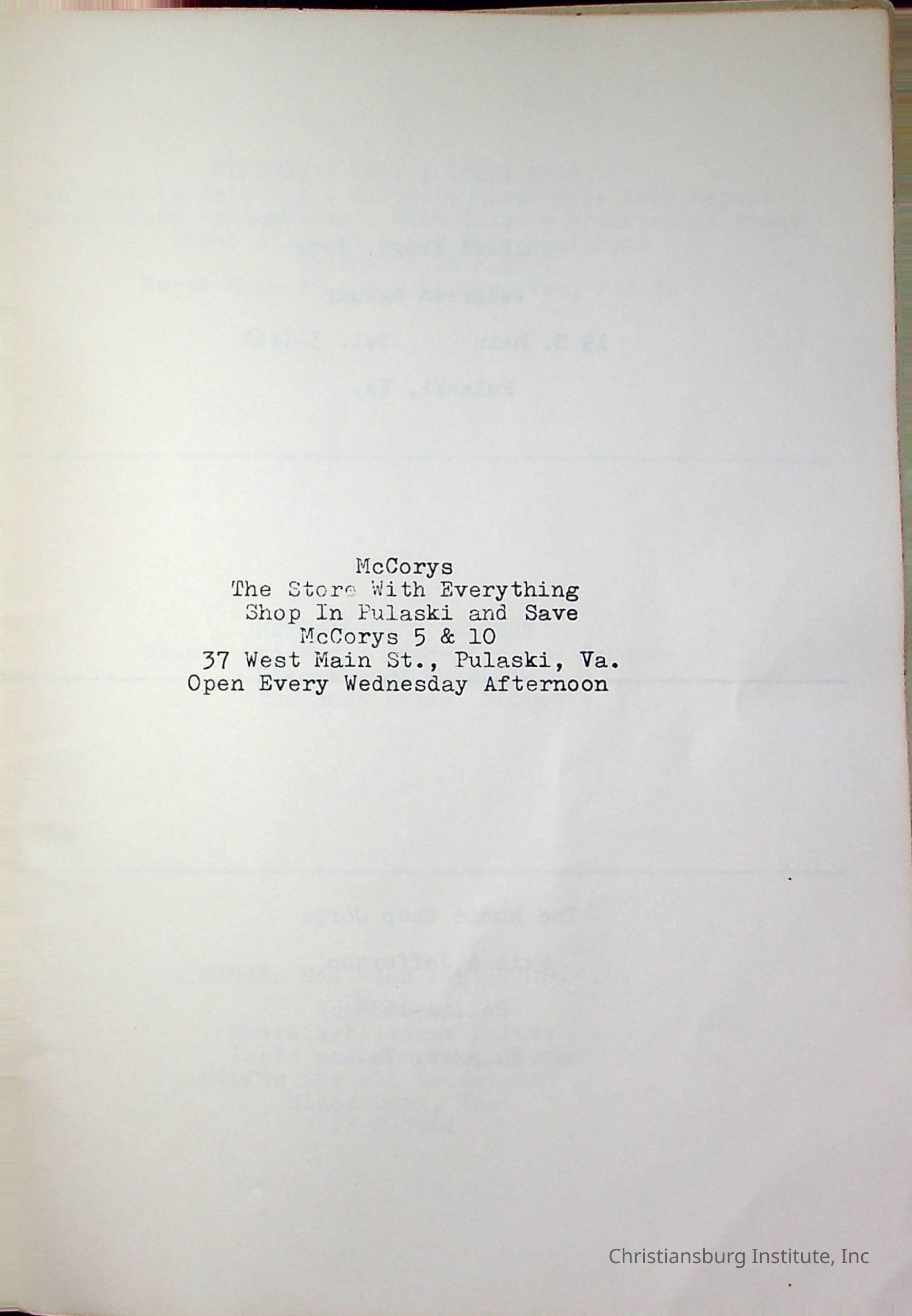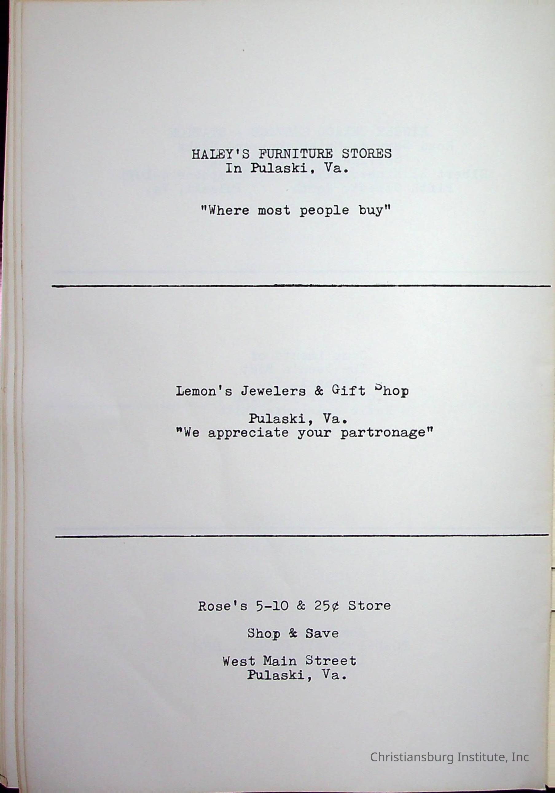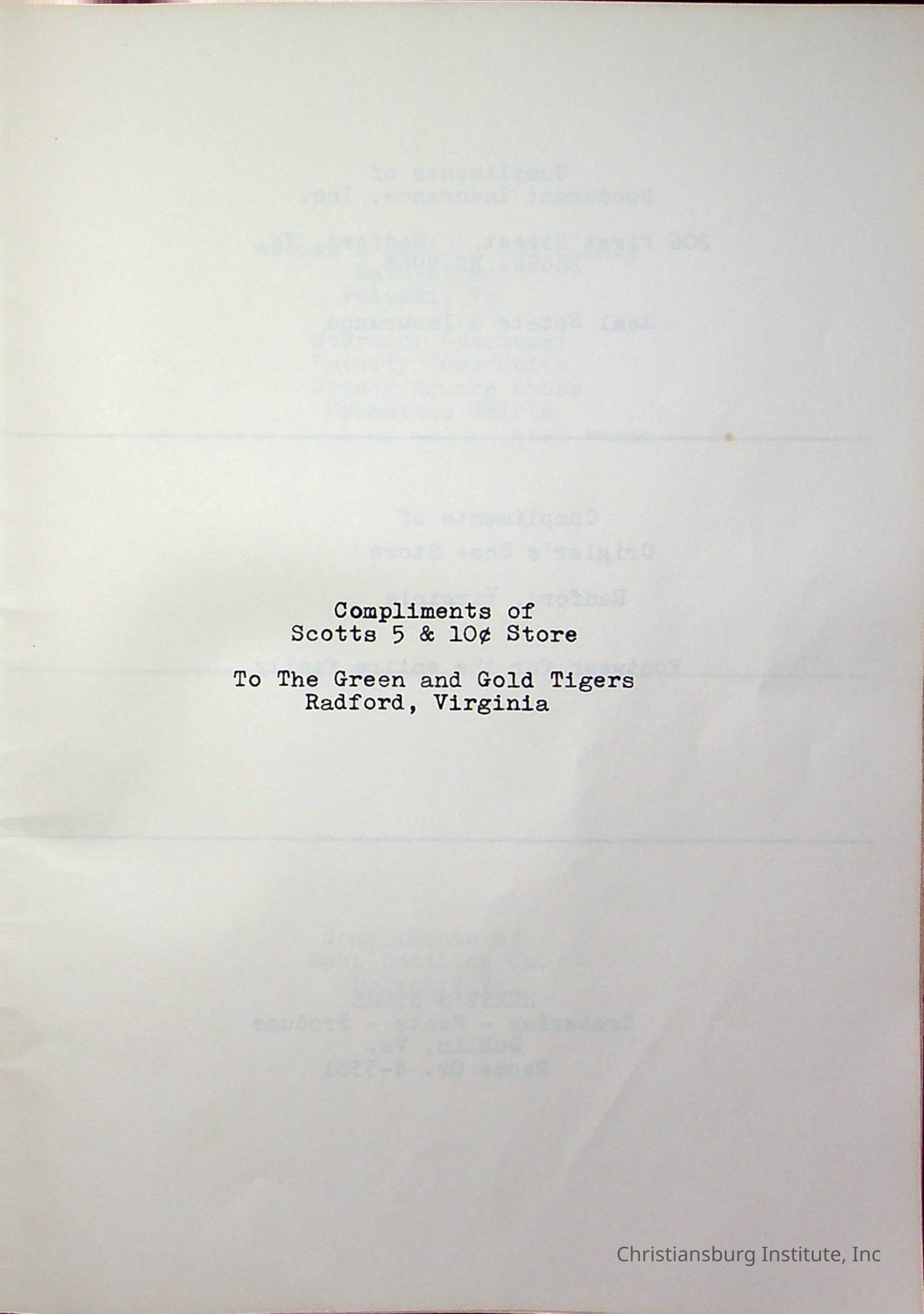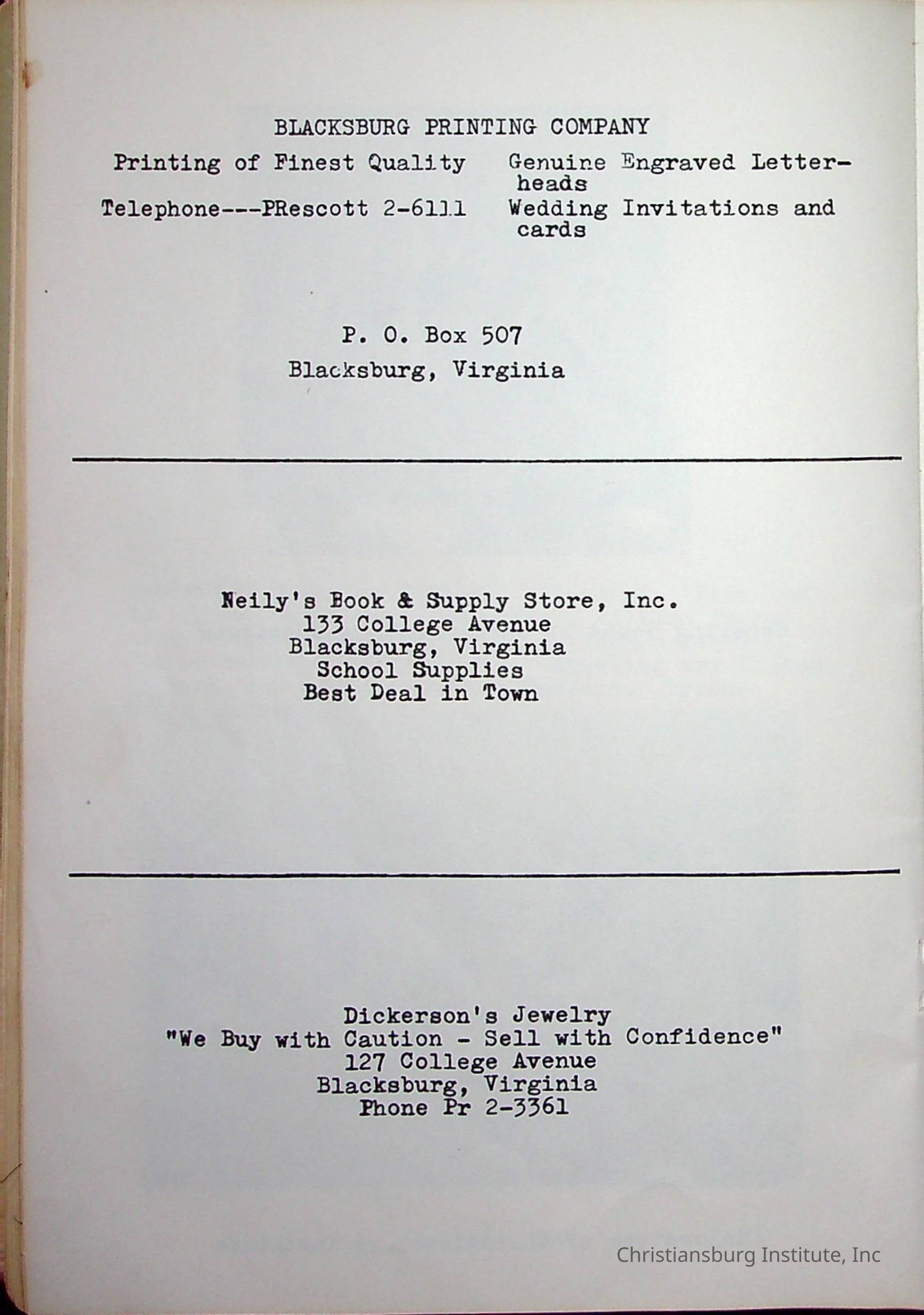 Christiansburg InstitutePlace Printed