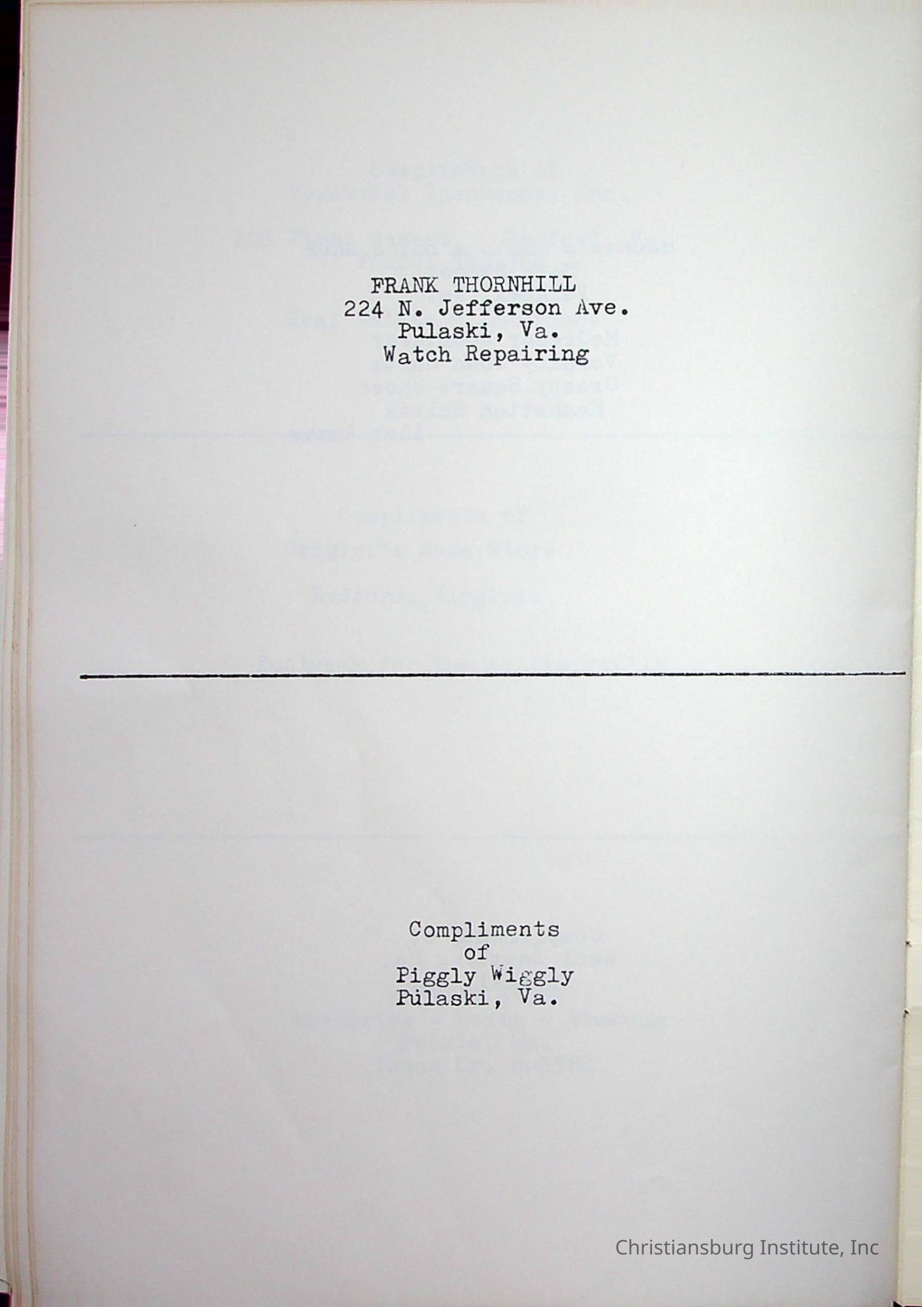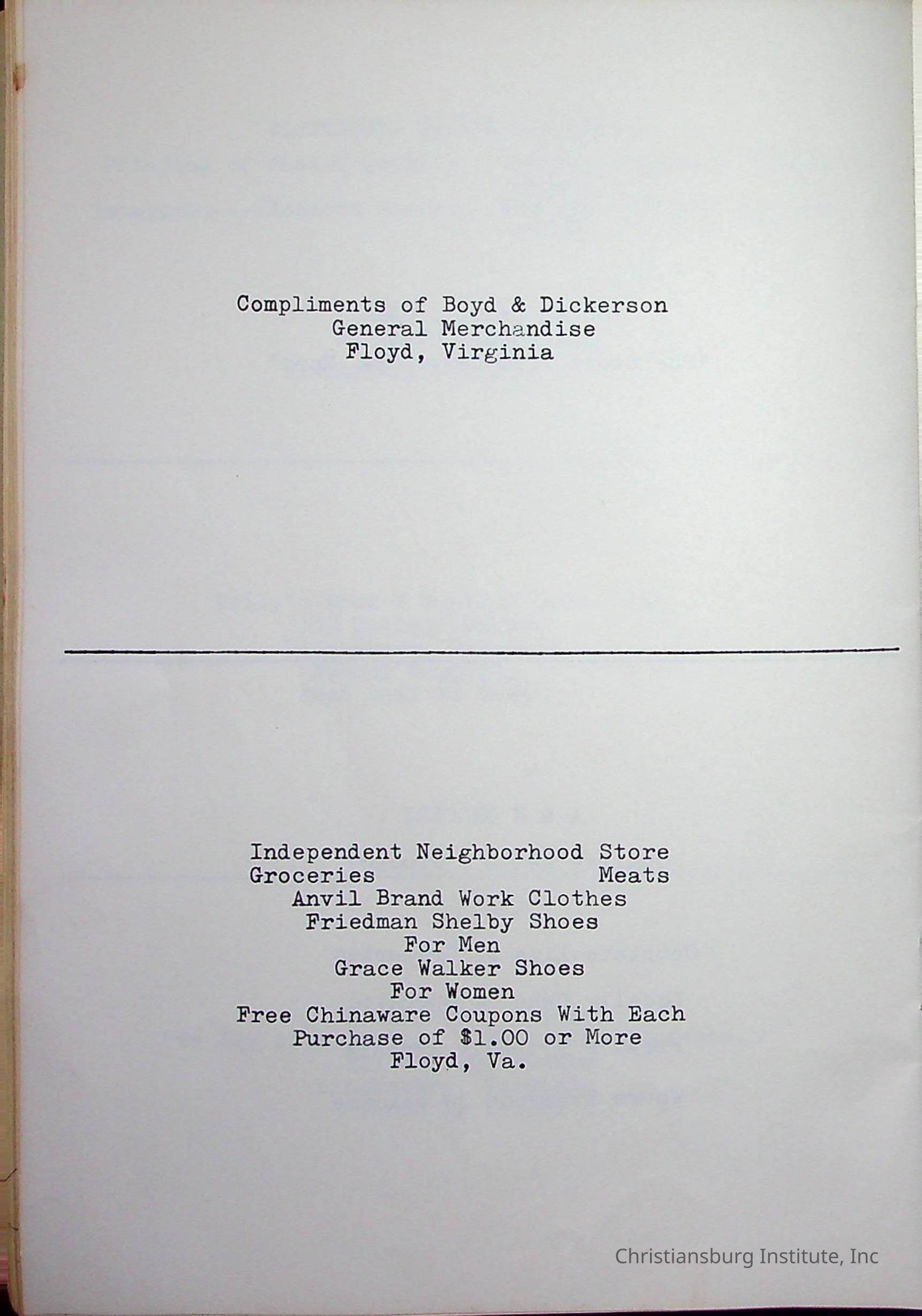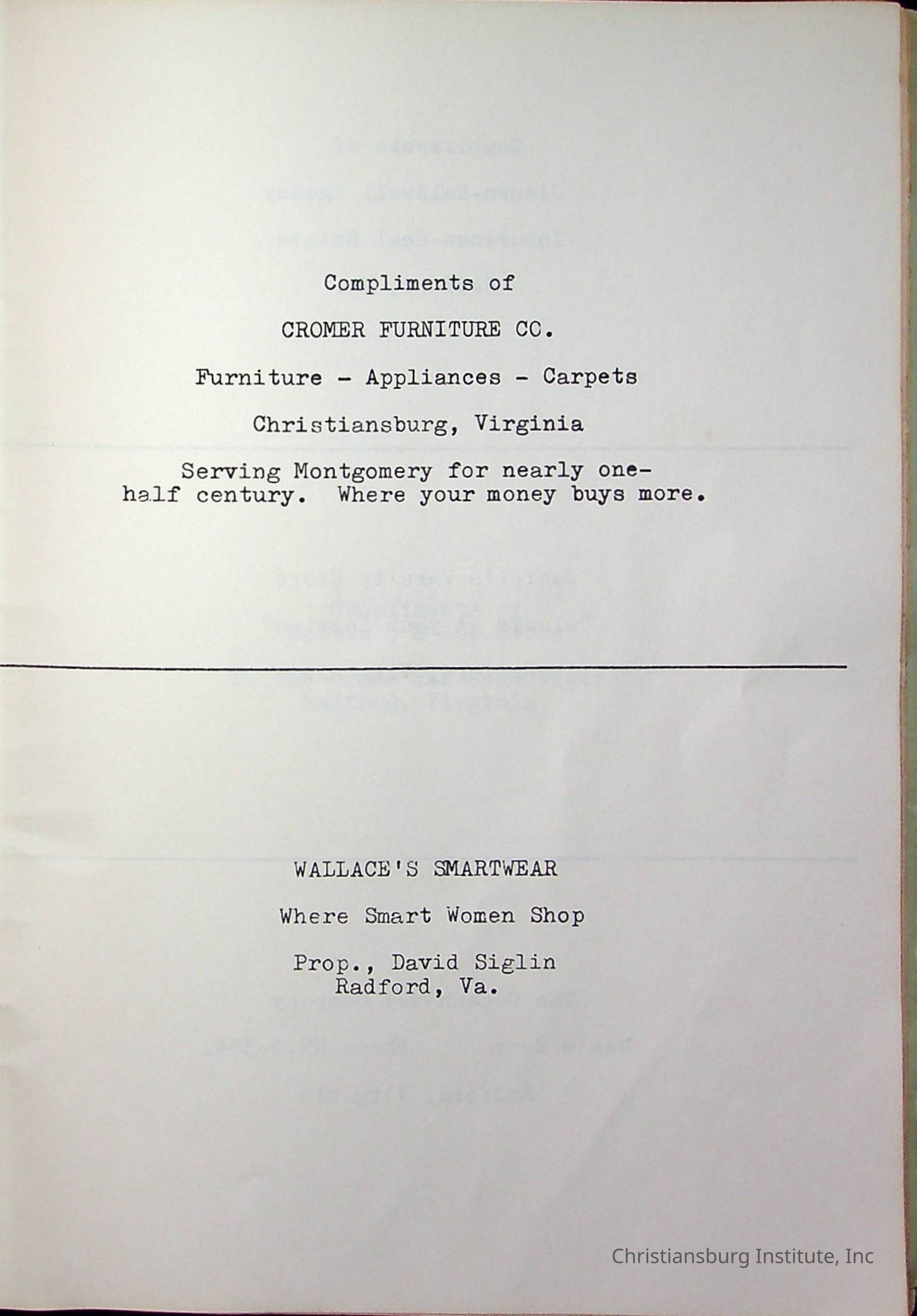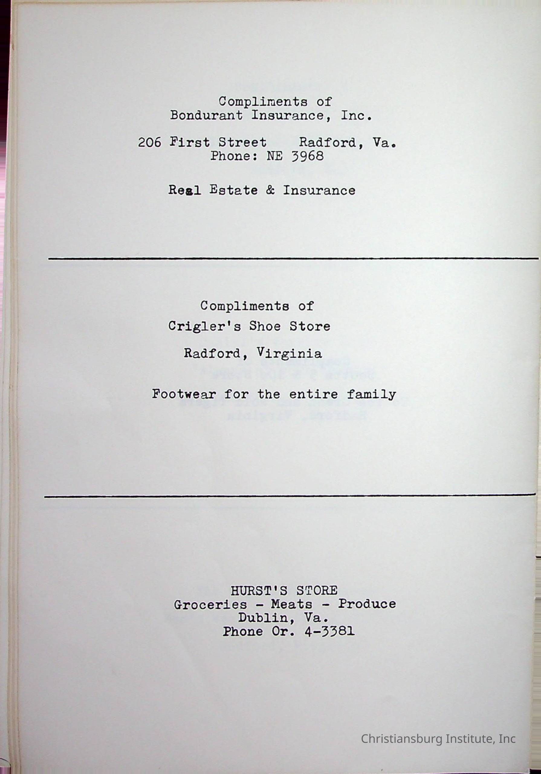 Christiansburg InstitutePlace Printed