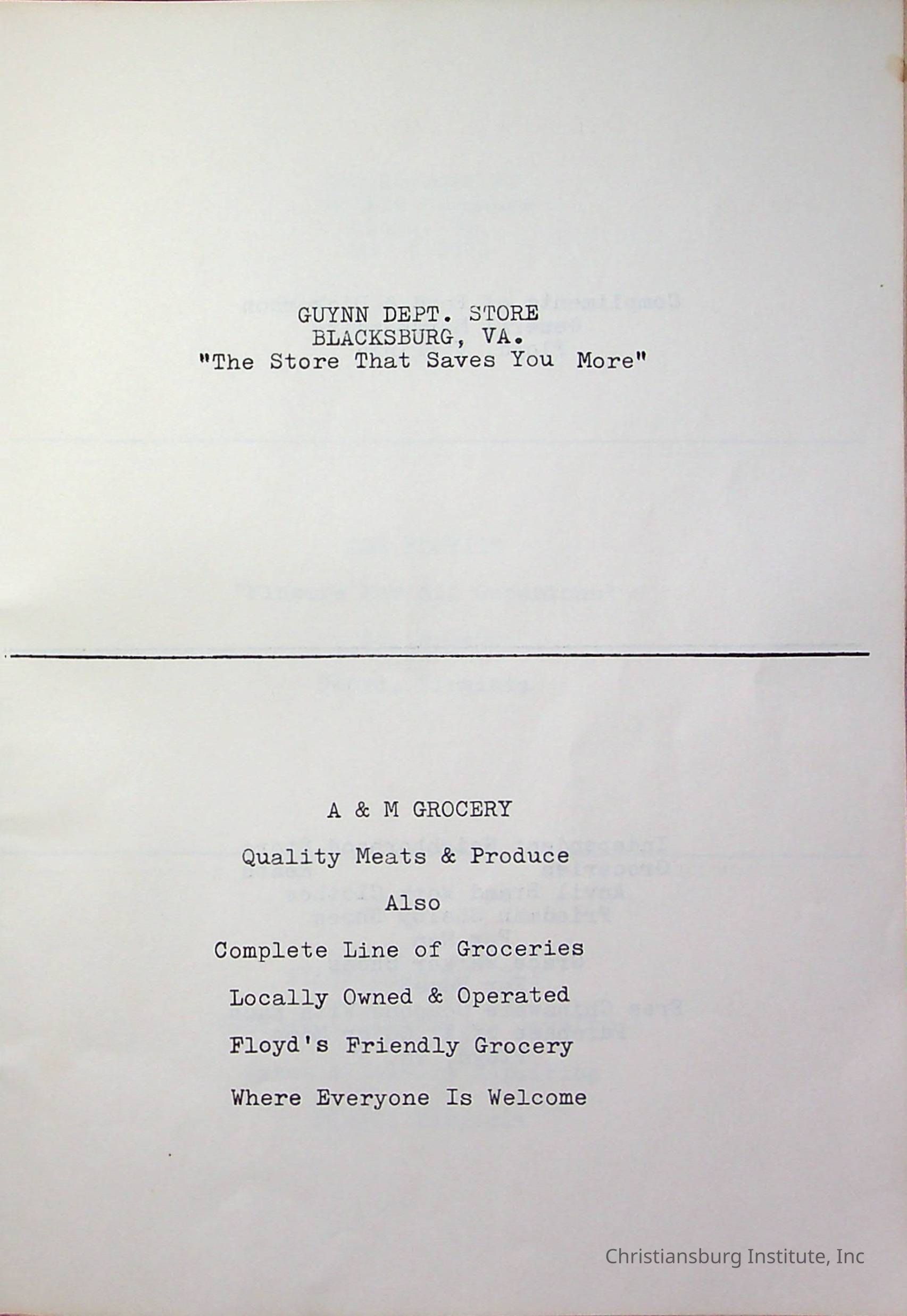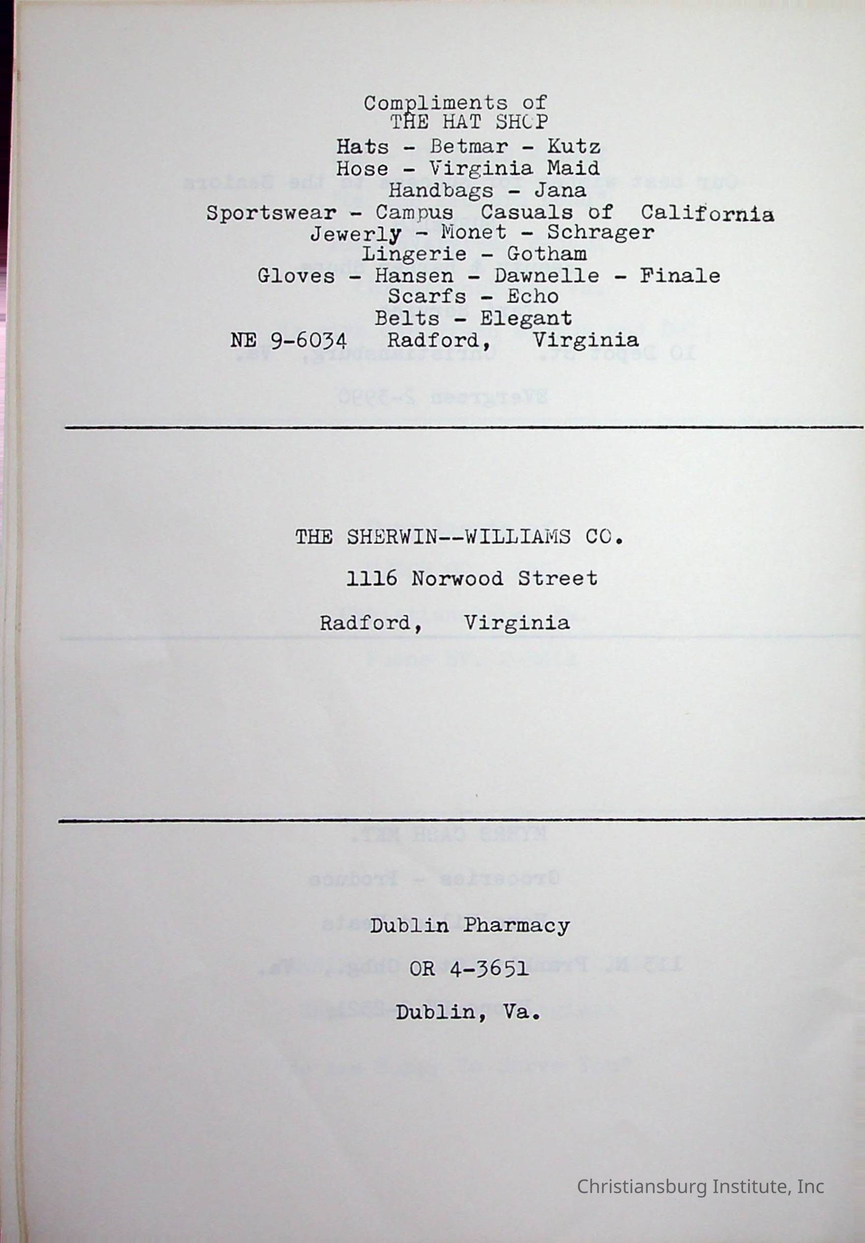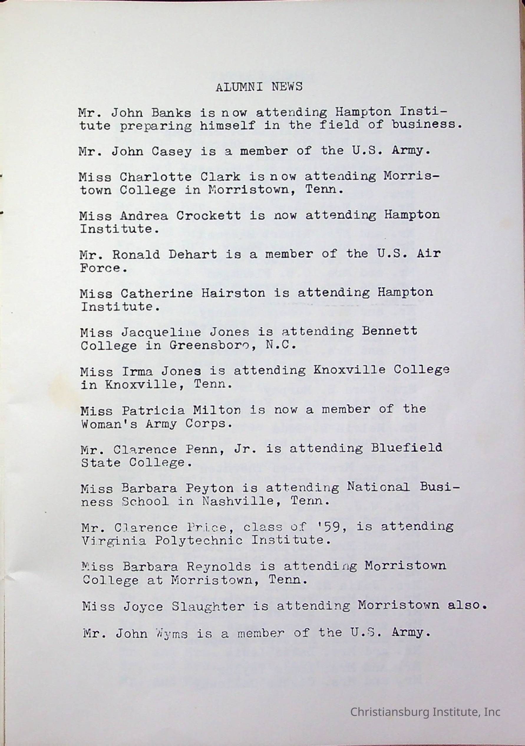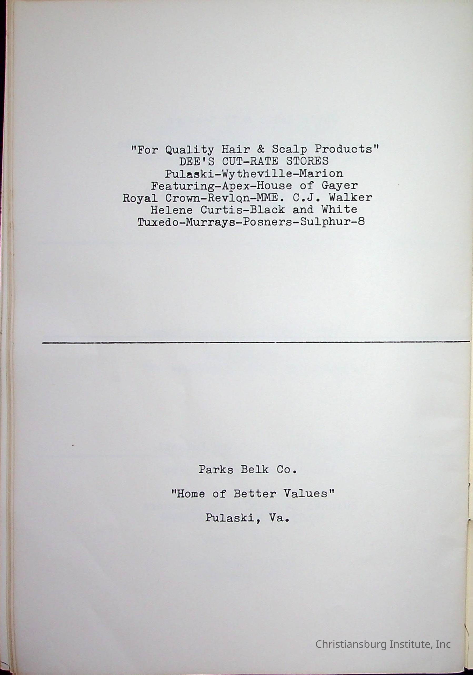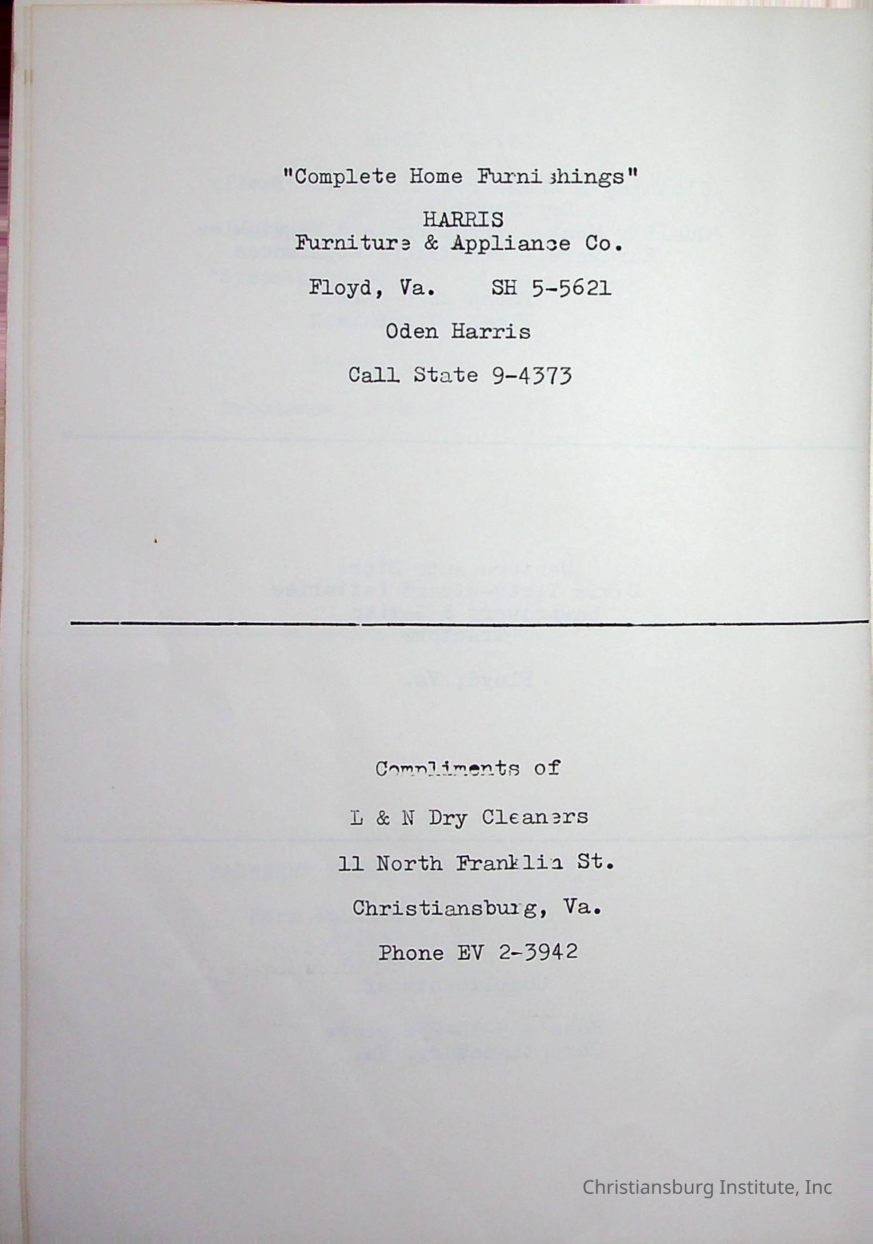 Christiansburg InstitutePlace Printed