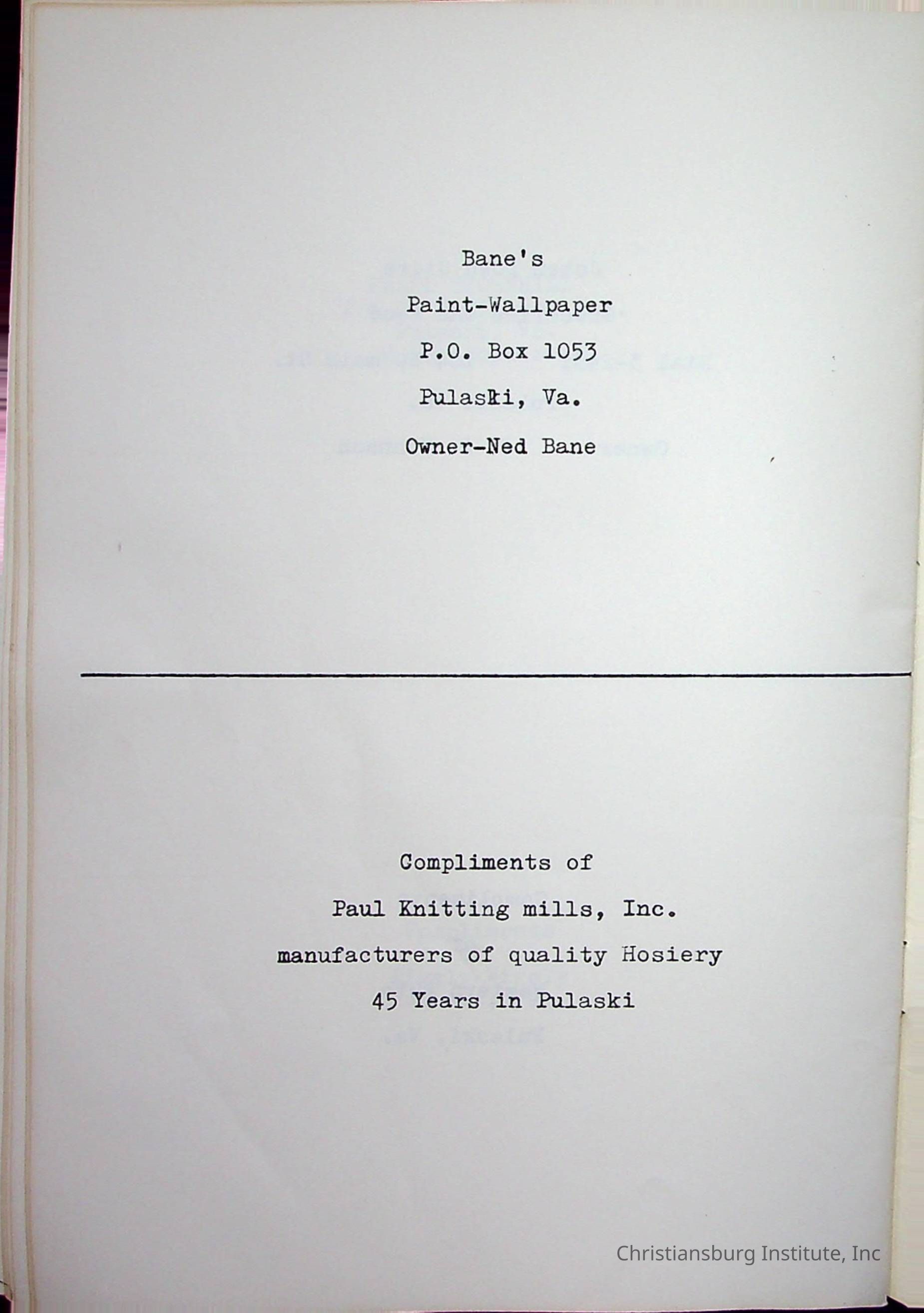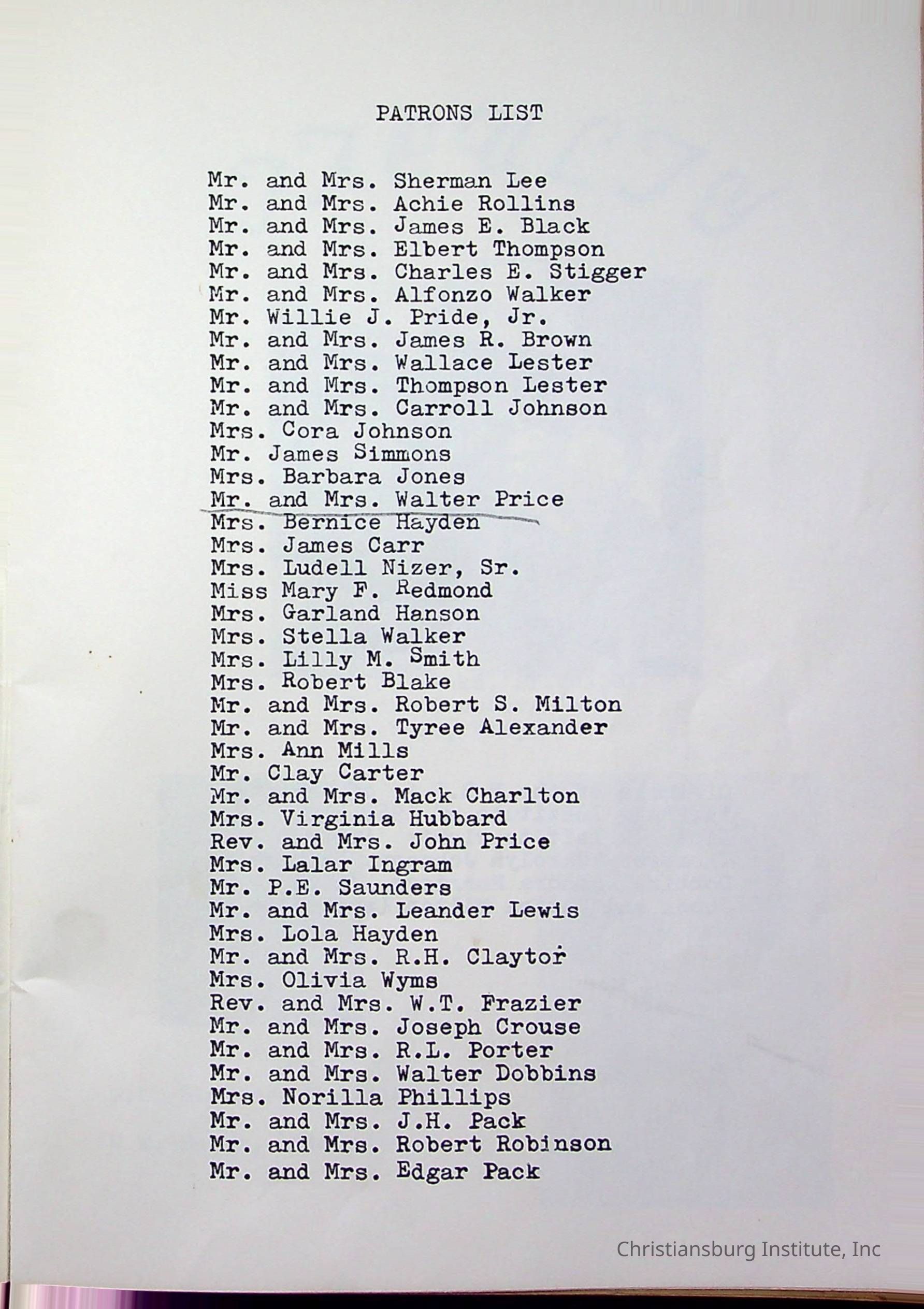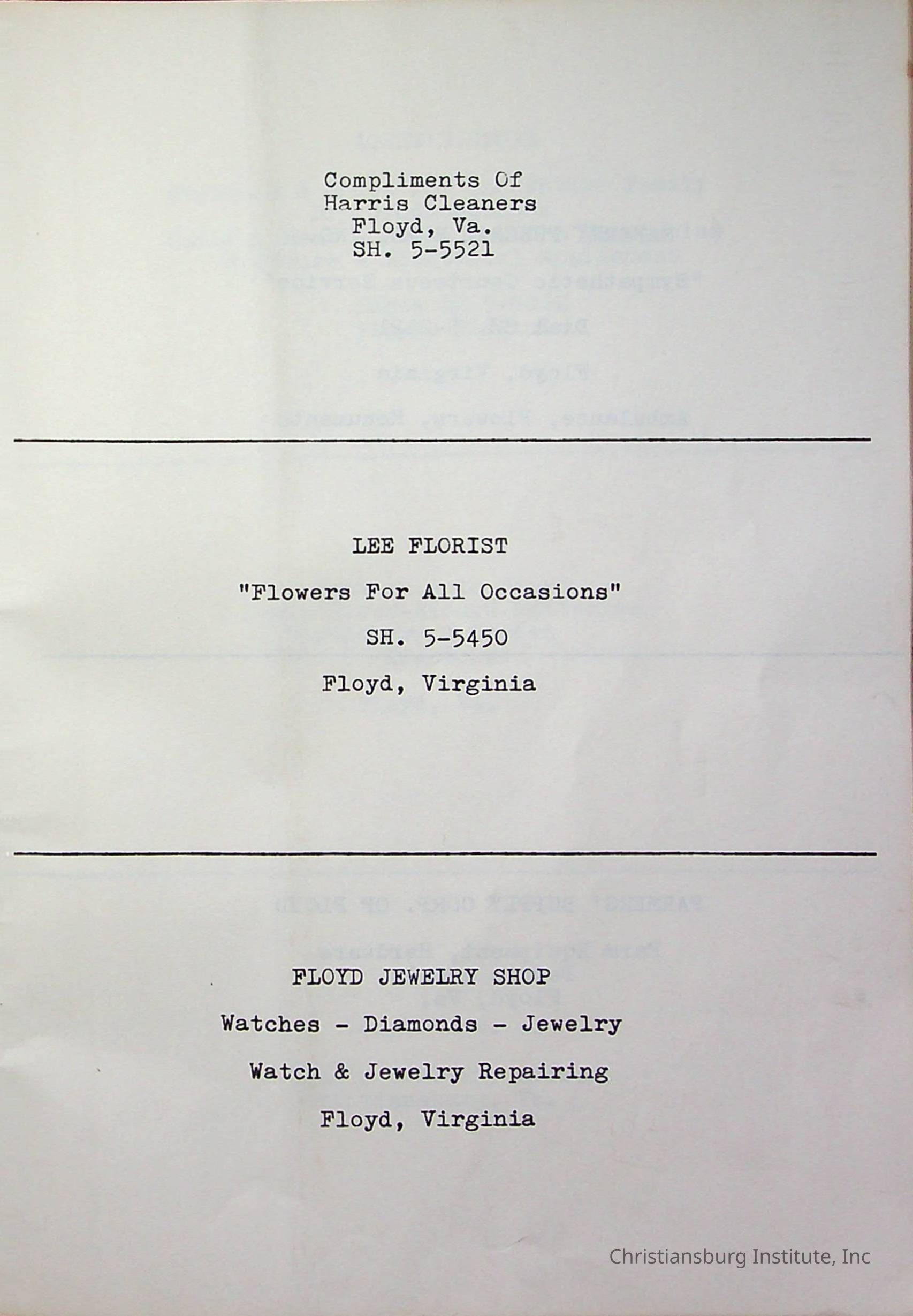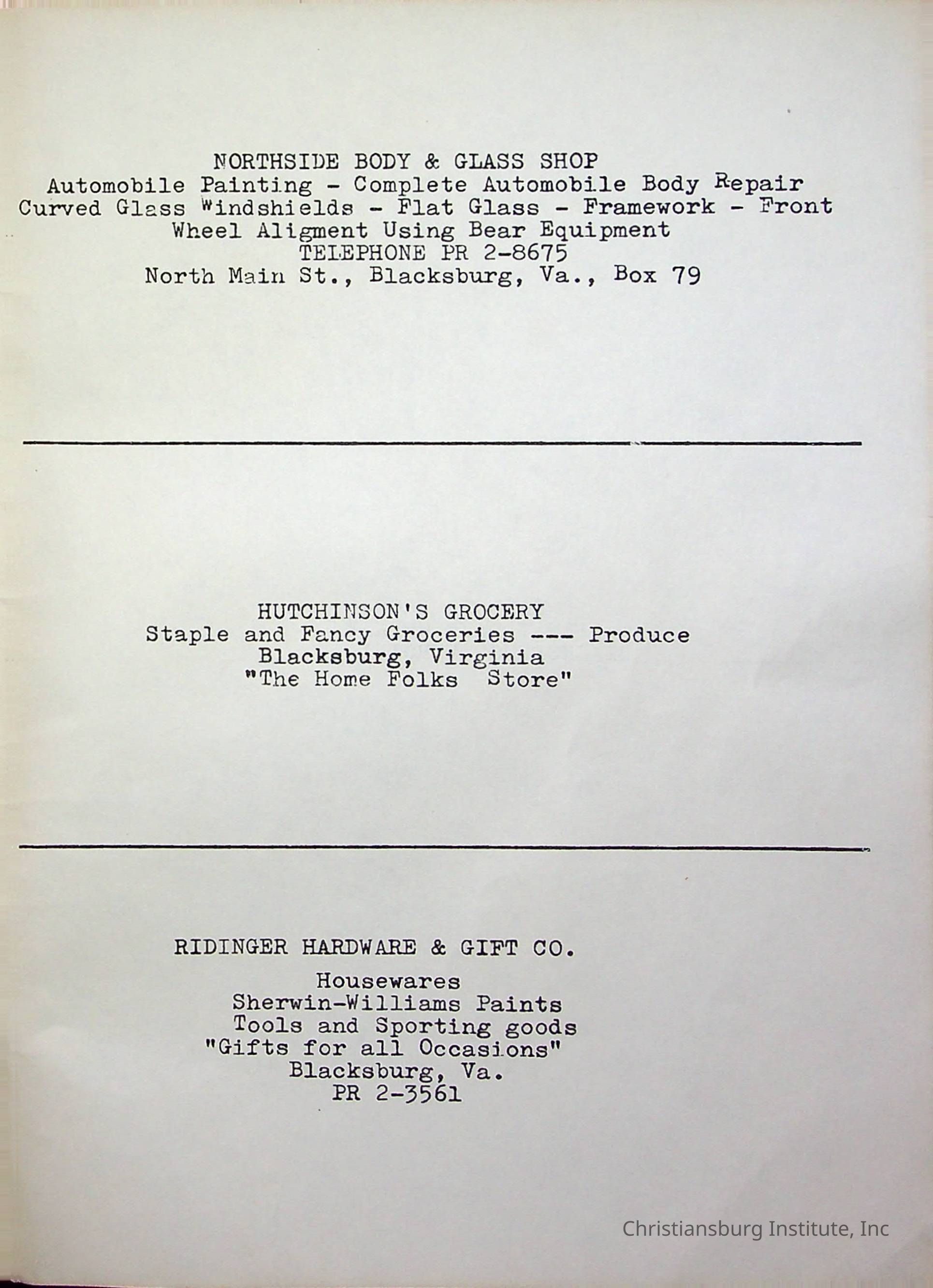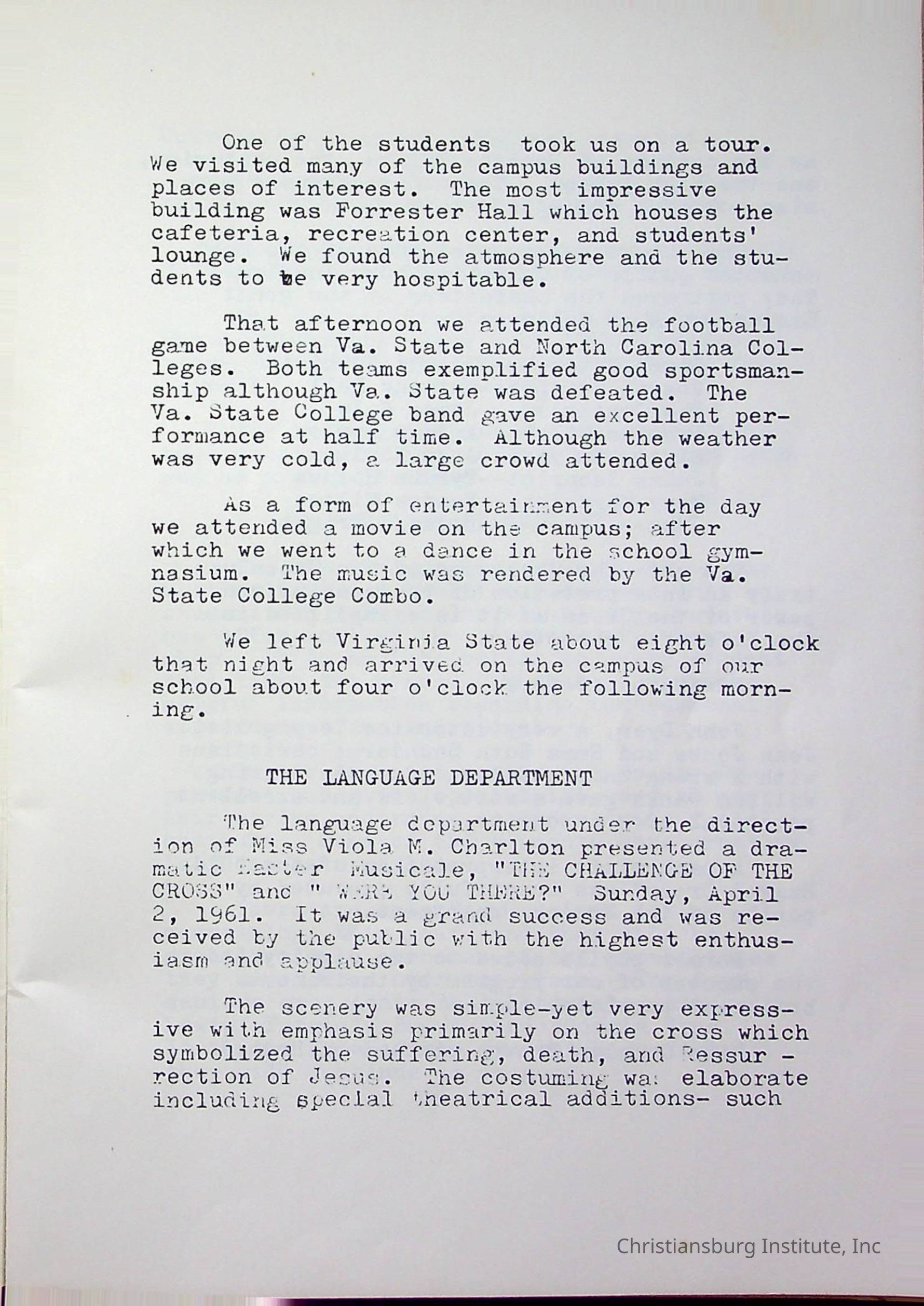 Christiansburg InstitutePlace Printed