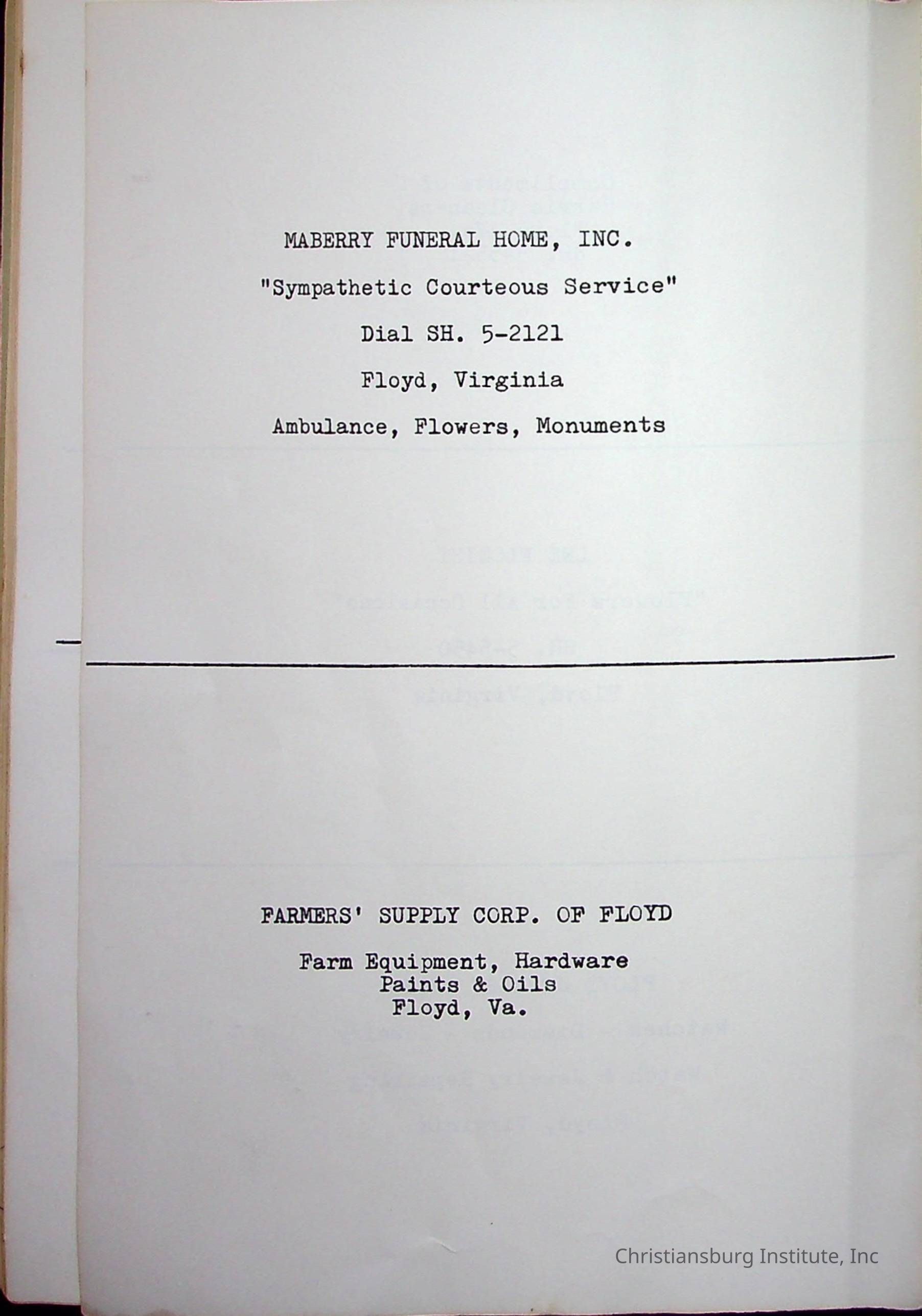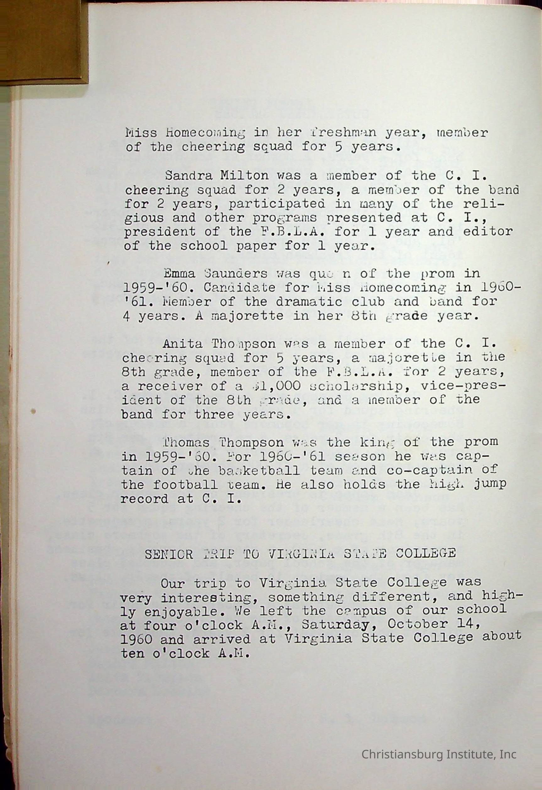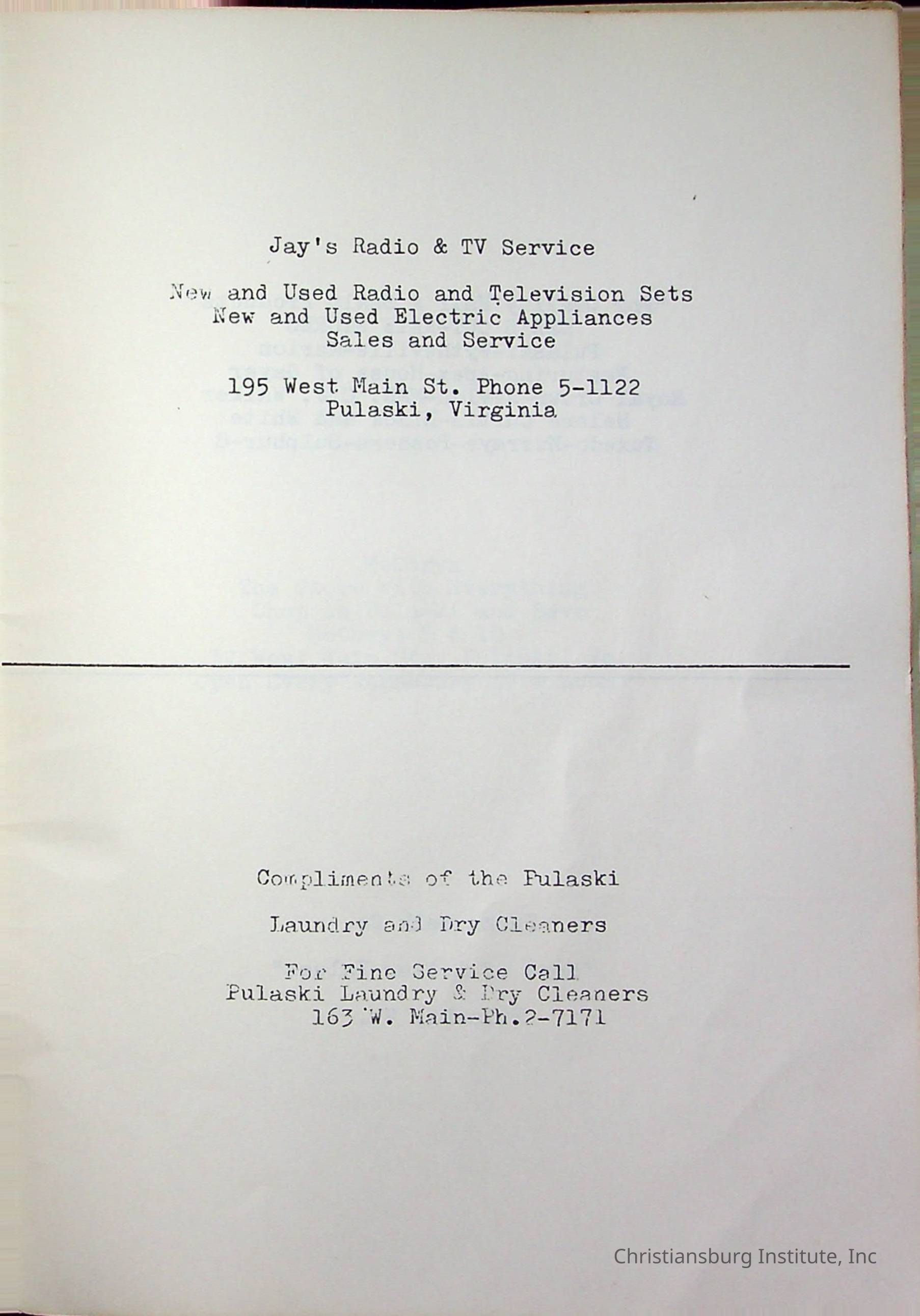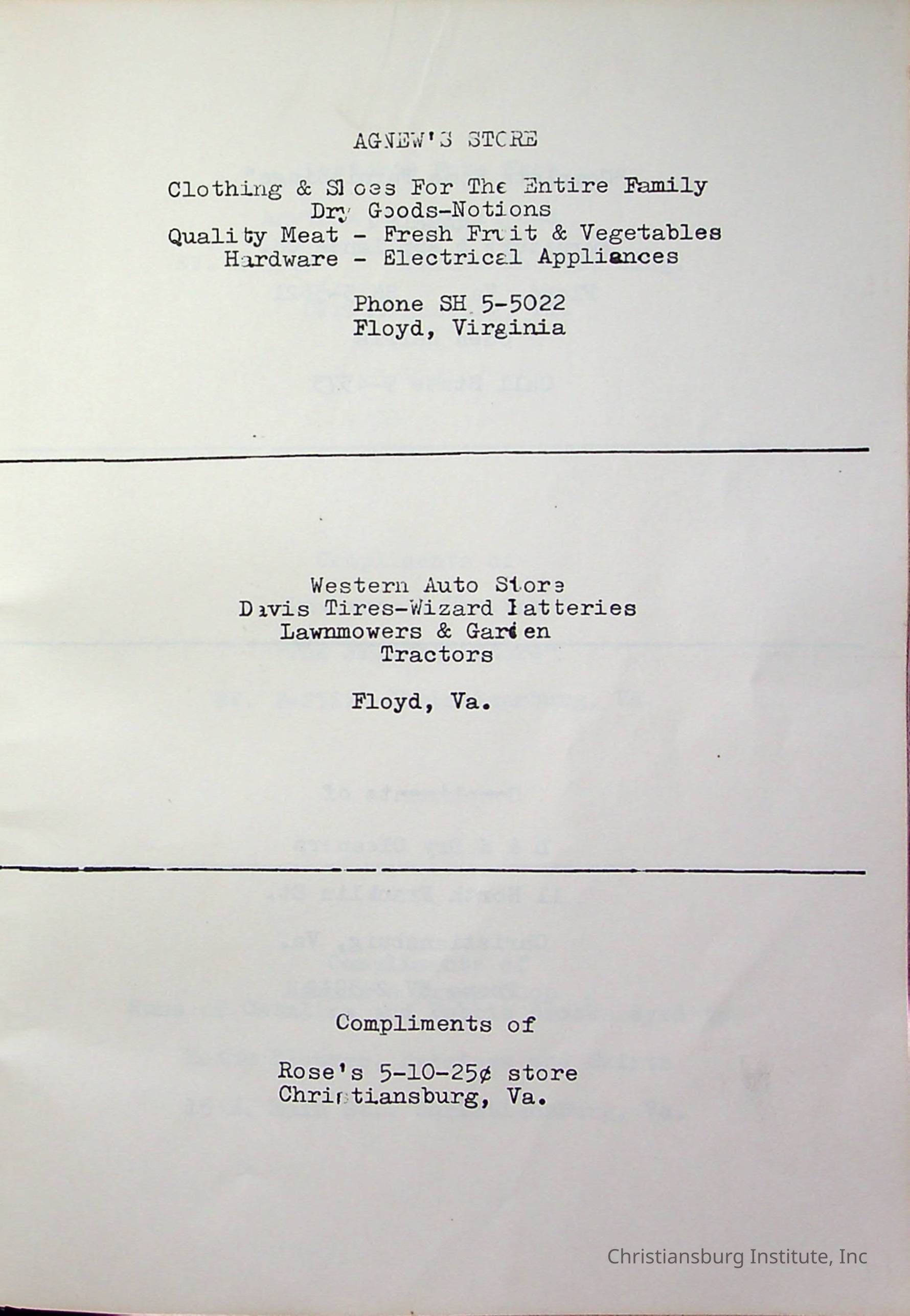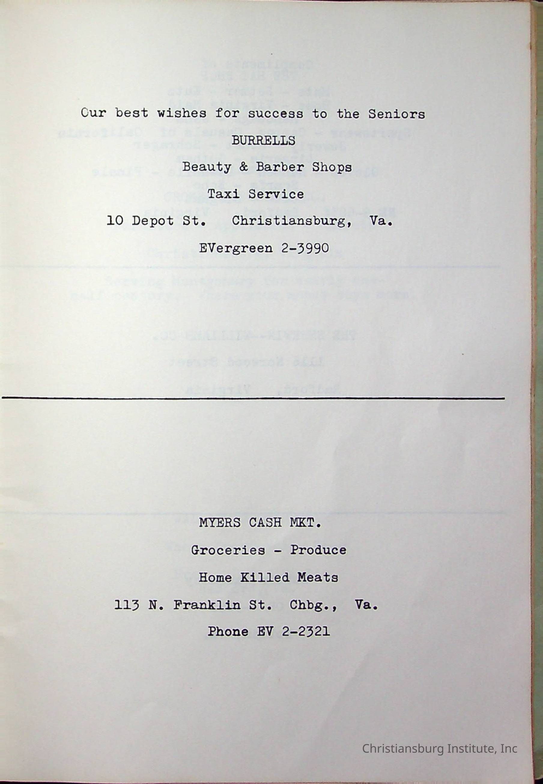 Christiansburg InstitutePlace Printed