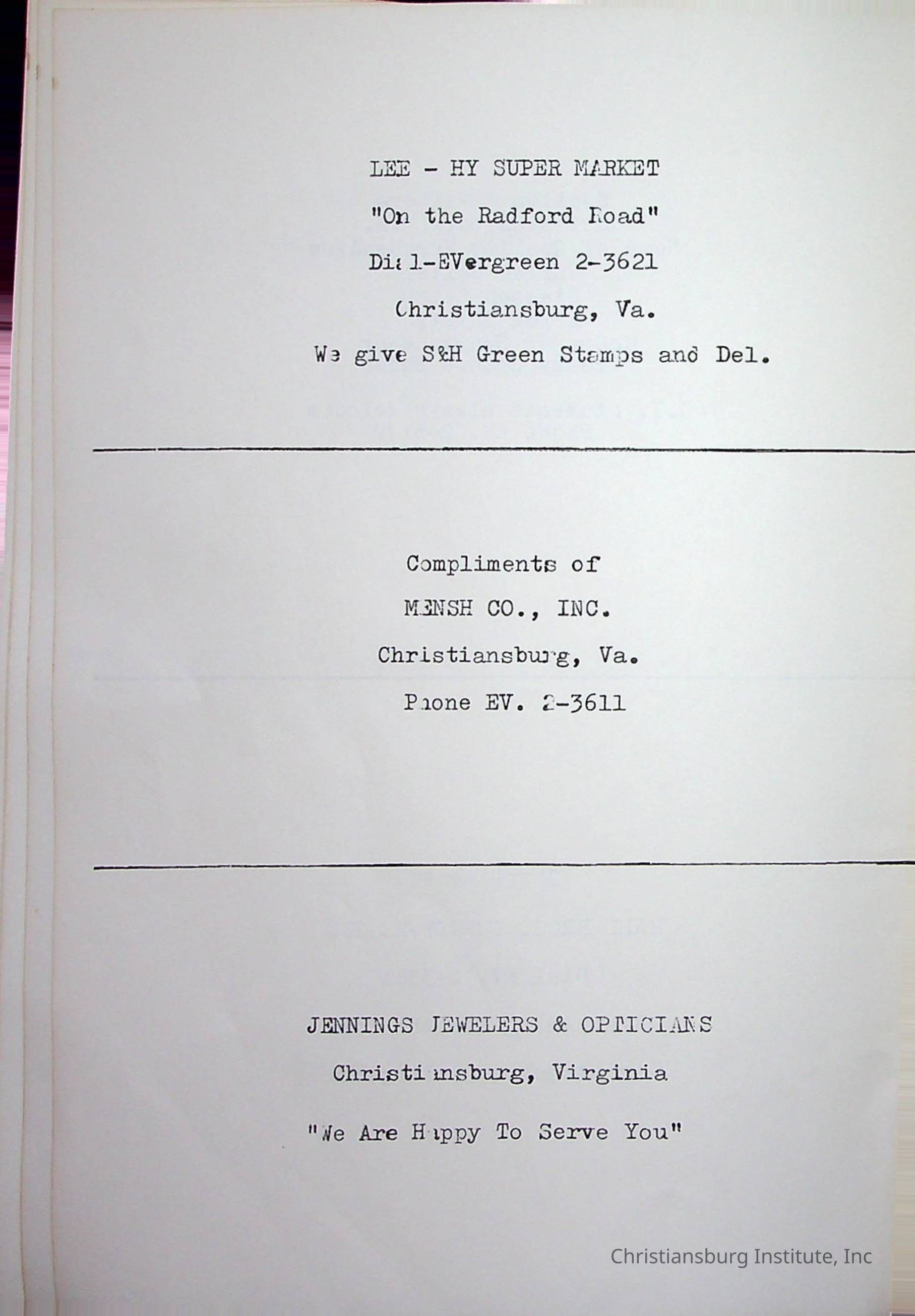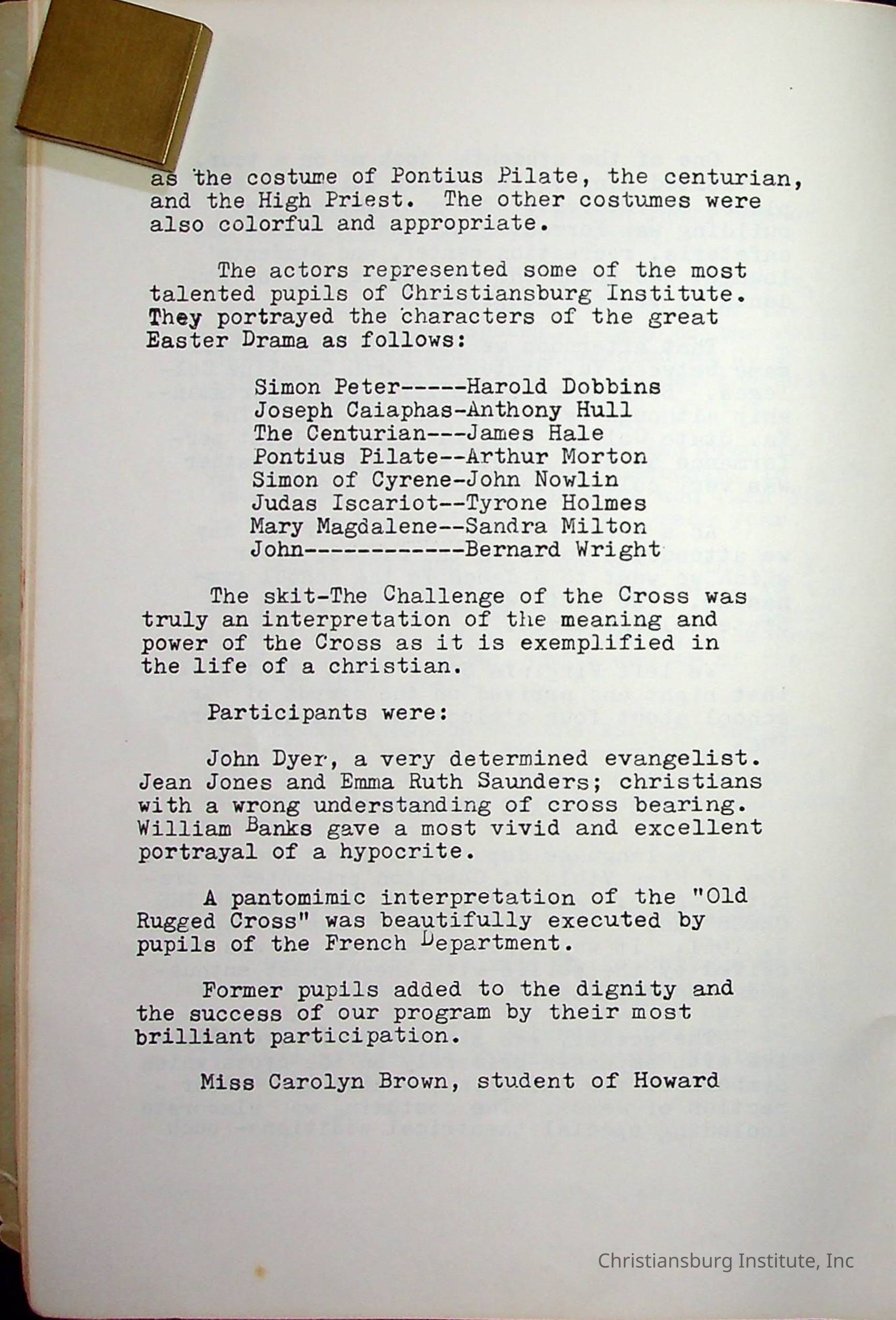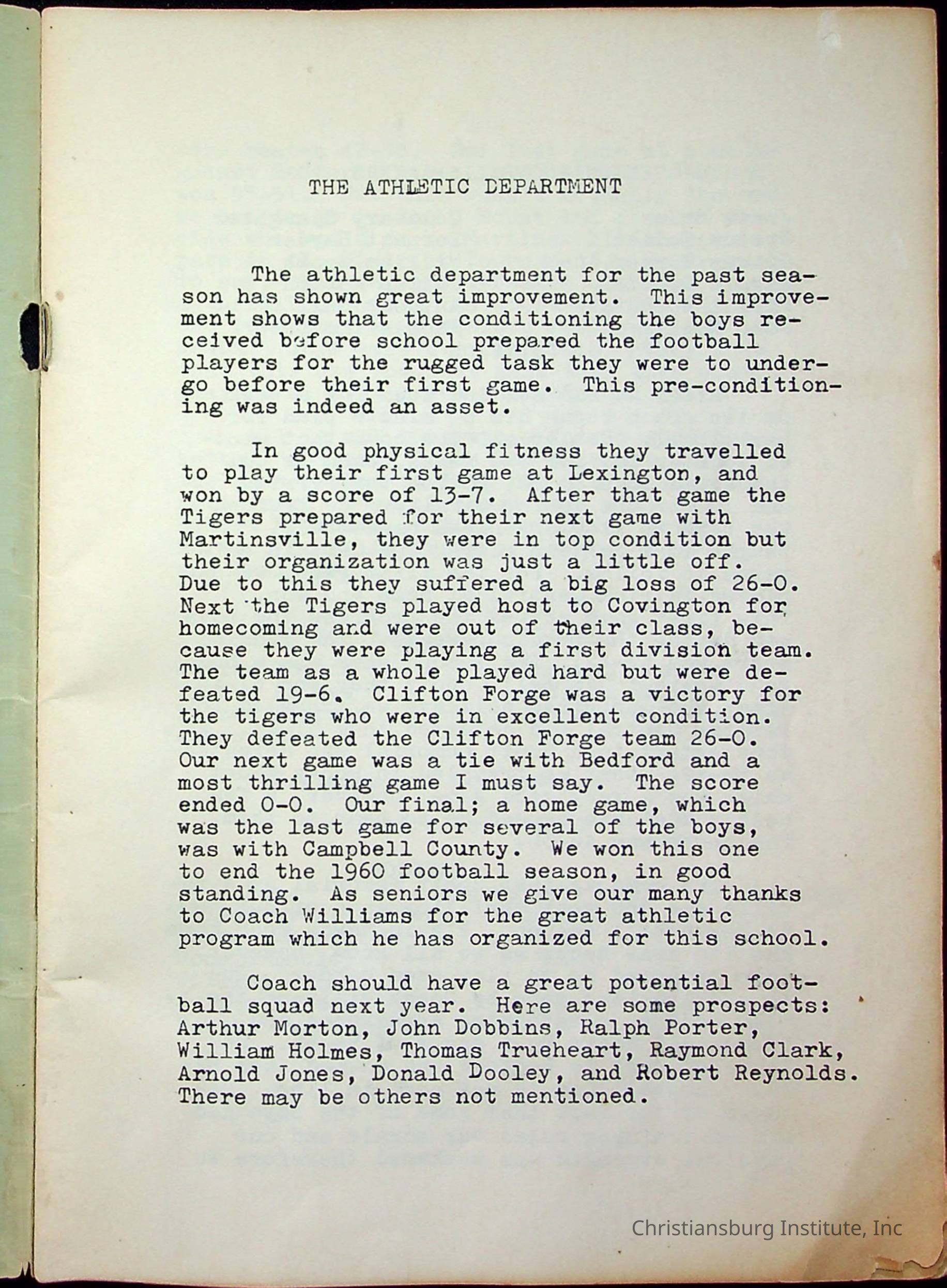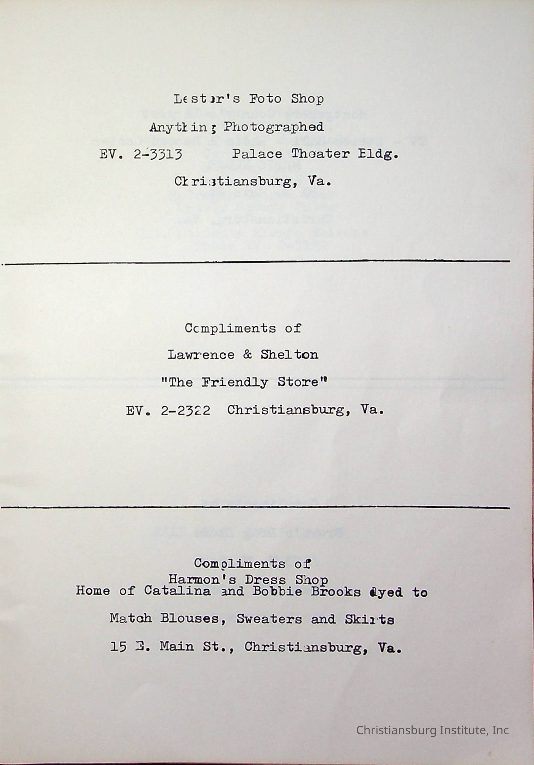 Christiansburg InstitutePlace Printed