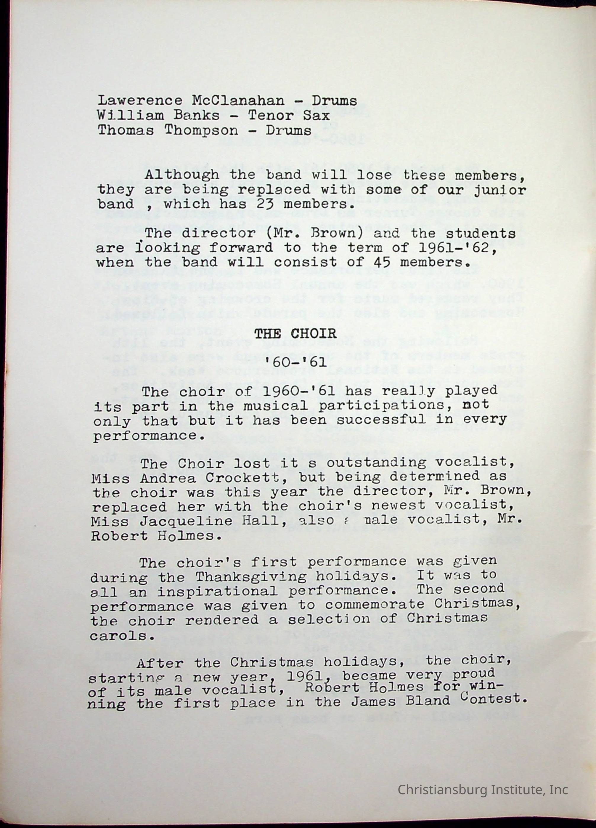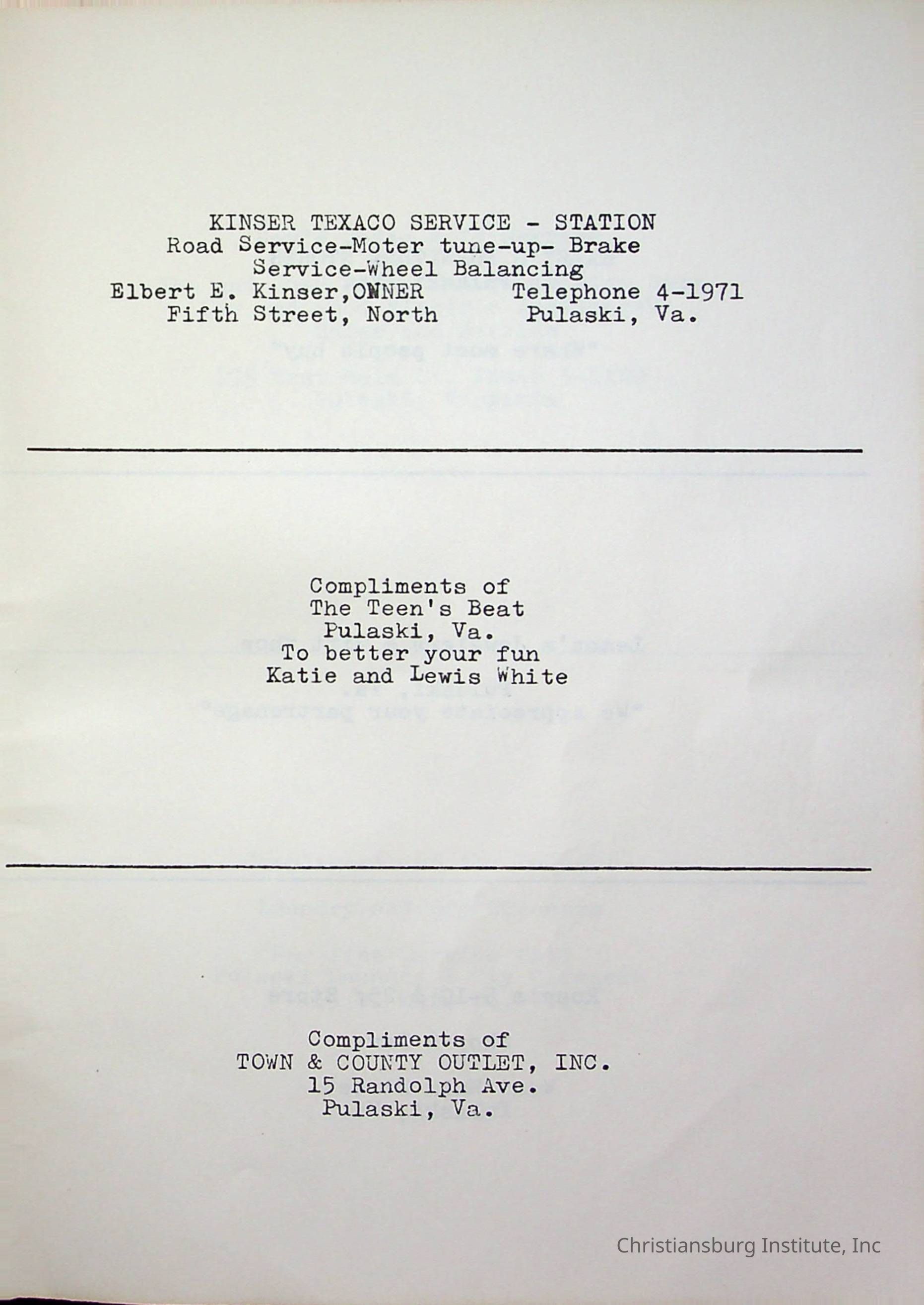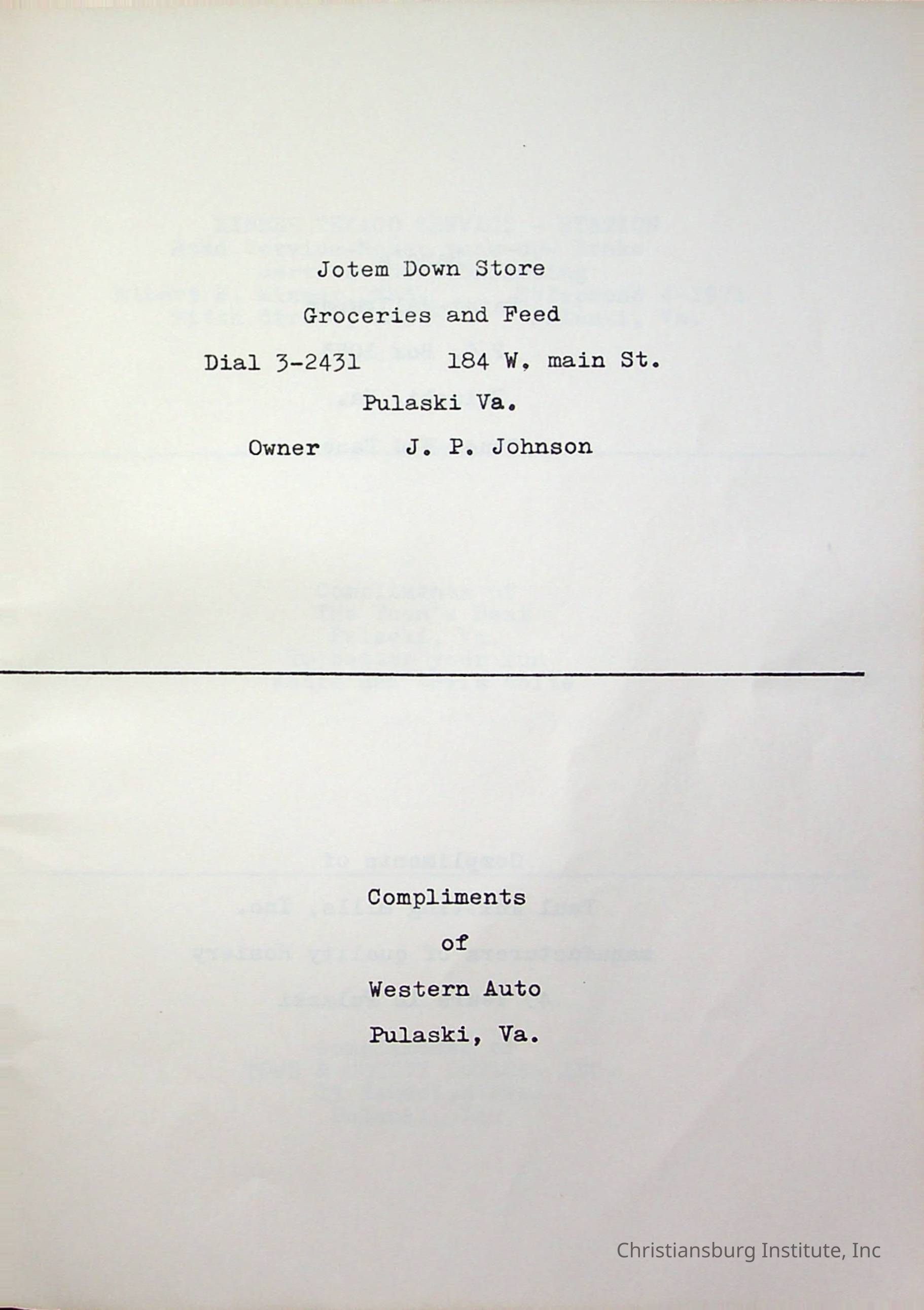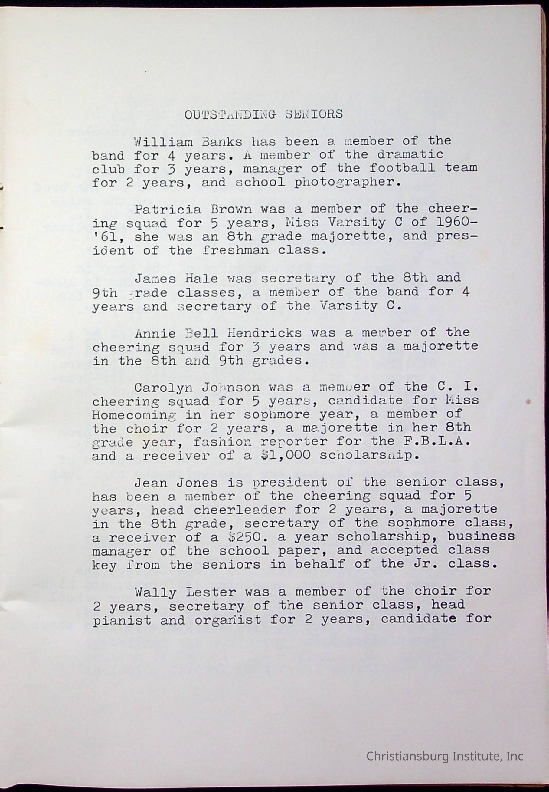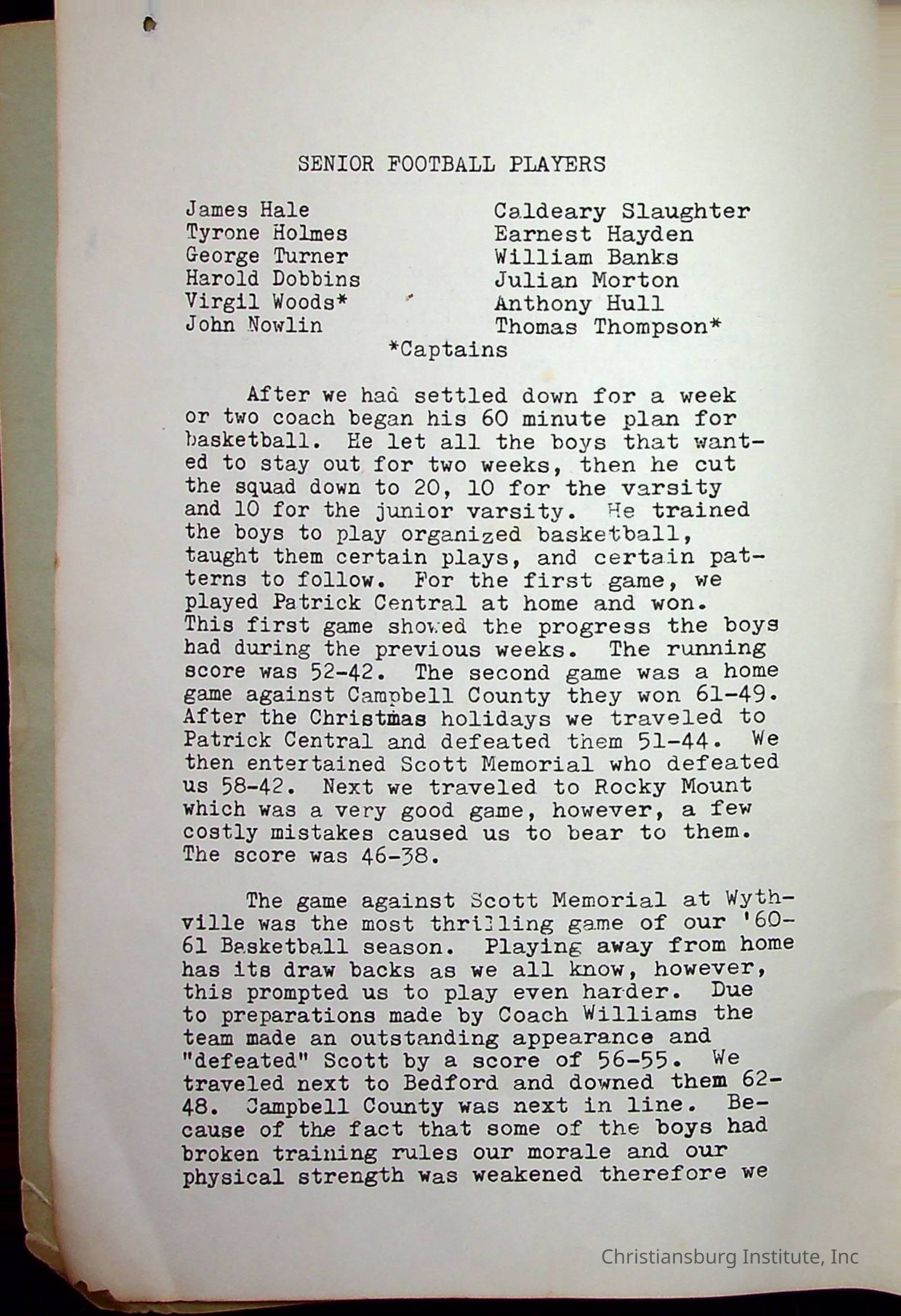Christiansburg InstitutePlace Printed