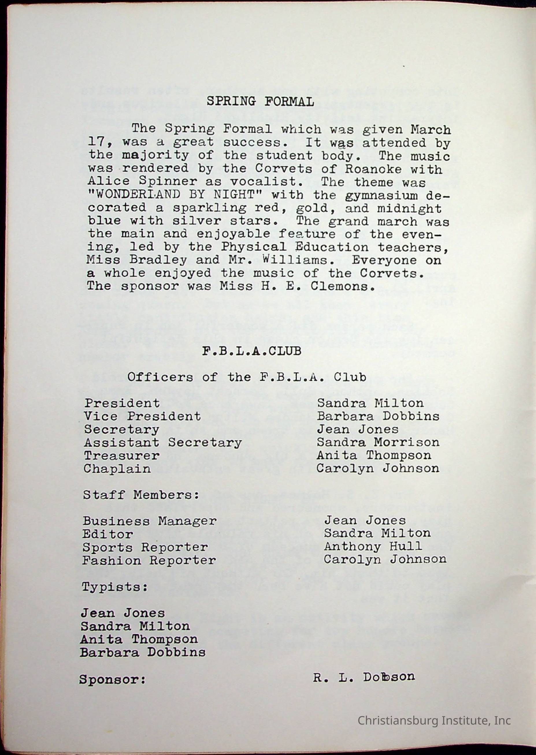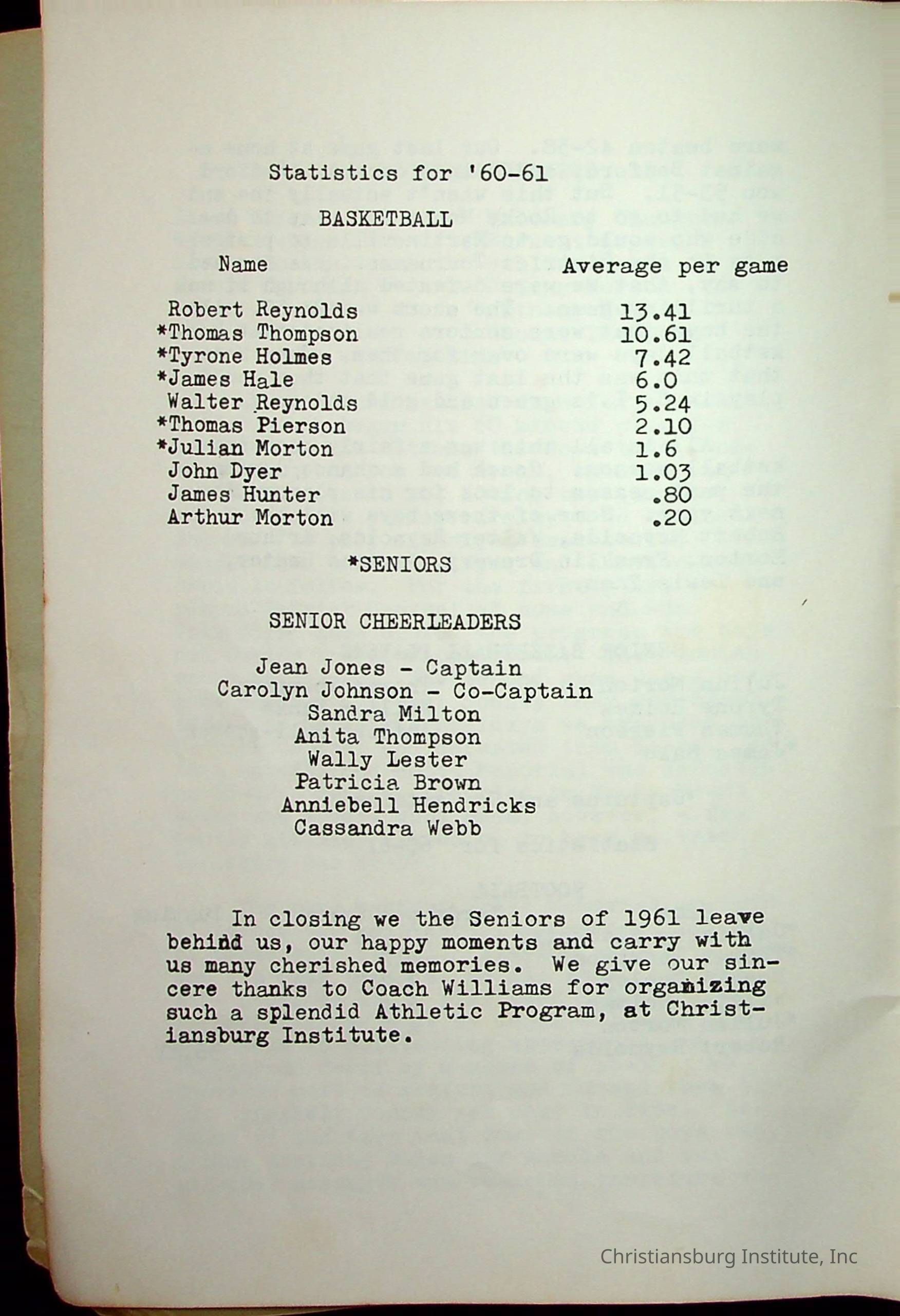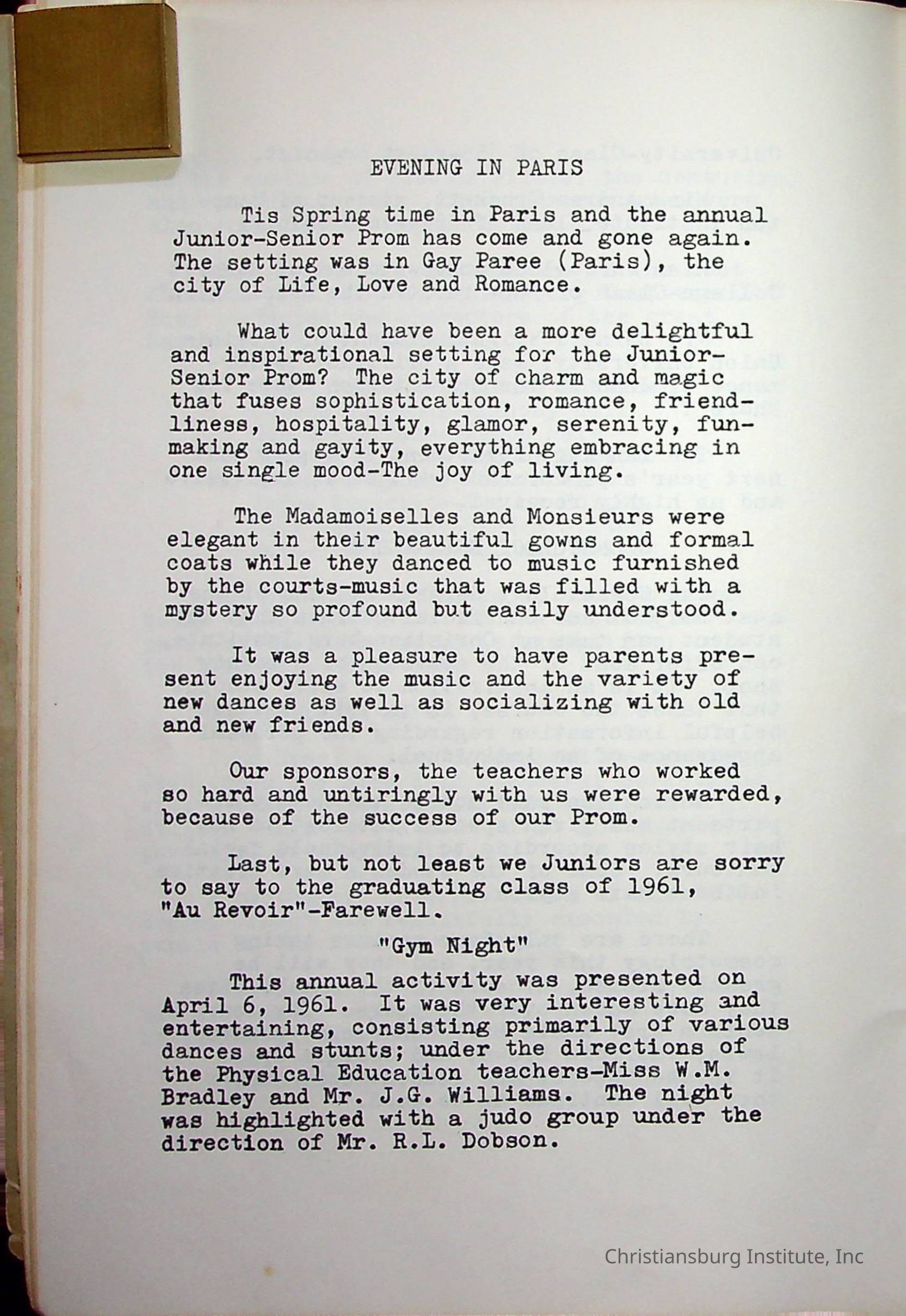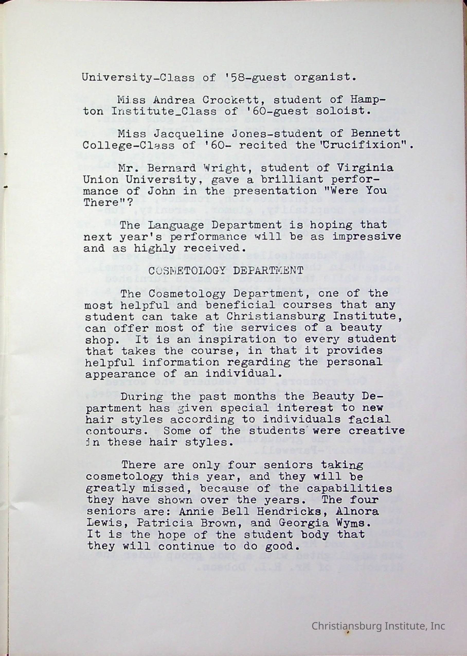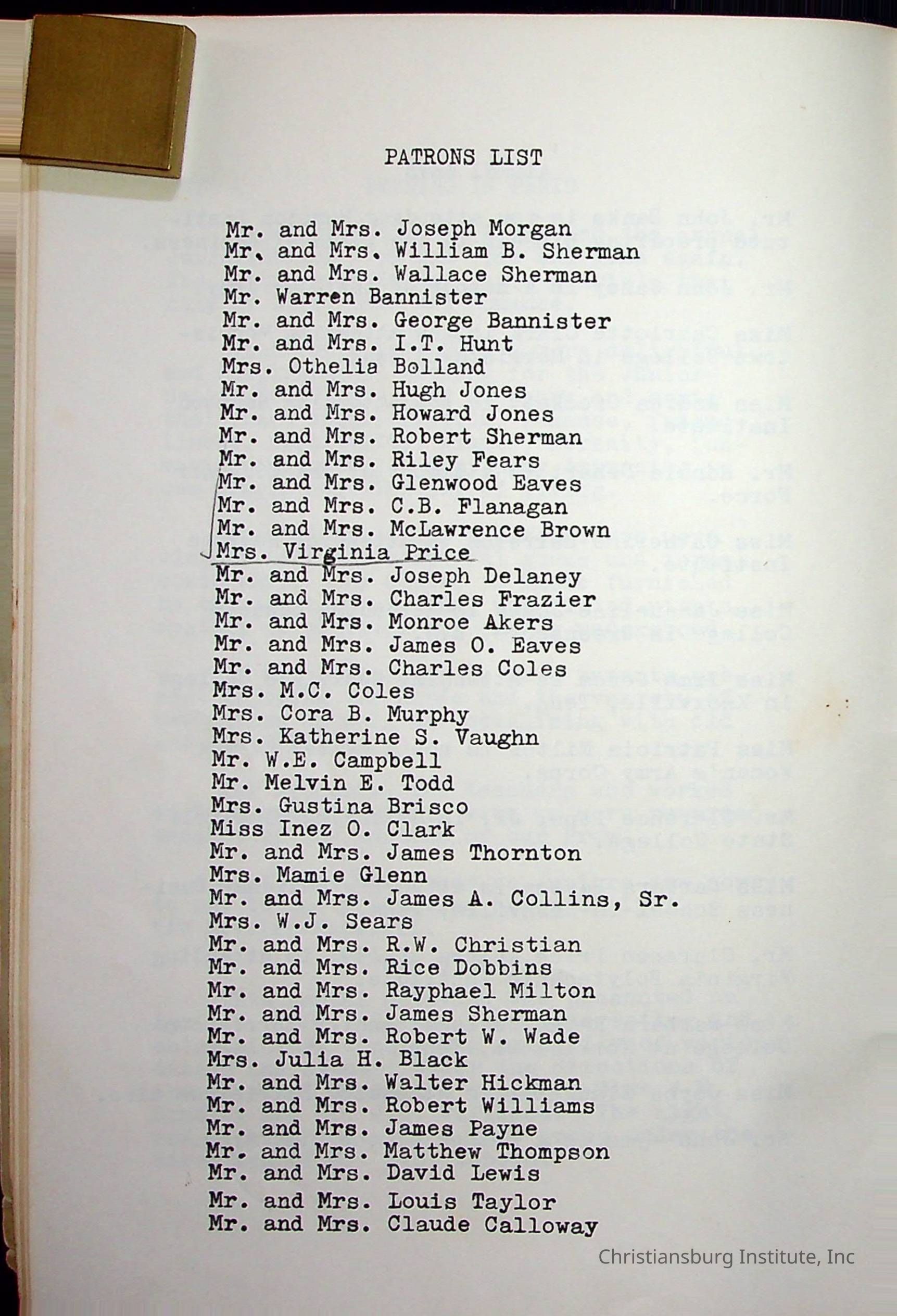 Christiansburg InstitutePlace Printed