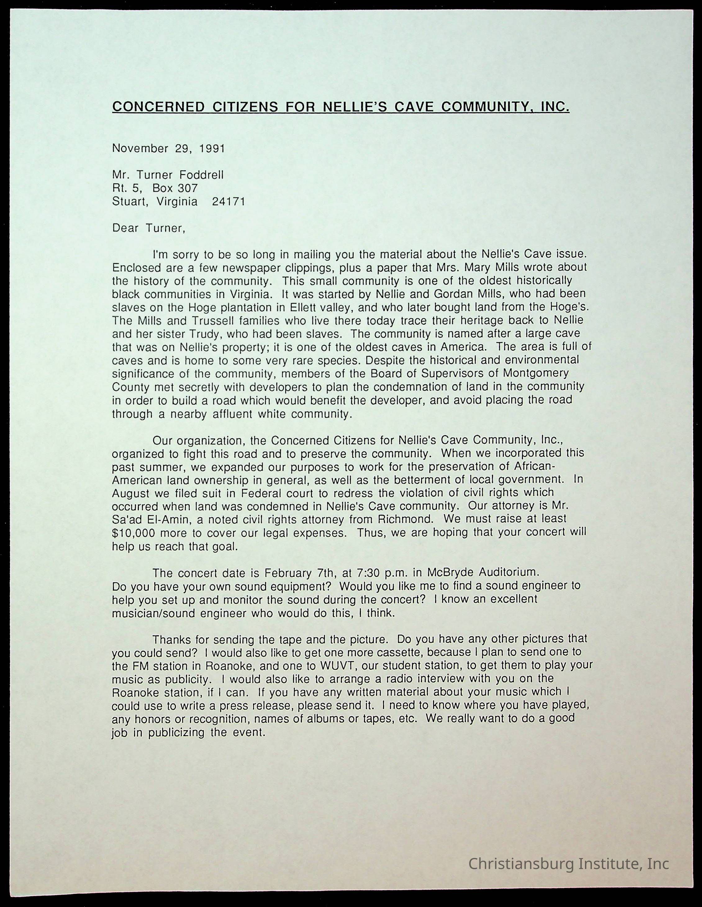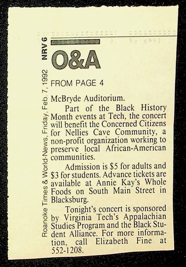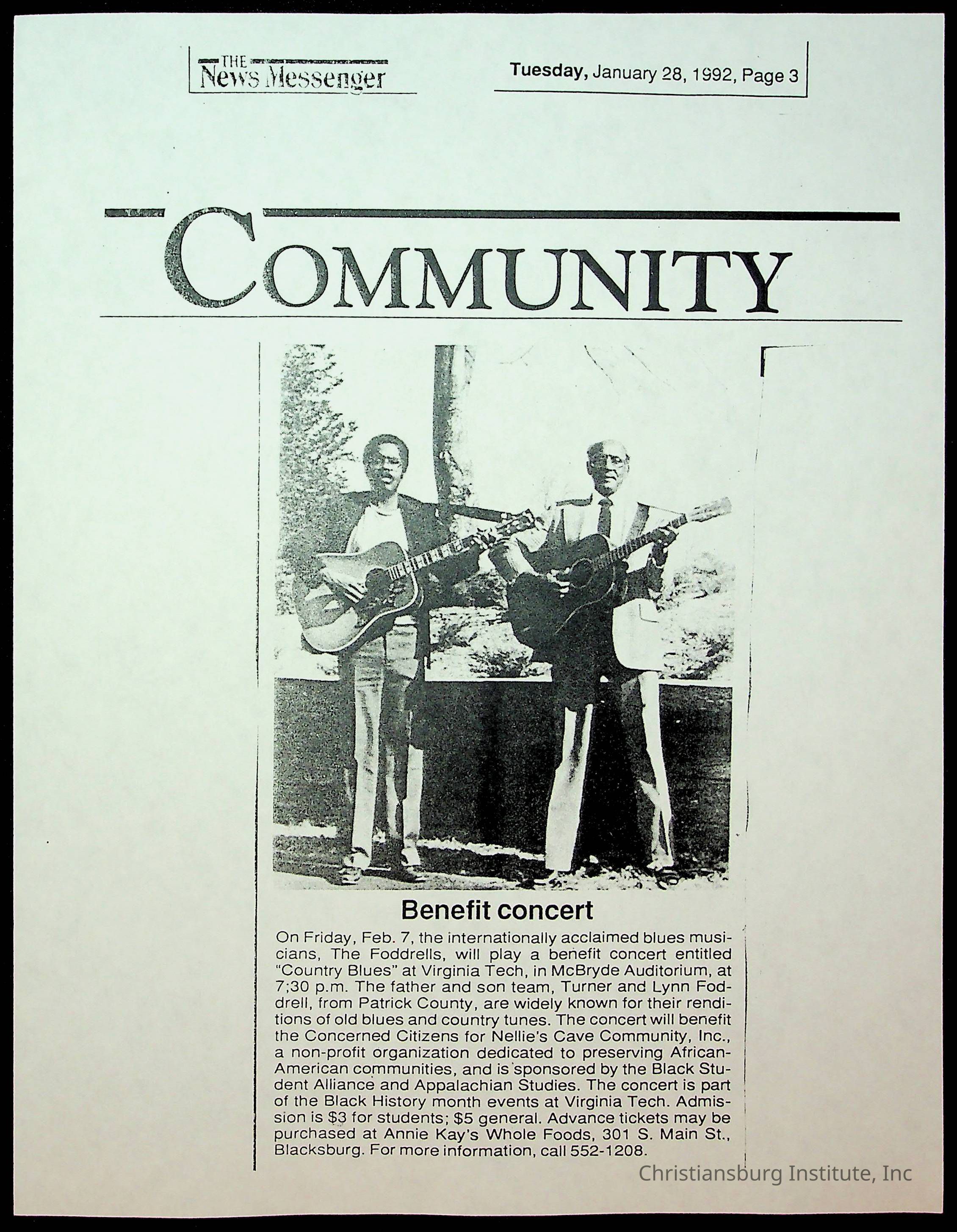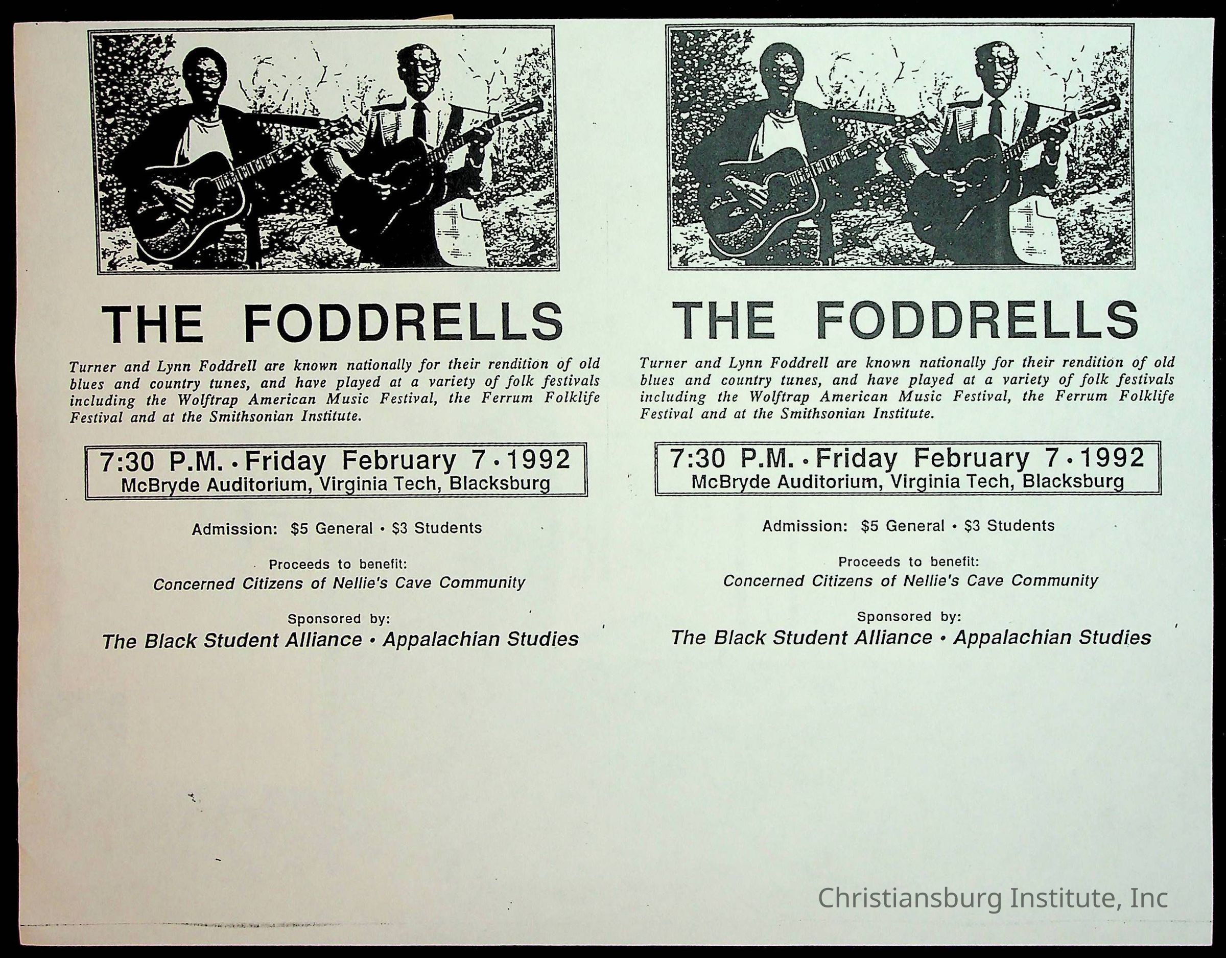 An archive of materials related to The Foddrells Concert to benefit Concerned Citizens for Nellies Cave Community, held on February 7th, 1992.