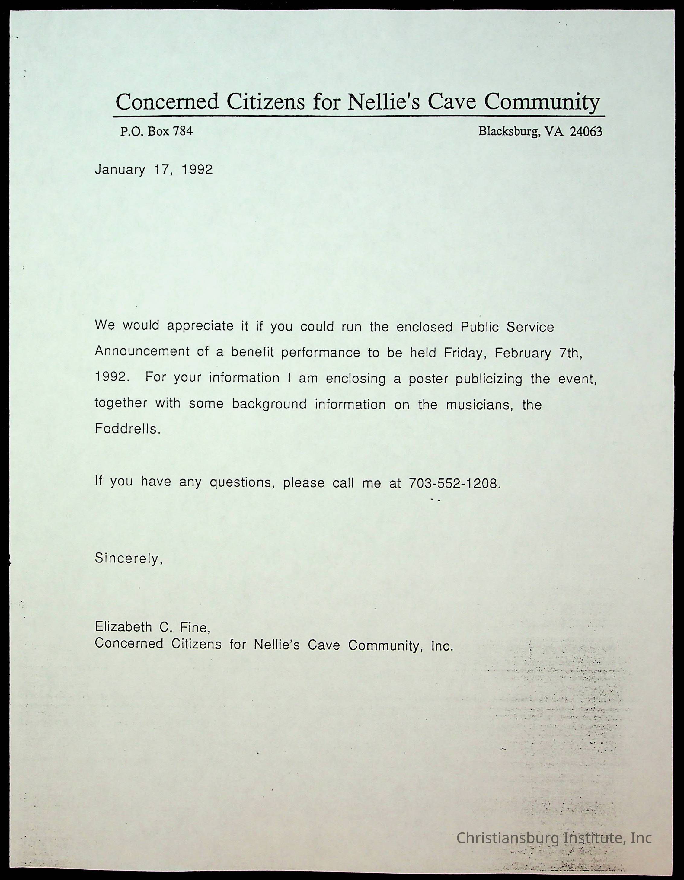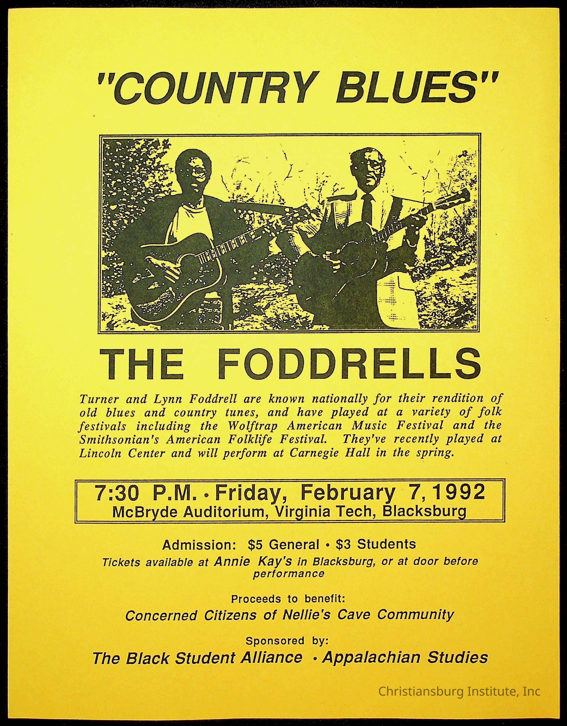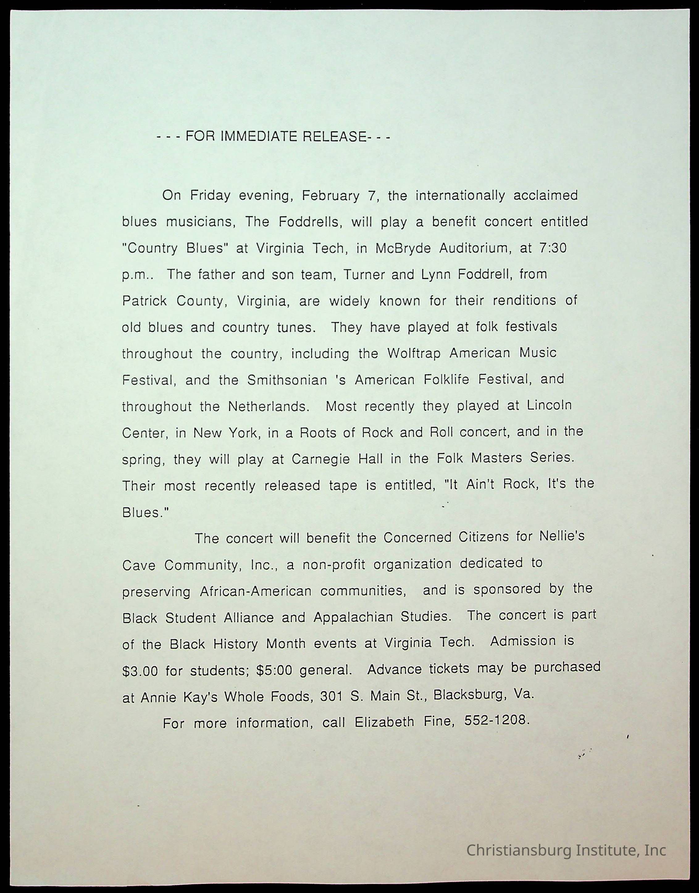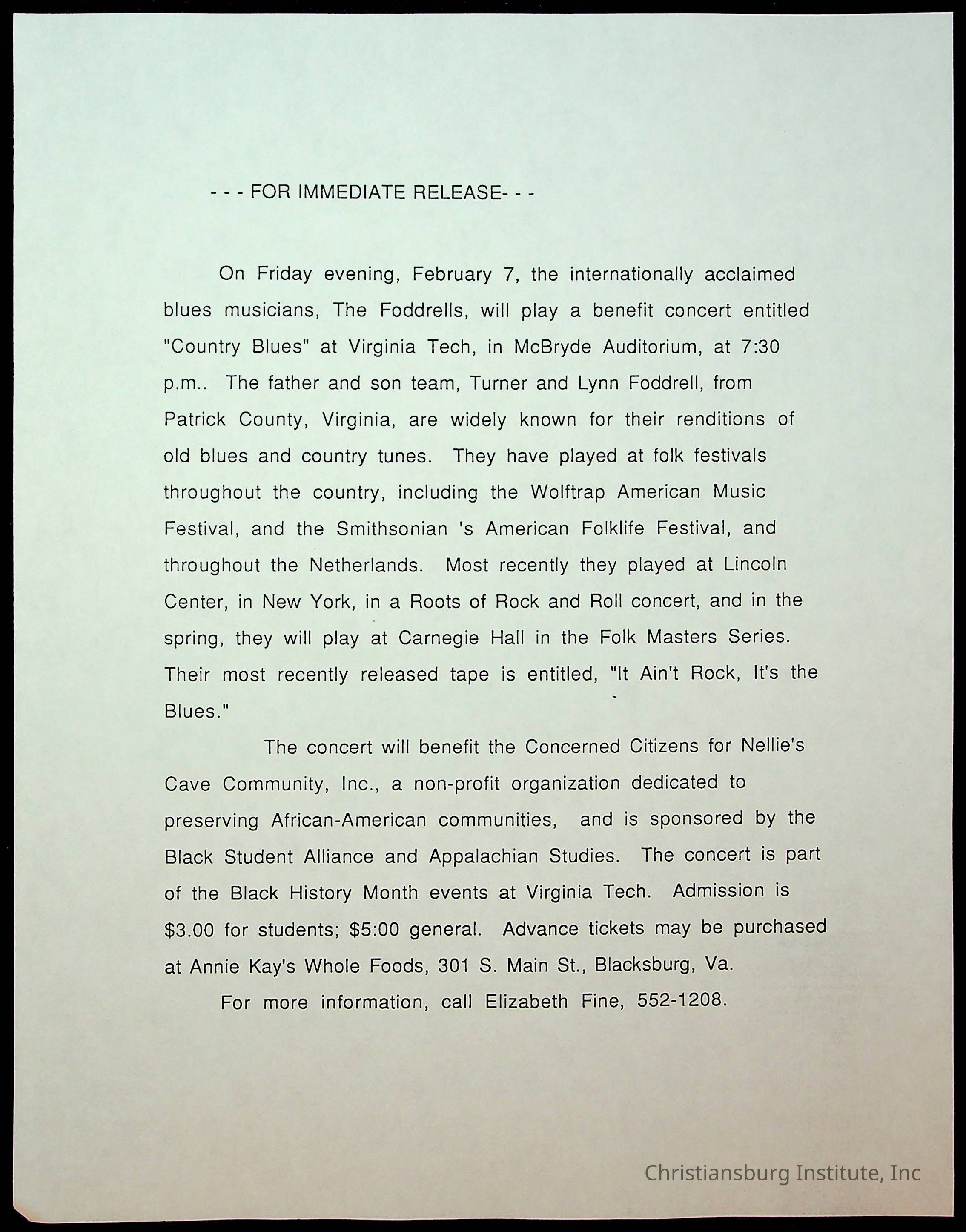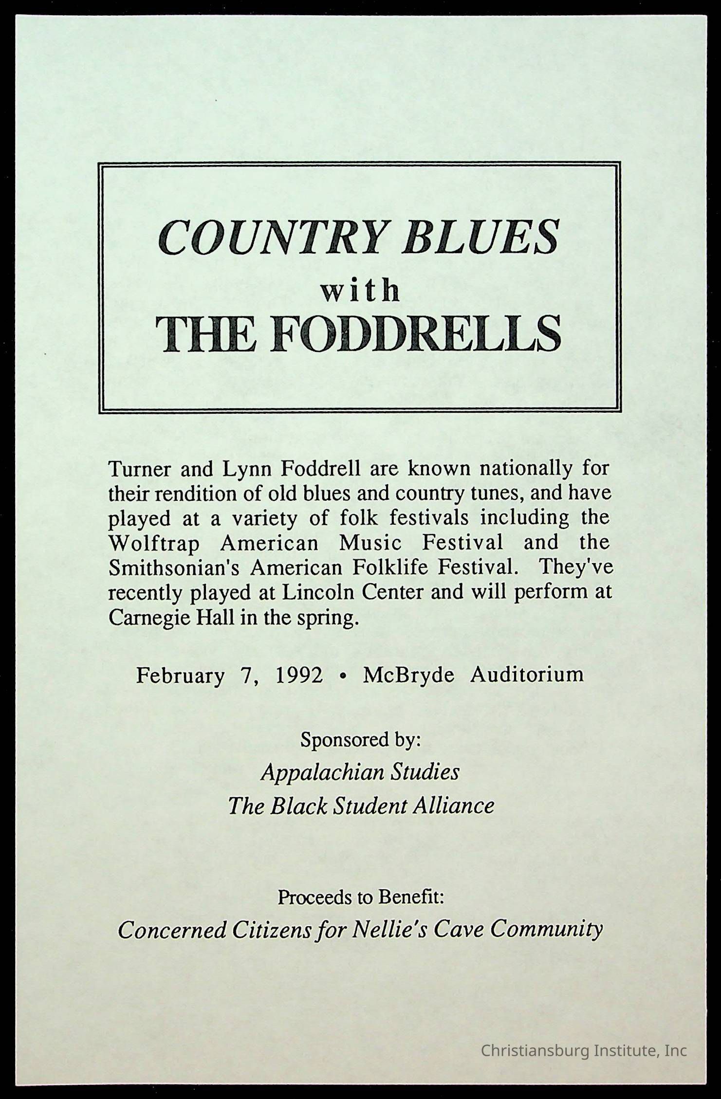 An archive of materials related to The Foddrells Concert to benefit Concerned Citizens for Nellies Cave Community, held on February 7th, 1992.