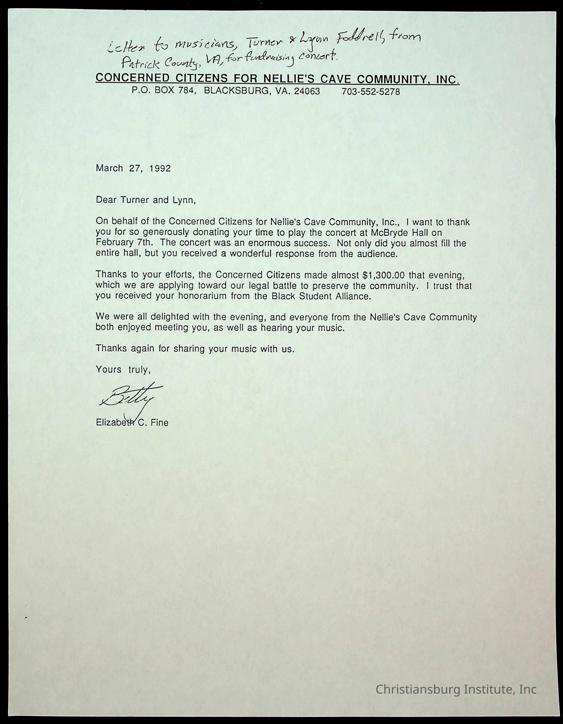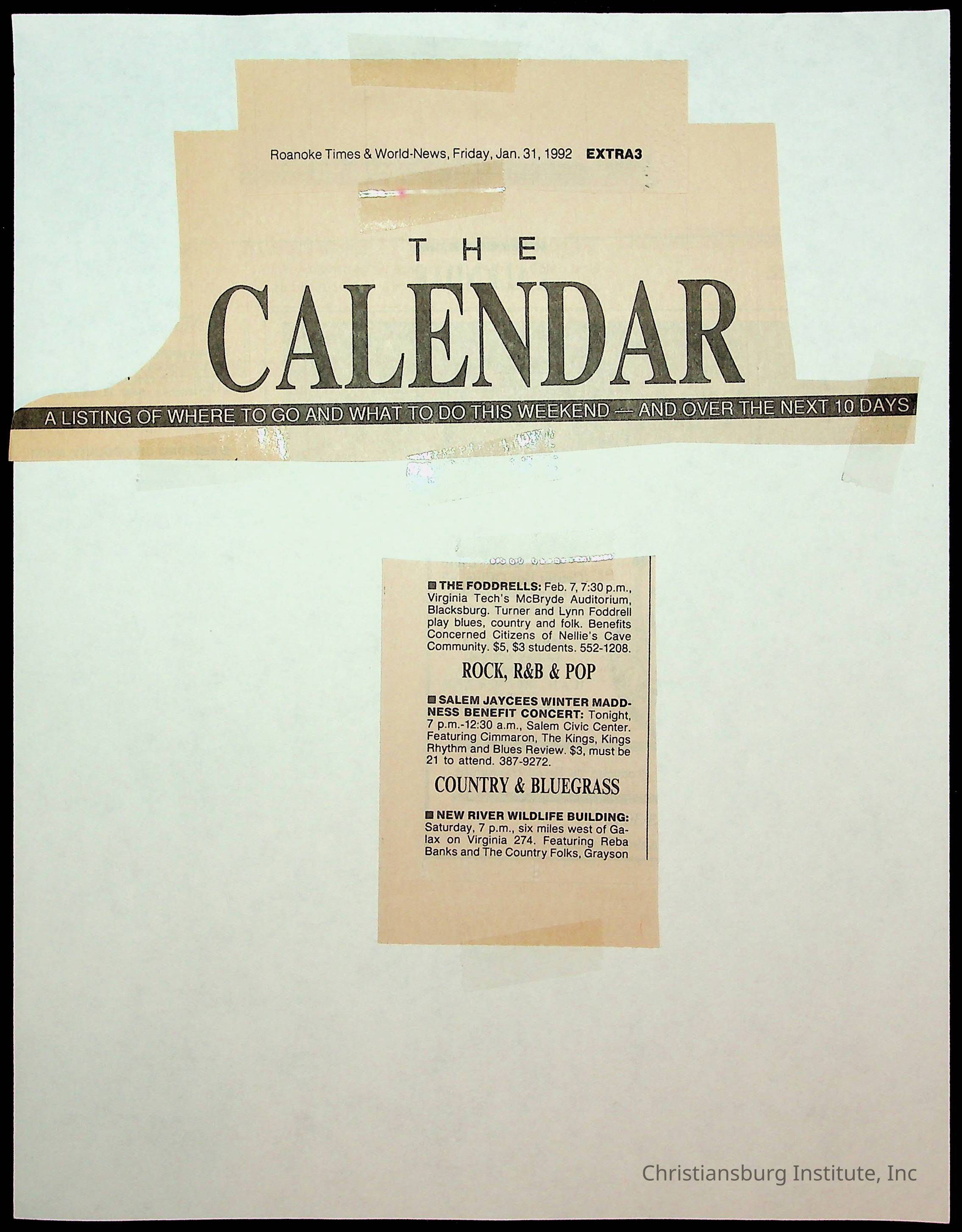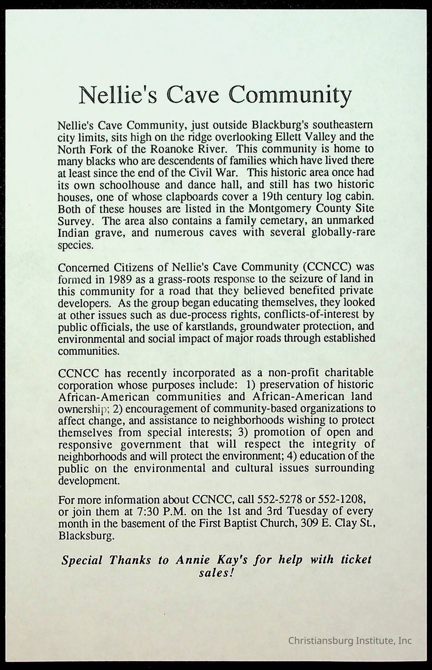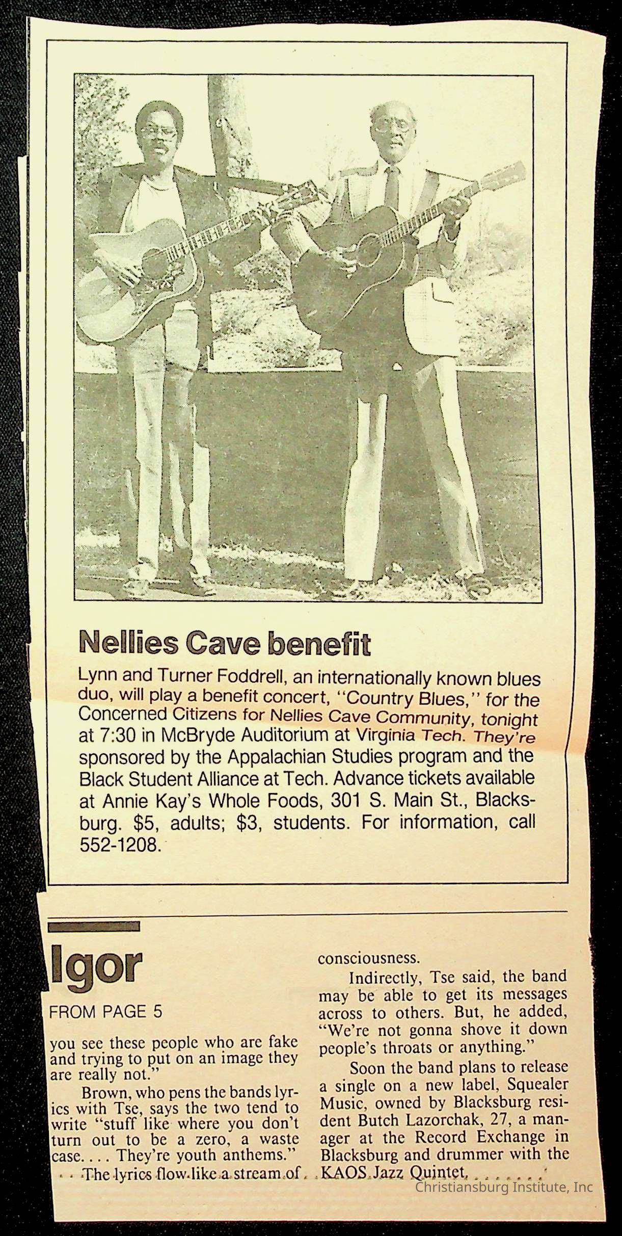 An archive of materials related to The Foddrells Concert to benefit Concerned Citizens for Nellies Cave Community, held on February 7th, 1992.