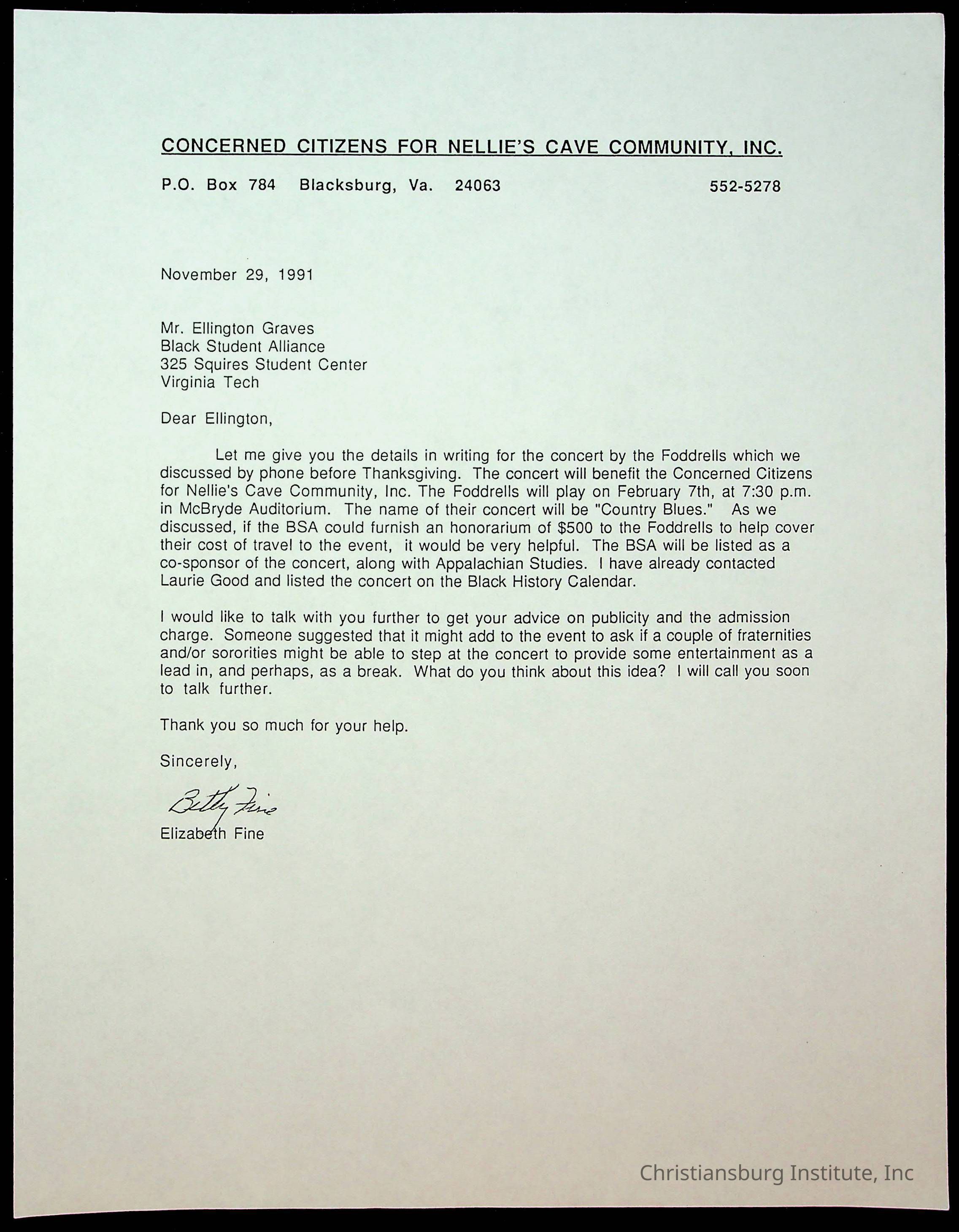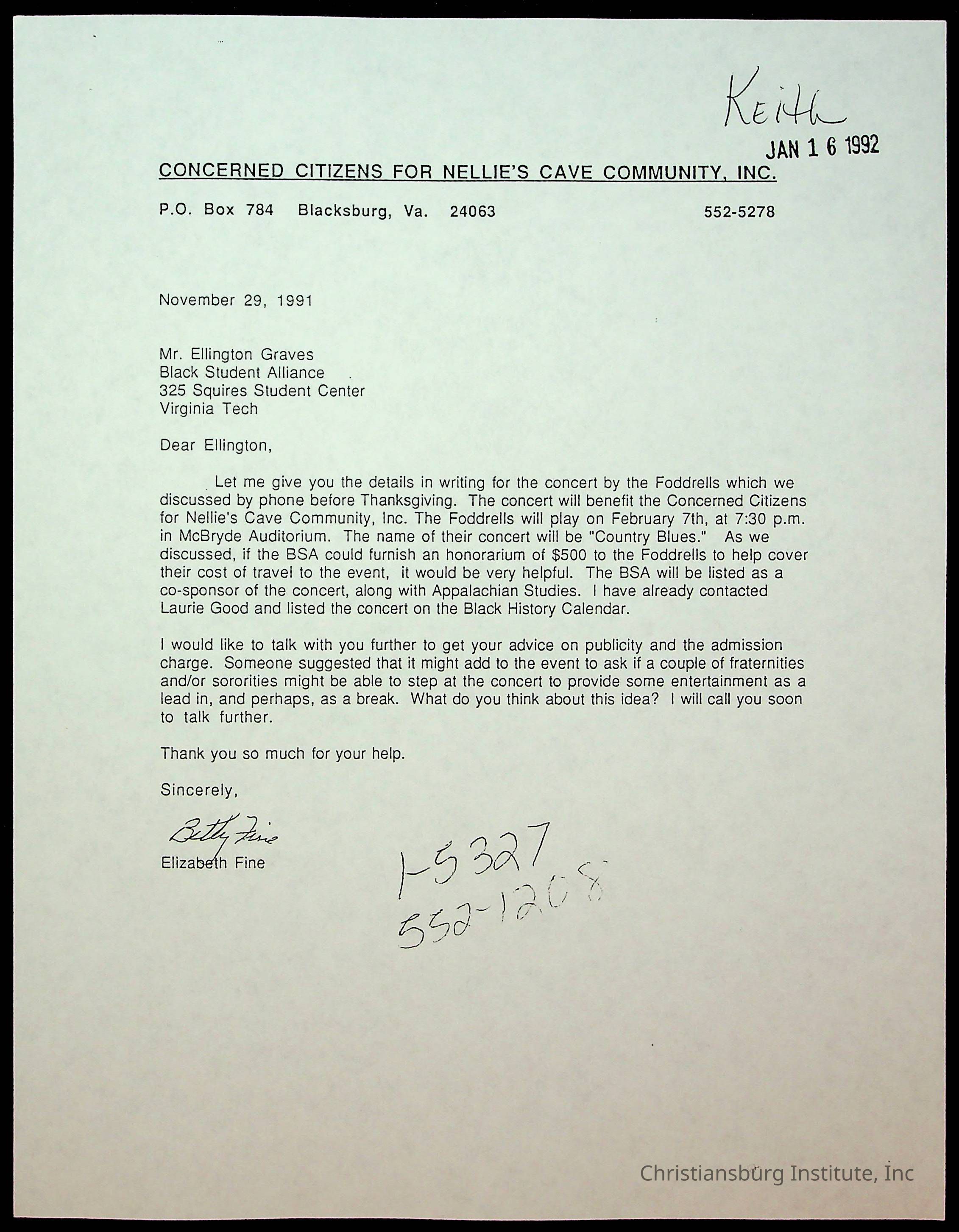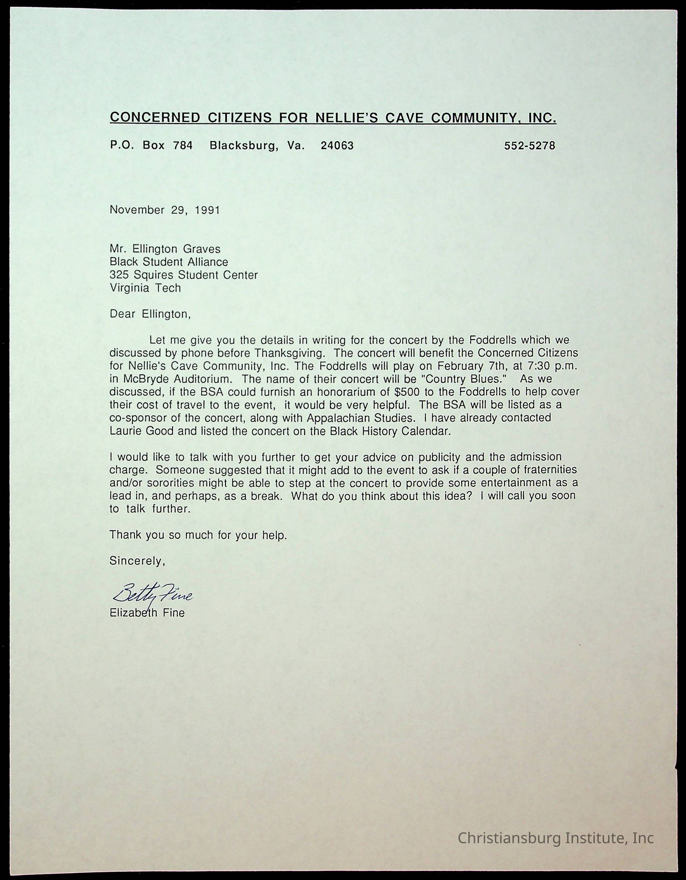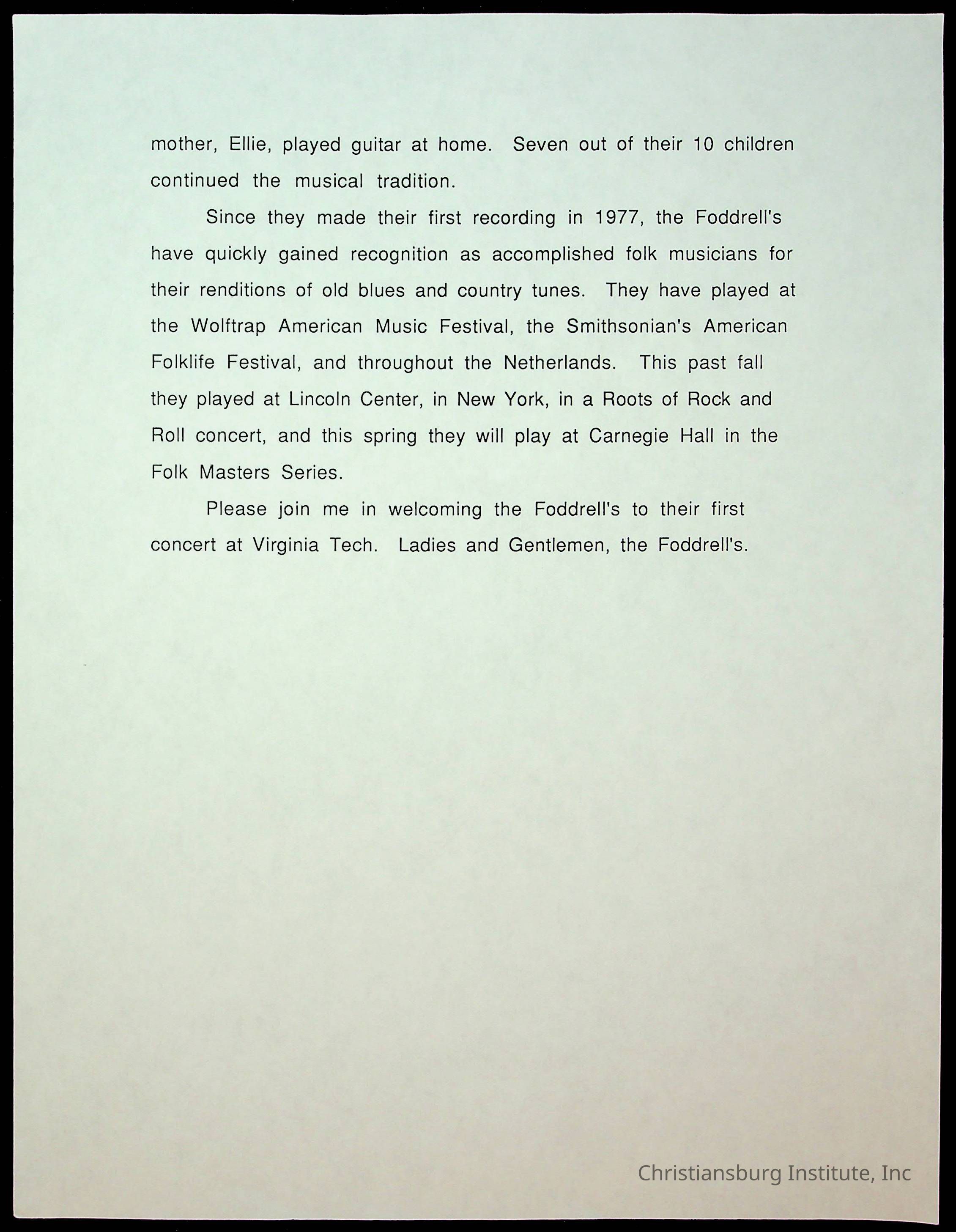 An archive of materials related to The Foddrells Concert to benefit Concerned Citizens for Nellies Cave Community, held on February 7th, 1992.