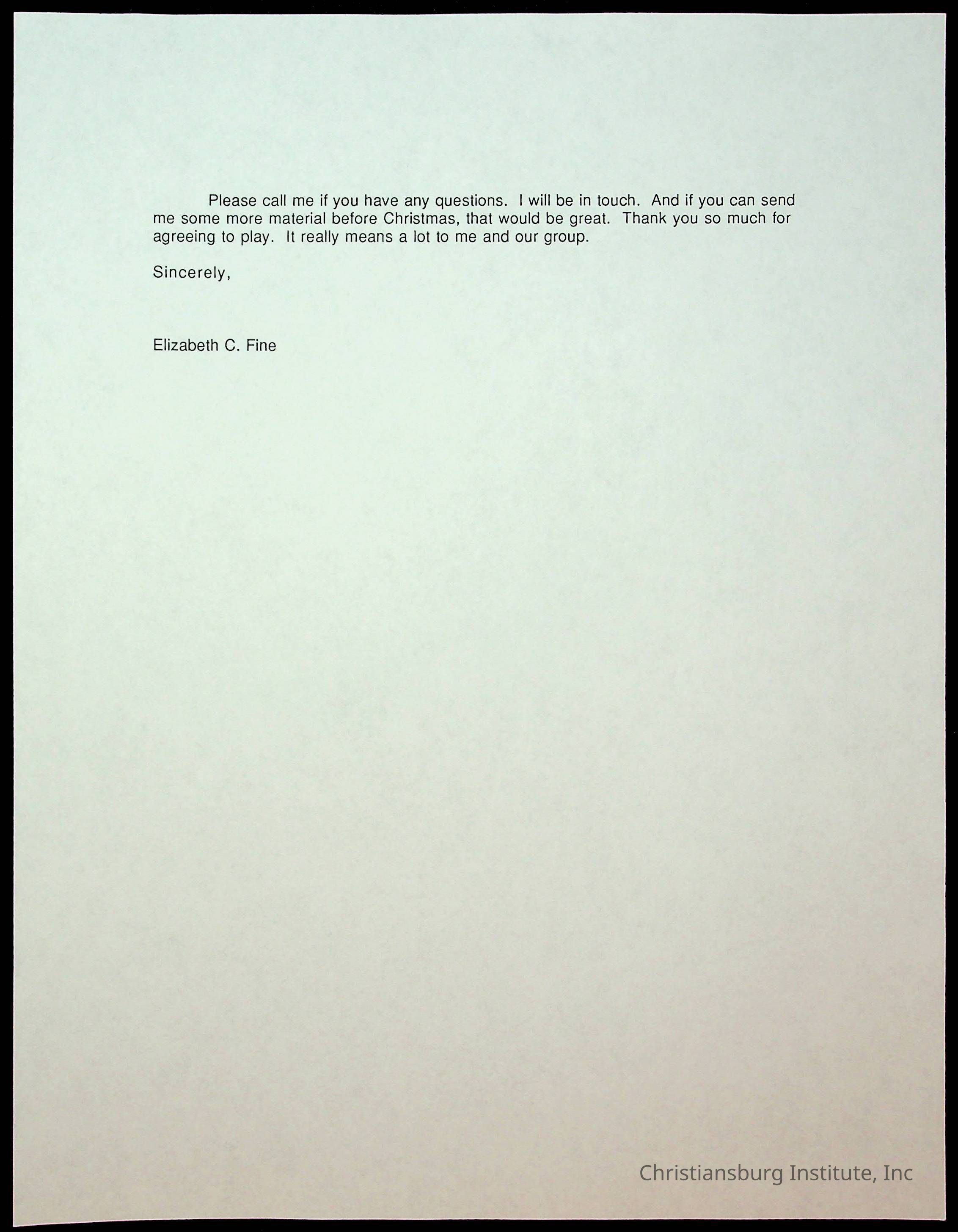 Copyright has been assigned to Christiansburg Institute Museum & Archives by Elizabeth Fine. For permission to publish materials created by the donor, contact CIMA@christiansburginstitute.com. Materials not created by Elizabeth Fine may still be under copyright.