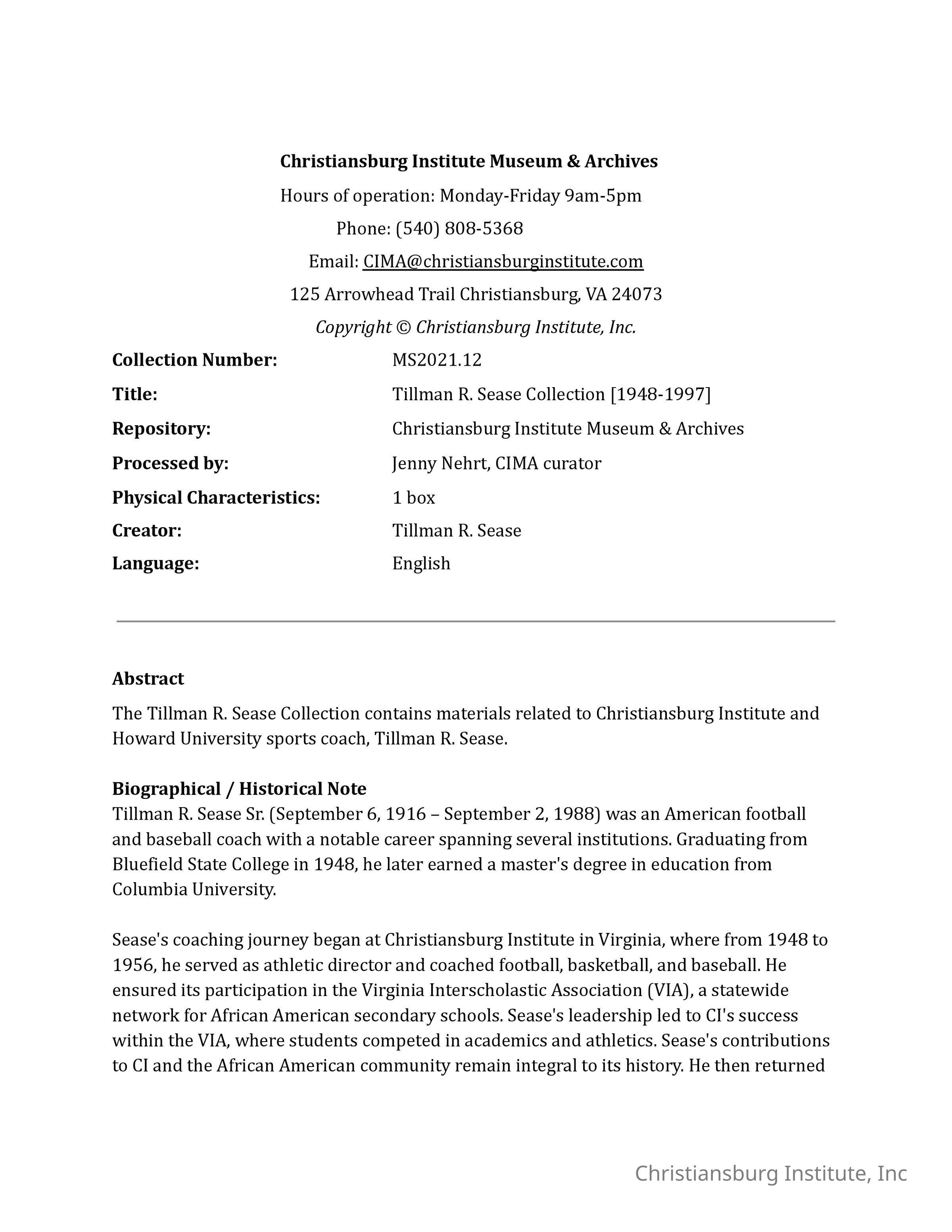 Tillman R. Sease Collection Finding Aid