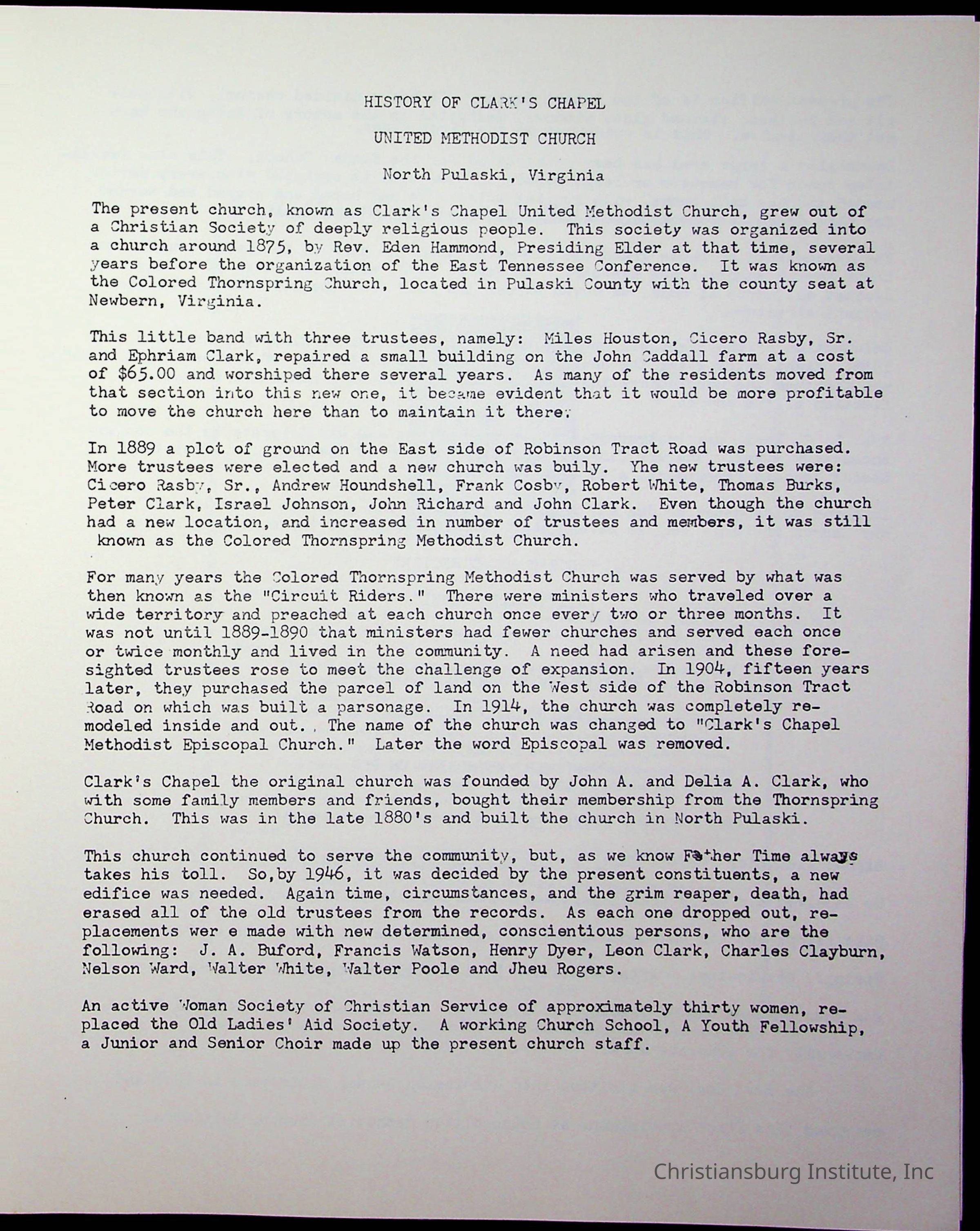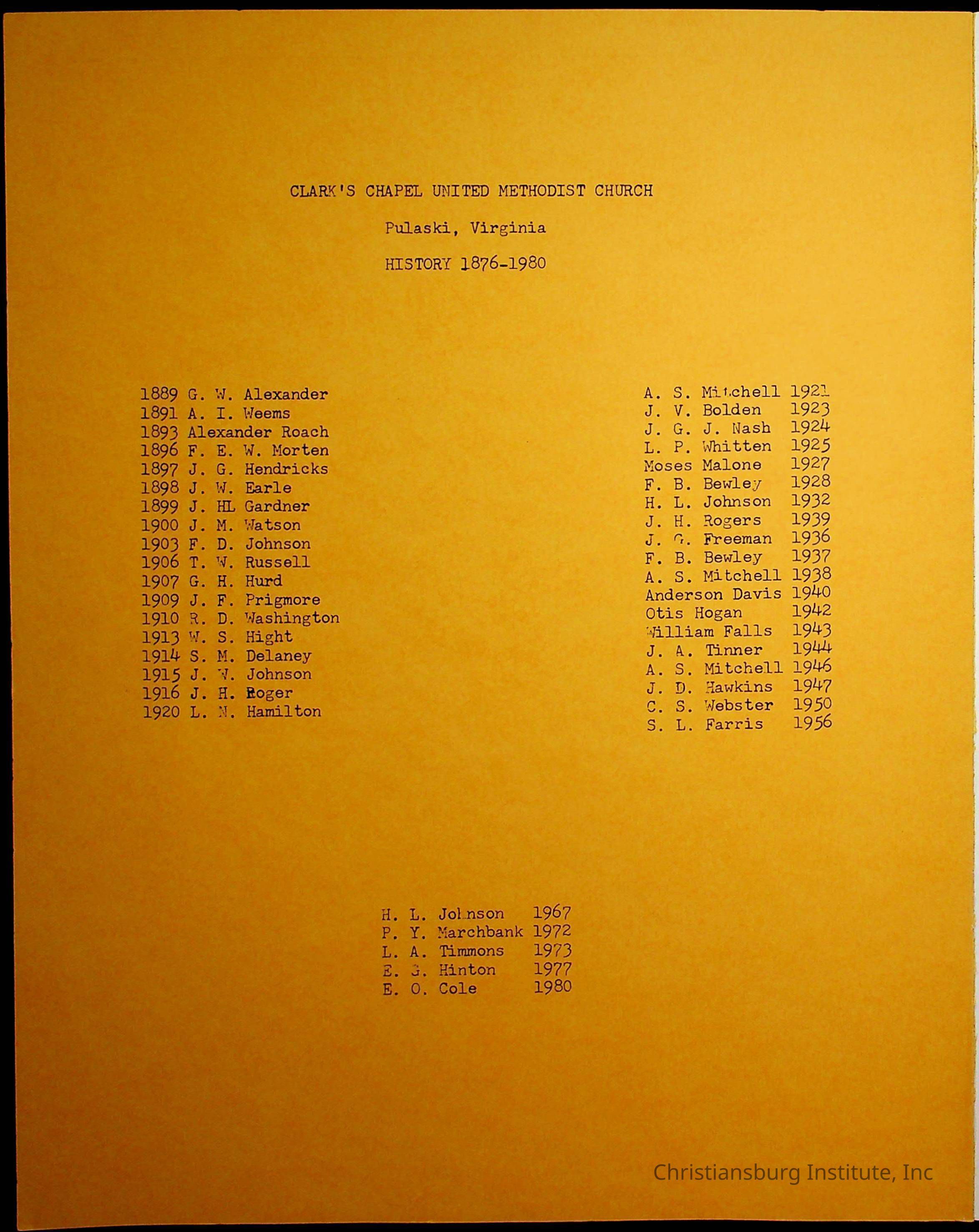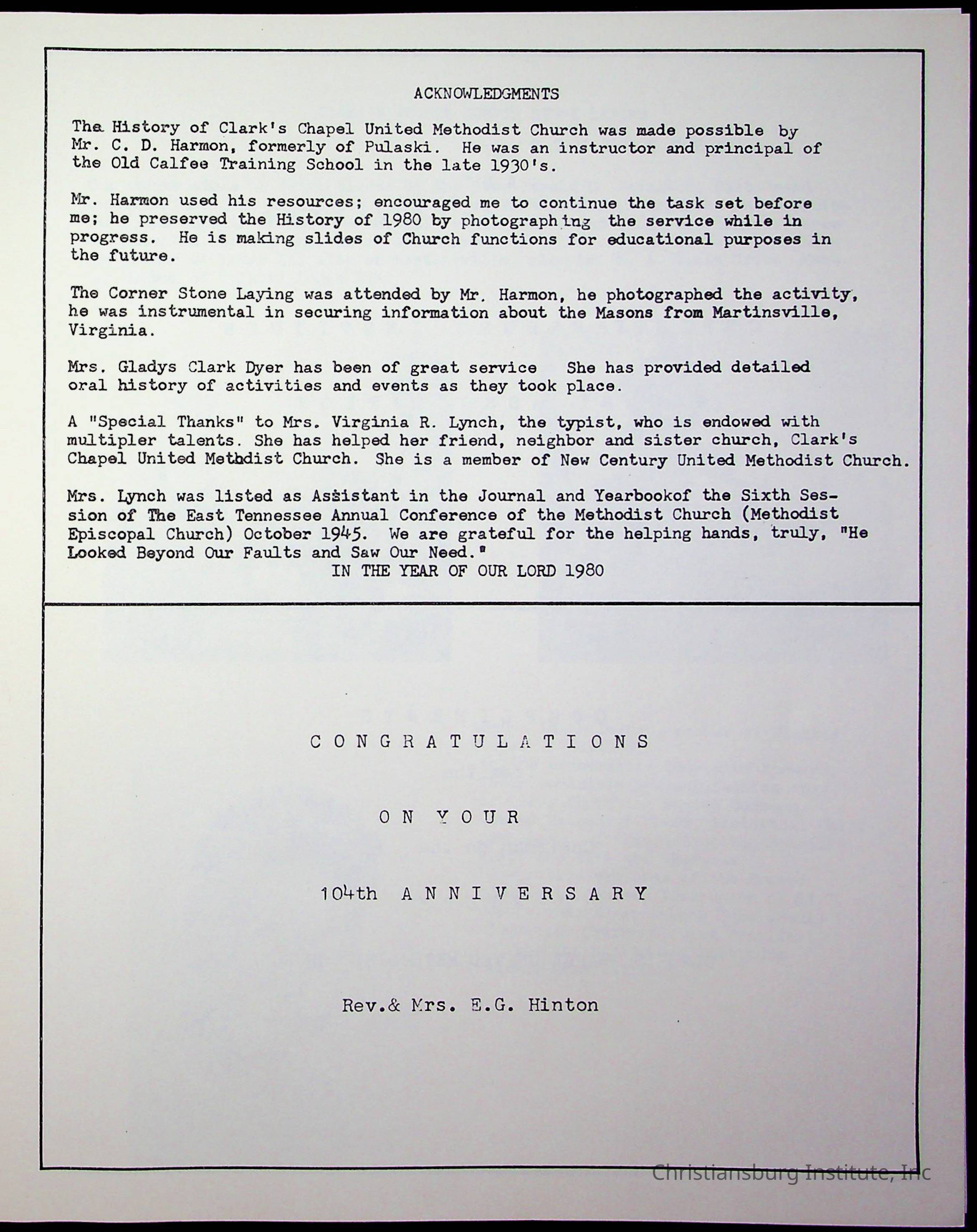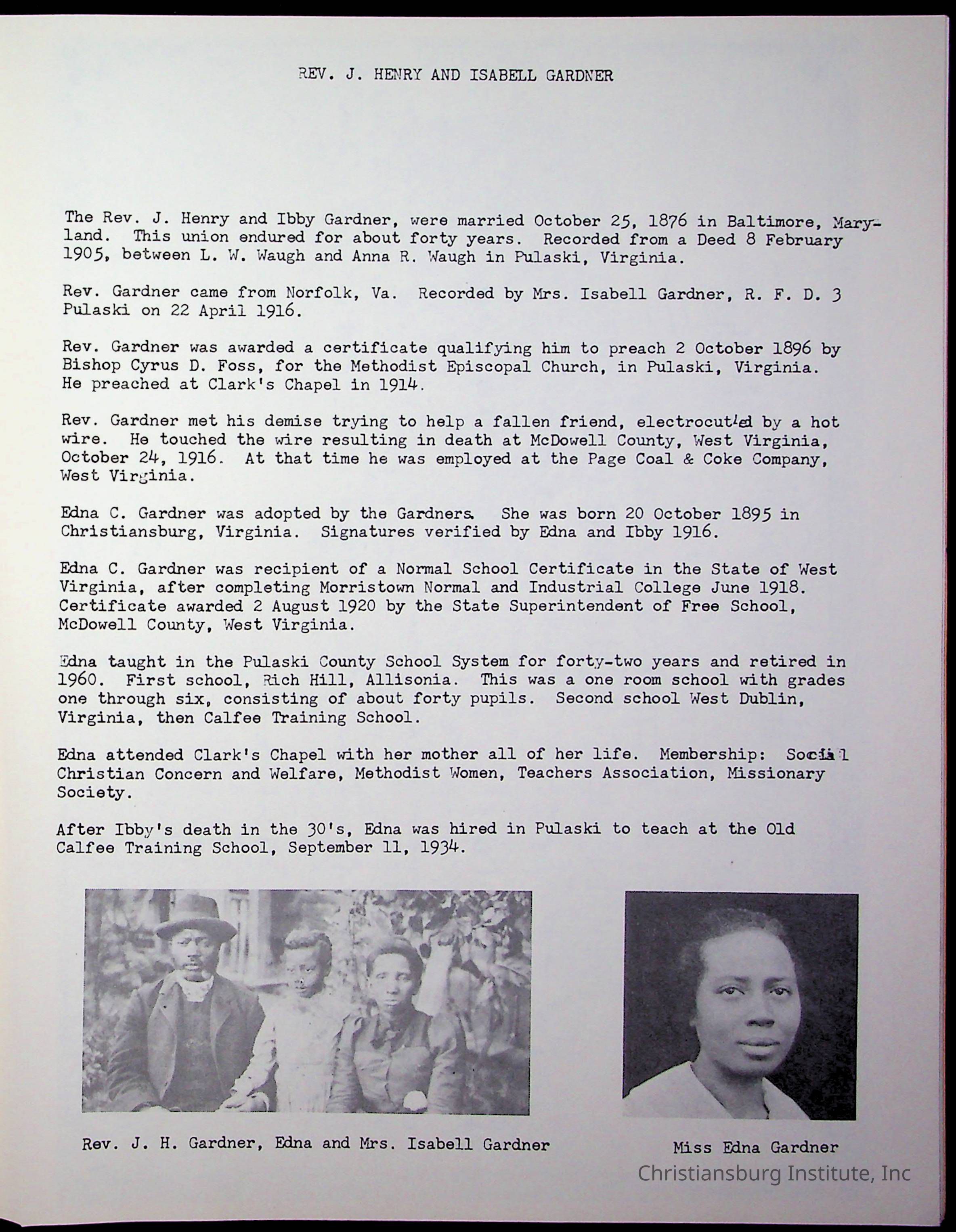 Christiansburg Institute, DeHart, Amanda, Christiansburg Institute Alumni Association, United Methodist Church