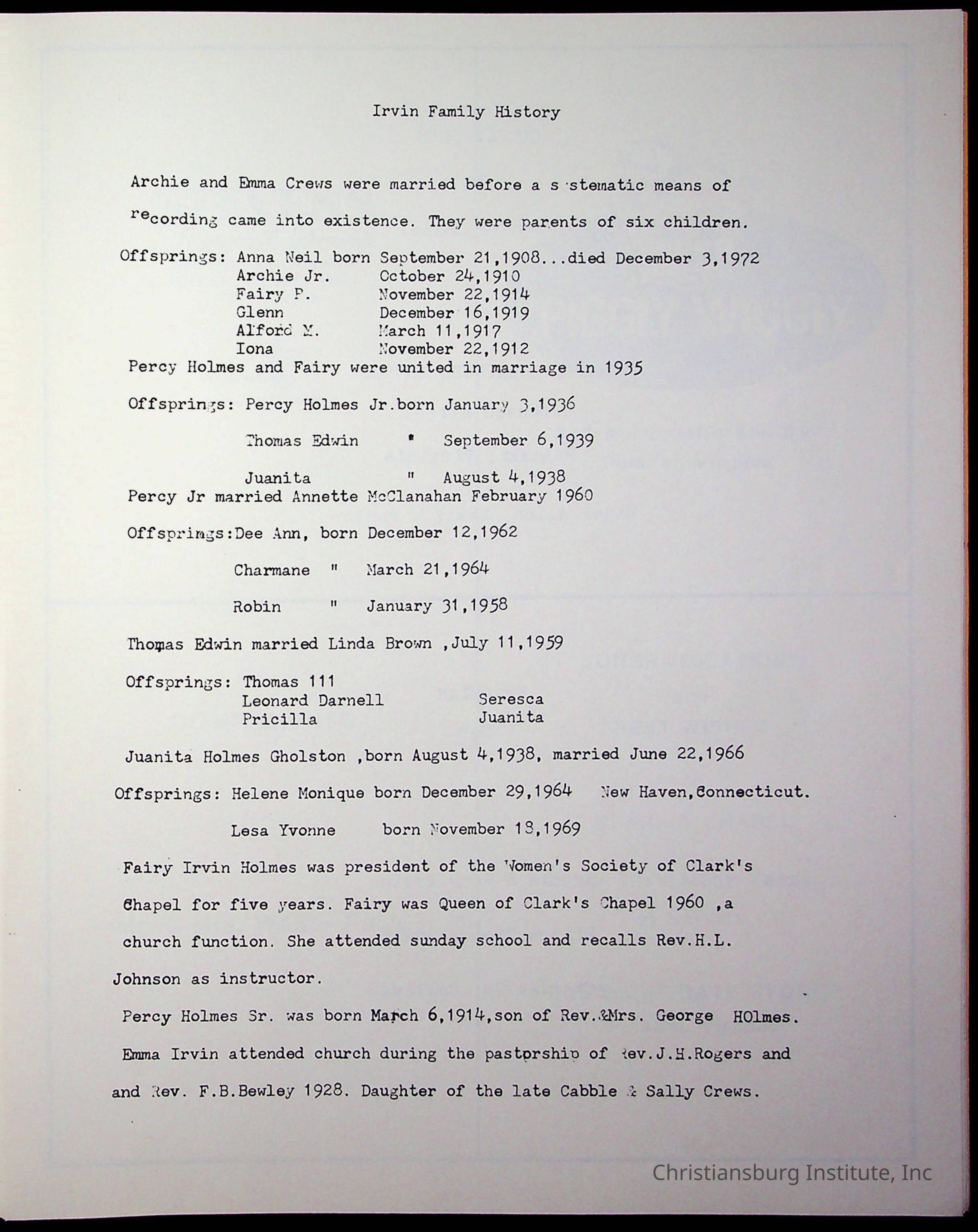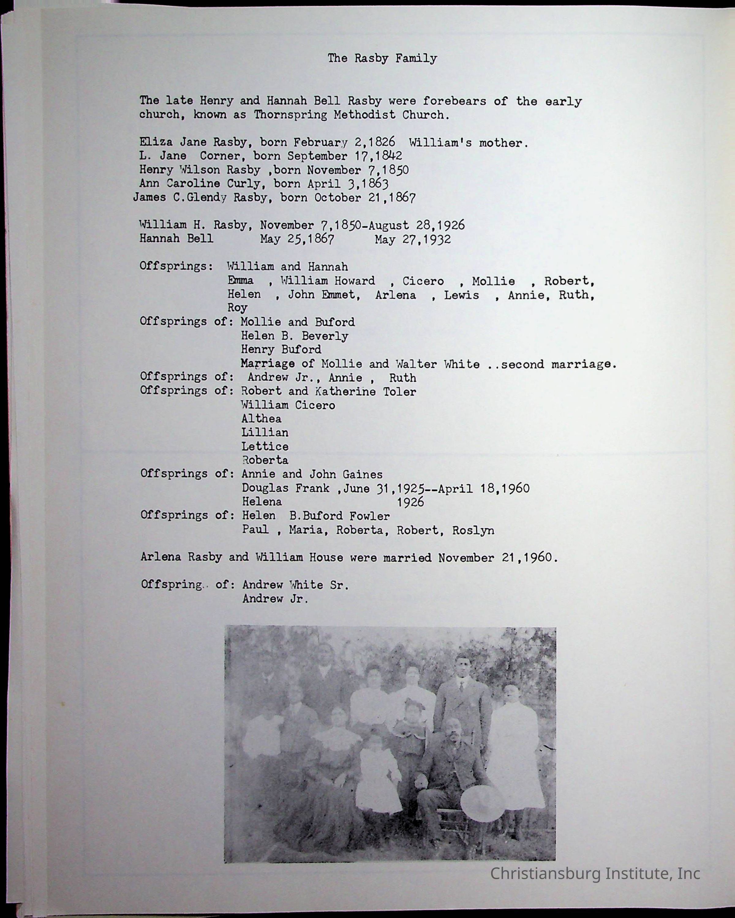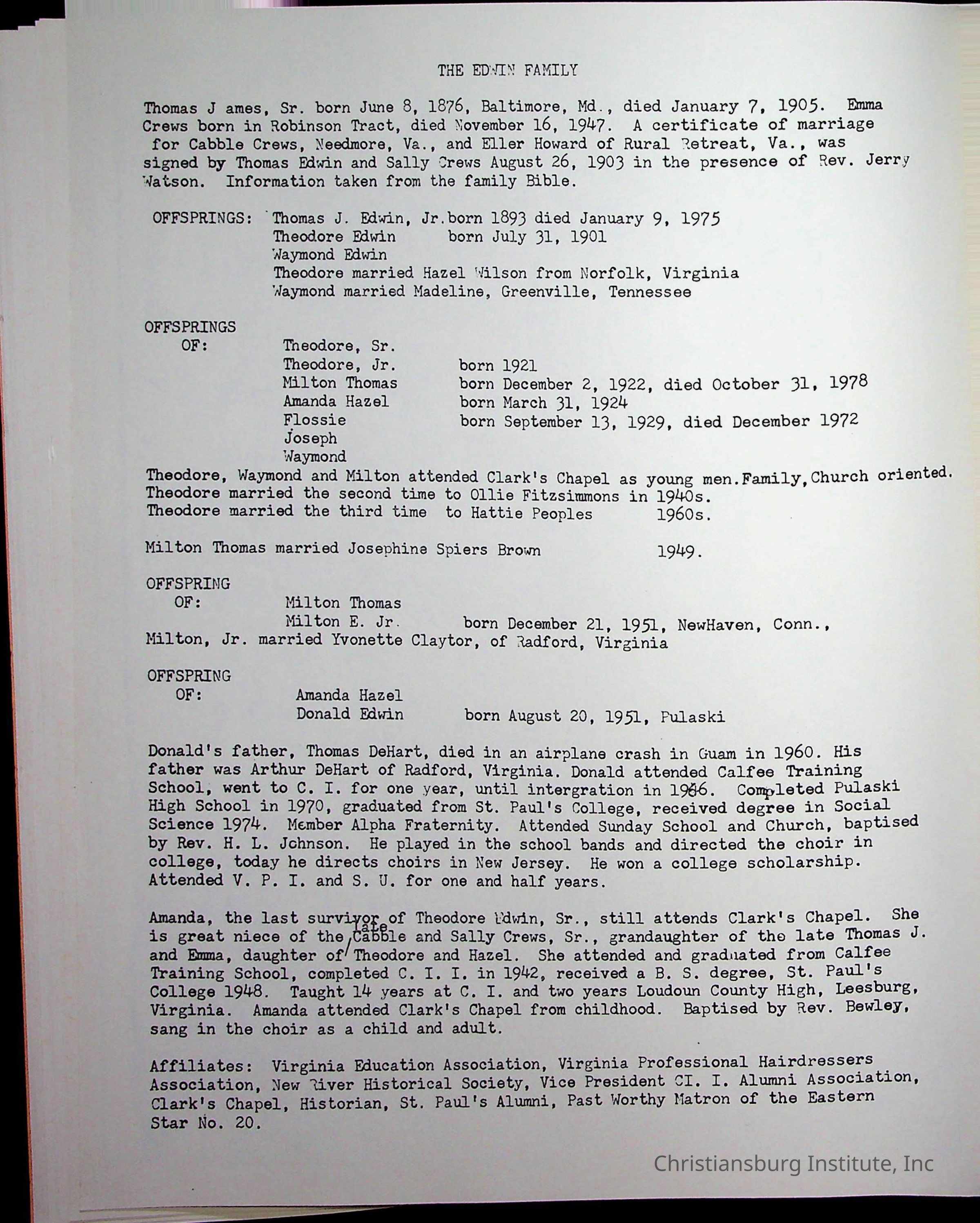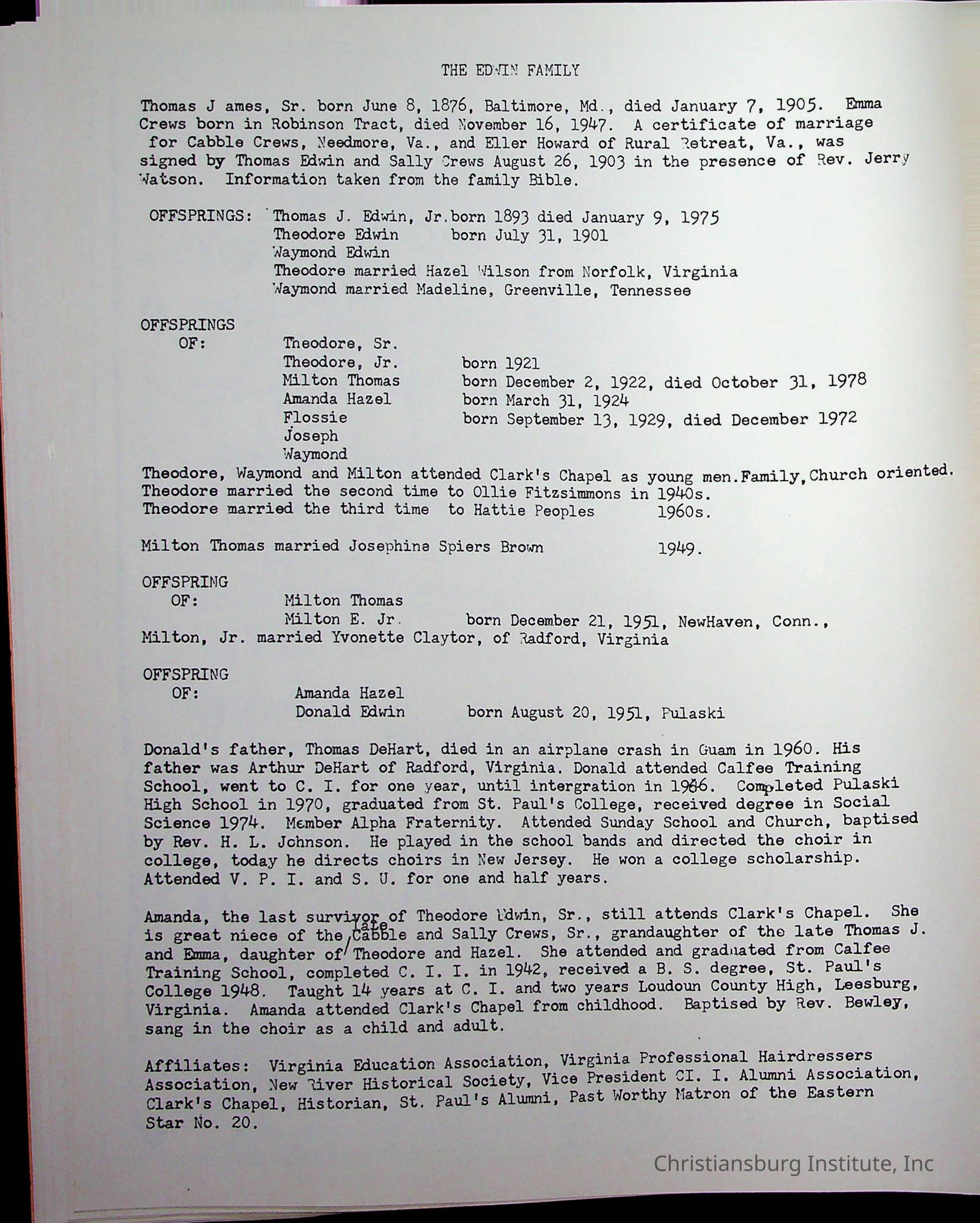 Christiansburg Institute, DeHart, Amanda, Christiansburg Institute Alumni Association, United Methodist Church