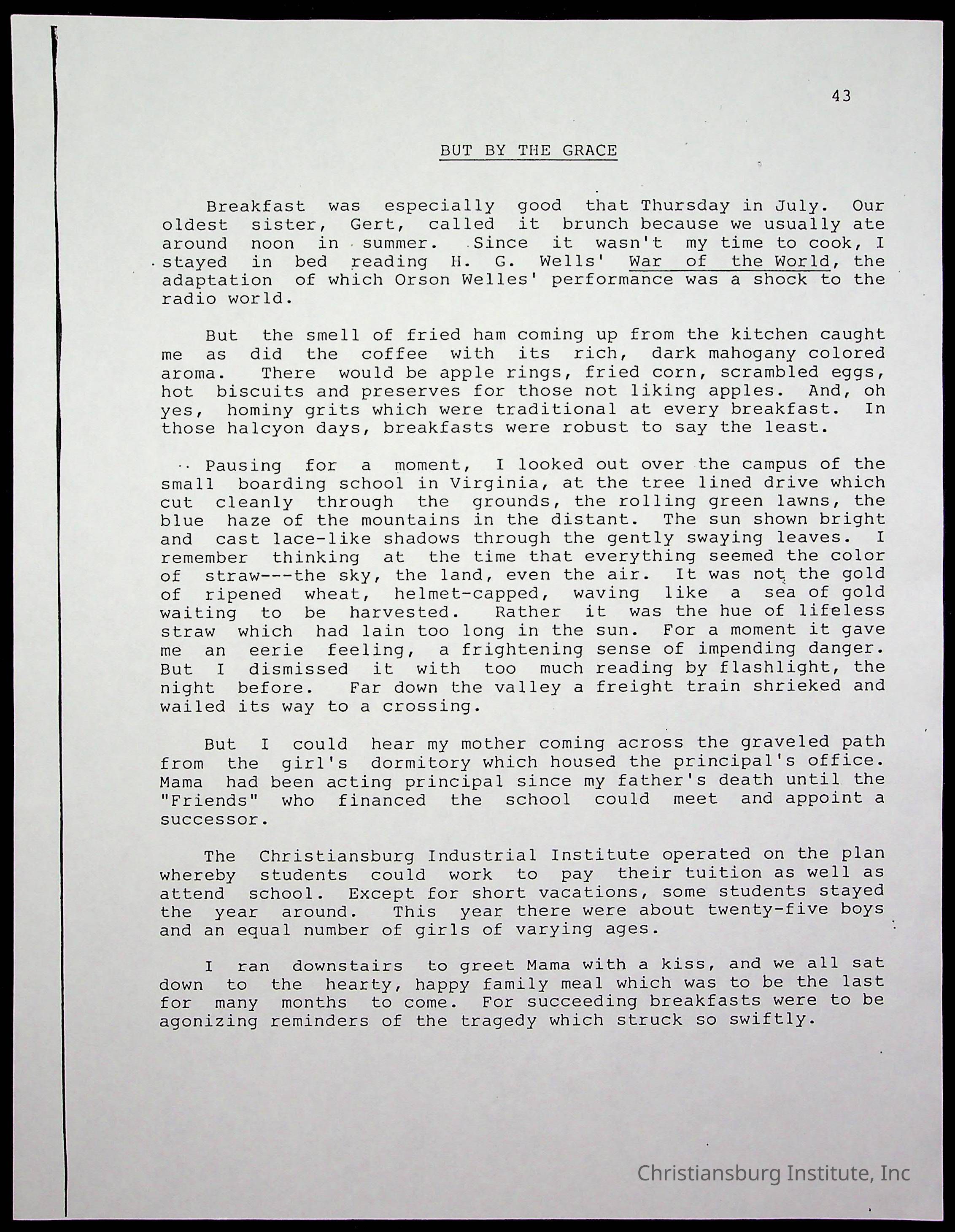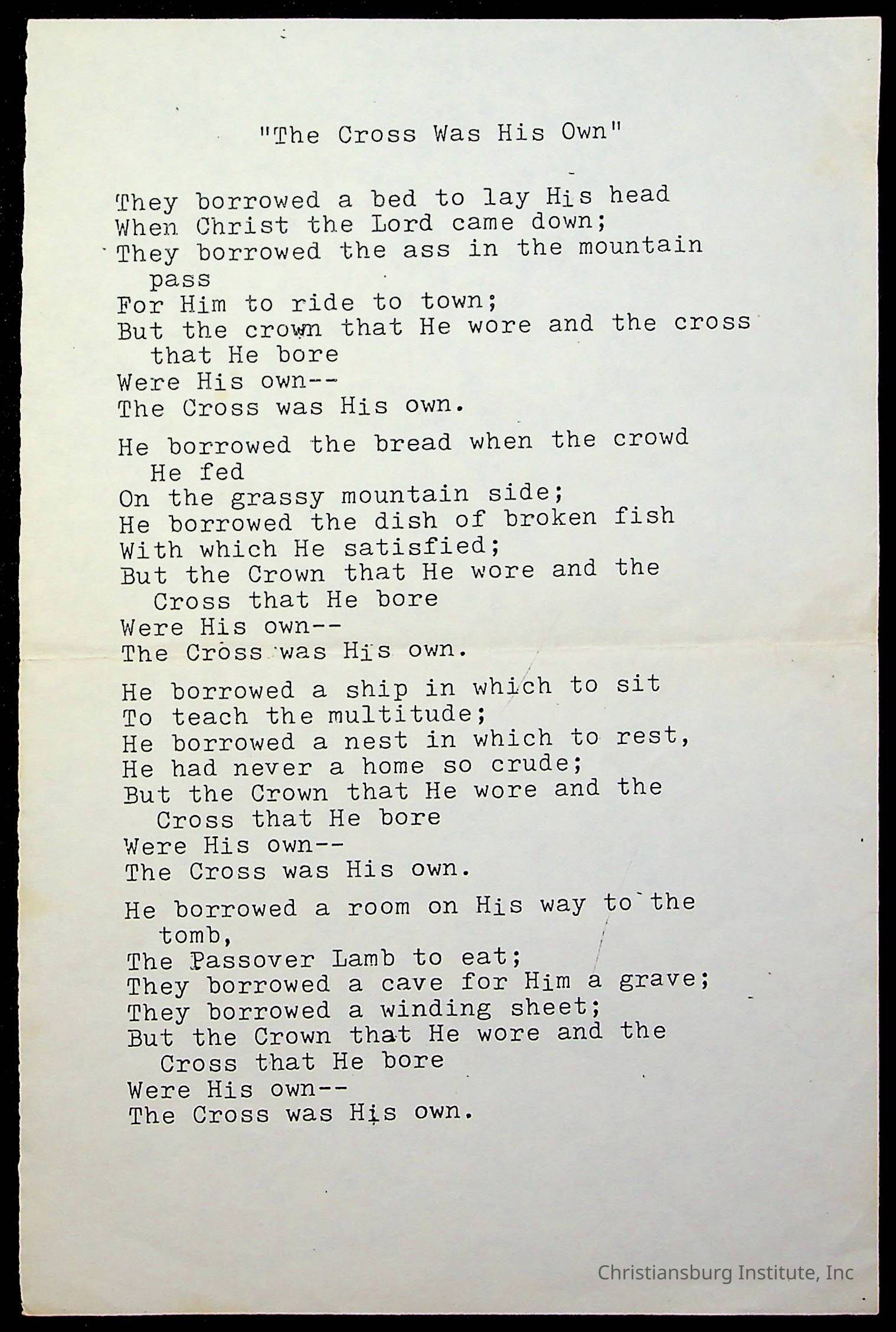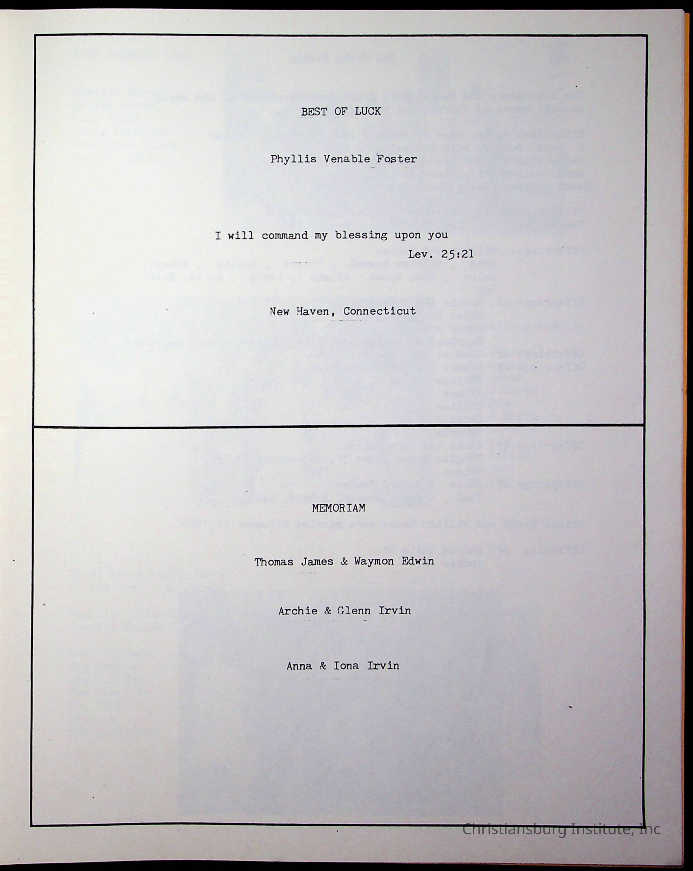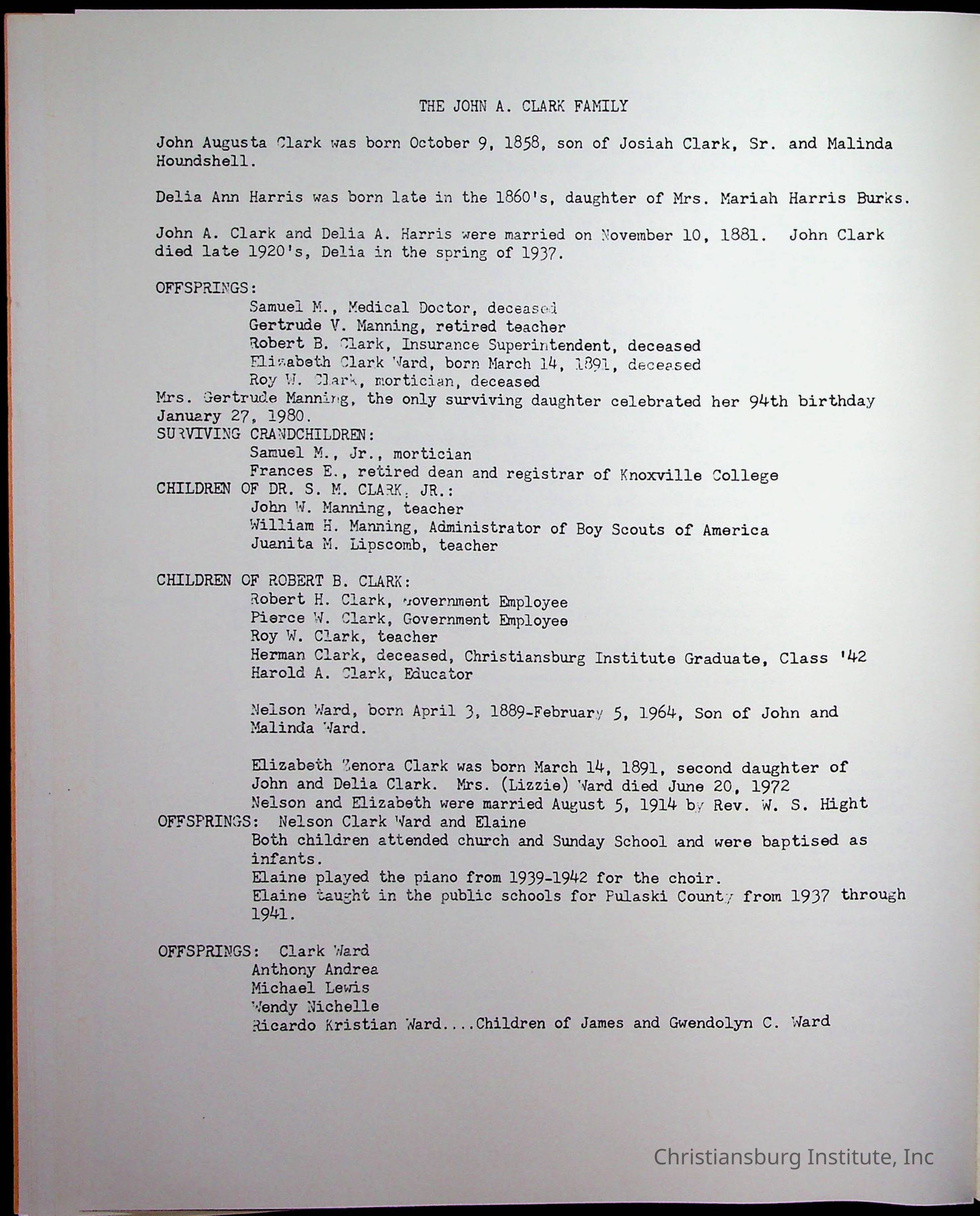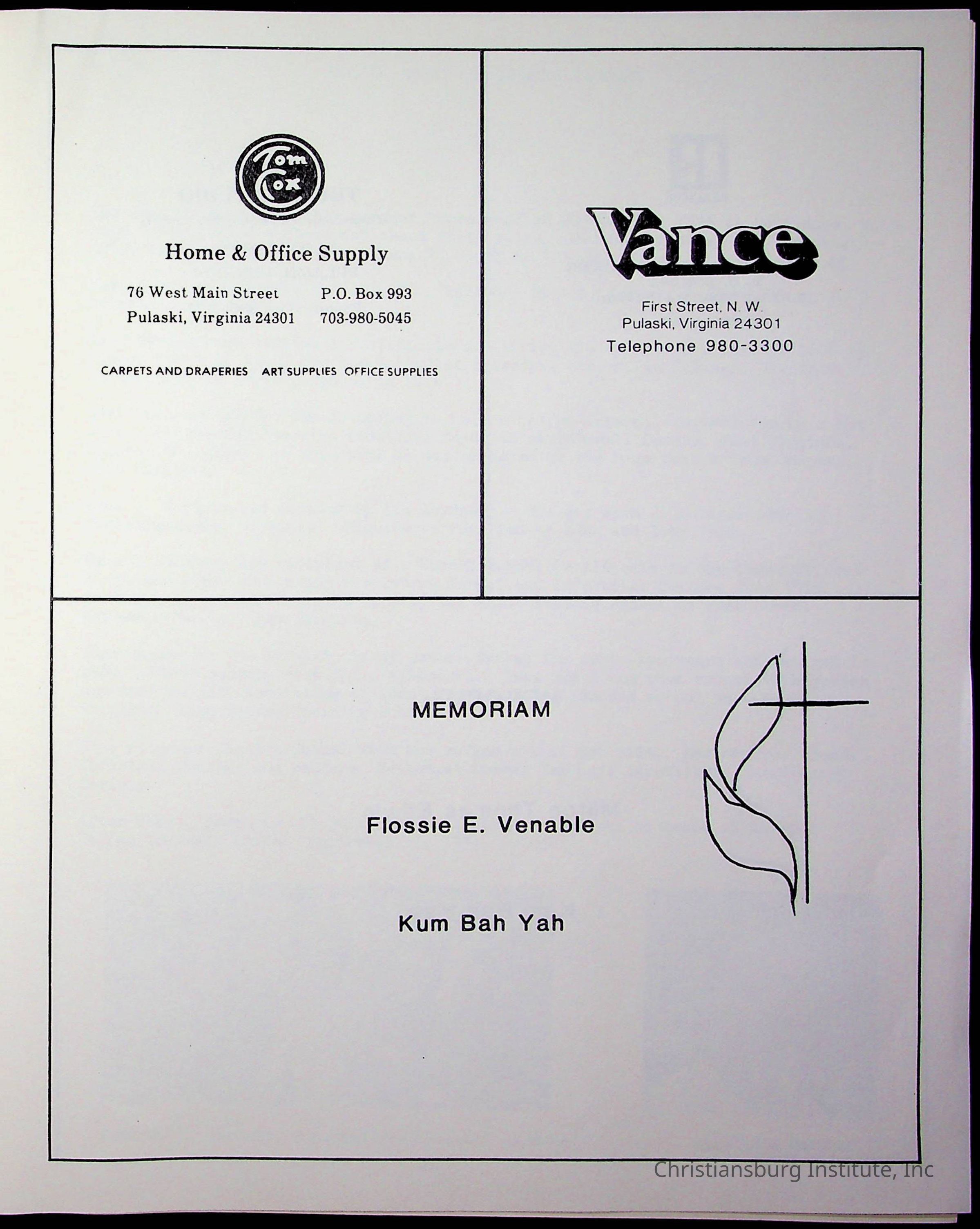 Copyright has been assigned to Christiansburg Institute Museum & Archives by Amanda DeHart. For permission to publish materials created by the donor, contact CIMA@christiansburginstitute.com. Materials not created by Amanda DeHart may still be under copyright.
