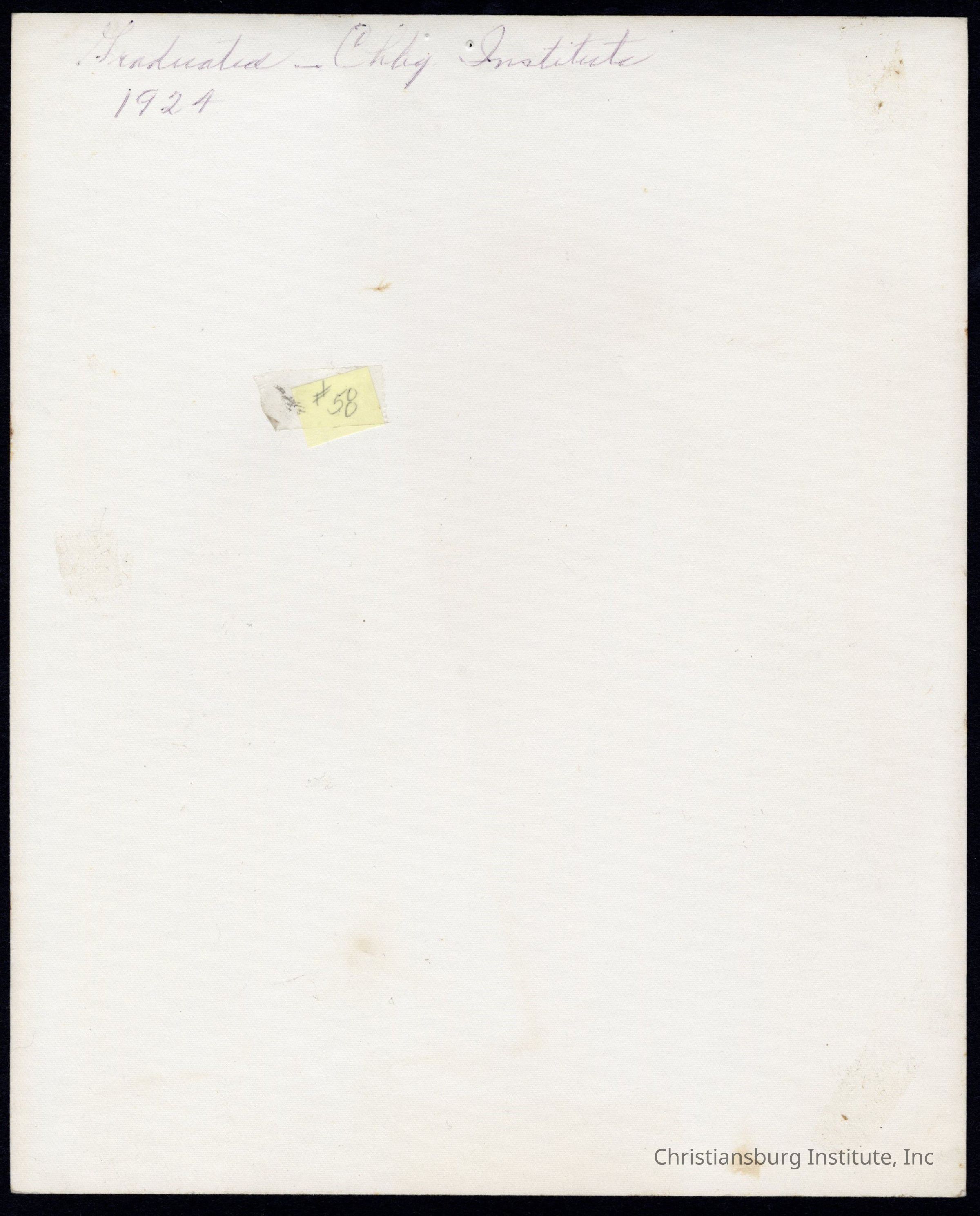 A photograph of an unknown graduate of Christiansburg Institute dated 1924.