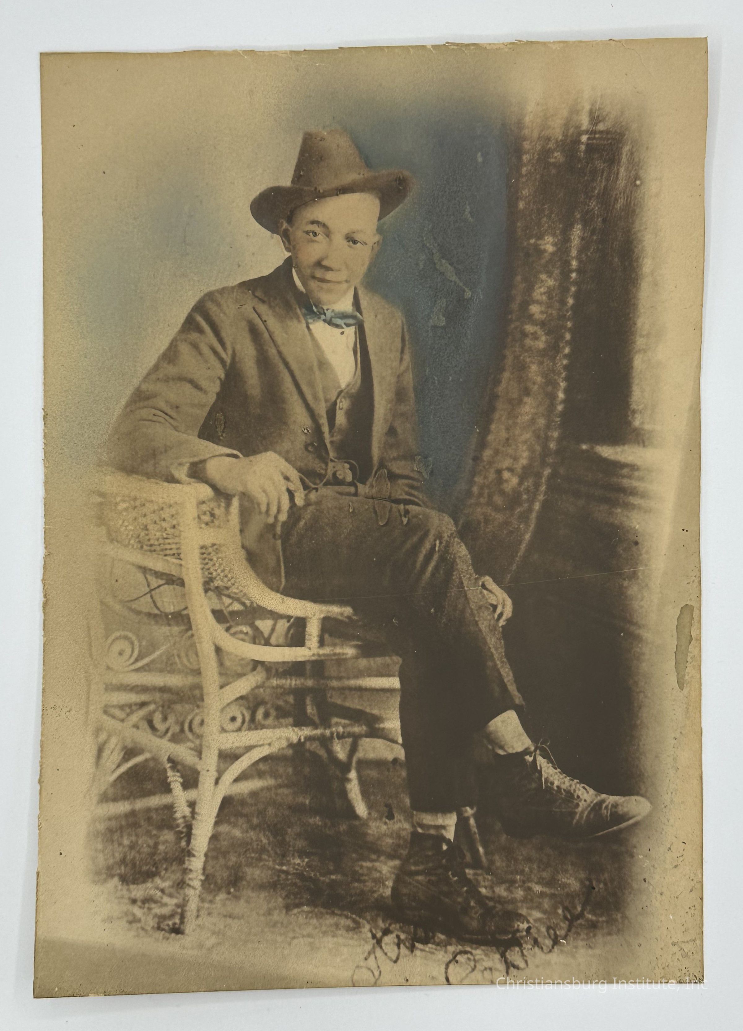 Unknown Man in Wicker Chair, undatedDescription