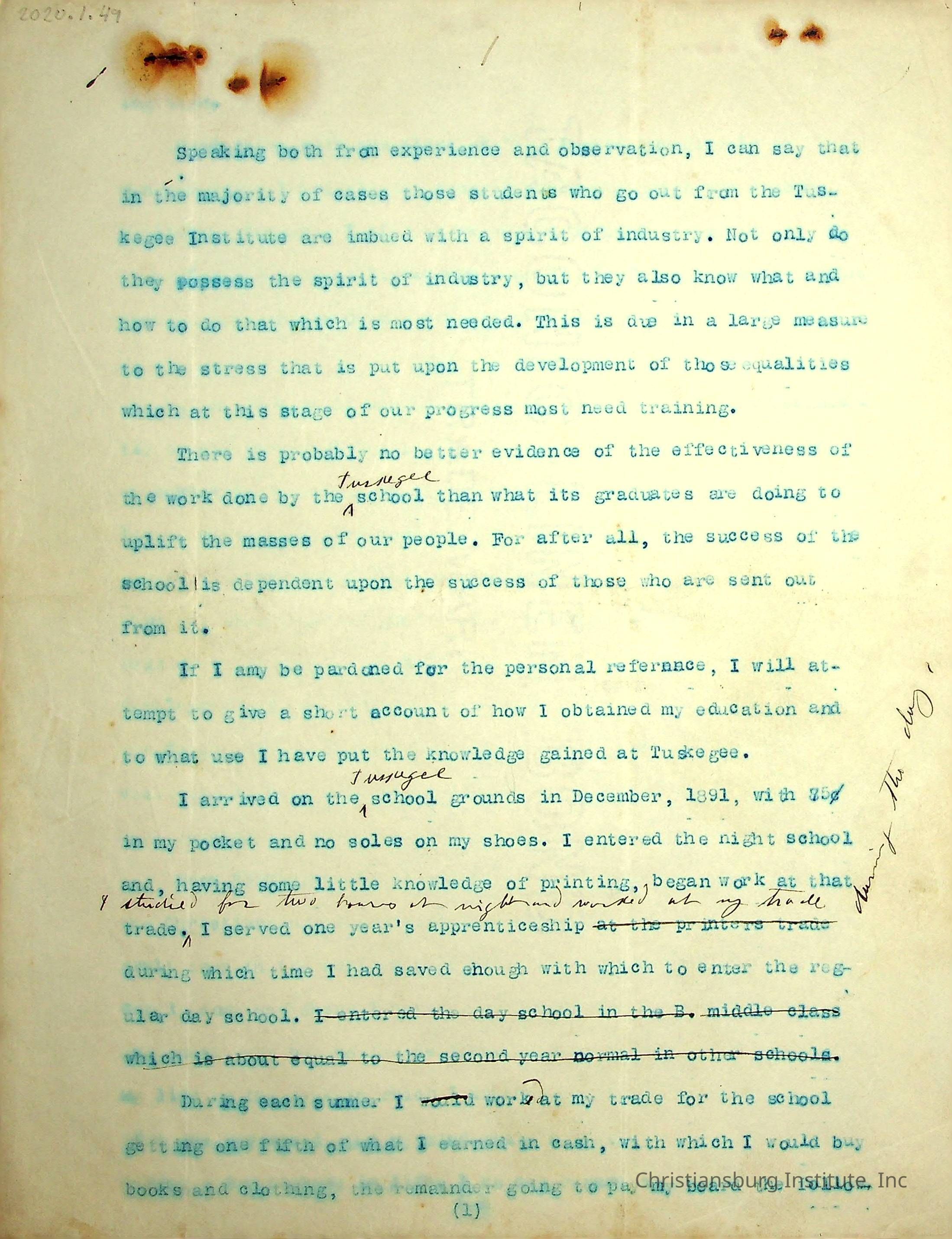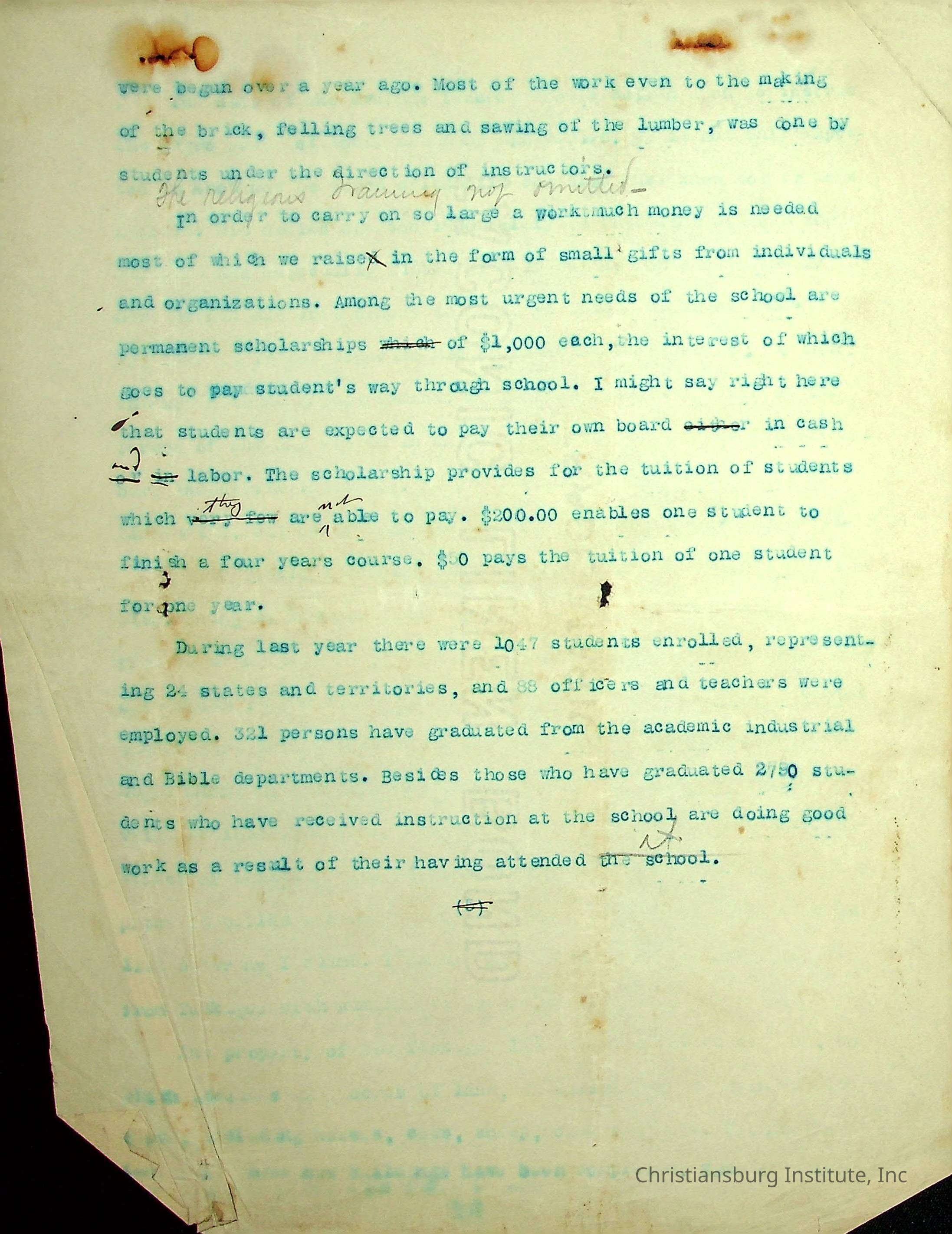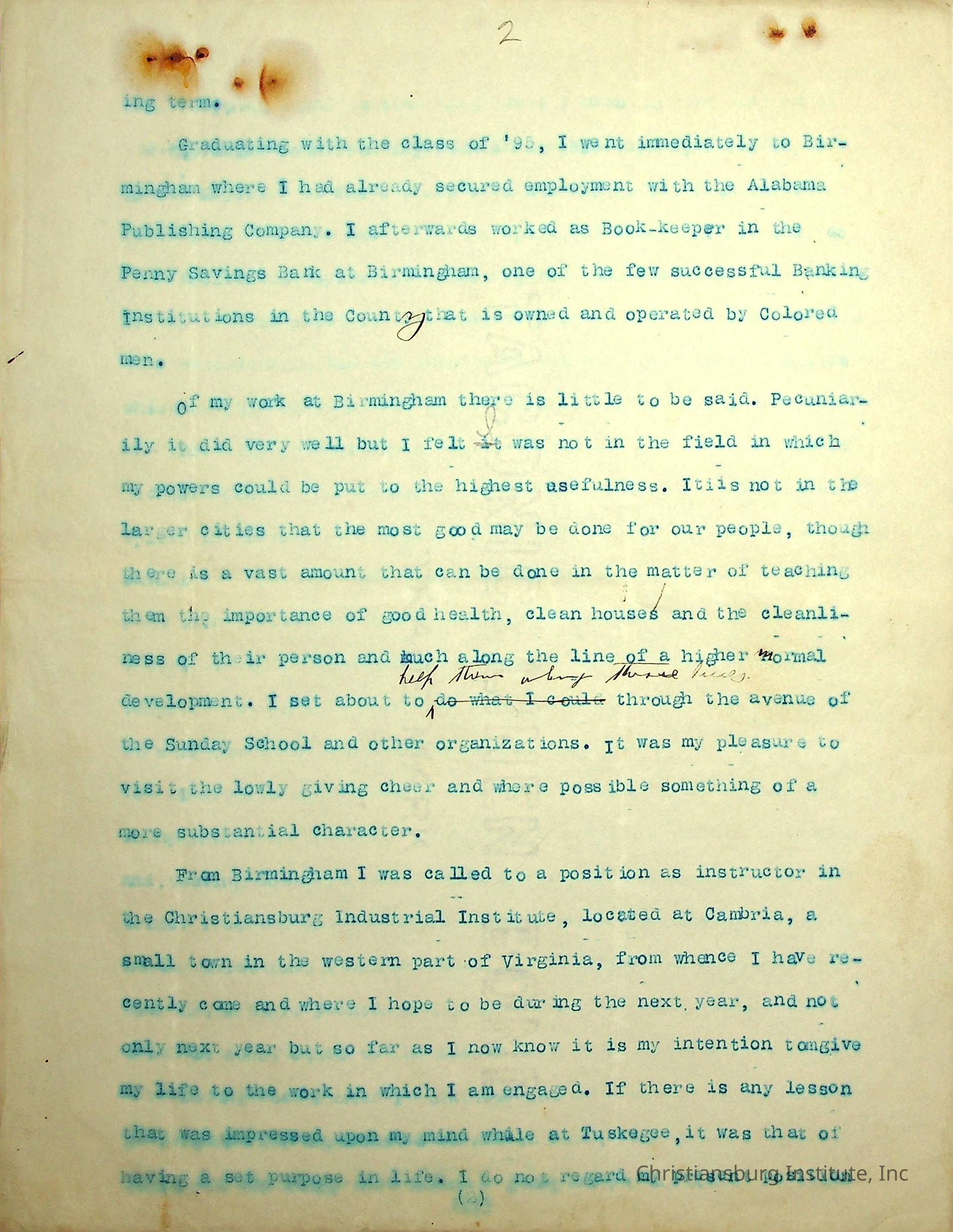 Copyright has been assigned to Christiansburg Institute Museum & Archives by Carlton Banks. For permission to publish materials created by the donor, contact CIMA@christiansburginstitute.com. Materials not created by John F. Banks may still be under copyright.