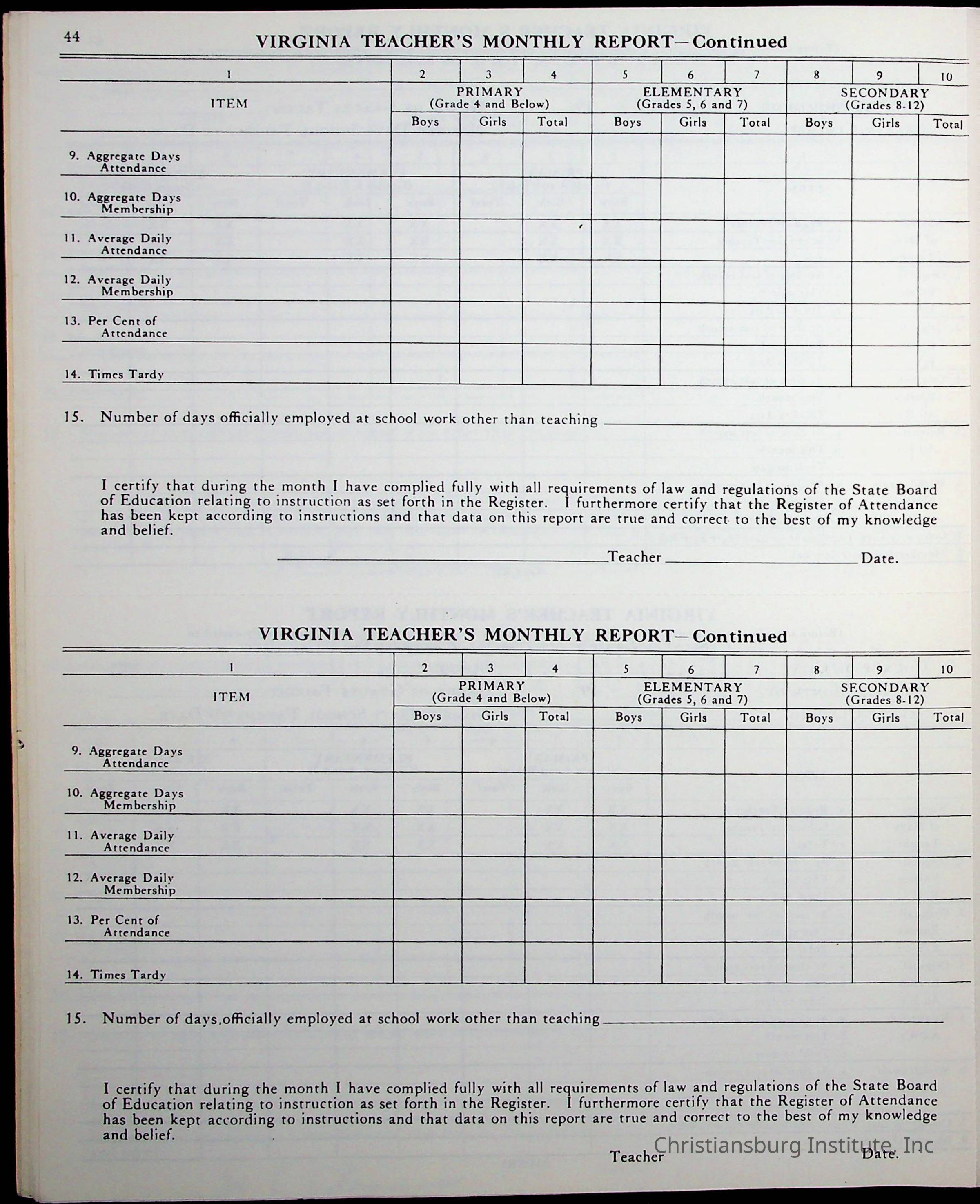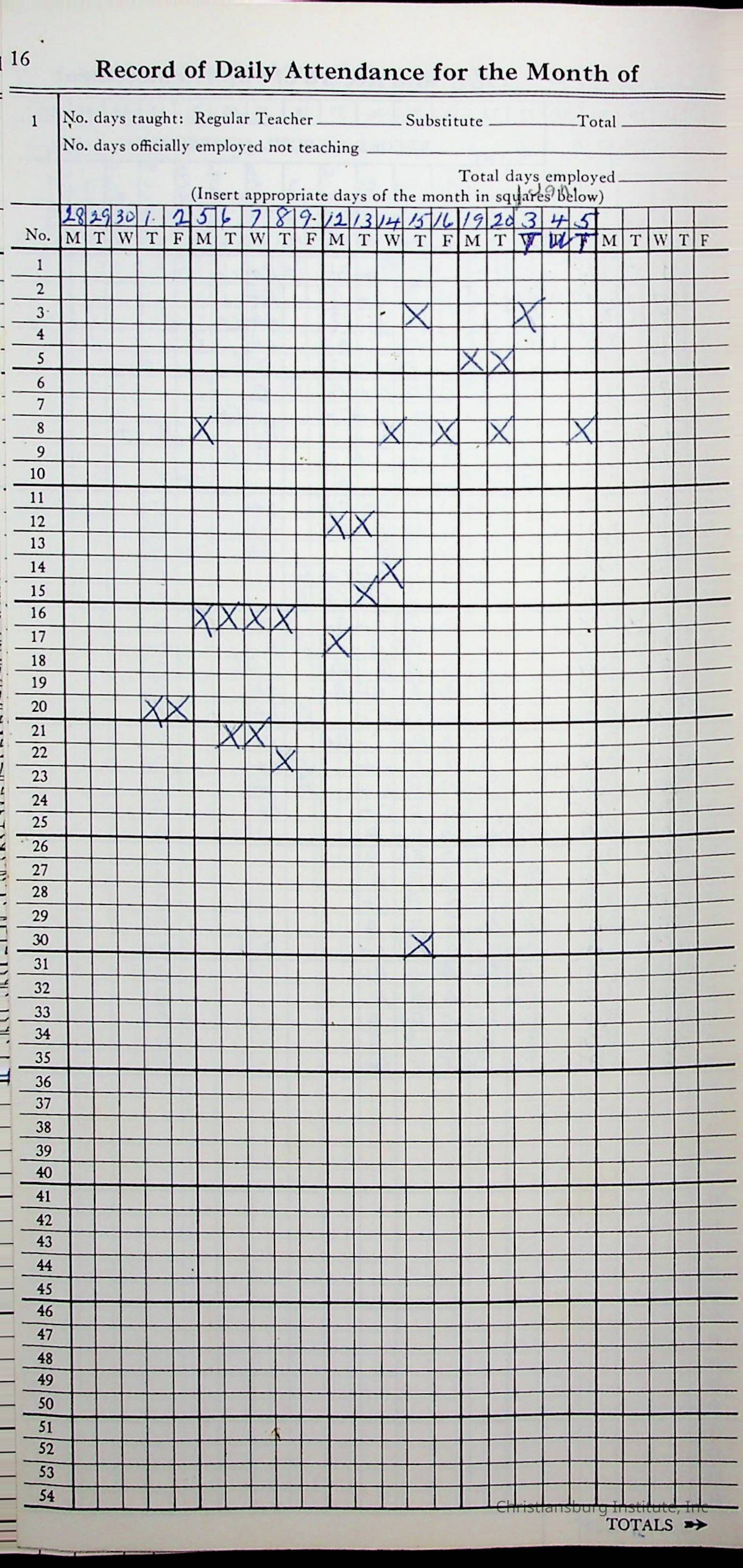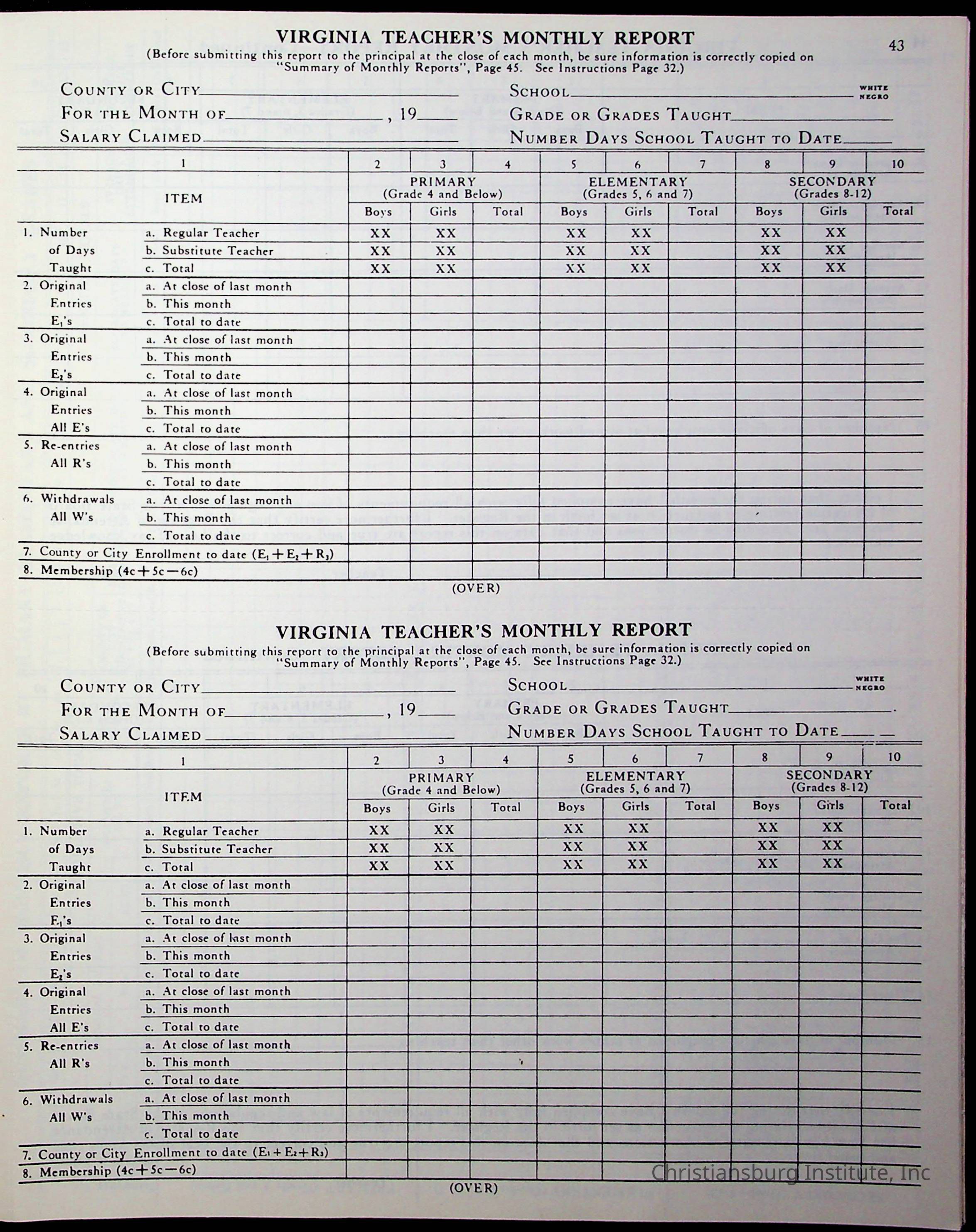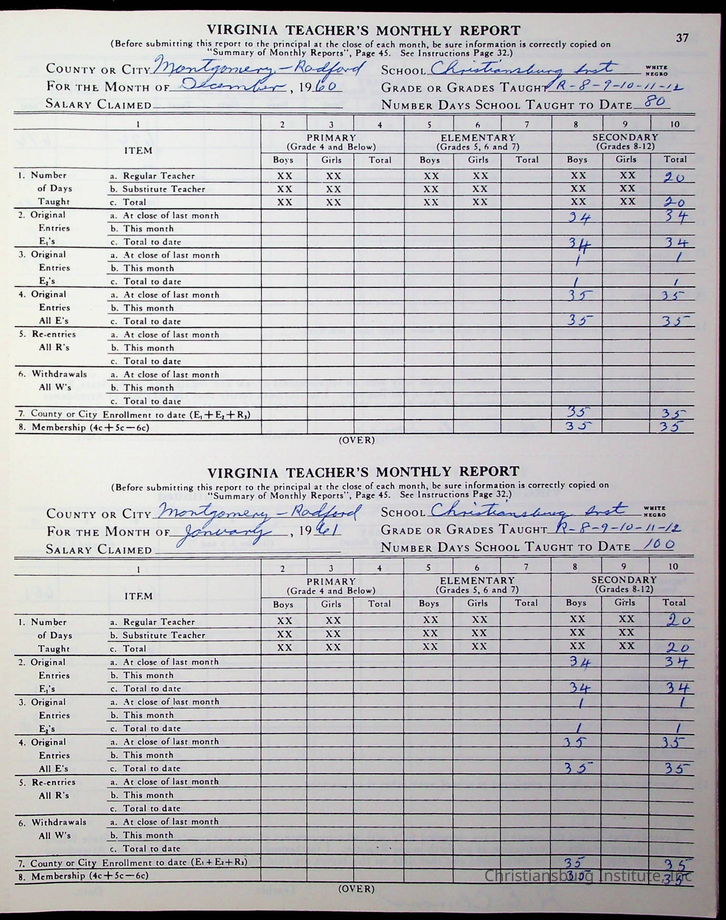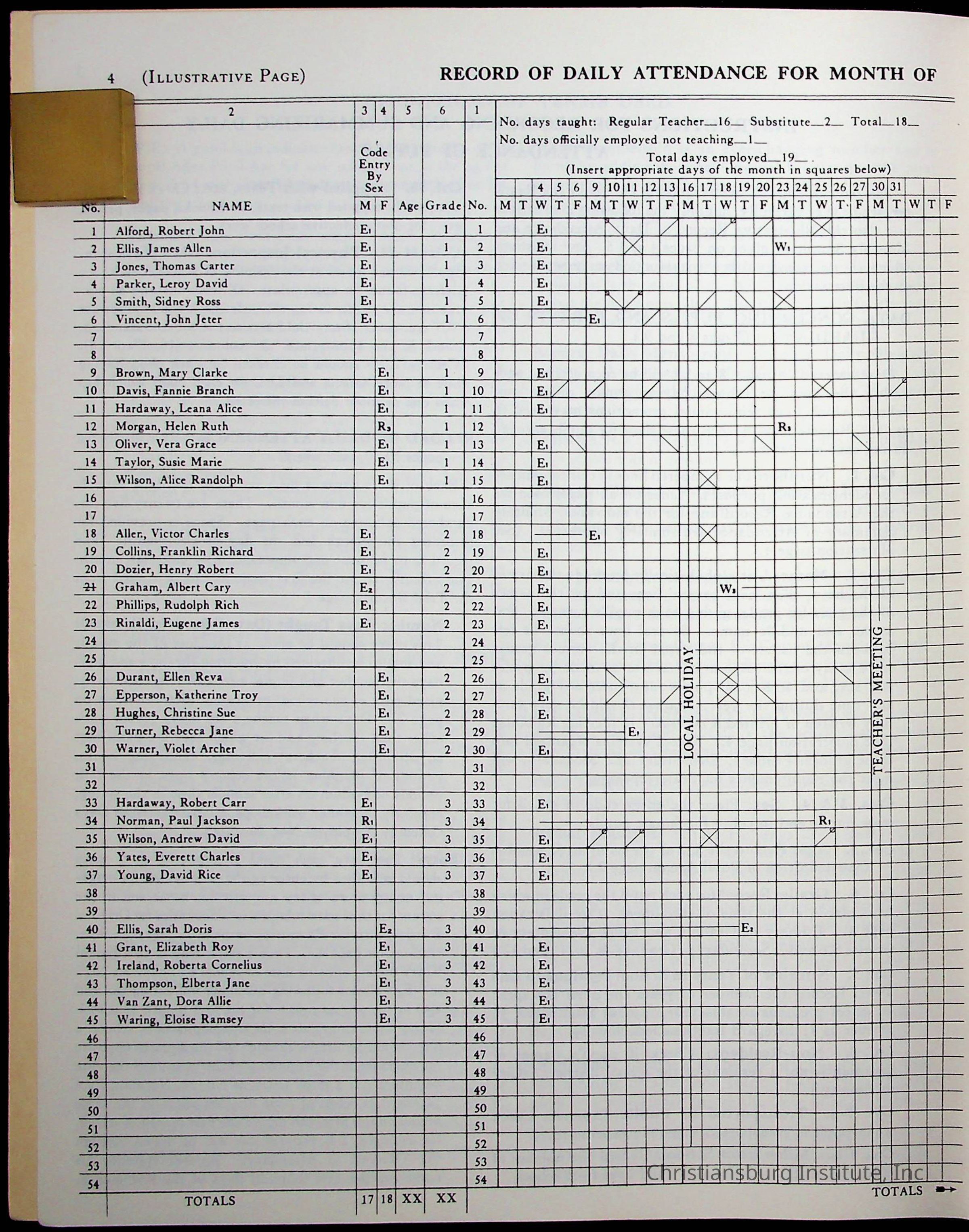 VA Teacher’s Register for H.E. Clemons, 1960-1961 (Radford Boys)Scope and Content