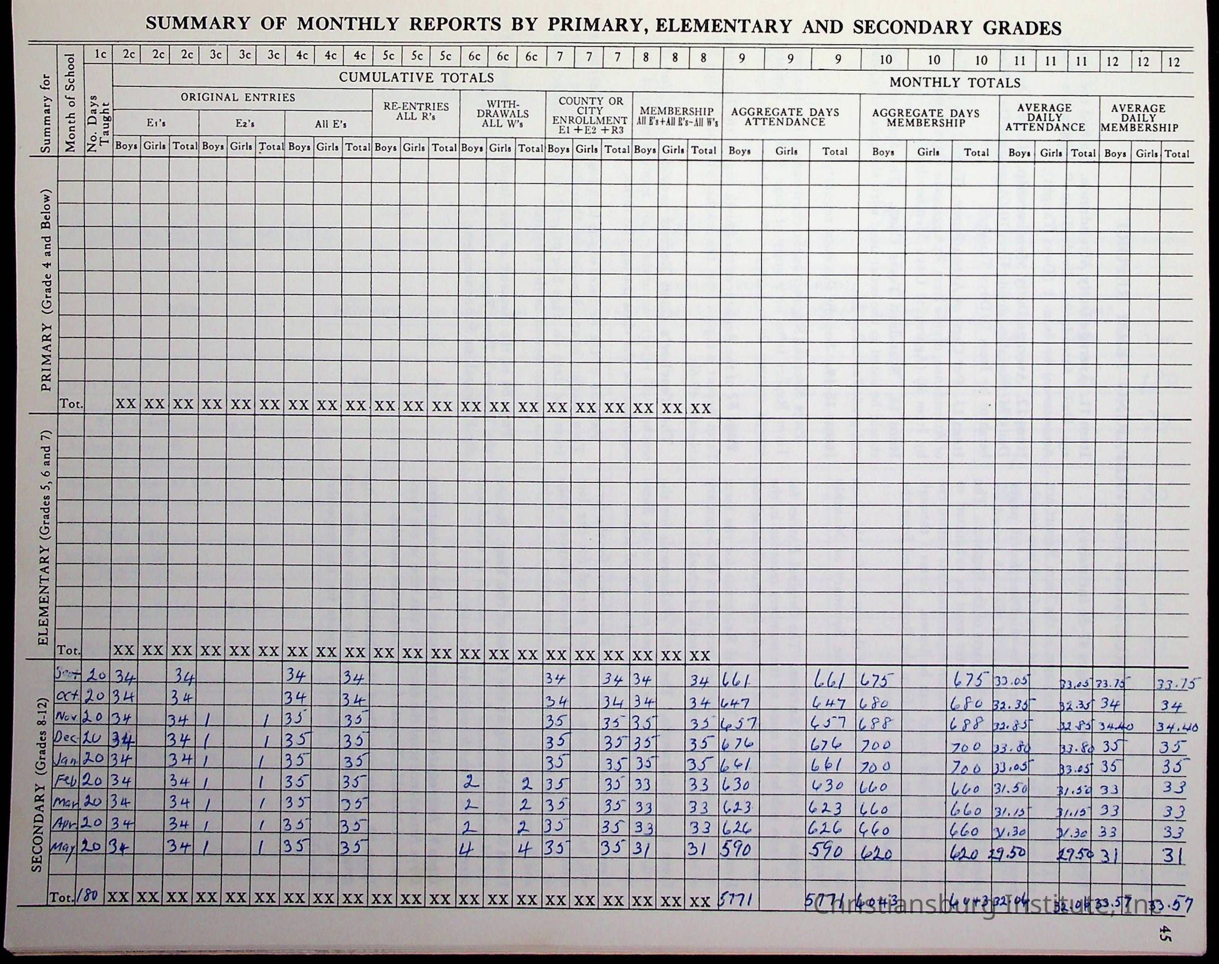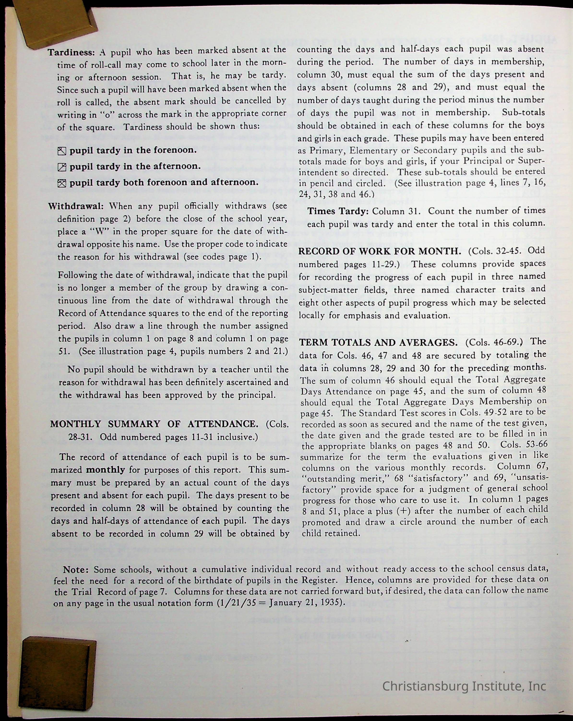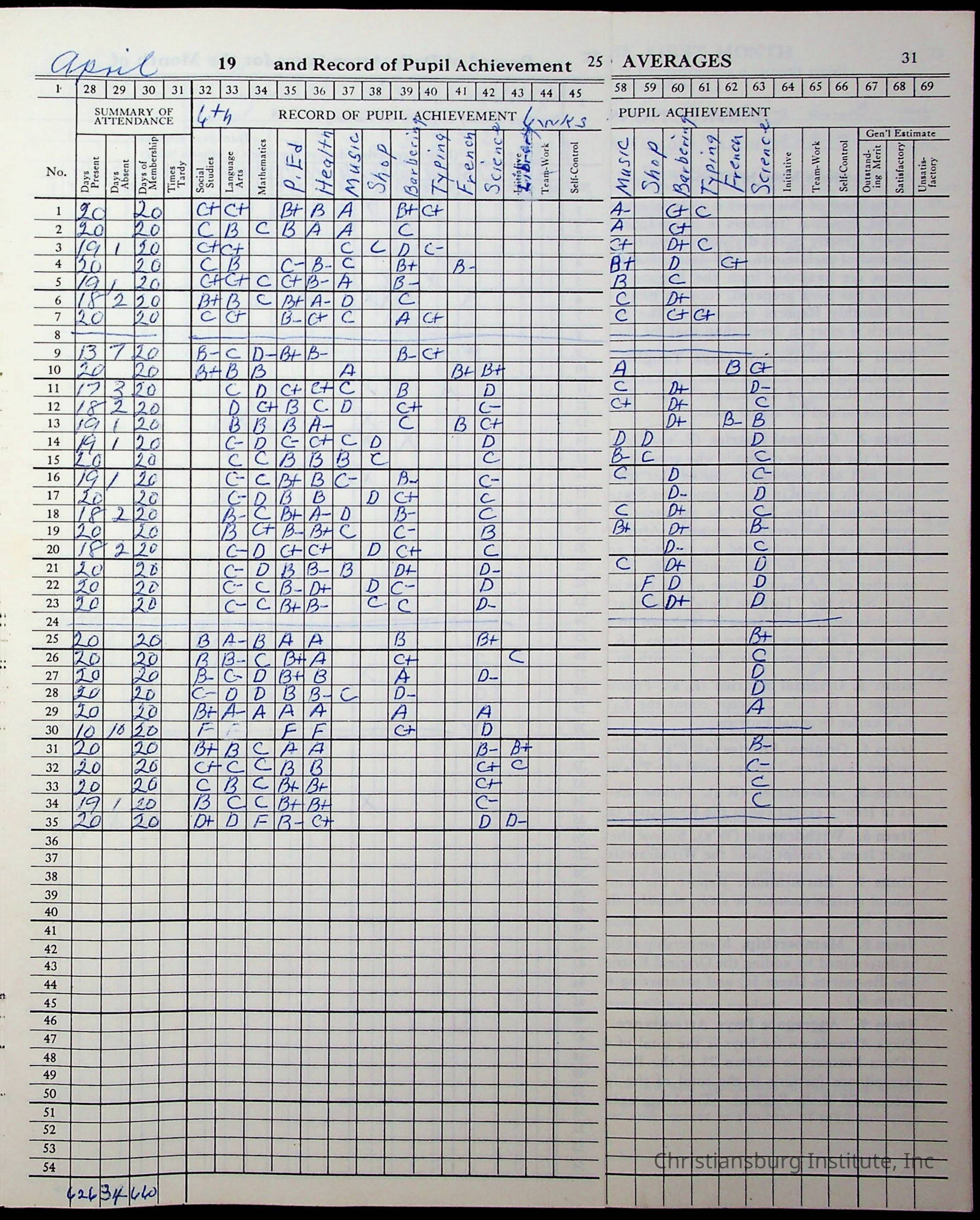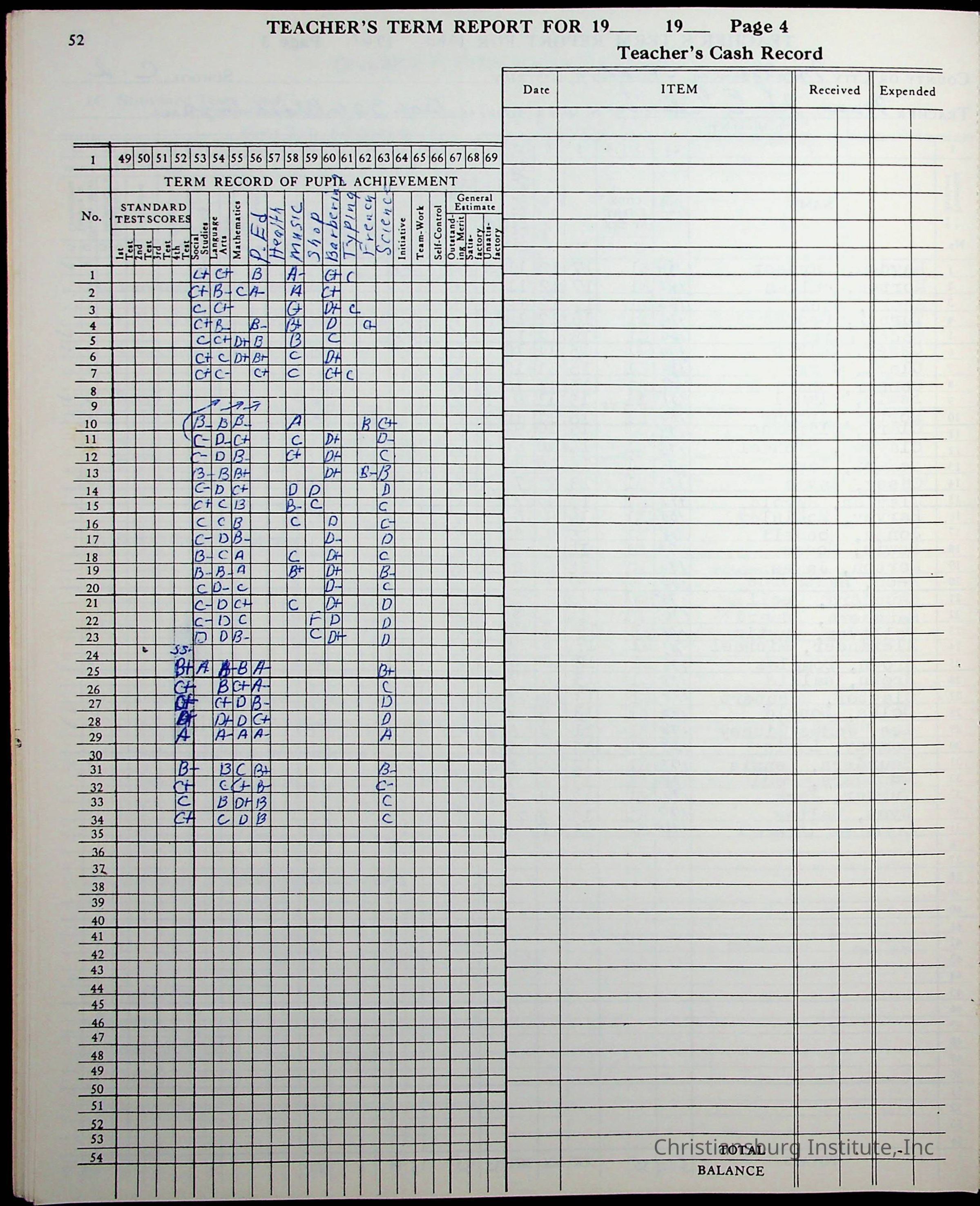 Hattie E. Clemons' Virginia teacher's register book for the school year 1960-1961 for Radford boy students at Christiansburg Institute including information about her students, their attendance, and course grades.Collection