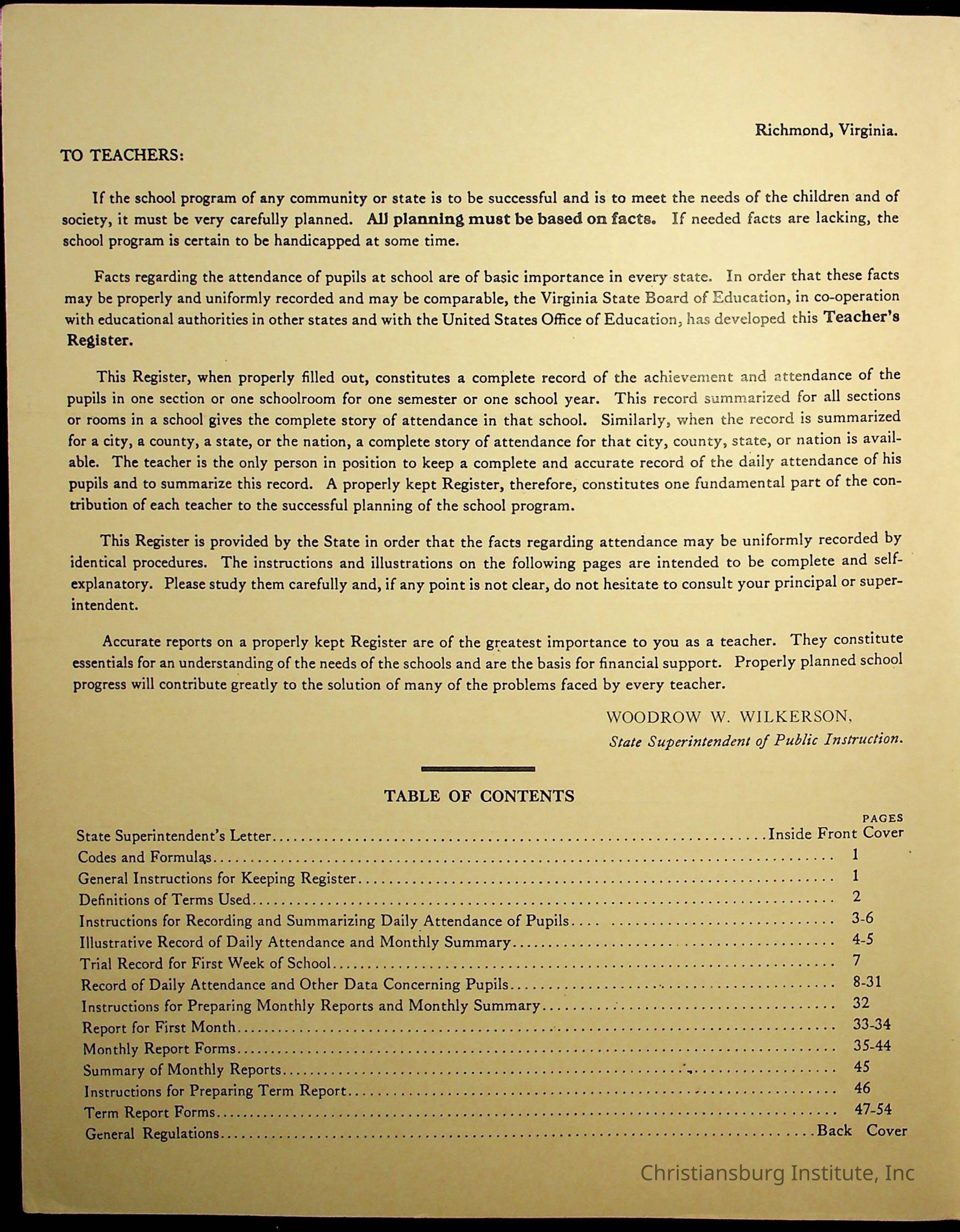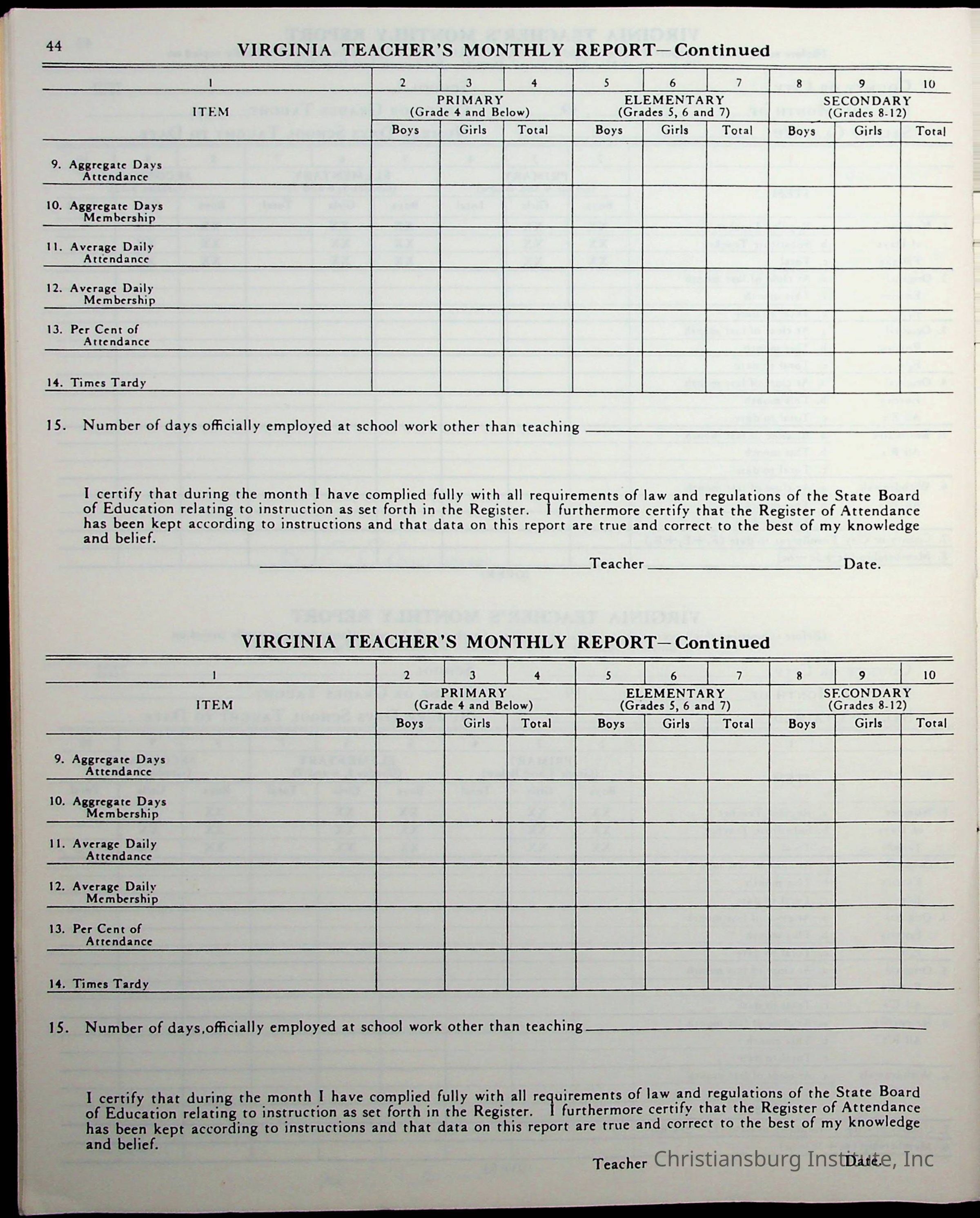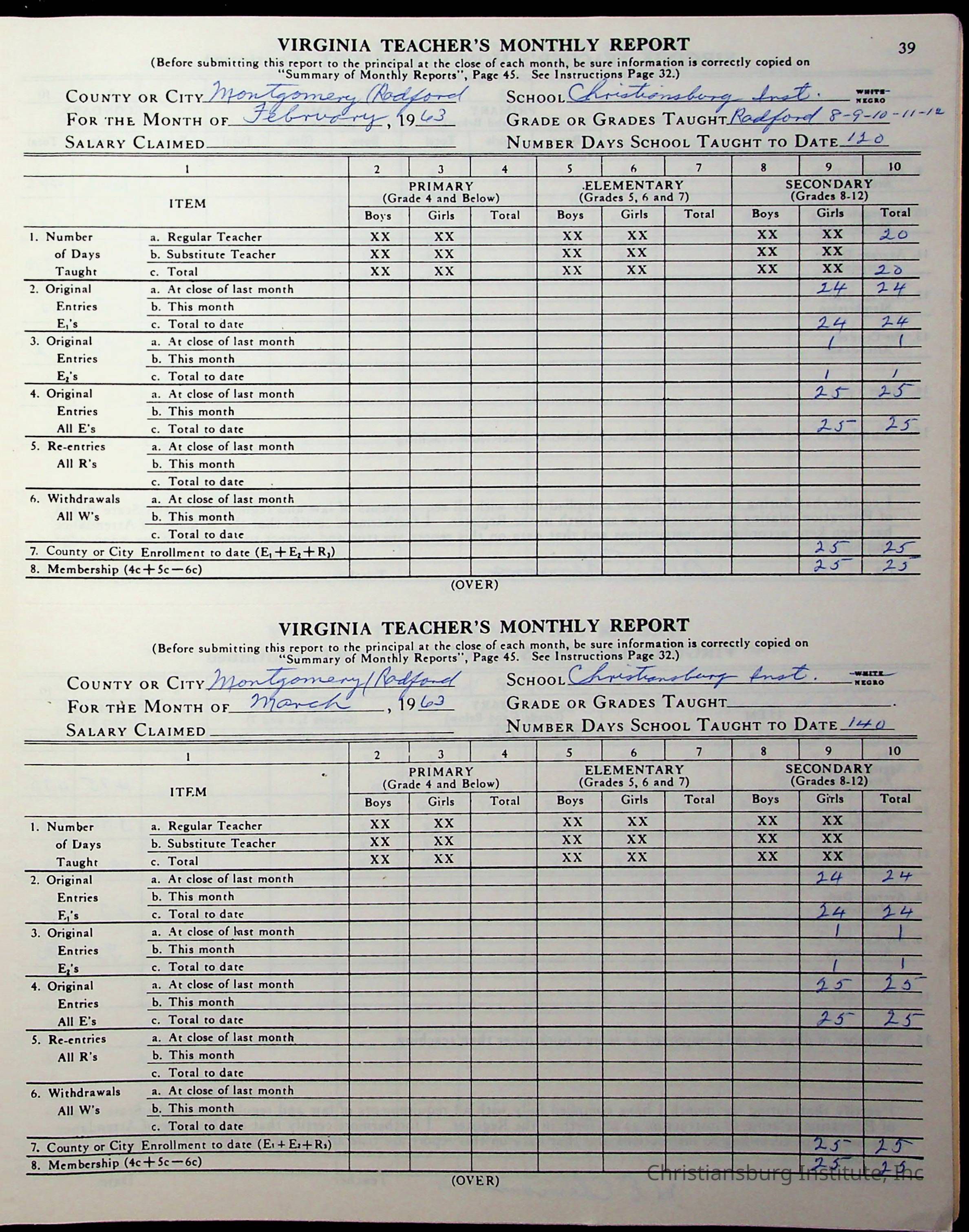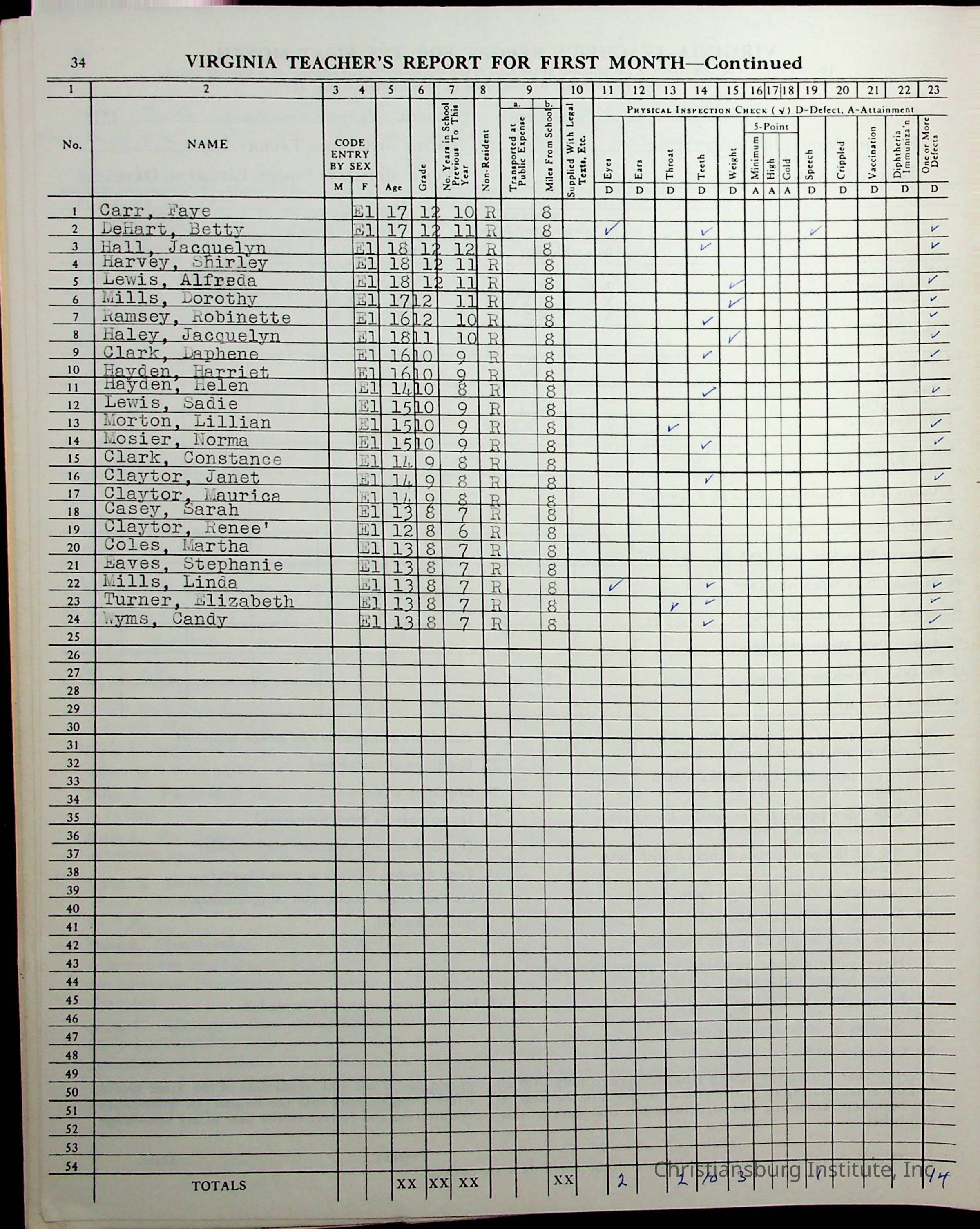 VA Teacher’s Register for H.E. Clemons, 1962-1963 (Radford Girls)Scope and Content
