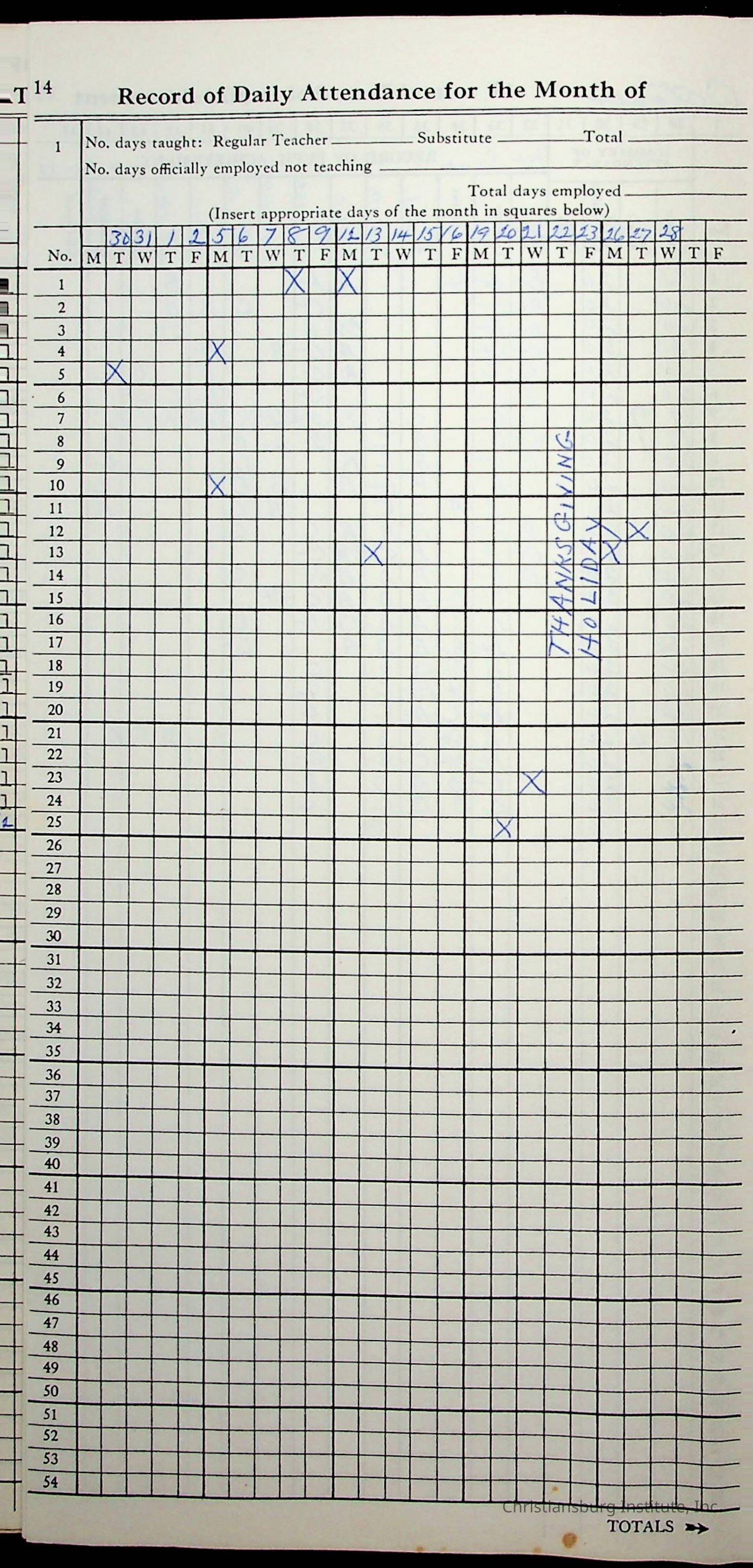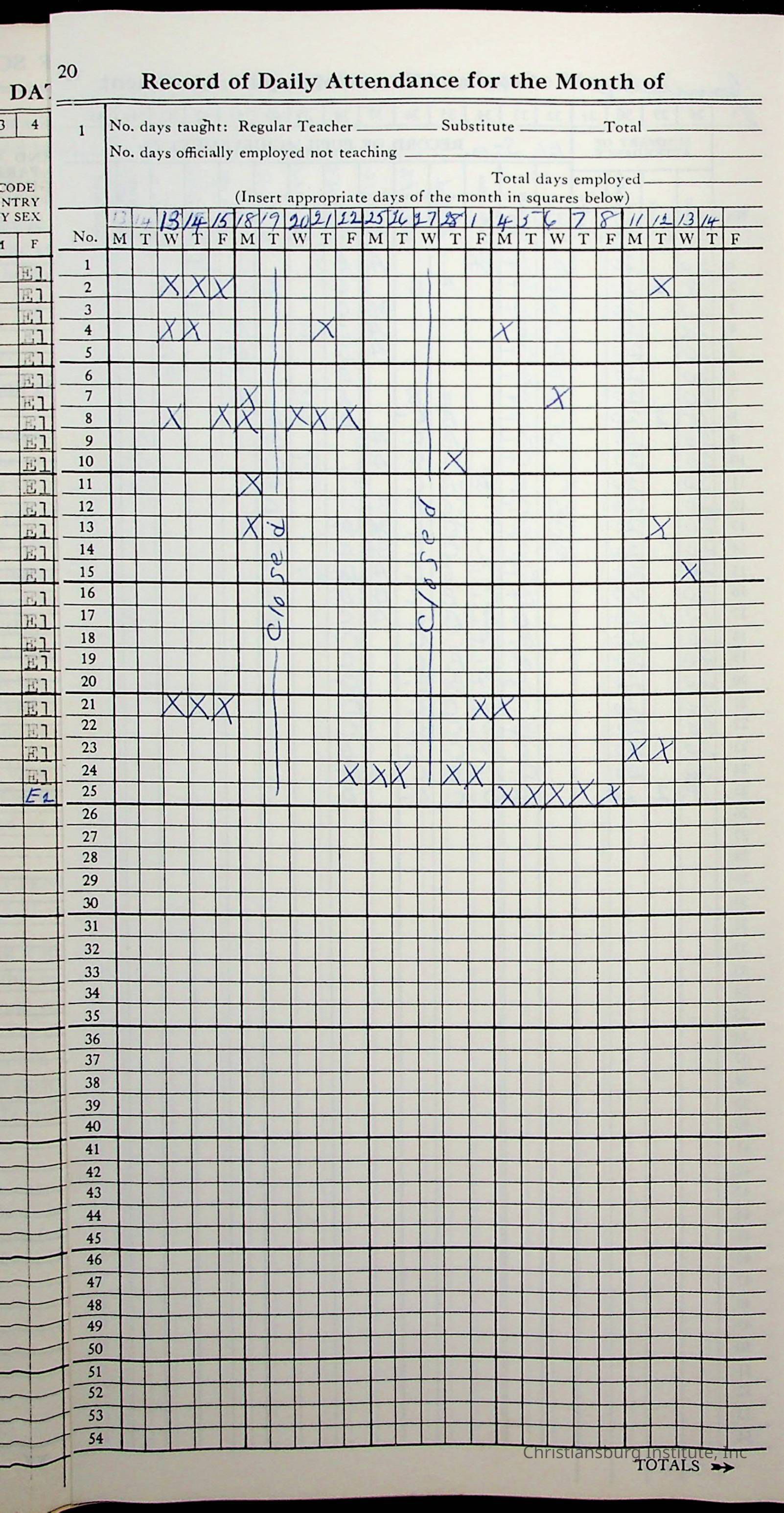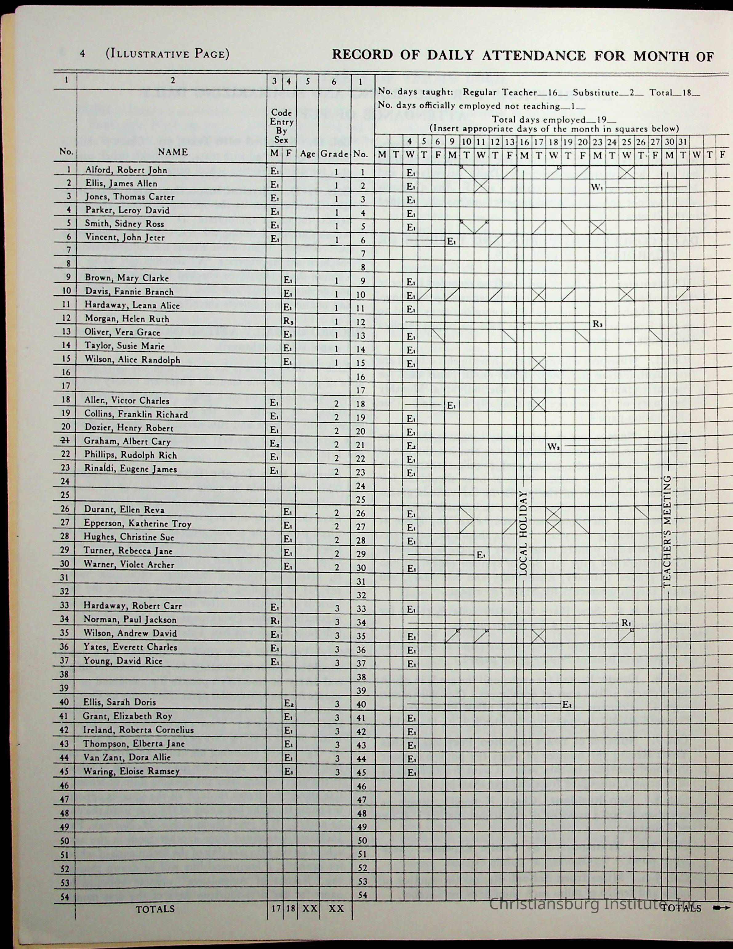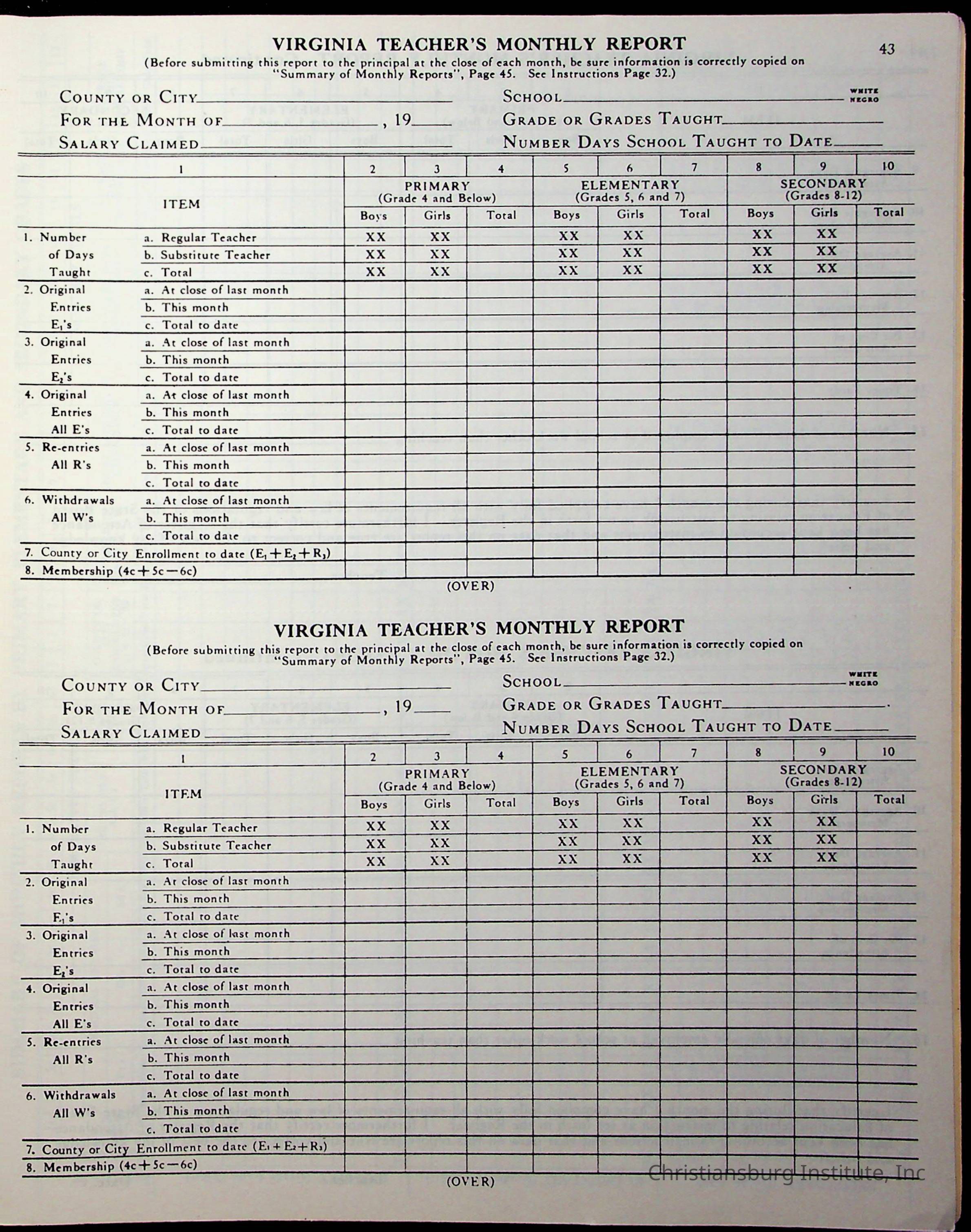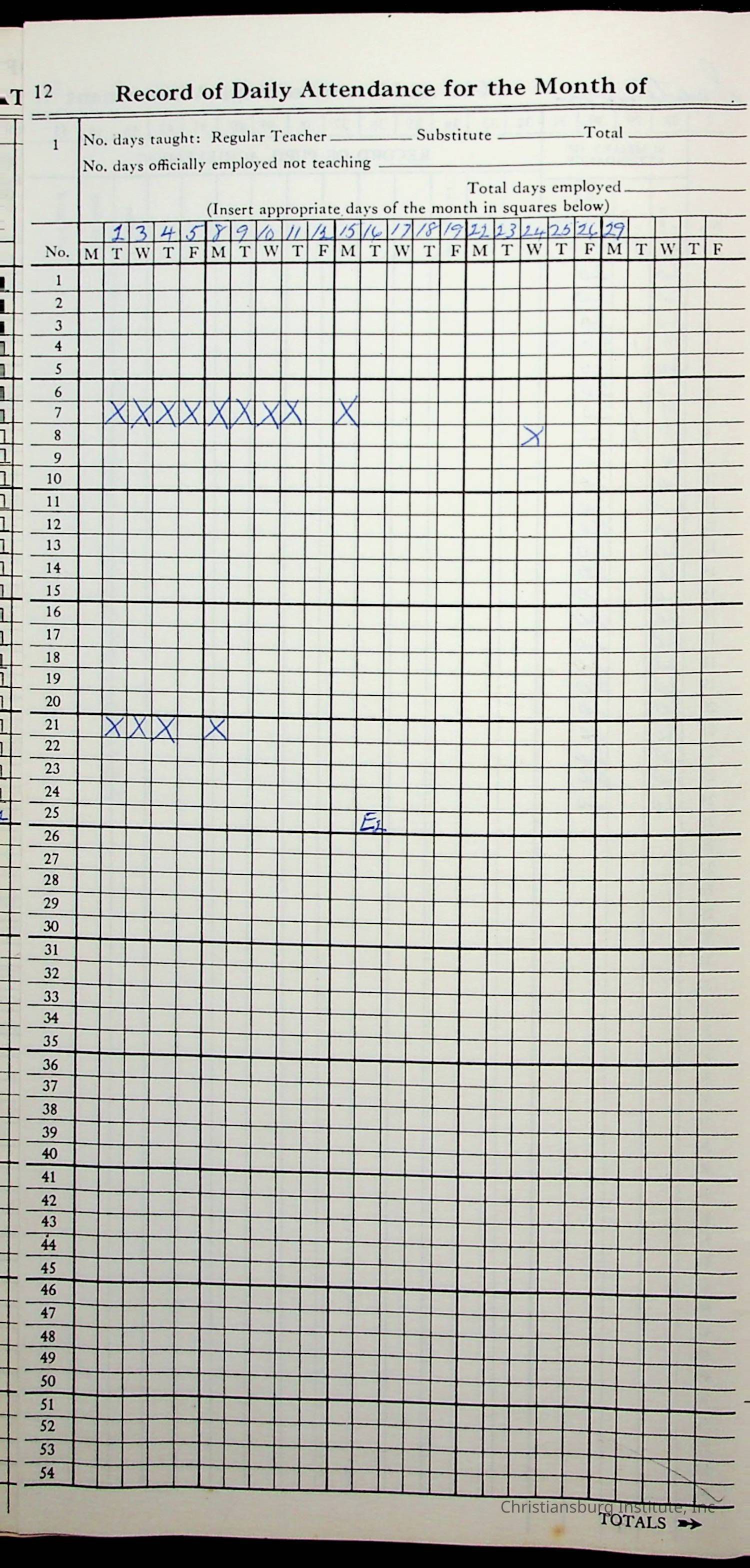 VA Teacher’s Register for H.E. Clemons, 1962-1963 (Radford Girls)Scope and Content