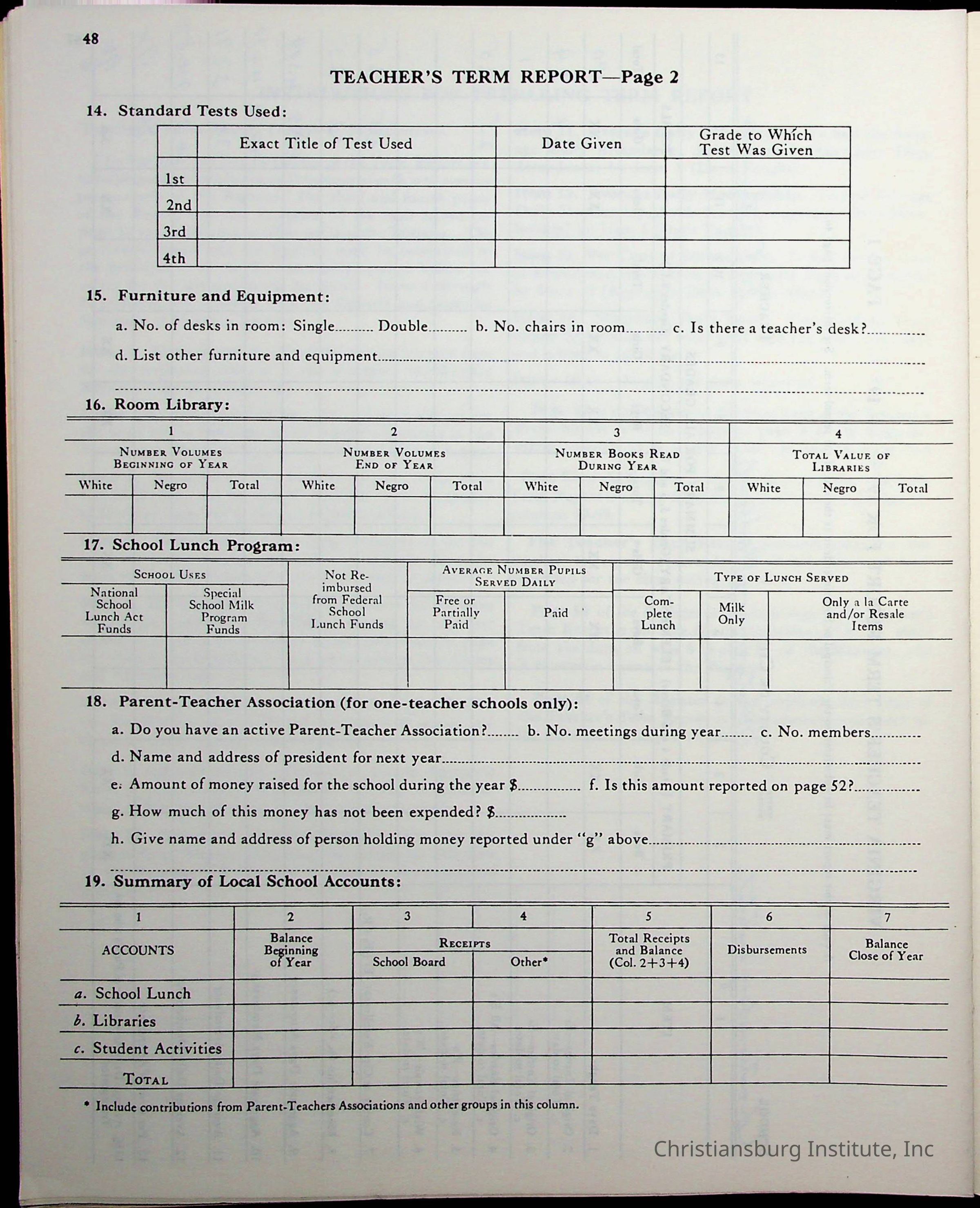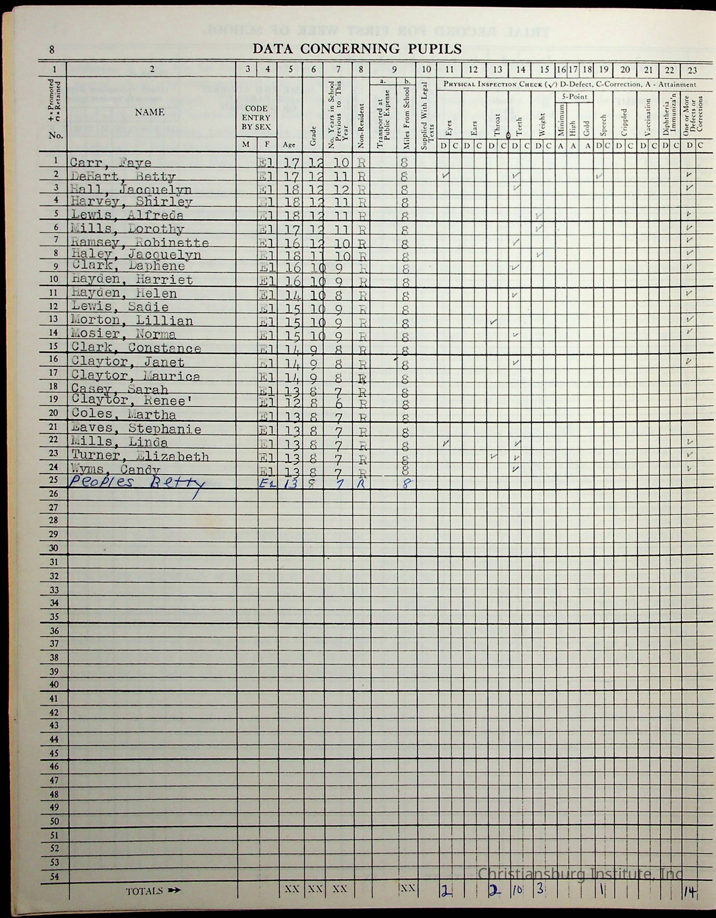 Copyright has been assigned to Christiansburg Institute Museum & Archives by Montgomery County Public Schools. For permission to publish materials created by the donor, contact CIMA@christiansburginstitute.com. Materials not created by Christiansburg Industrial Institute may still be under copyright.