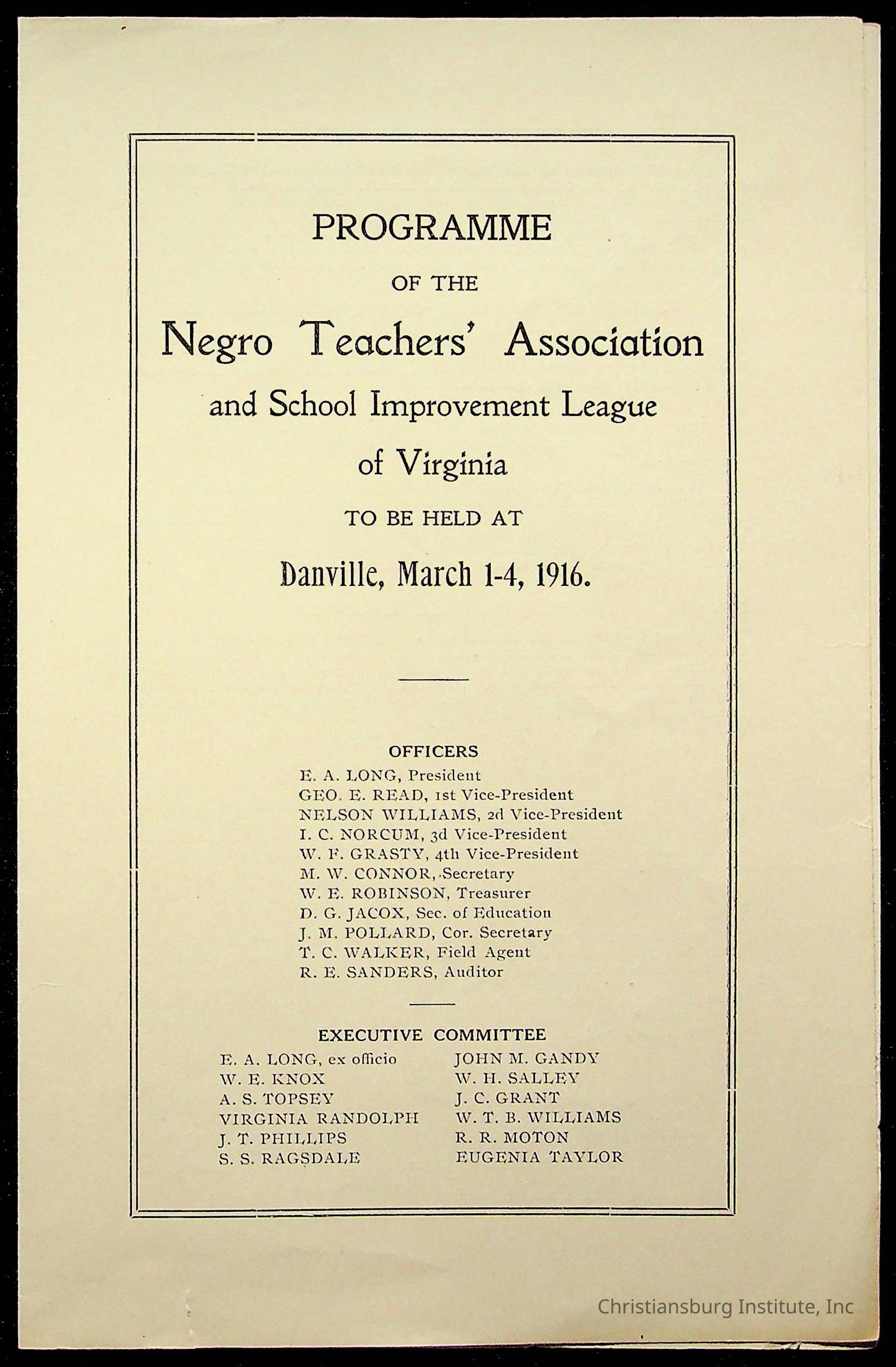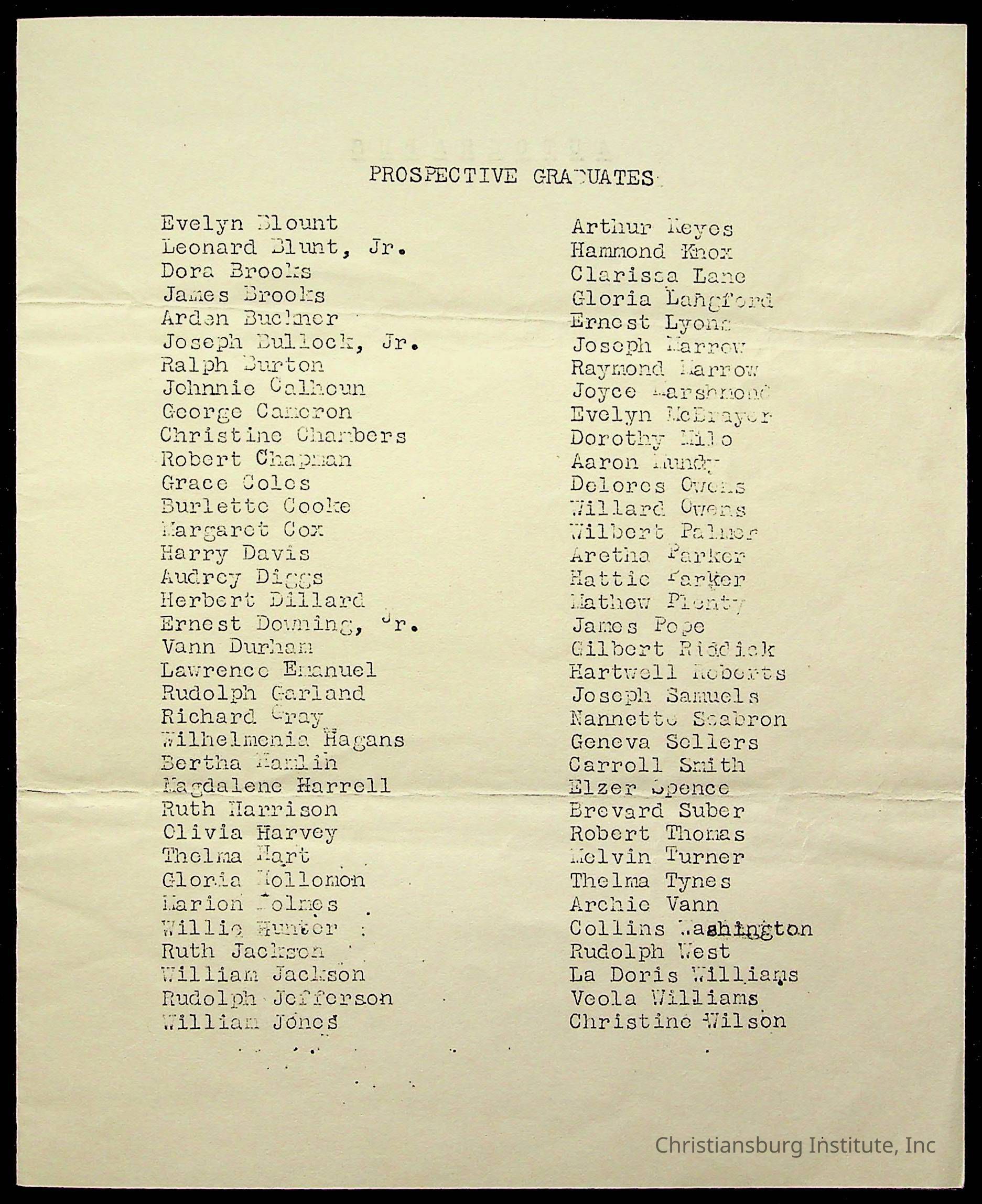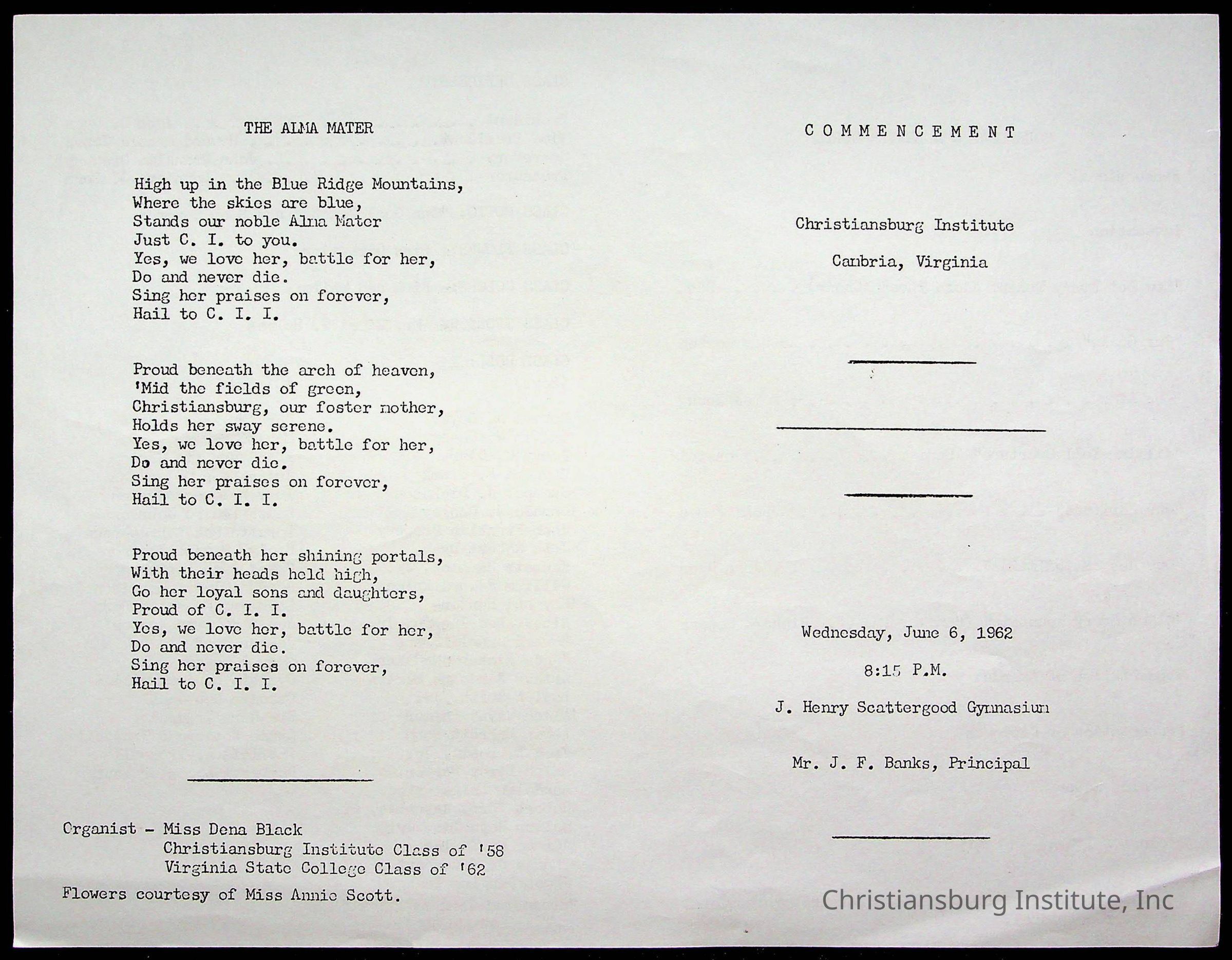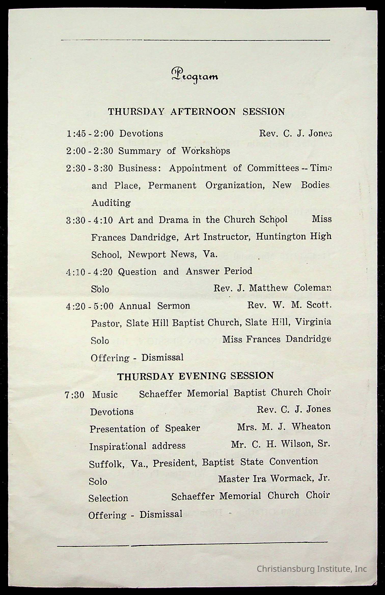Copyright has been assigned to Christiansburg Institute Museum & Archives by Montgomery County Public Schools. For permission to publish materials created by the donor, contact CIMA@christiansburginstitute.com. Materials not created by Christiansburg Industrial Institute may still be under copyright.