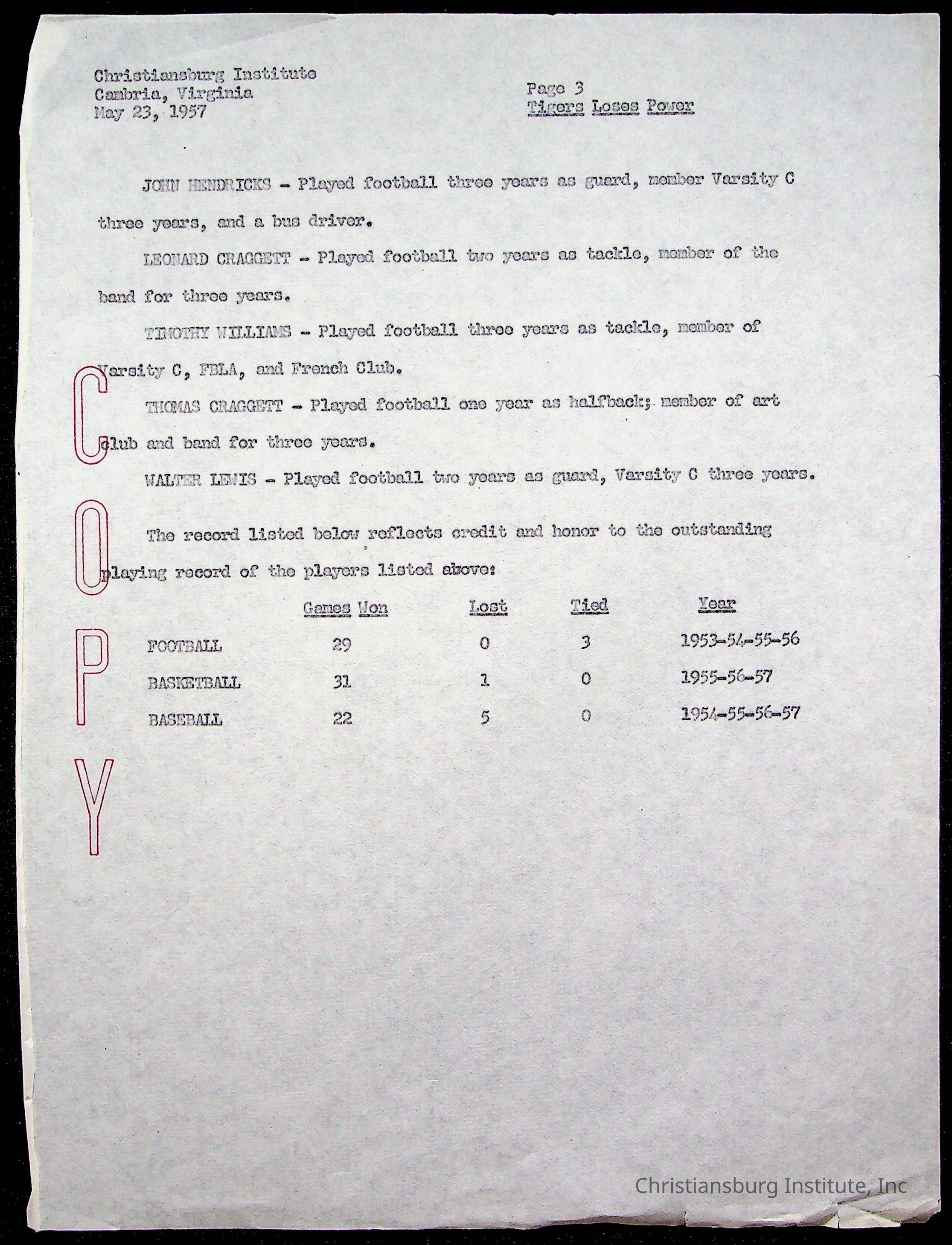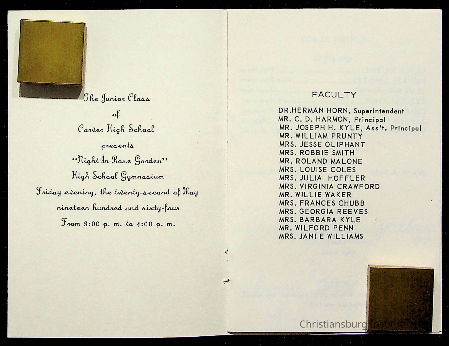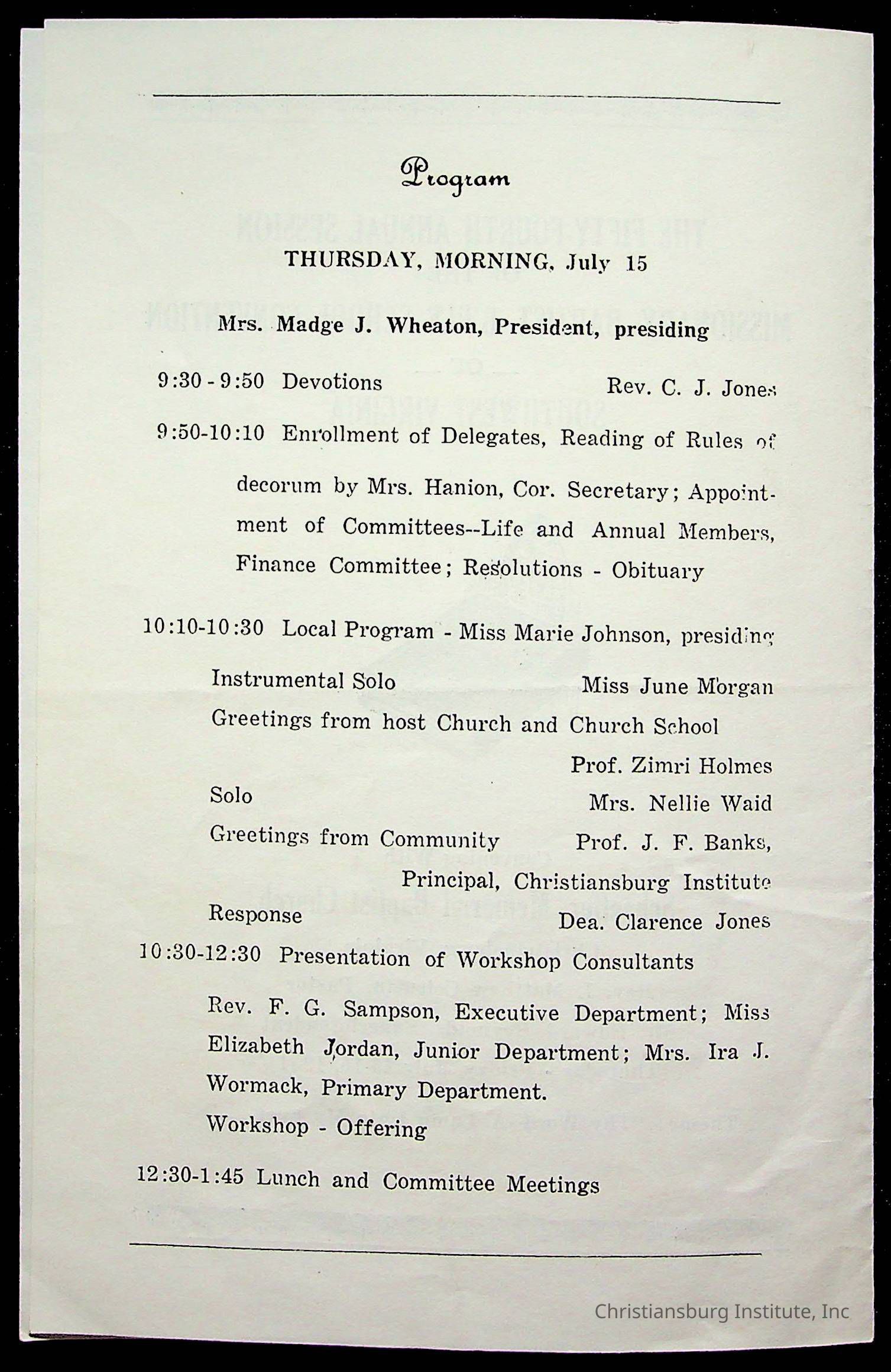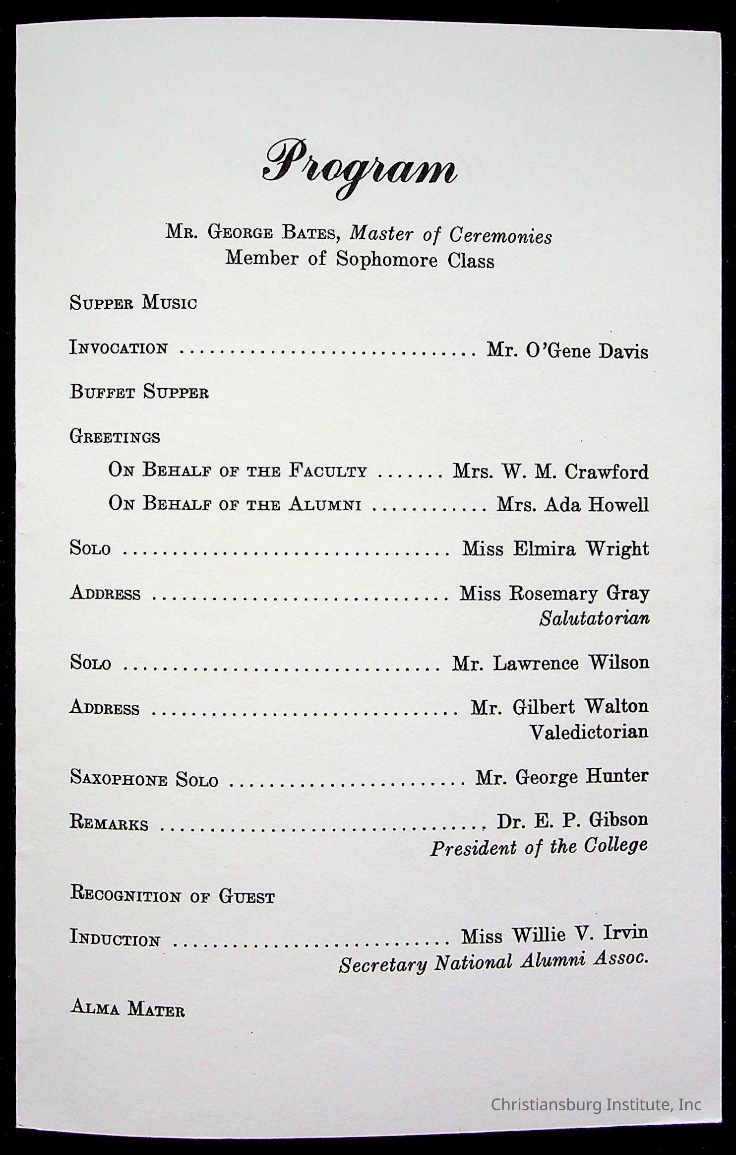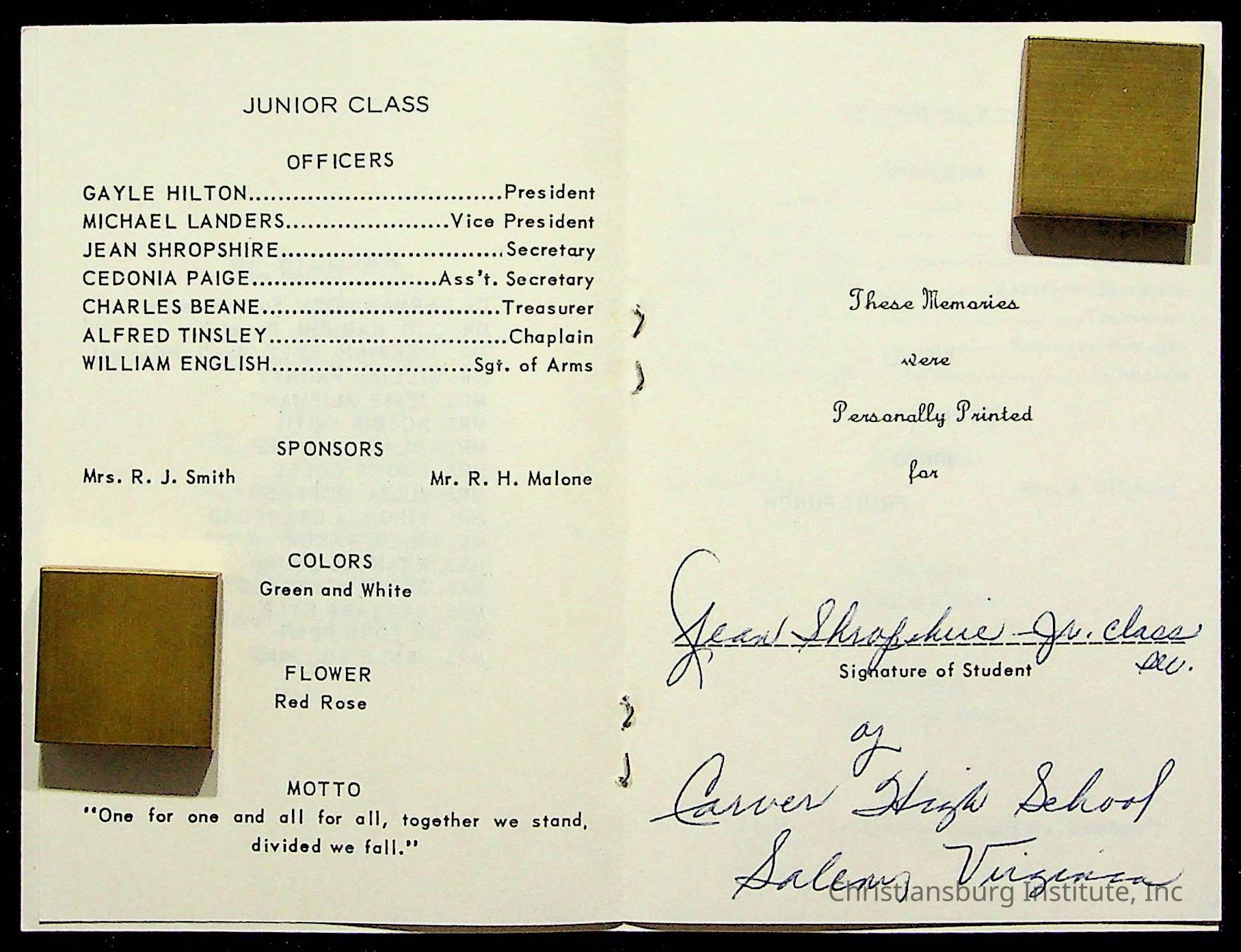 Copyright has been assigned to Christiansburg Institute Museum & Archives by Montgomery County Public Schools. For permission to publish materials created by the donor, contact CIMA@christiansburginstitute.com. Materials not created by Christiansburg Industrial Institute may still be under copyright.